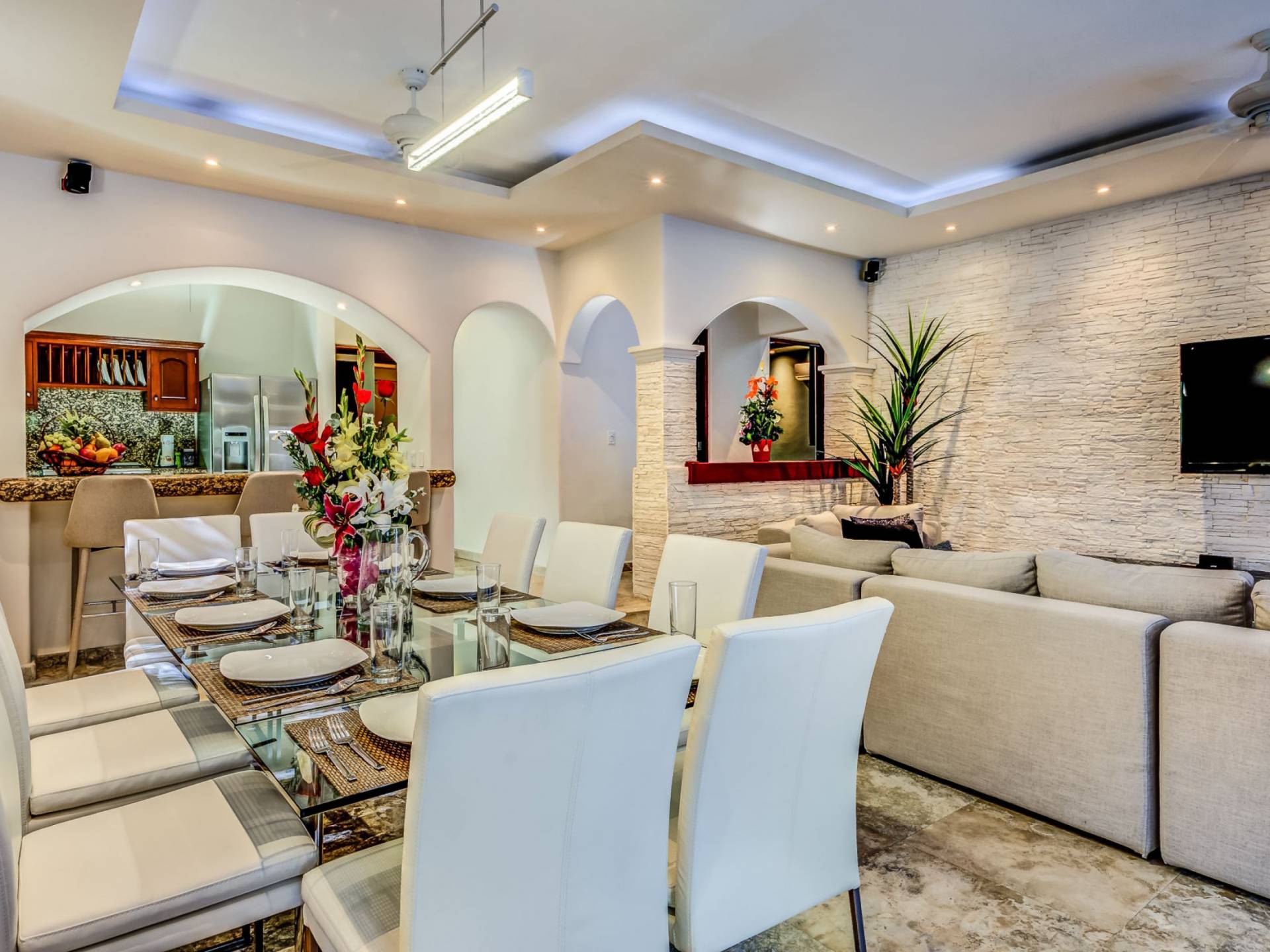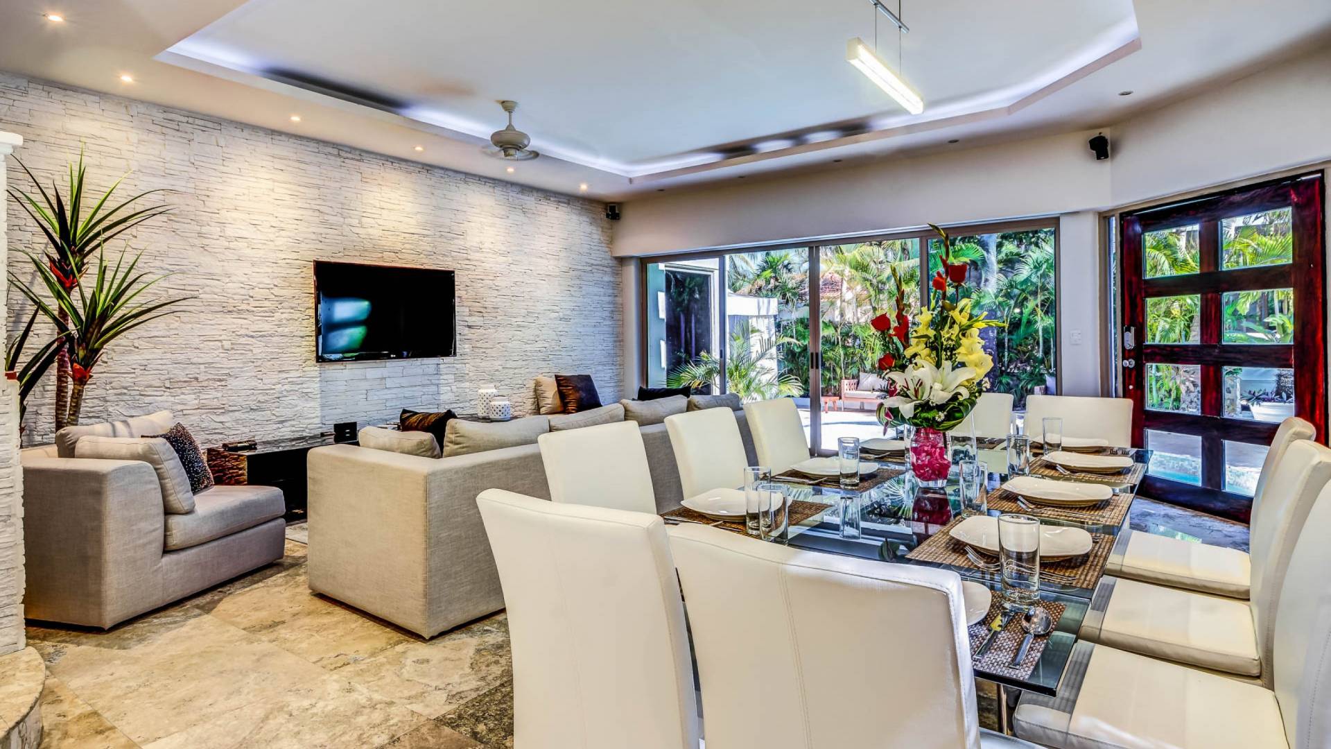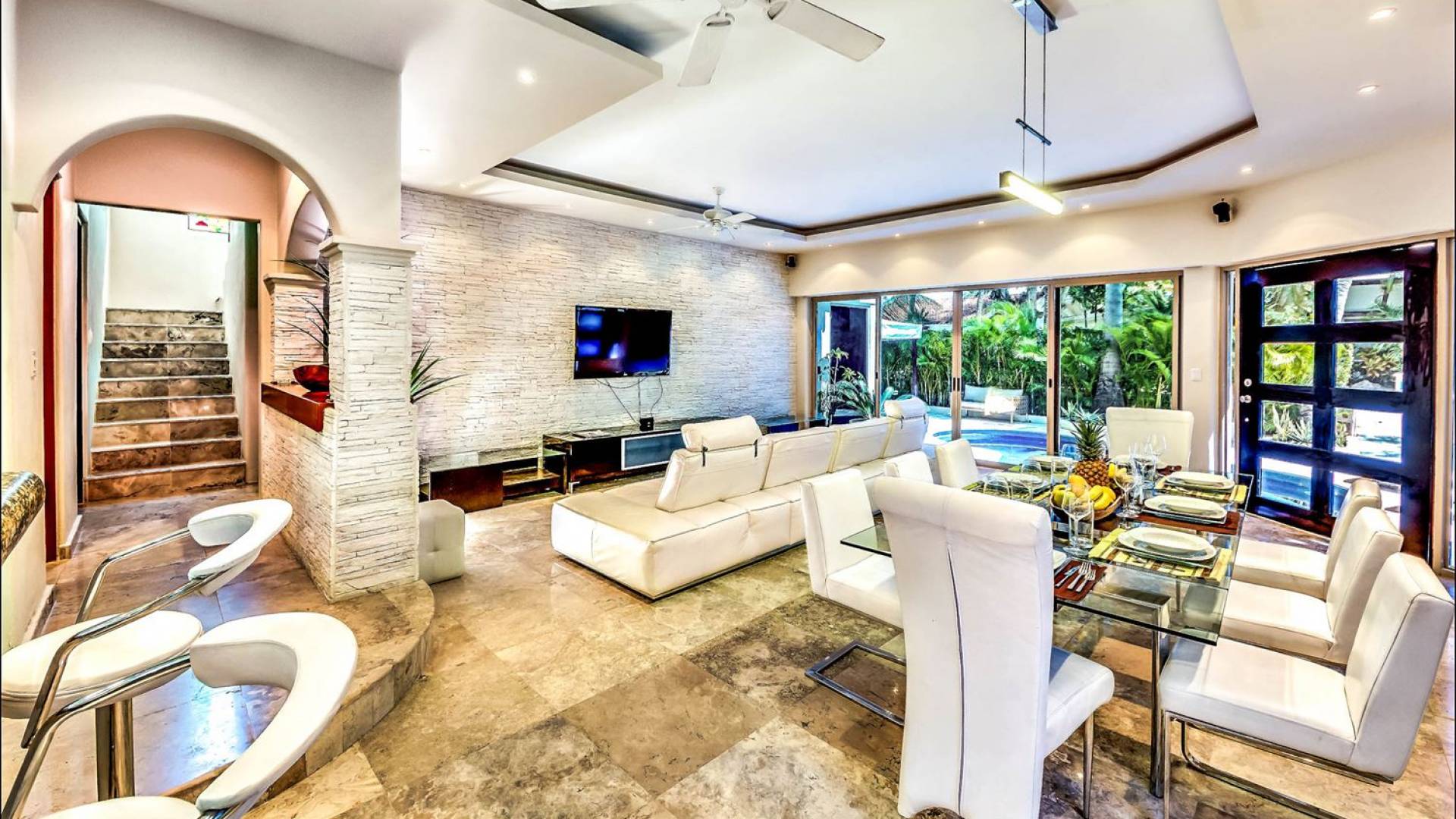 La vita in stile Palapa e l'architettura all'avanguardia lasciano a Casa Nikki un'atmosfera elegante e tropicale con un tocco di avanguardia. Rilassatevi sui divani in pelle bianca o banchettate con stile nella sala da pranzo per 8 accanto alla magnifica cucina. Le pareti in mattoni bianchi nella zona giorno e pranzo completano i temi del minimalismo e del design spigoloso. La cucina completamente attrezzata comprende un bar per la colazione ed è perfetta per il genio culinario del gruppo.