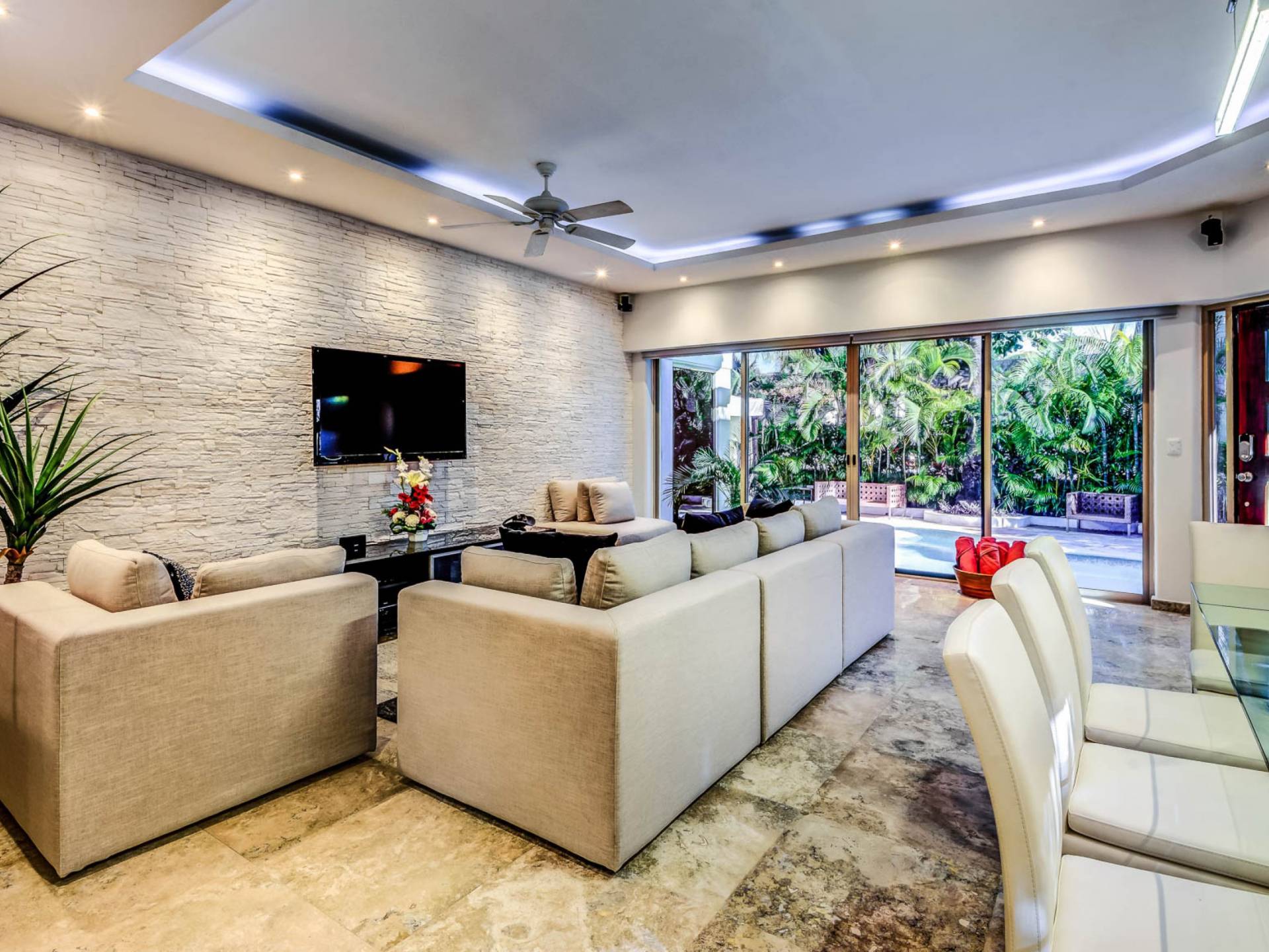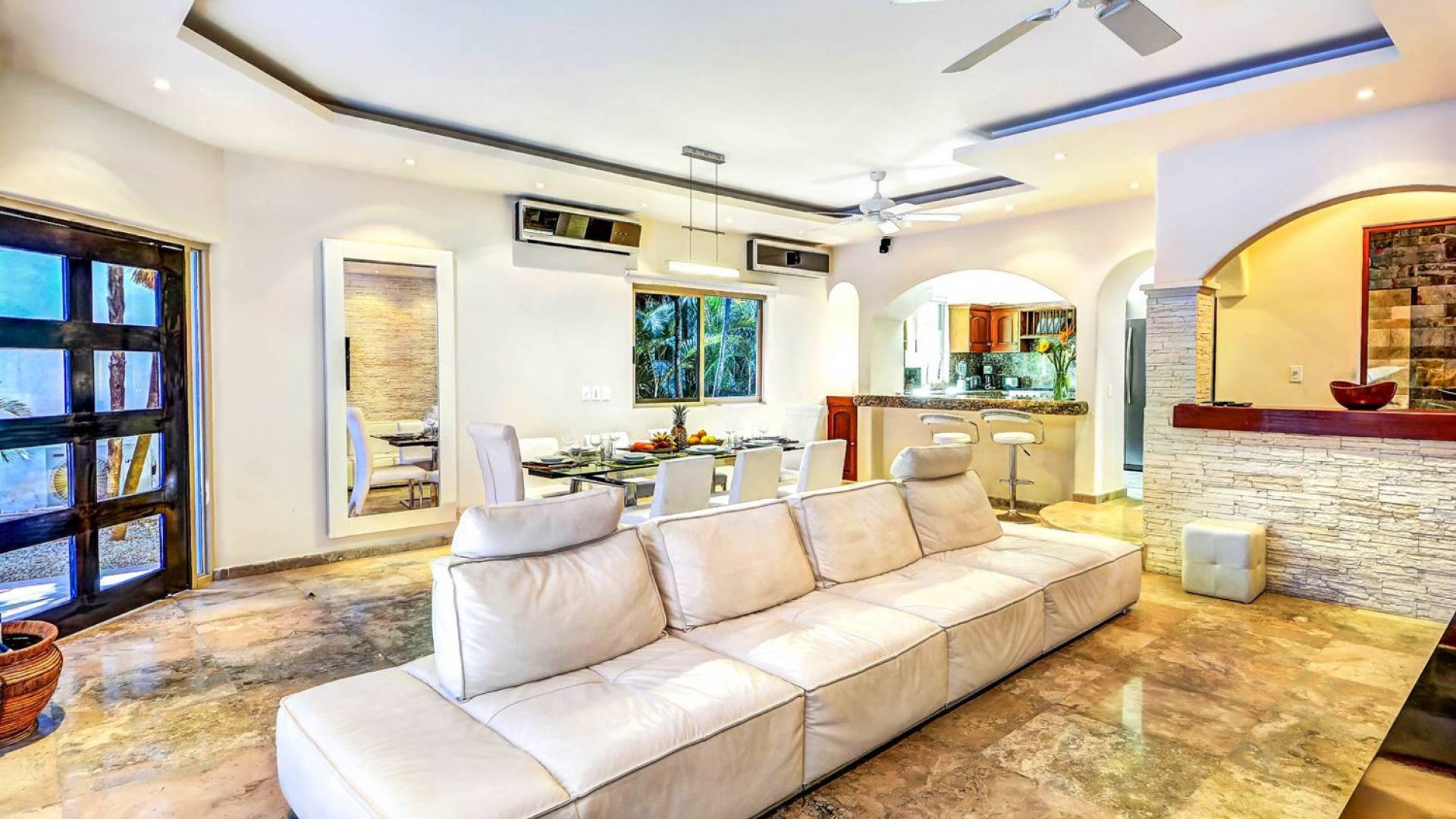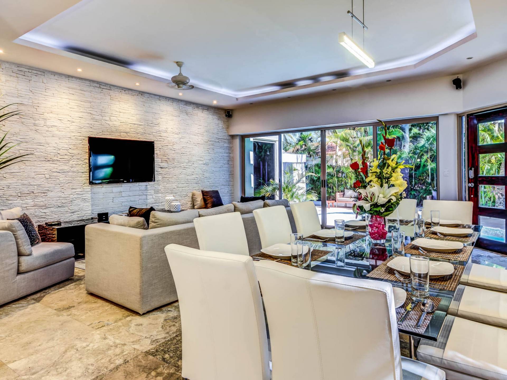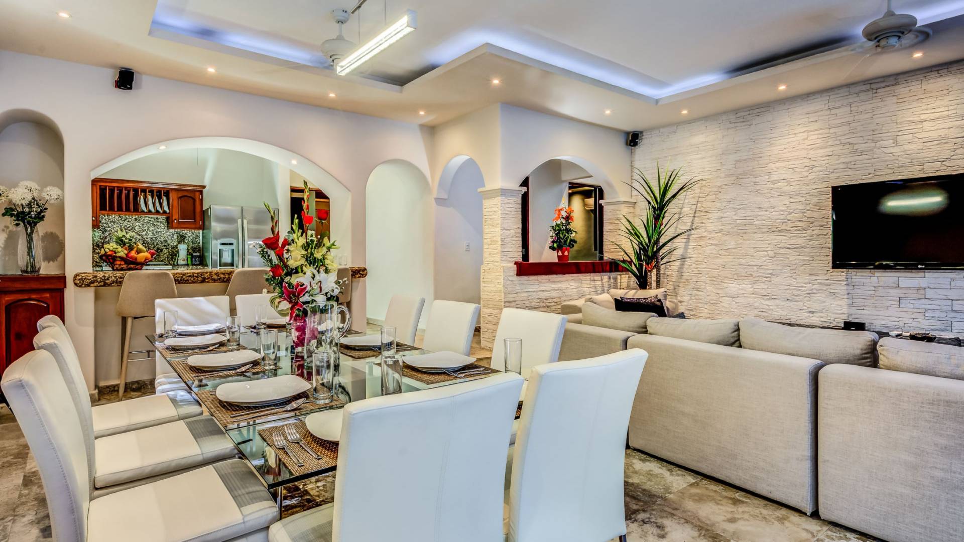 La vita in stile Palapa e l'architettura all'avanguardia lasciano a Casa Nikki un'atmosfera elegante e tropicale con un tocco di avanguardia. Rilassatevi sui divani in pelle bianca o banchettate con stile nella sala da pranzo per 8 accanto alla magnifica cucina. Le pareti in mattoni bianchi nella zona giorno e pranzo completano i temi del minimalismo e del design spigoloso. La cucina completamente attrezzata comprende un bar per la colazione ed è perfetta per il genio culinario del gruppo.