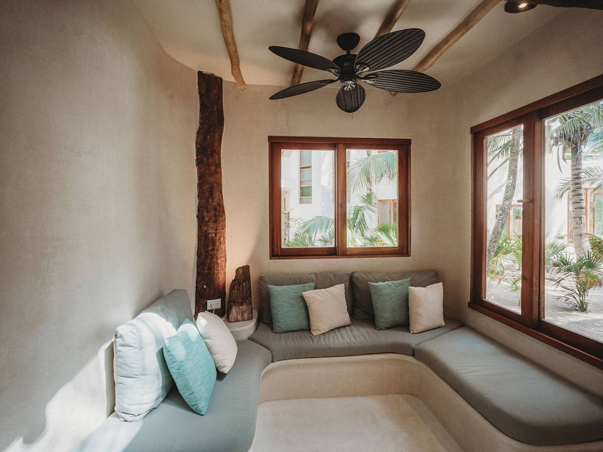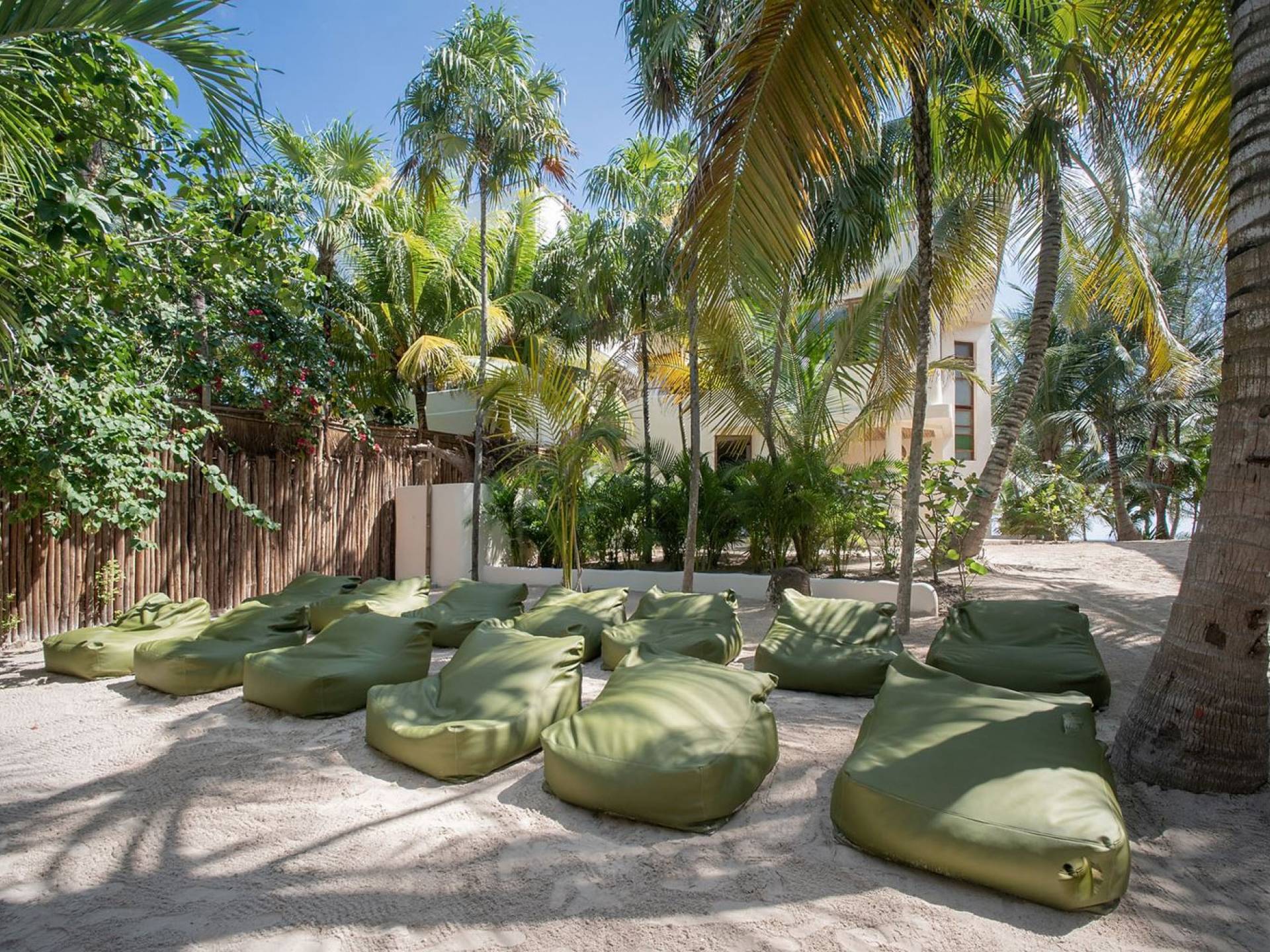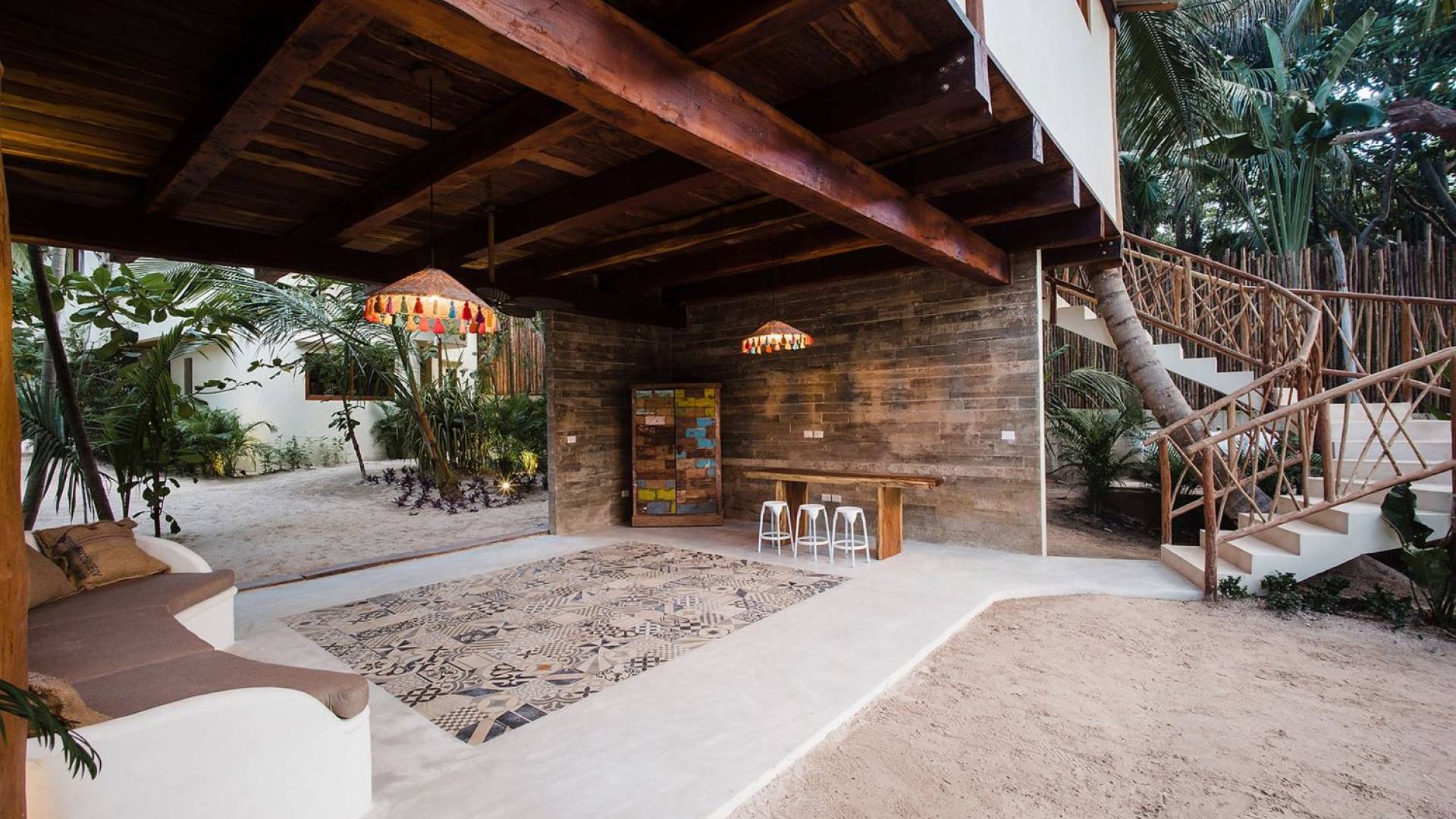 Gli ospiti godono anche dell'uso dello spazio dello studio di yoga e del patio sul tetto con vista a volo d'uccello con una vista incredibile sulla spiaggia di Tulum.