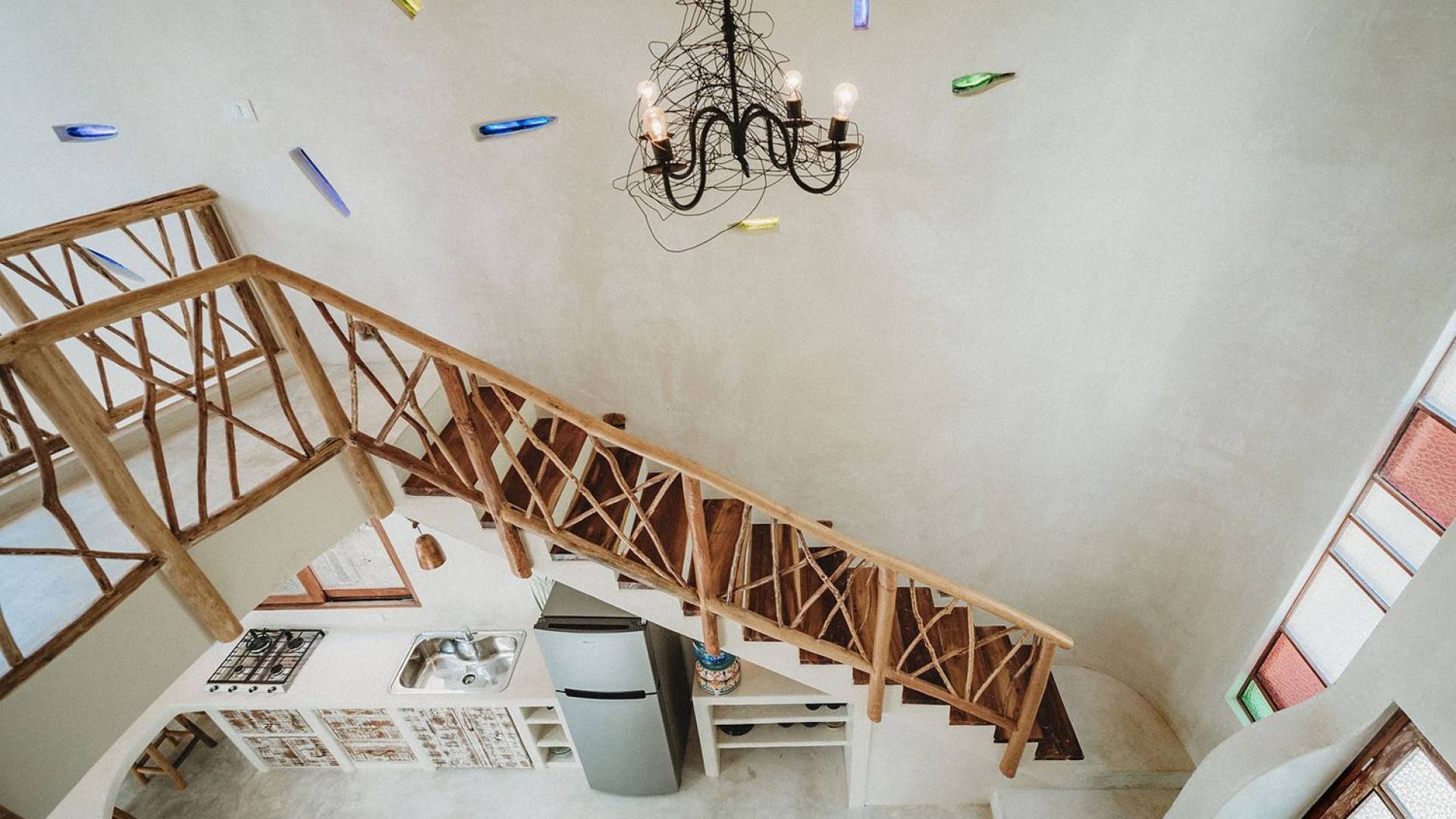 Una camera da letto con letto queen-size al piano principale è perfetta per i bambini o una coppia. Sali le scale e attraversa il ponte interno fino a una romantica camera da letto matrimoniale da favola con bagno privato e doccia, un balcone alla Giulietta e un tetto a volta a palapa.
