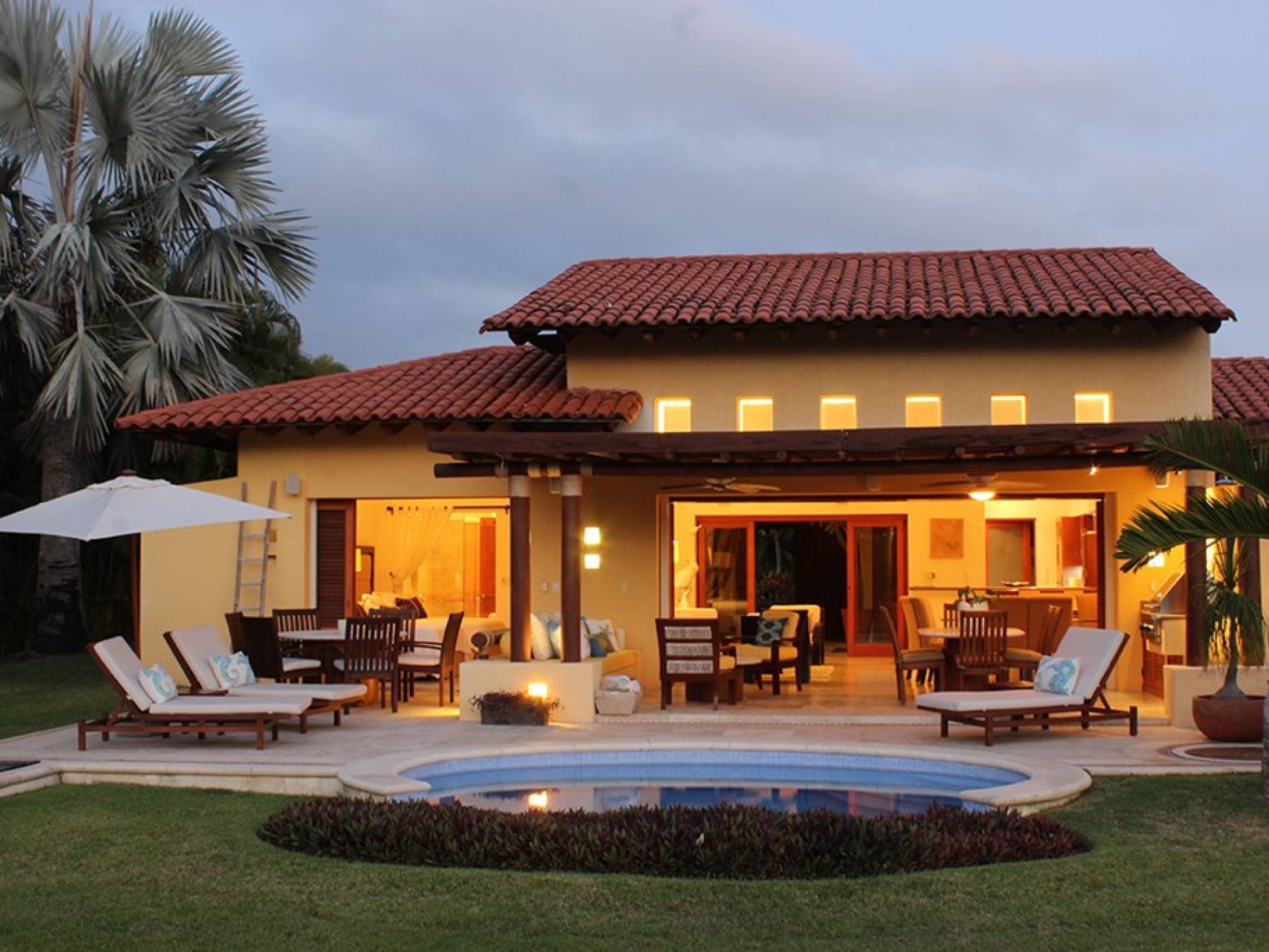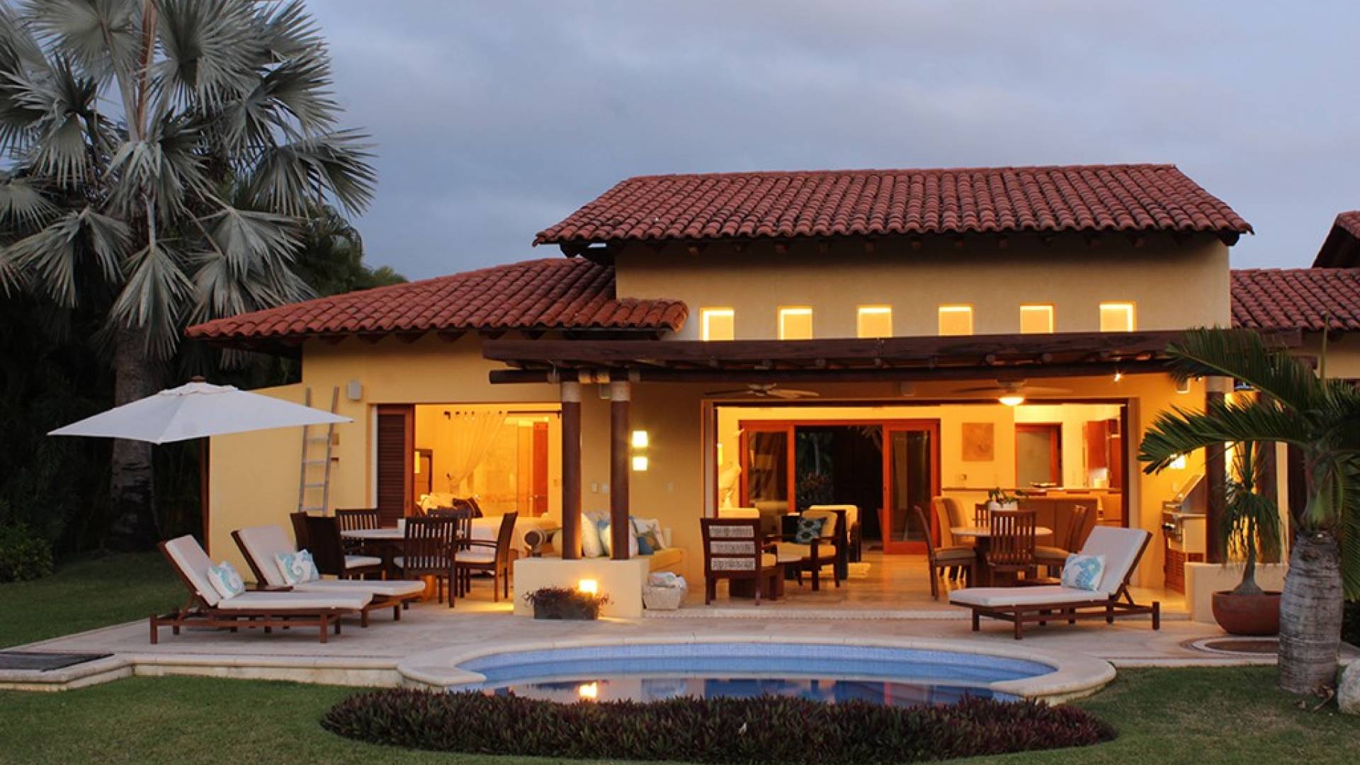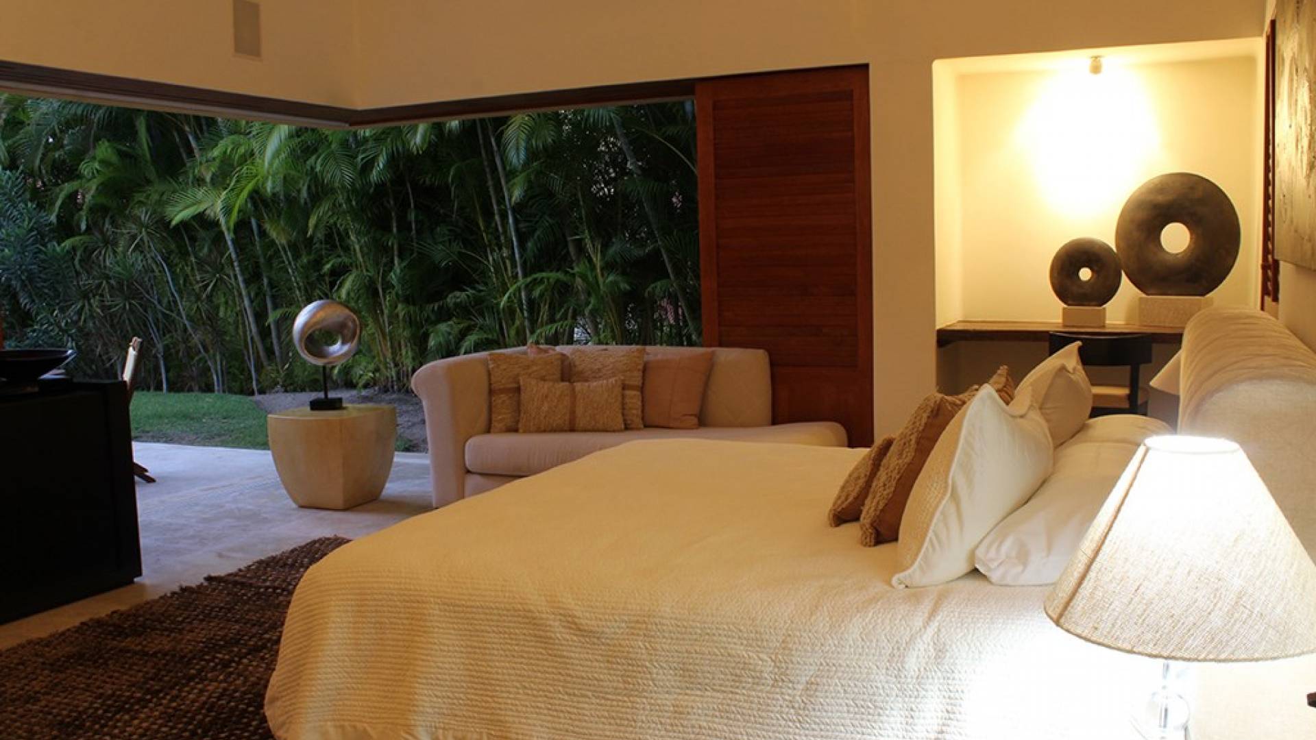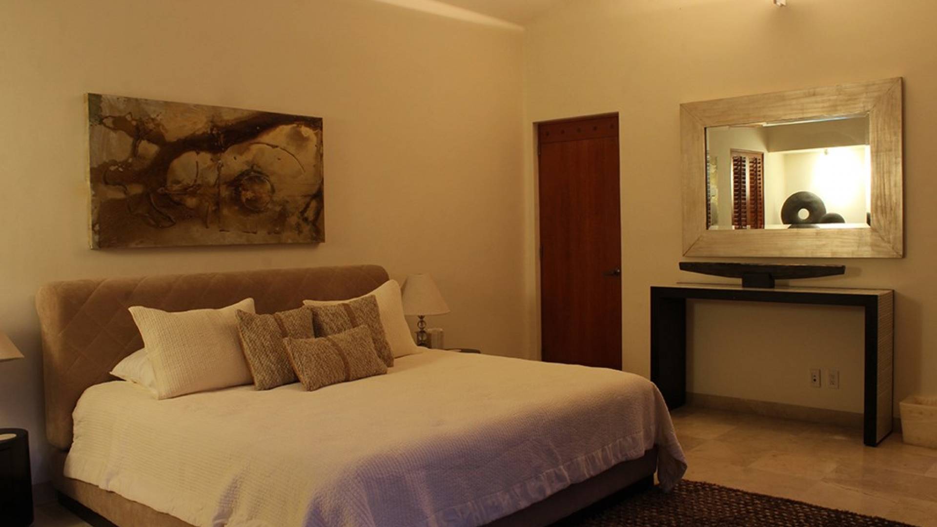 Creata come una villa su un unico livello, con tre camere da letto e tre bagni, è dotata di un campo da golf e di una vista parziale sull'oceano e di un soggiorno/sala da pranzo che si apre su un'ampia terrazza con sala da pranzo all'aperto e la propria vasca immersione ad acqua fredda. Gli ospiti sono a soli 5 minuti a piedi dal Residents' Beach Club, accessibile solo dai membri e dagli ospiti di Punta Mita. Las Palmas 5 si trova tra il Four Seasons Resort e St. Regis, due dei posti migliori dove godersi il pranzo o la cena.