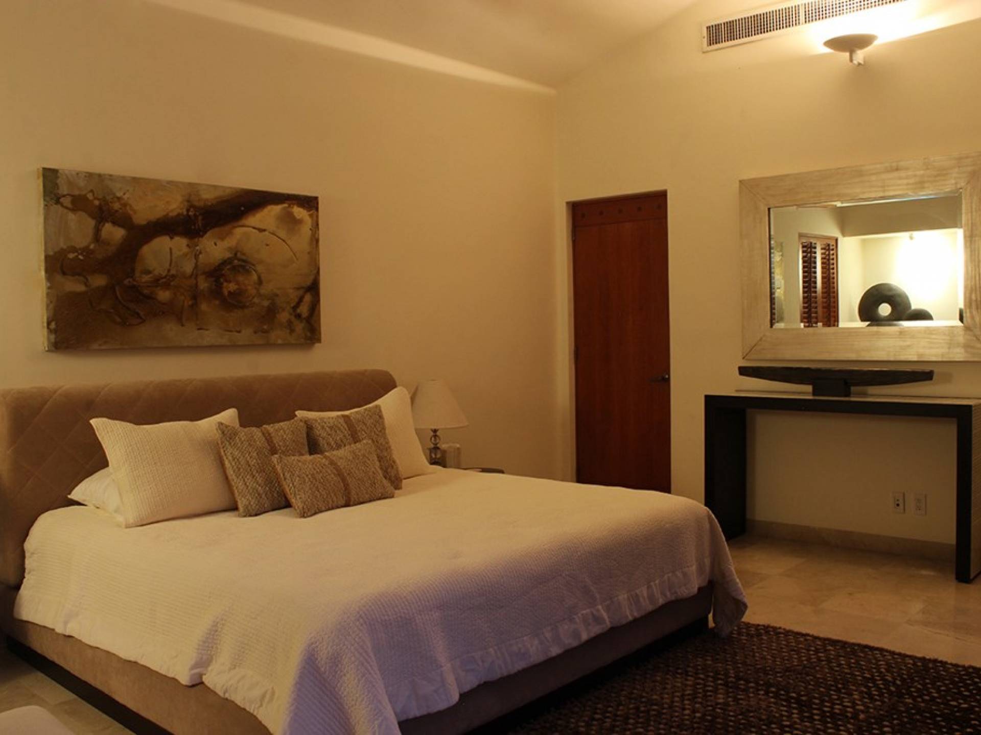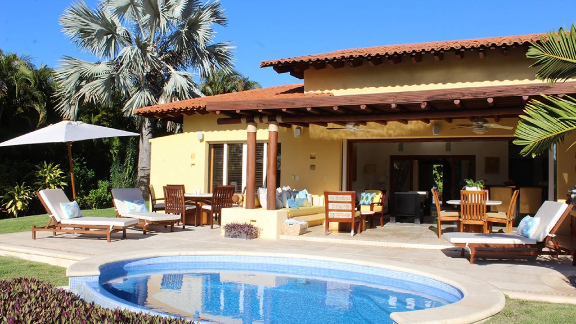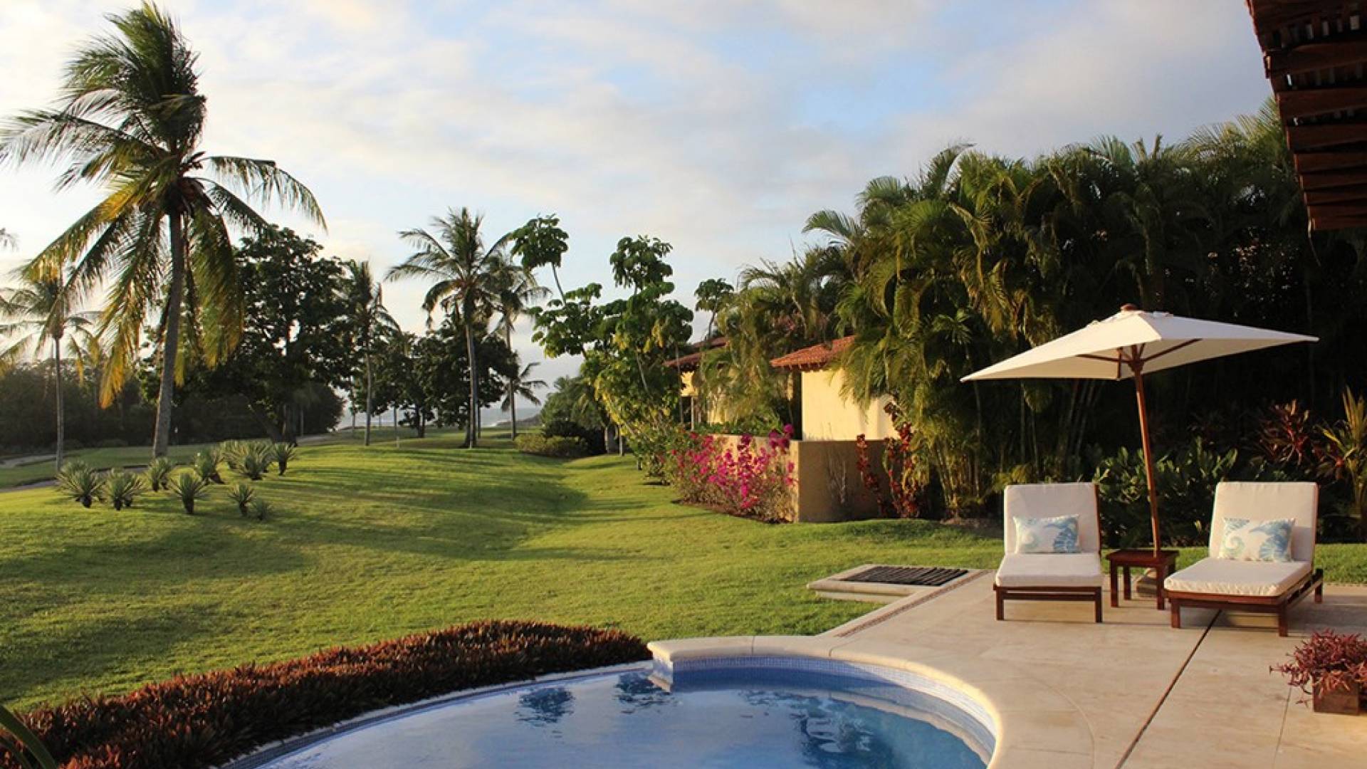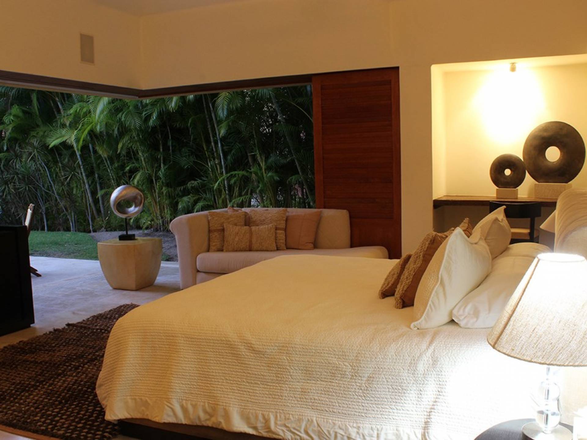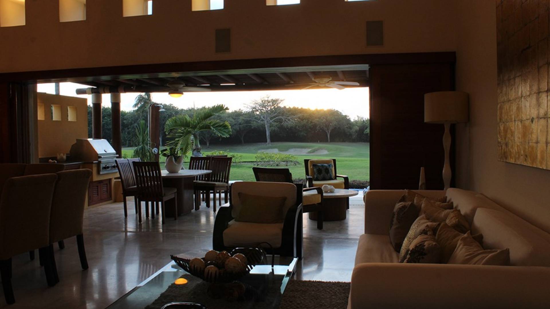 Creata come una villa su un unico livello, con tre camere da letto e tre bagni, è dotata di un campo da golf e di una vista parziale sull'oceano e di un soggiorno/sala da pranzo che si apre su un'ampia terrazza con sala da pranzo all'aperto e la propria vasca immersione ad acqua fredda. Gli ospiti sono a soli 5 minuti a piedi dal Residents' Beach Club, accessibile solo dai membri e dagli ospiti di Punta Mita. Las Palmas 5 si trova tra il Four Seasons Resort e St. Regis, due dei posti migliori dove godersi il pranzo o la cena.