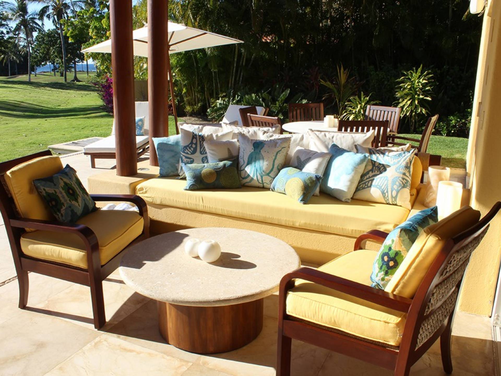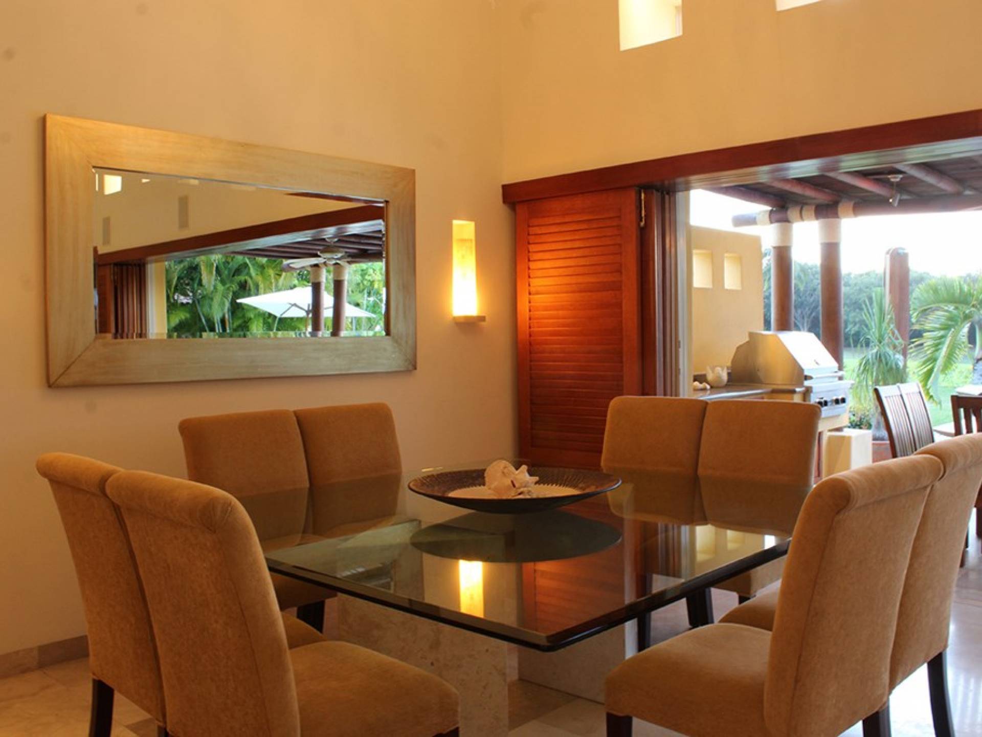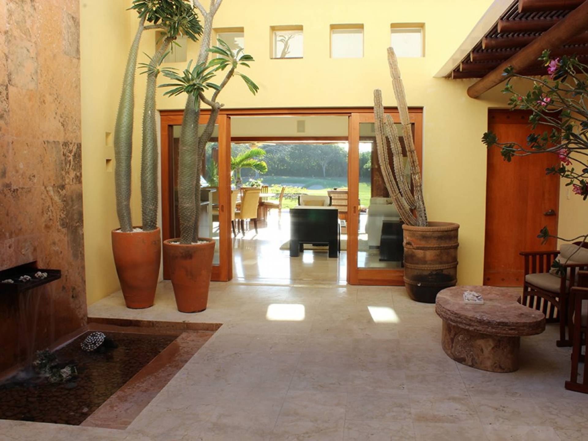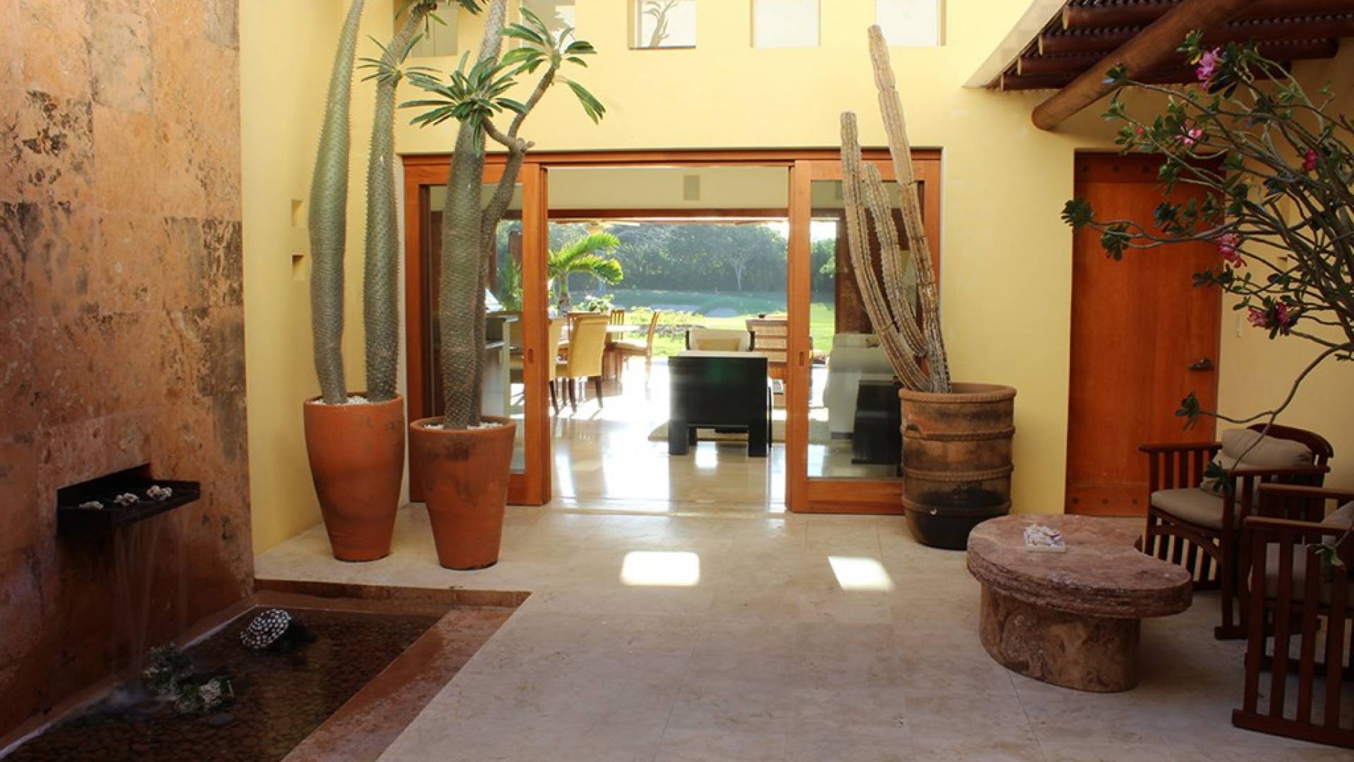 Creata come una villa su un unico livello, con tre camere da letto e tre bagni, è dotata di un campo da golf e di una vista parziale sull'oceano e di un soggiorno/sala da pranzo che si apre su un'ampia terrazza con sala da pranzo all'aperto e la propria vasca immersione ad acqua fredda. Gli ospiti sono a soli 5 minuti a piedi dal Residents' Beach Club, accessibile solo dai membri e dagli ospiti di Punta Mita. Las Palmas 5 si trova tra il Four Seasons Resort e St. Regis, due dei posti migliori dove godersi il pranzo o la cena.