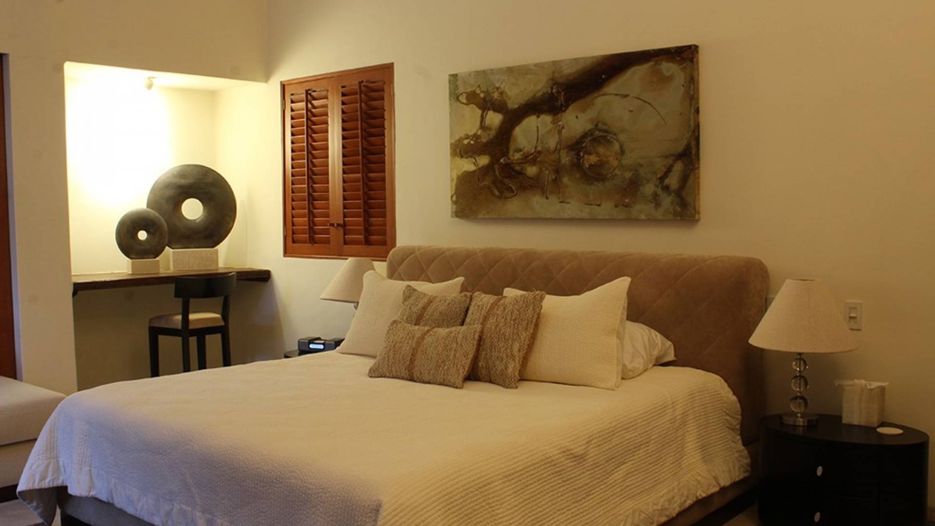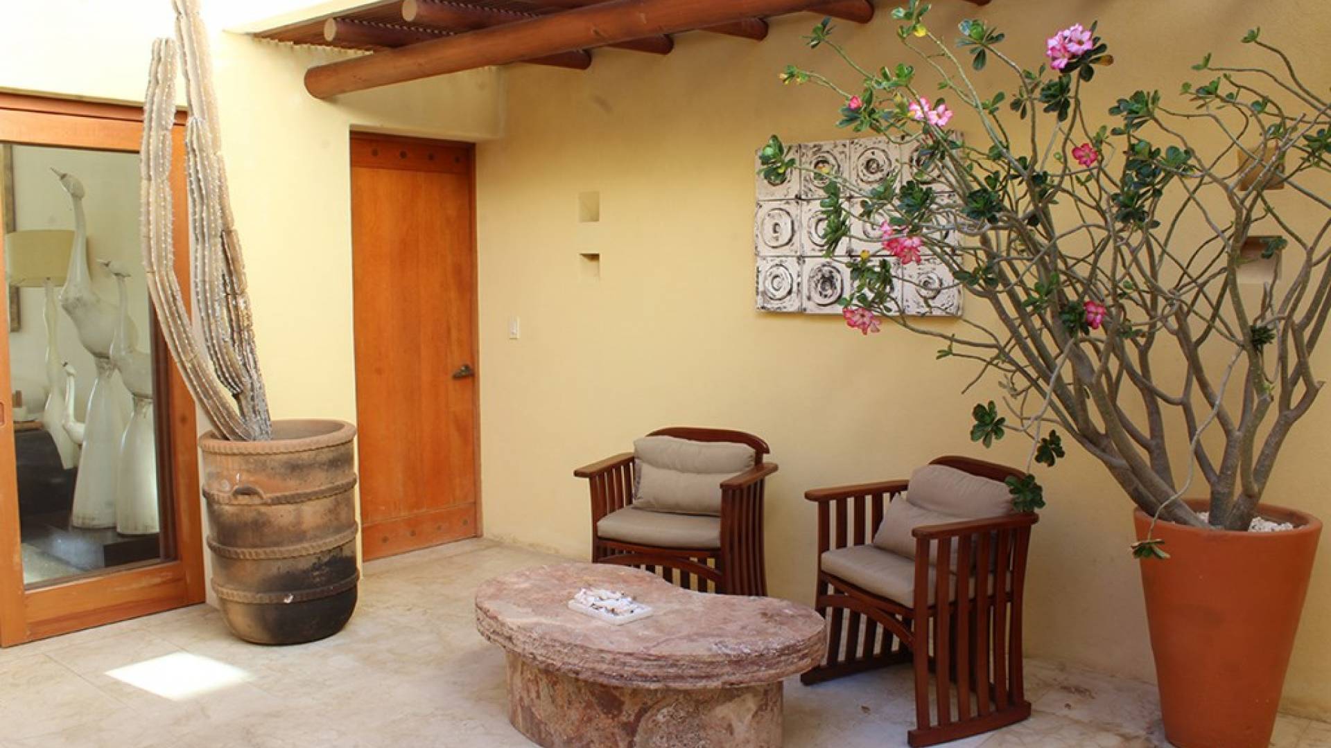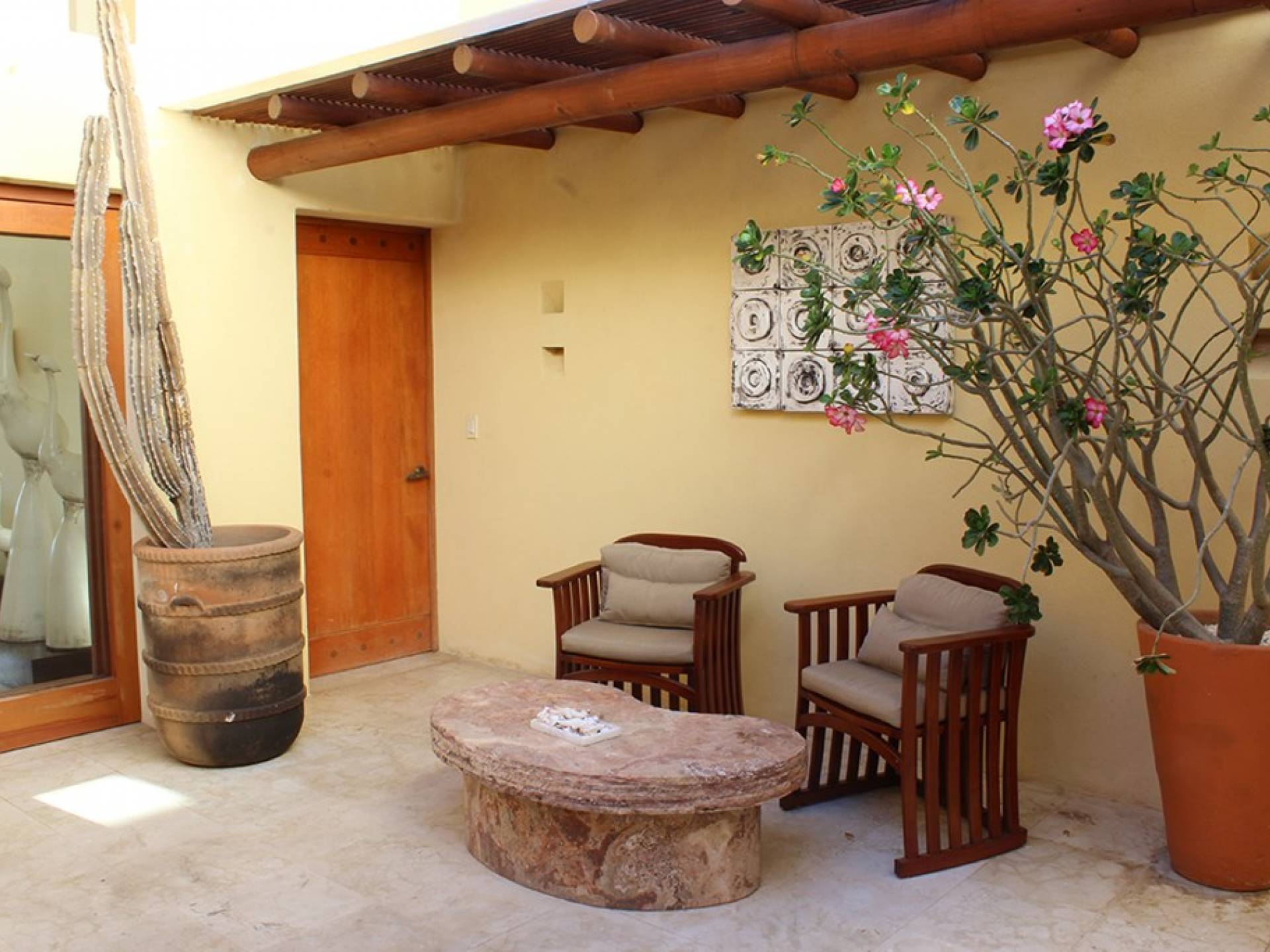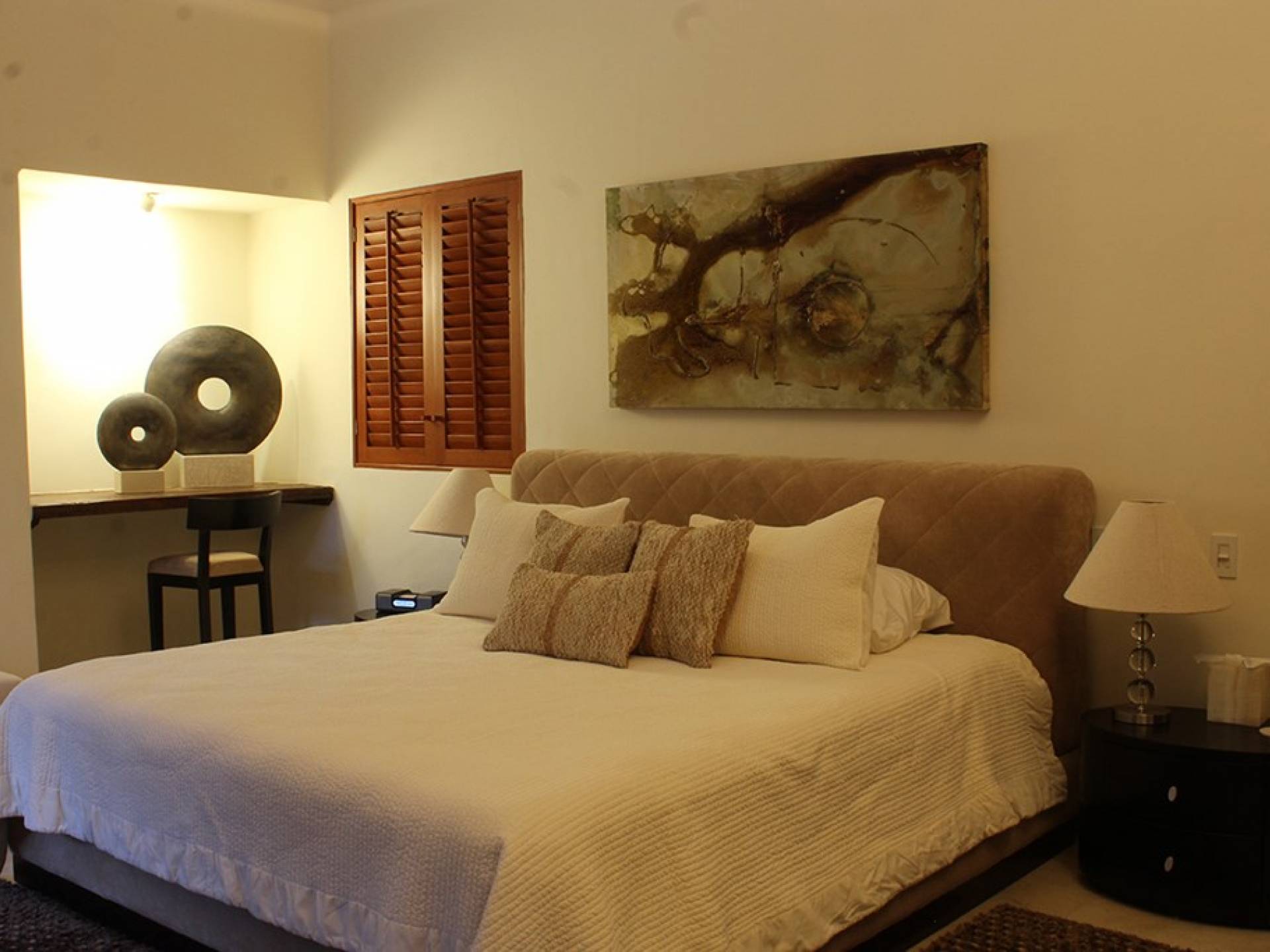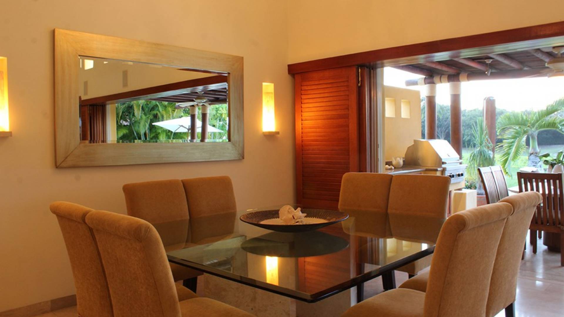 Creata come una villa su un unico livello, con tre camere da letto e tre bagni, è dotata di un campo da golf e di una vista parziale sull'oceano e di un soggiorno/sala da pranzo che si apre su un'ampia terrazza con sala da pranzo all'aperto e la propria vasca immersione ad acqua fredda. Gli ospiti sono a soli 5 minuti a piedi dal Residents' Beach Club, accessibile solo dai membri e dagli ospiti di Punta Mita. Las Palmas 5 si trova tra il Four Seasons Resort e St. Regis, due dei posti migliori dove godersi il pranzo o la cena.