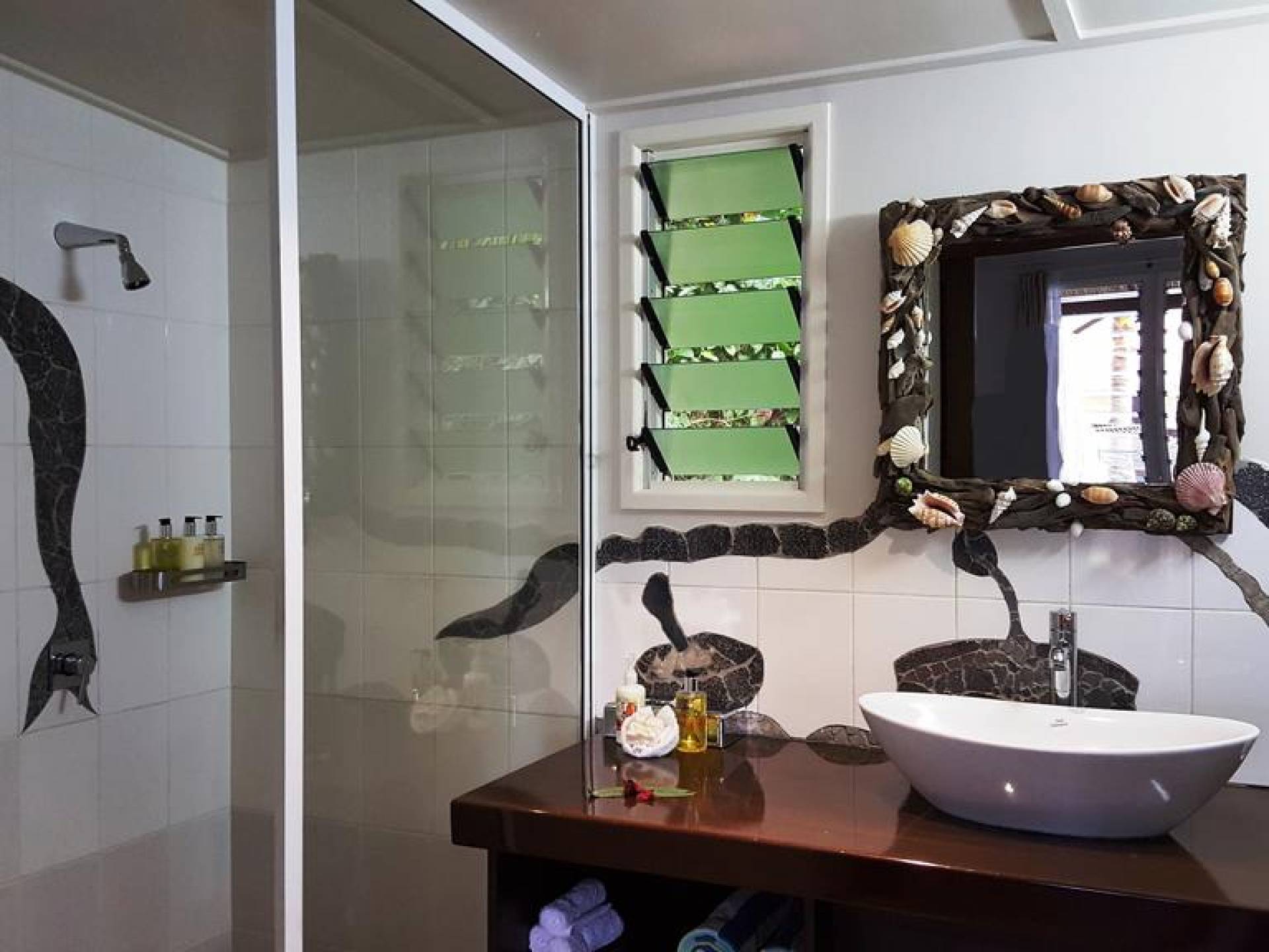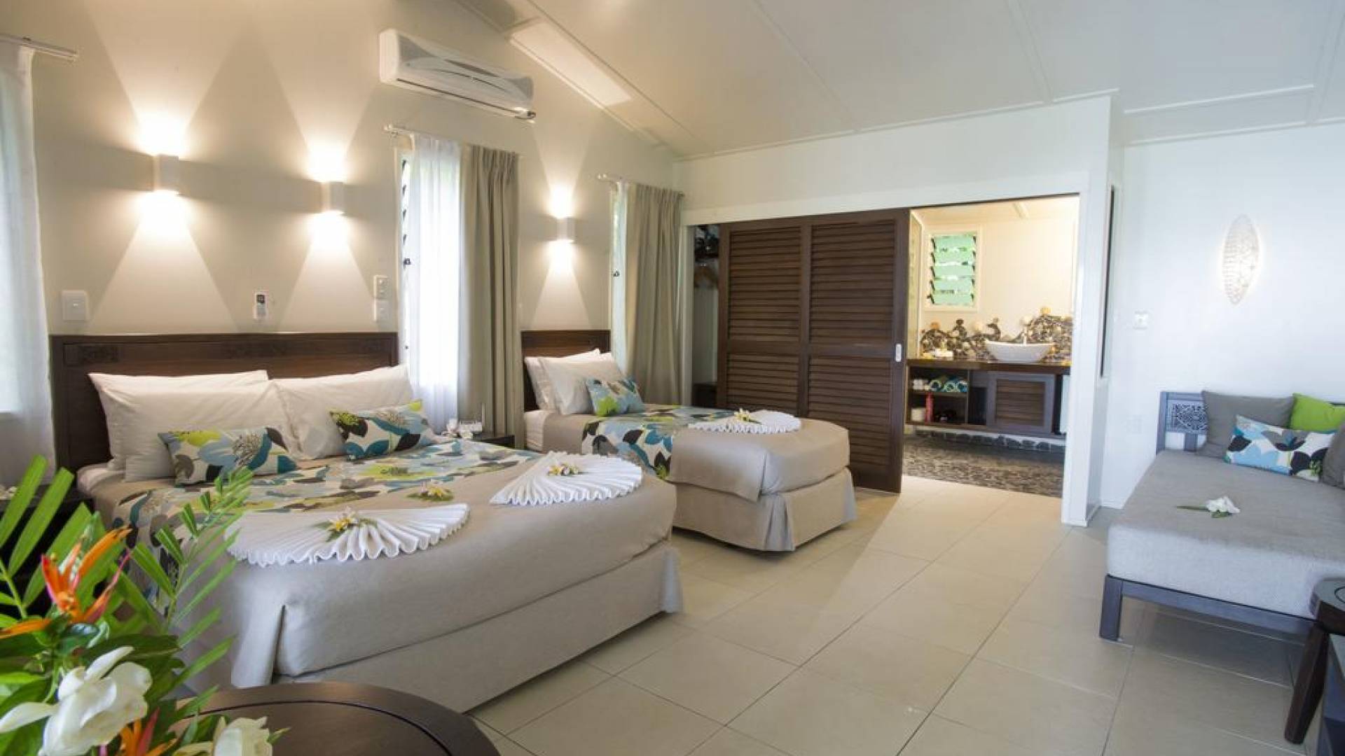 Progettata pensando alle esigenze specifiche, ogni Villa Deluxe offre un ambiente amichevole per le persone con mobilità ridotta. Queste ville, pur vantando una splendida vista sulla piscina, sulla barriera corallina e sul surf, possono ospitare amici che viaggiano insieme o coppie che amano una villa più grande. Questa villa grande ma accogliente, abbraccia il fascino e la creatività delle Samoa e comprende un letto matrimoniale, singolo e da giorno, che può ospitare tre persone utilizzando letti separati quando necessario e il tutto in un ambiente completamente schermato. Con caratteristici bagni in pietra lavica, servizi igienici privati, ampia doccia e arredi di lusso, sia che tu scelga di oziare con un libro nella tua doppia amaca o ammirare le viste dal tuo splendido padiglione, i tuoi ricordi di giorni pigri e tempo che non esistono rimarranno incorporati in il tuo cuore per sempre!