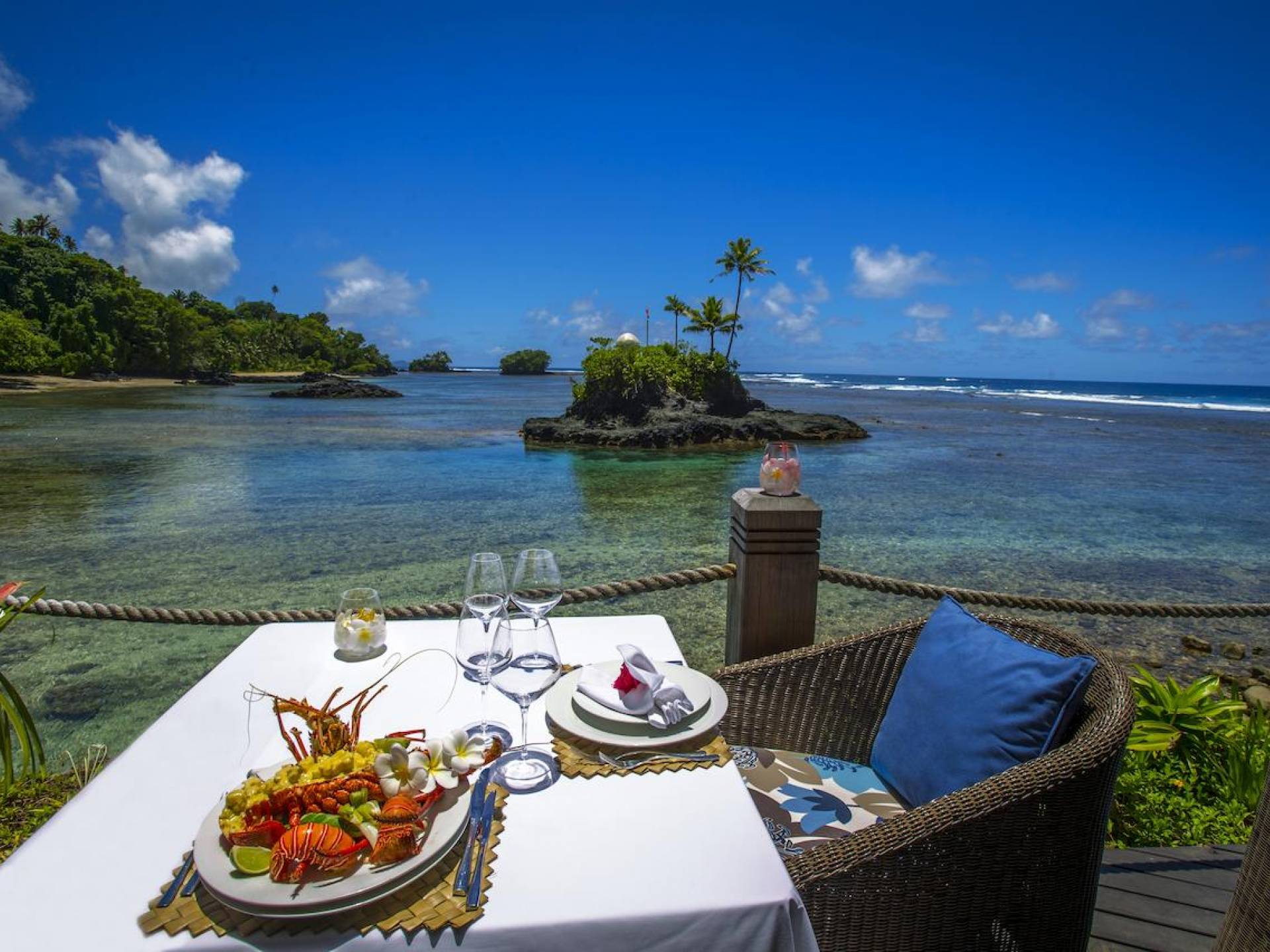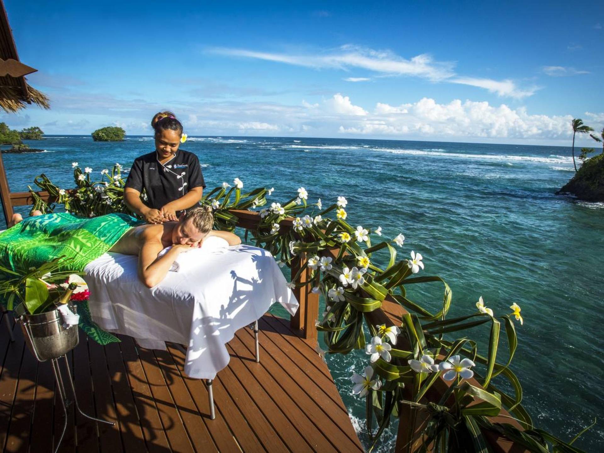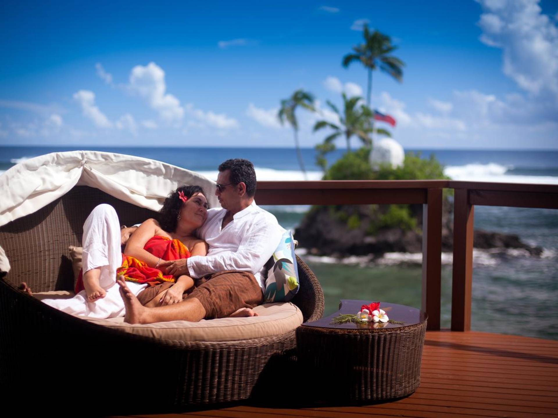Concentrandosi chiaramente sulla vita all'aperto, tutte le ville hanno vista sull'oceano, sulla laguna e sulla scogliera. Progettata e costruita da artigiani, arredata e decorata dai migliori specialisti di interior design, ogni camera è stata accuratamente strutturata pensando ai tropici per incoraggiare la ventilazione a flusso incrociato dalle brezze marine naturali. Per quelle miti notti tropicali offriamo aria condizionata e un ventilatore in ogni camera per garantire comfort e un sonno rilassante. Ogni villa dispone di set per la preparazione di tè e caffè, mini-frigorifero e bagno privato con tutti i comfort che ci si aspetterebbe da un resort di questo livello. Una volta dentro le stanze, il Samoan Flair ti accoglie, la trama dei bagni in pietra lavica ti ispira, l'ambiente circostante ti rilassa e la vista ti fa cenno.