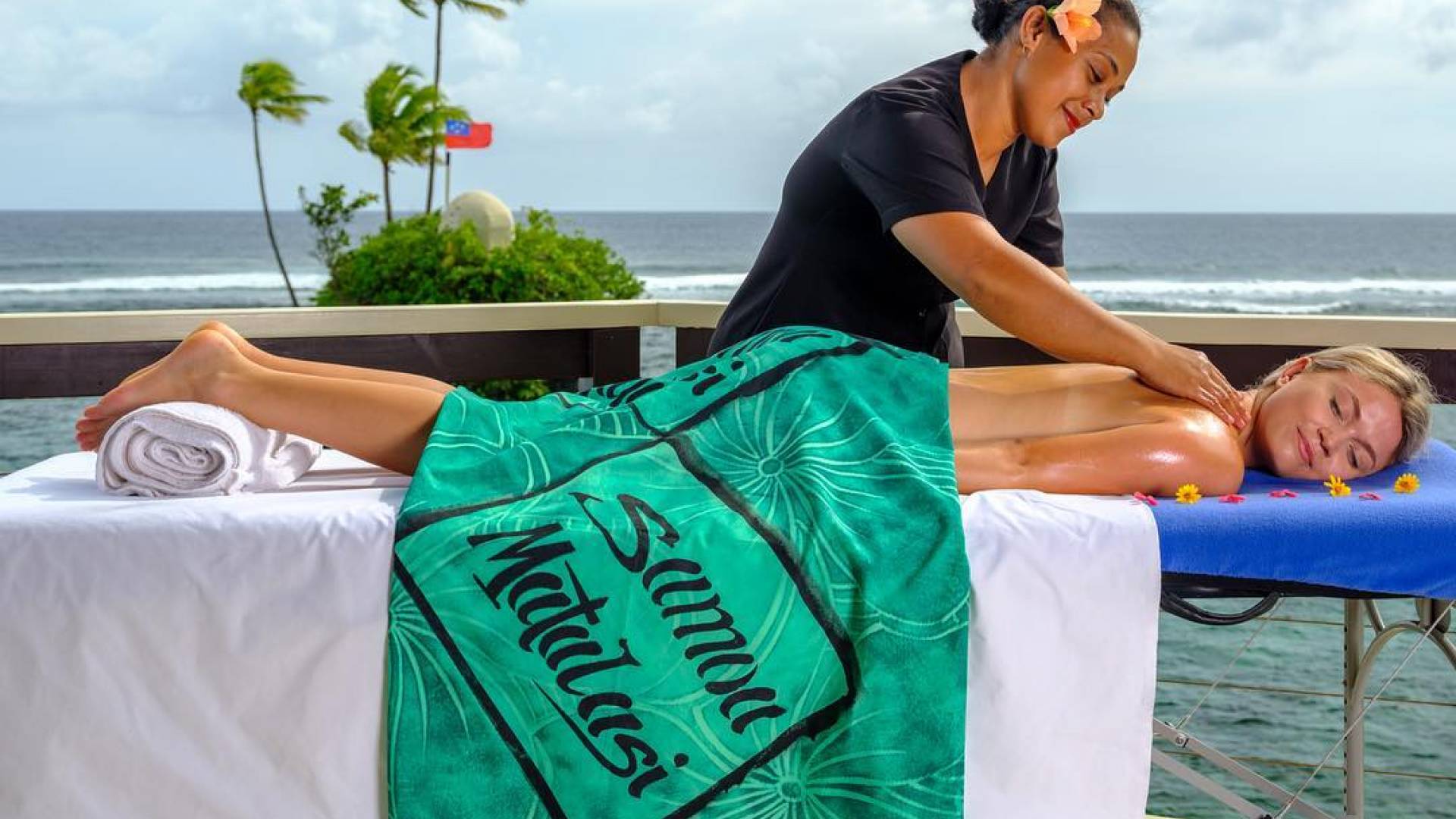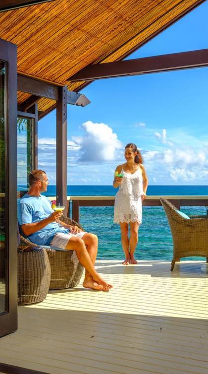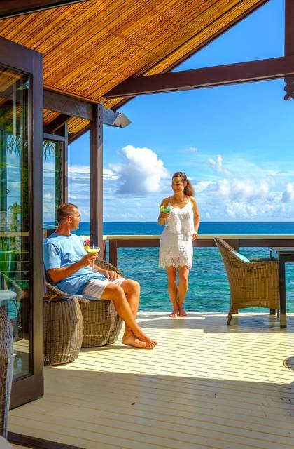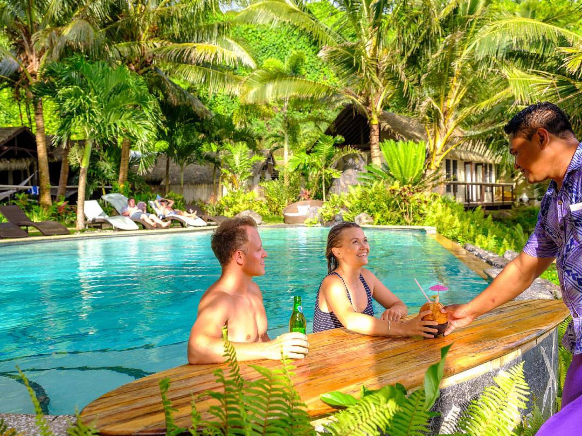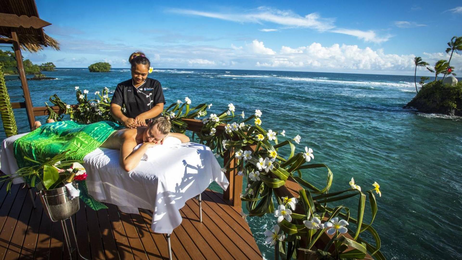 Concentrandosi chiaramente sulla vita all'aperto, tutte le ville hanno vista sull'oceano, sulla laguna e sulla scogliera. Progettata e costruita da artigiani, arredata e decorata dai migliori specialisti di interior design, ogni camera è stata accuratamente strutturata pensando ai tropici per incoraggiare la ventilazione a flusso incrociato dalle brezze marine naturali. Per quelle miti notti tropicali offriamo aria condizionata e un ventilatore in ogni camera per garantire comfort e un sonno rilassante. Ogni villa dispone di set per la preparazione di tè e caffè, mini-frigorifero e bagno privato con tutti i comfort che ci si aspetterebbe da un resort di questo livello. Una volta dentro le stanze, il Samoan Flair ti accoglie, la trama dei bagni in pietra lavica ti ispira, l'ambiente circostante ti rilassa e la vista ti fa cenno.