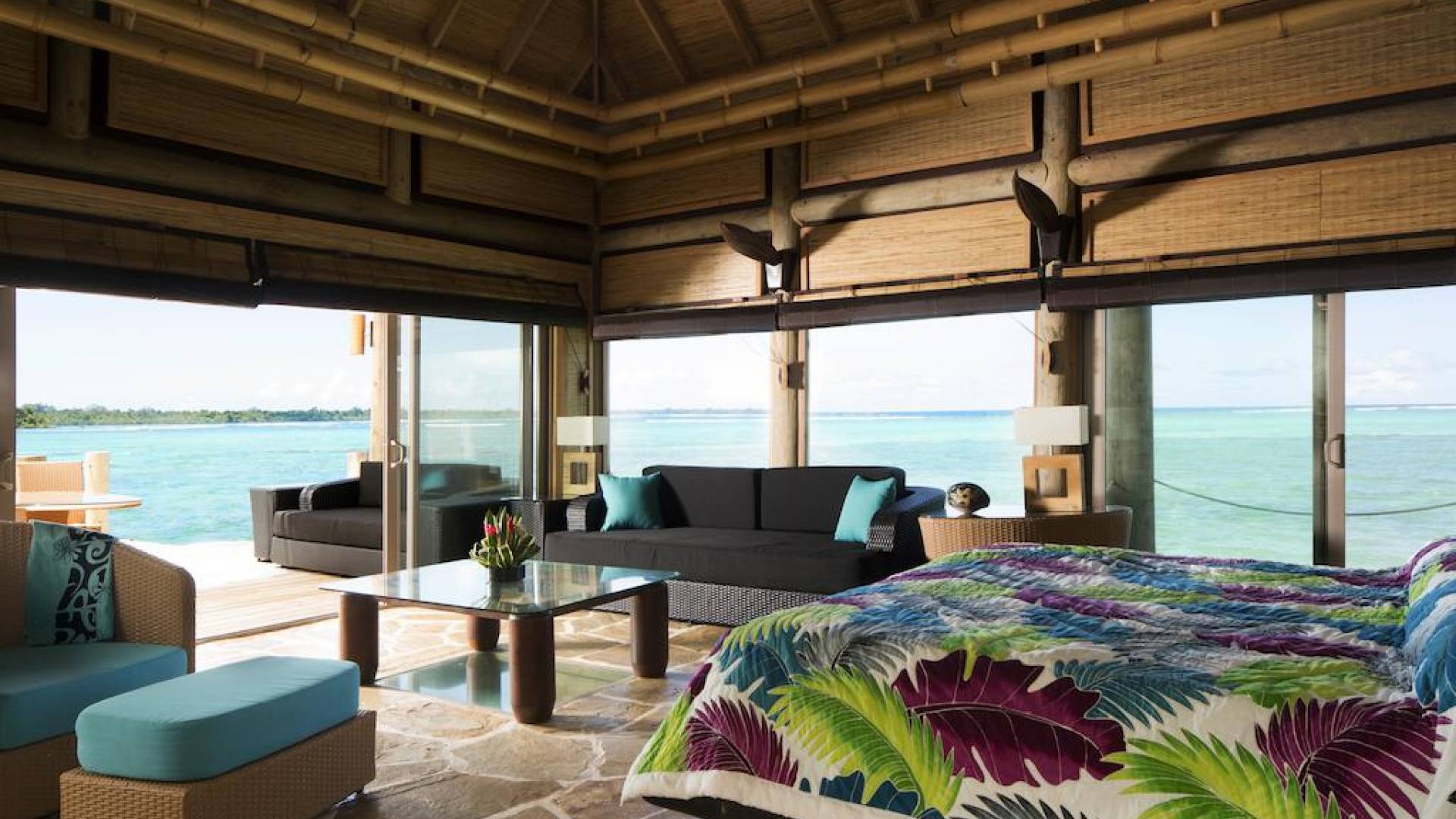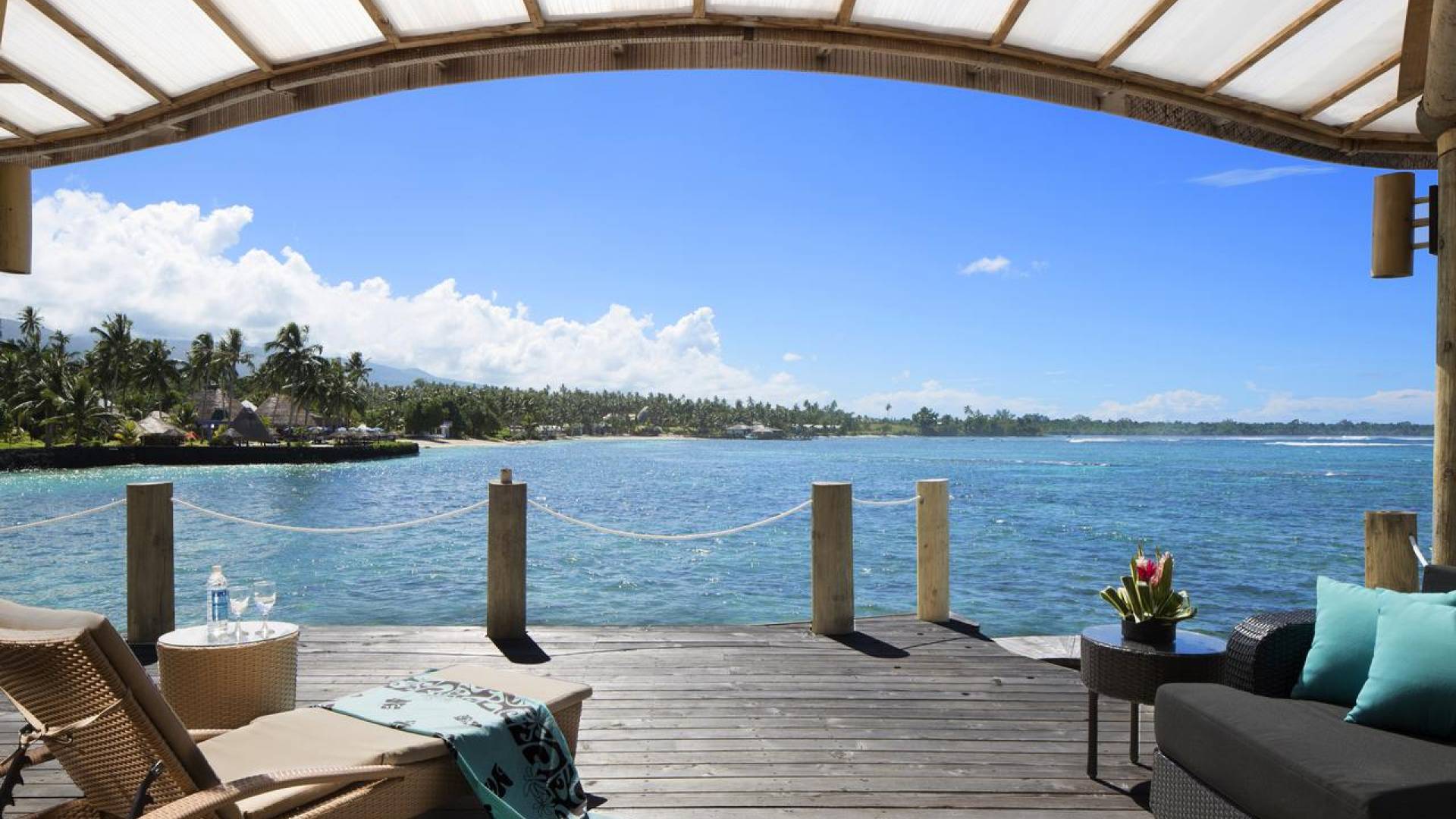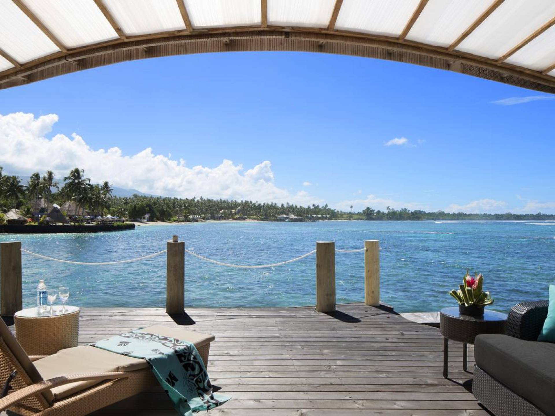Il clou di queste Fales uniche sull'acqua sono gli ampi solarium, dove le coppie fortunate potranno assaporare il proprio rifugio privato. Sedie a sdraio e mobili comodi invitano gli ospiti a rilassarsi e godersi l'ambiente tropicale. La camera da letto ampia e ariosa dispone di un letto king-size e vanta un alto soffitto tradizionale samoano. La camera da letto e il salotto si aprono sugli ampi ponti e possono essere chiusi con grandi porte scorrevoli in vetro per gli ospiti che desiderano utilizzare l'aria condizionata. Appena fuori dalla camera da letto ci sono le porte che si aprono su un ulteriore, piccolo, mini ponte.