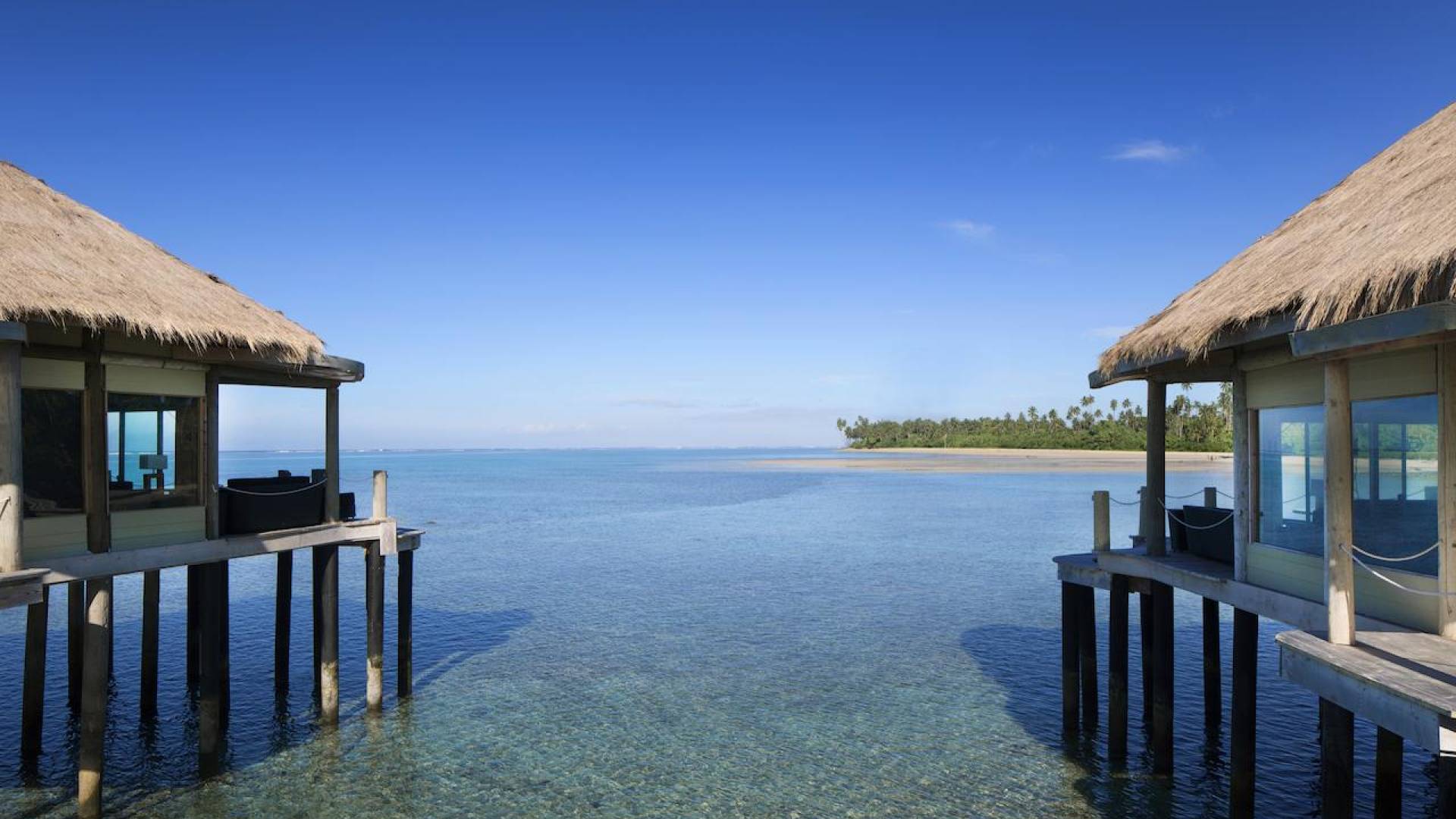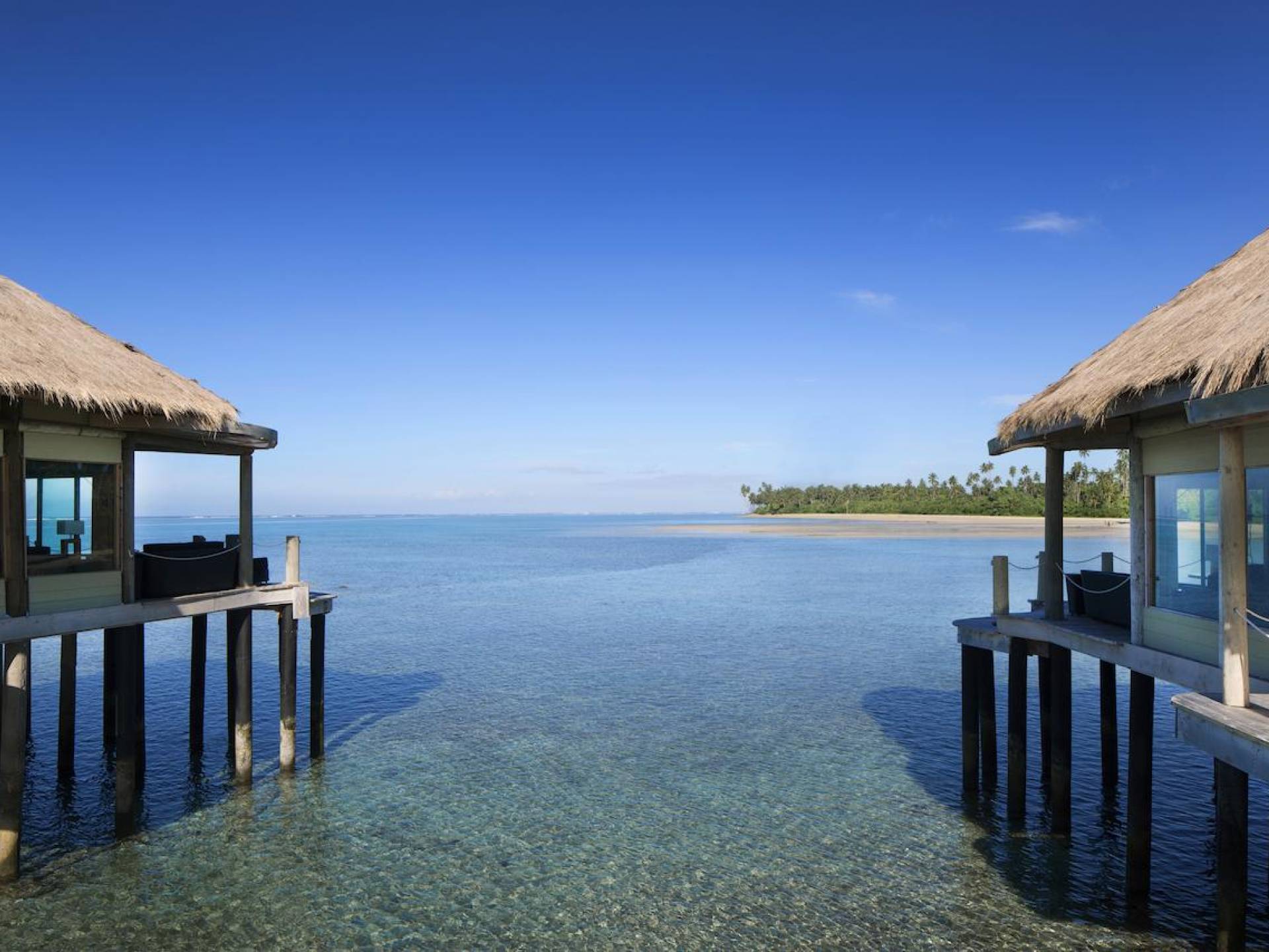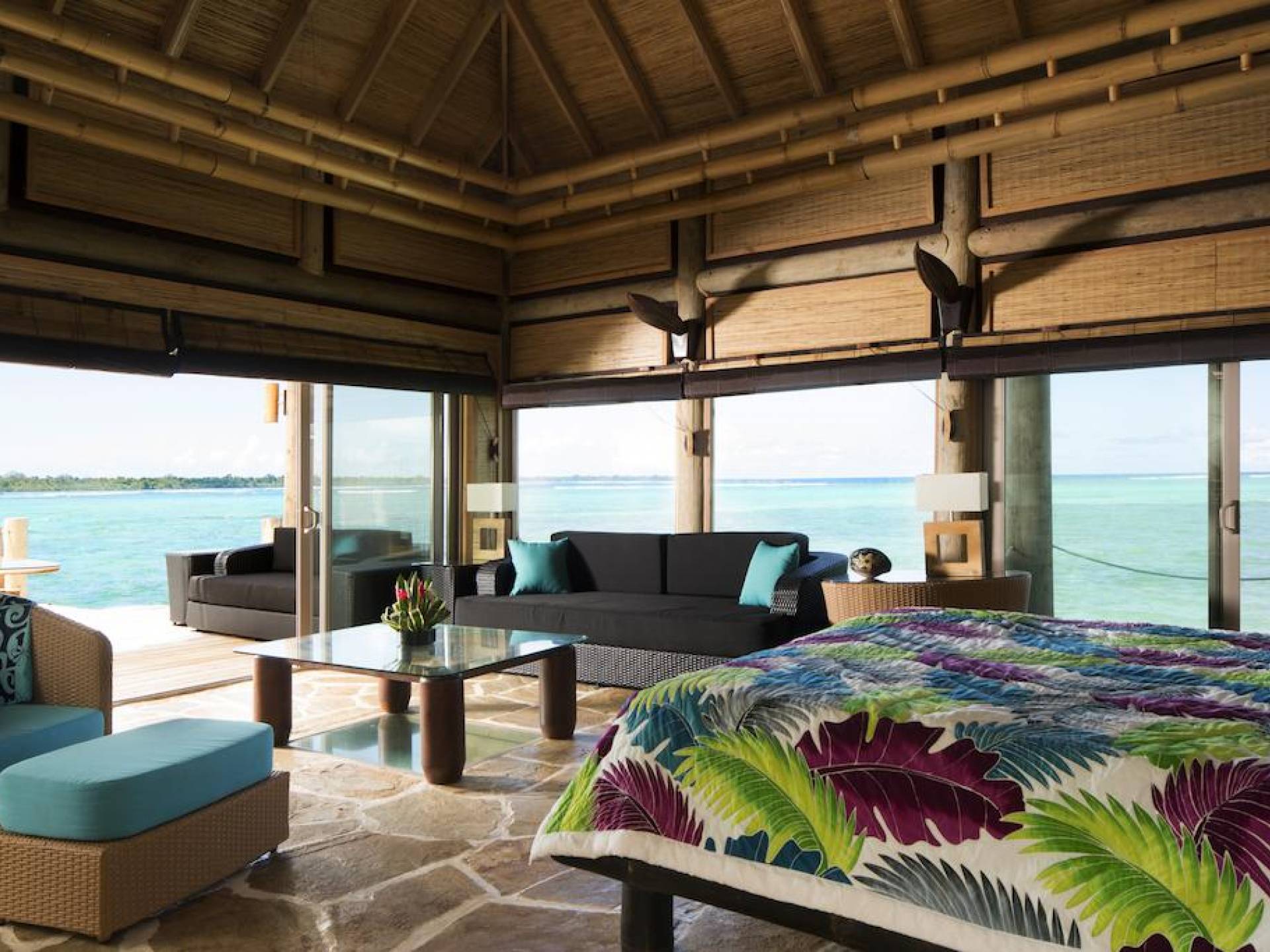 Il clou di queste Fales uniche sull'acqua sono gli ampi solarium, dove le coppie fortunate potranno assaporare il proprio rifugio privato. Sedie a sdraio e mobili comodi invitano gli ospiti a rilassarsi e godersi l'ambiente tropicale. La camera da letto ampia e ariosa dispone di un letto king-size e vanta un alto soffitto tradizionale samoano. La camera da letto e il salotto si aprono sugli ampi ponti e possono essere chiusi con grandi porte scorrevoli in vetro per gli ospiti che desiderano utilizzare l'aria condizionata. Appena fuori dalla camera da letto ci sono le porte che si aprono su un ulteriore, piccolo, mini ponte.