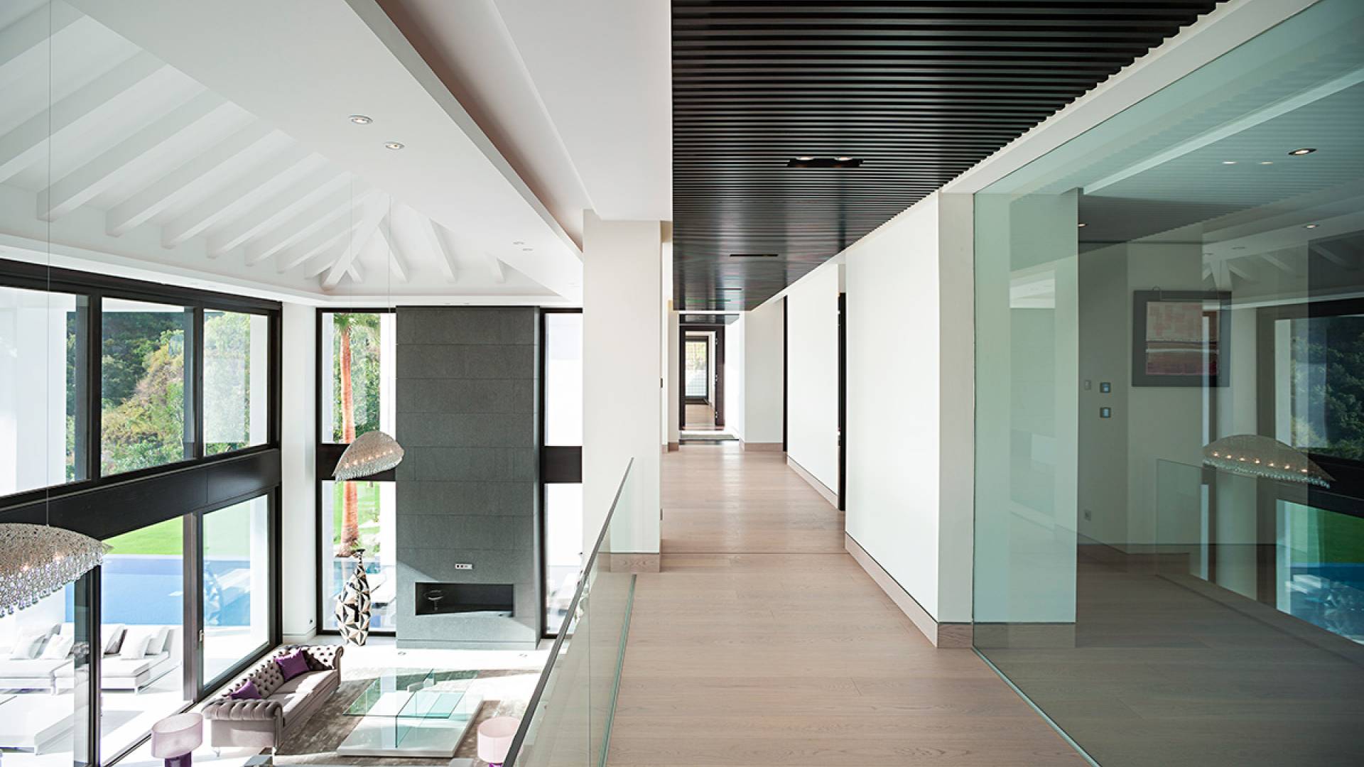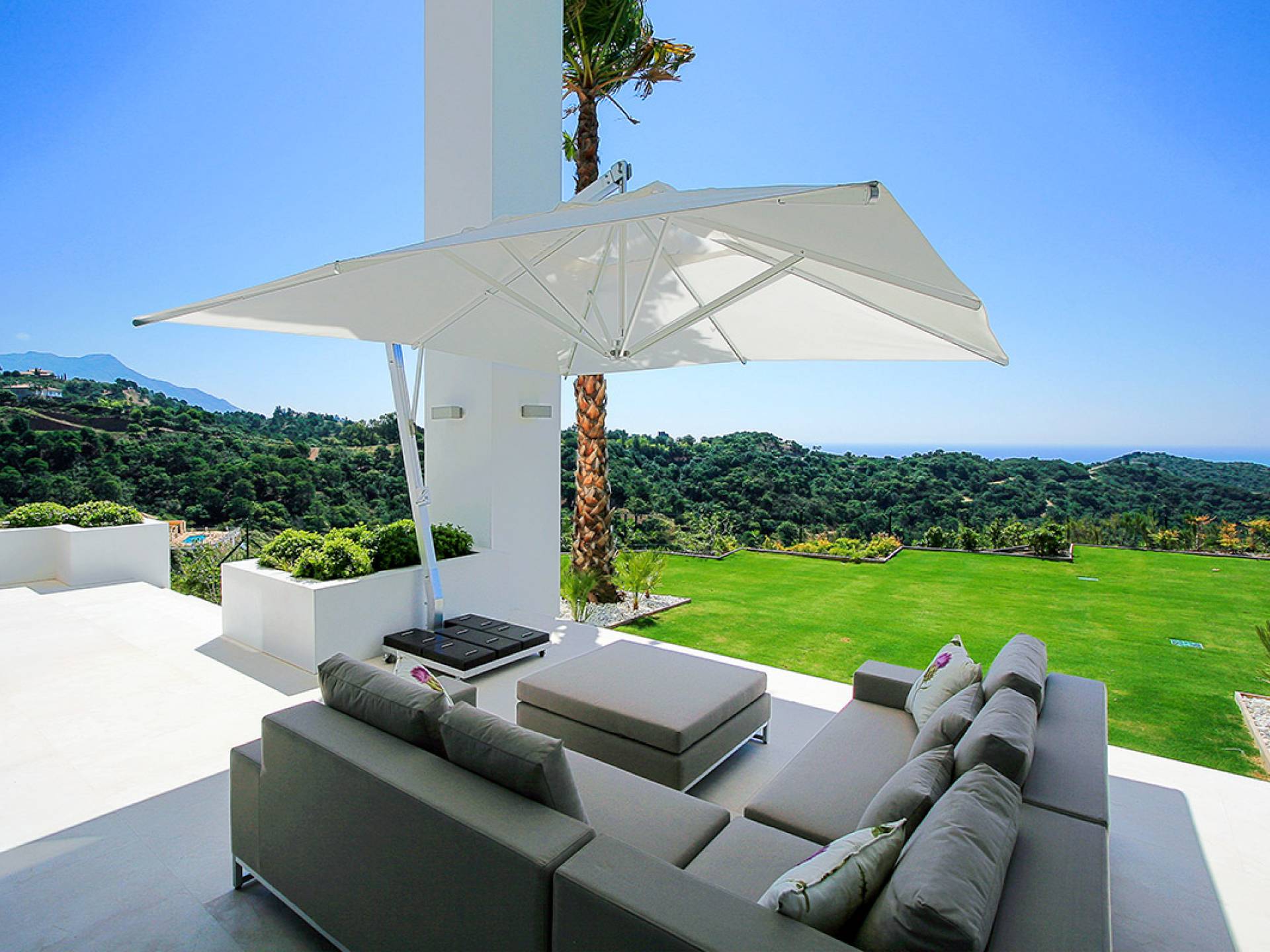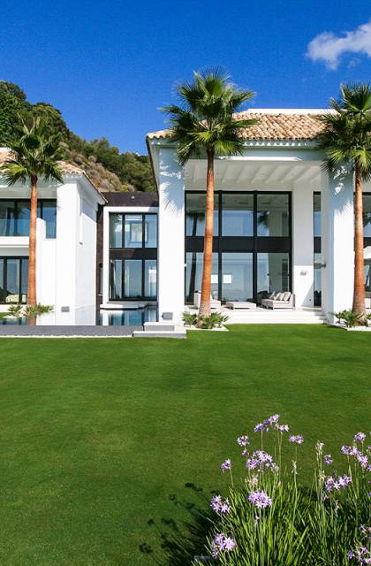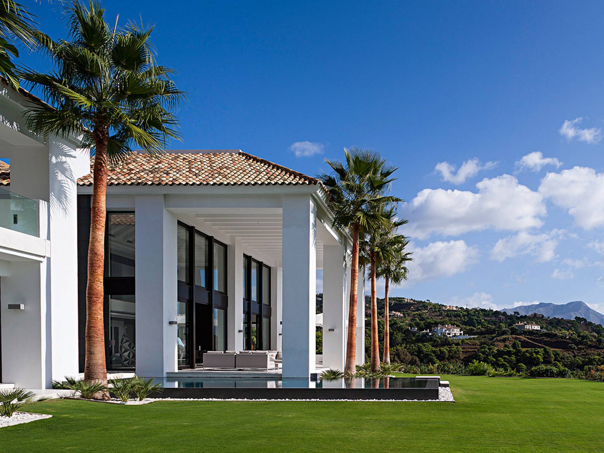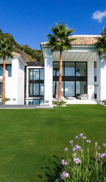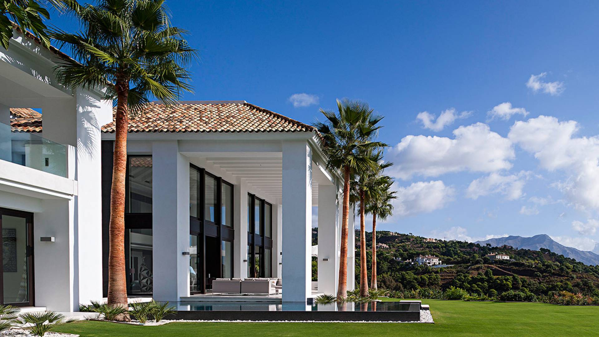 Villa Palo Alto Marbella è una villa di lusso in affitto con 5 camere da letto e piscina privata. Situata a "La Zagaleta", una delle residenze private più esclusive della Spagna, questa bellissima villa è l'epitome del lusso e della vita di alto livello. Suddivisa su tre piani e situata in un tranquillo parco privato, Villa Palo Alto Marbella offre agli ospiti un livello impareggiabile di comfort, spazio e luce. Le pareti bianche, le finestre a due piani bordate di metallo scuro e la cornice grigia piatta del camino conferiscono alla grande sala di Villa Palo Alto un'atmosfera moderna e all'aperto.