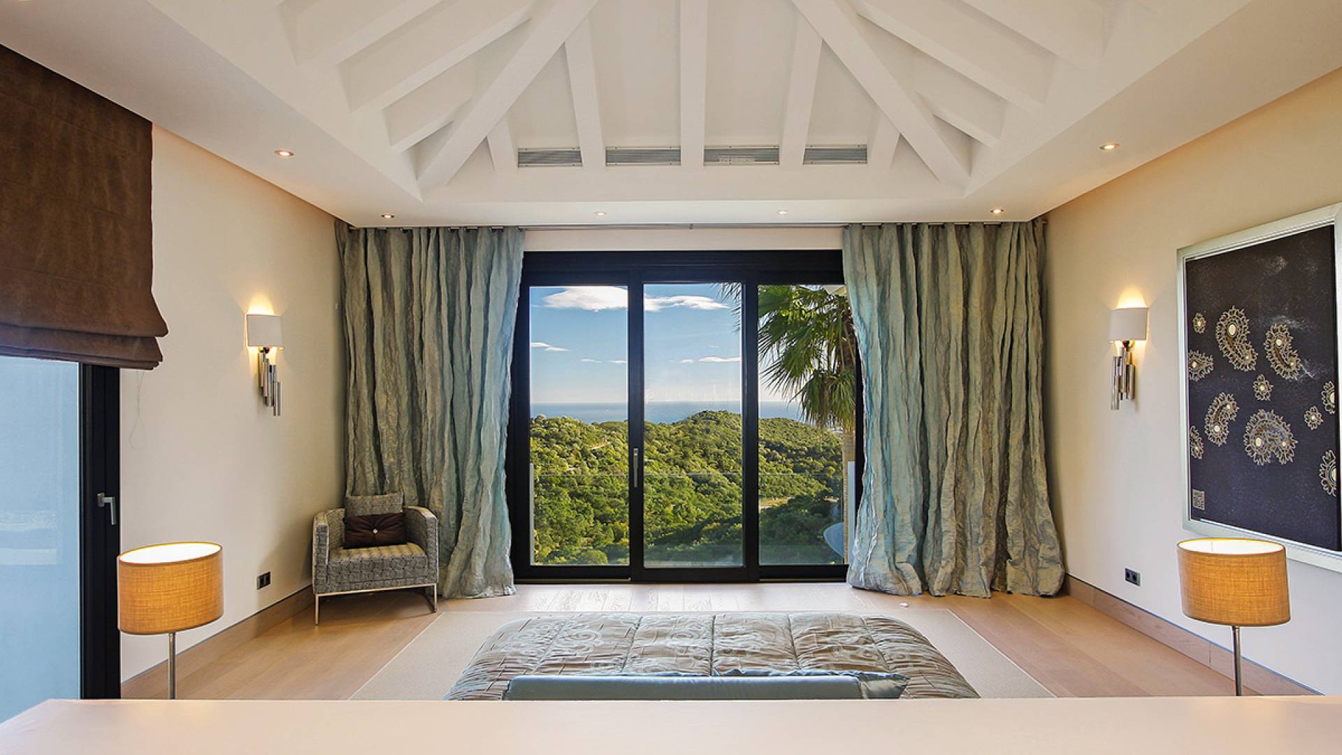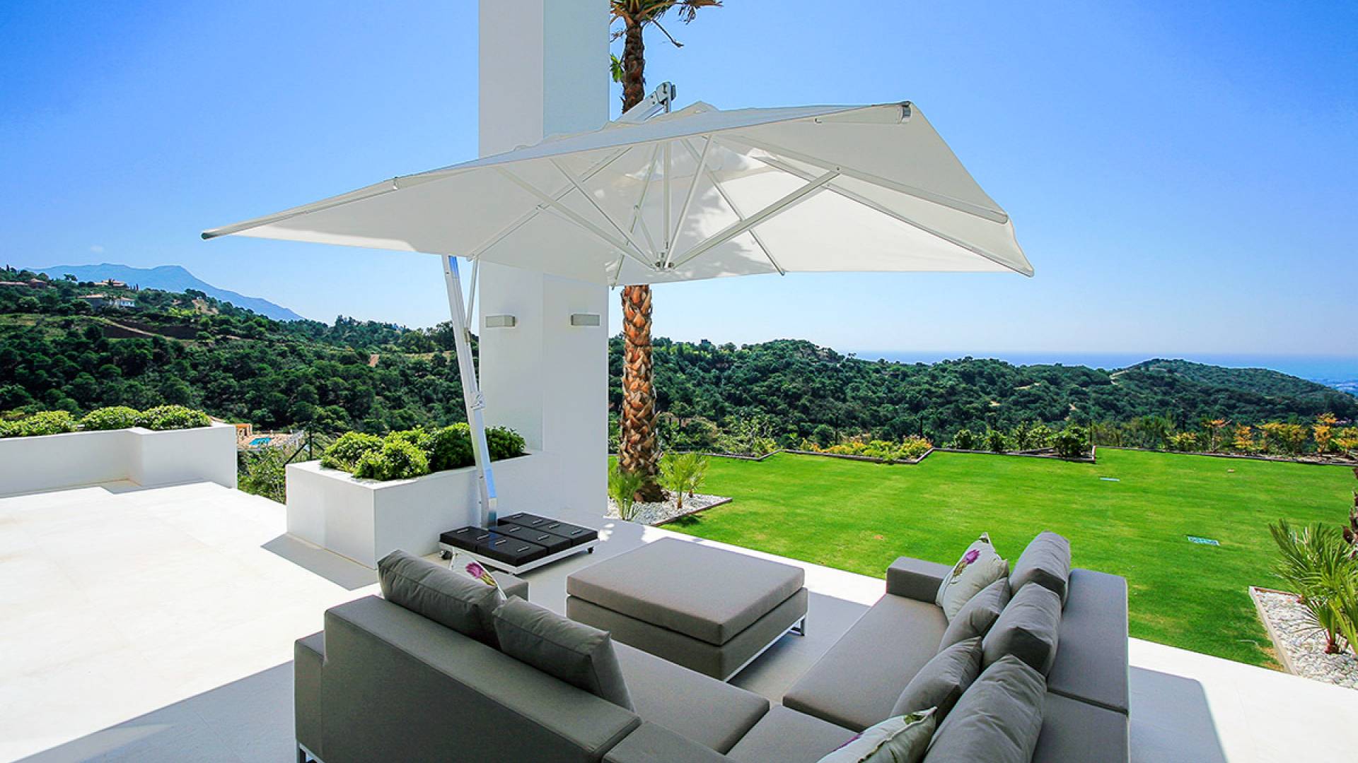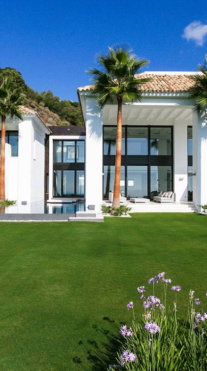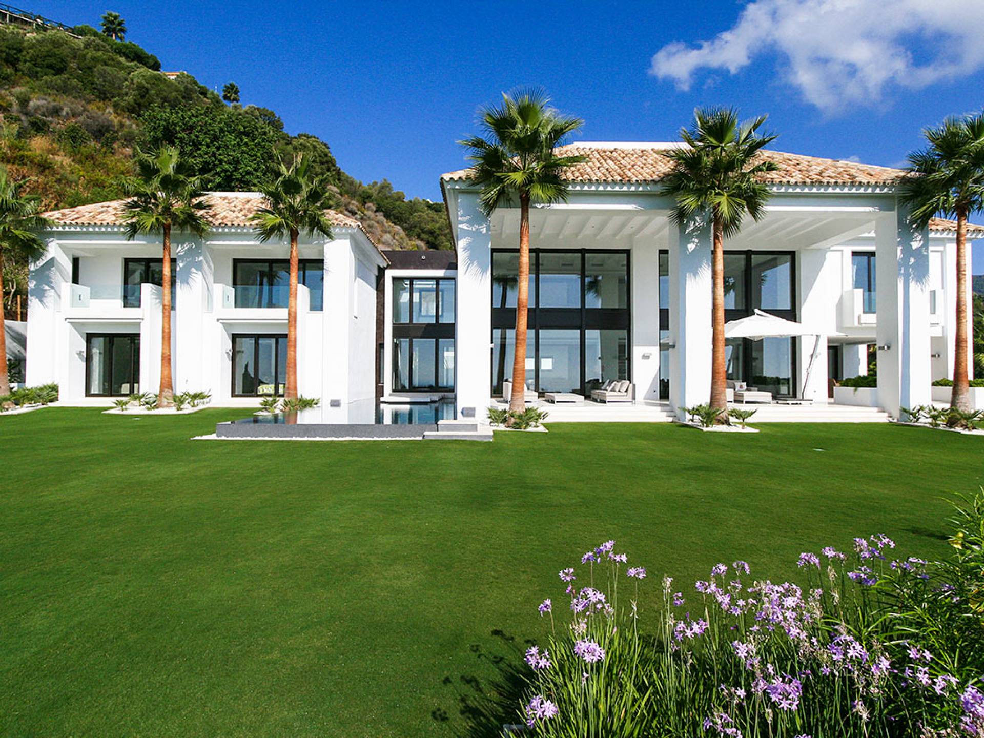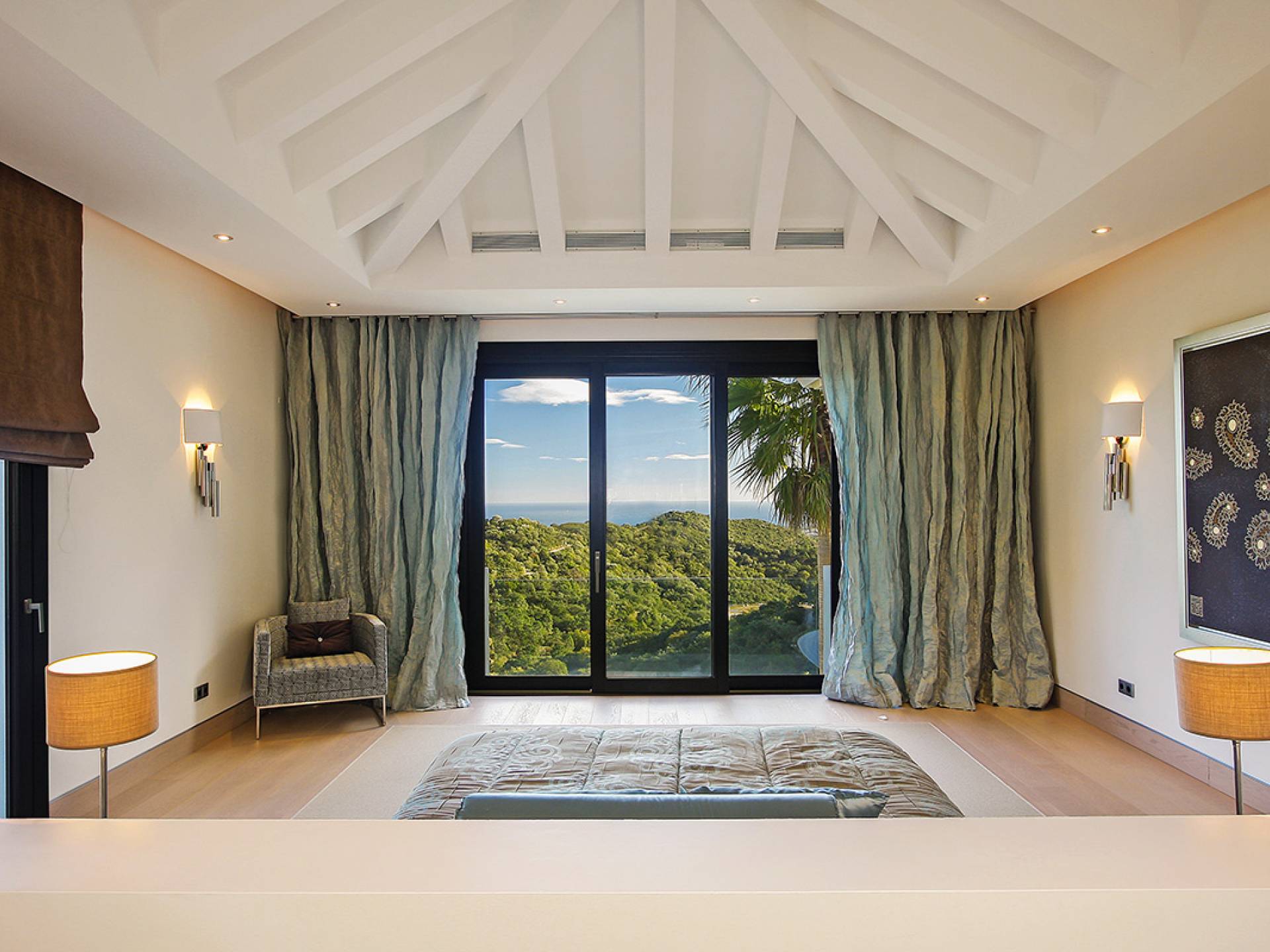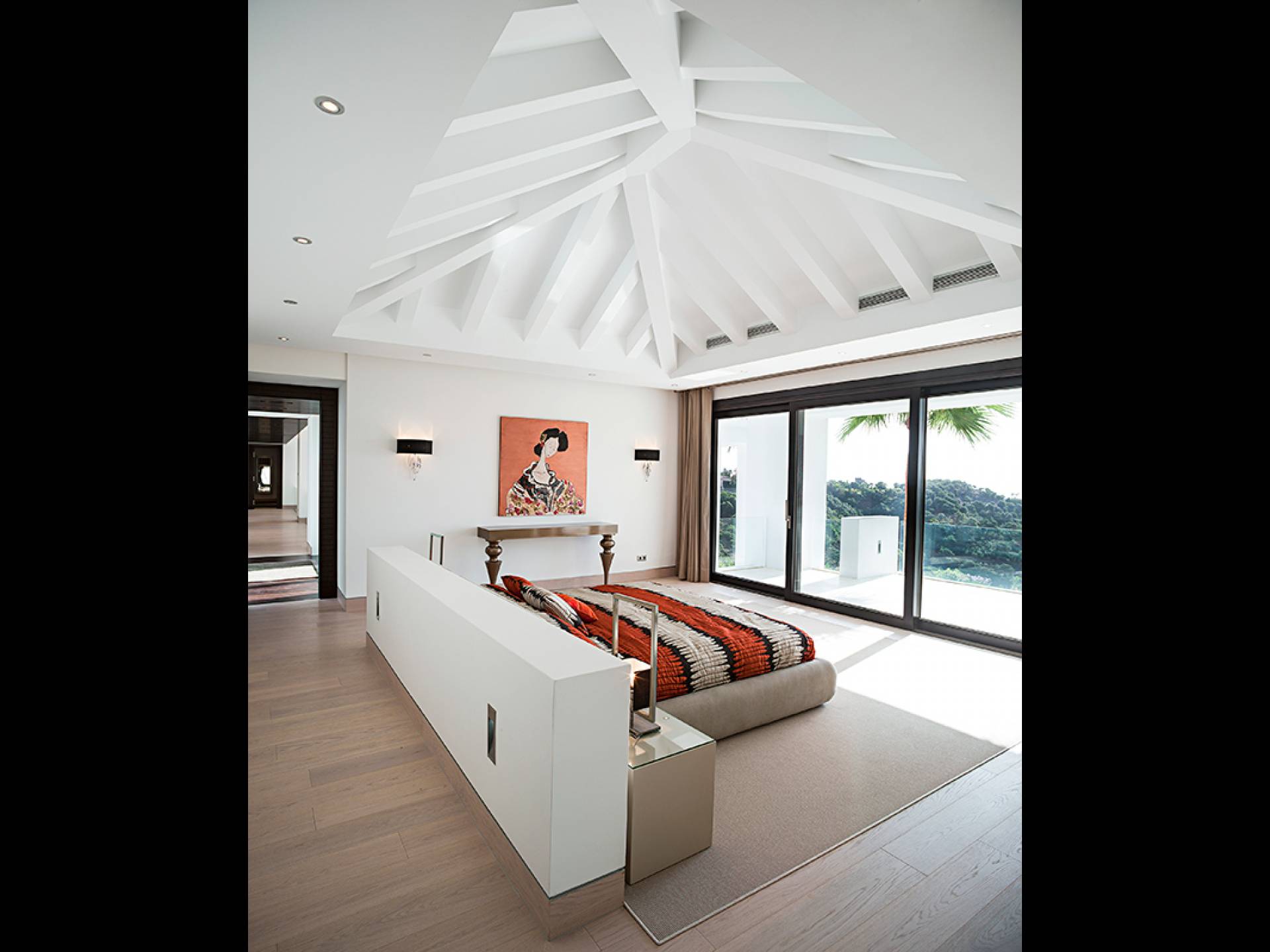Villa Palo Alto Marbella è una villa di lusso in affitto con 5 camere da letto e piscina privata. Situata a "La Zagaleta", una delle residenze private più esclusive della Spagna, questa bellissima villa è l'epitome del lusso e della vita di alto livello. Suddivisa su tre piani e situata in un tranquillo parco privato, Villa Palo Alto Marbella offre agli ospiti un livello impareggiabile di comfort, spazio e luce. Le pareti bianche, le finestre a due piani bordate di metallo scuro e la cornice grigia piatta del camino conferiscono alla grande sala di Villa Palo Alto un'atmosfera moderna e all'aperto.