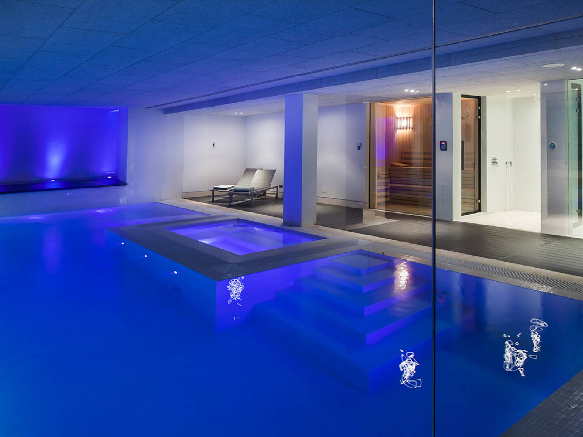 C'è un ascensore che collega i tre piani. Al piano seminterrato c'è una cantina e una palestra completamente attrezzata con vetrate che si affacciano sulla piscina coperta e vasca idromassaggio. Nella zona della piscina c'è un bagno con doccia, una sauna con 8 posti a sedere e un bagno turco separato con 8 posti a sedere. Su questo piano si trova anche il grande garage coperto che conduce agli alloggi del personale. Negli alloggi del personale c'è una cucina, un piccolo soggiorno, un letto matrimoniale e un bagno privato.