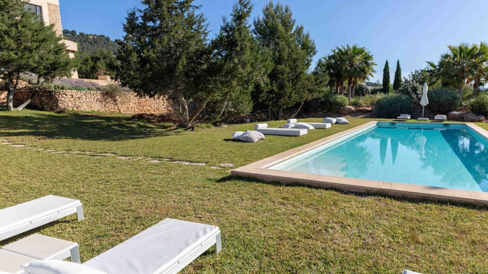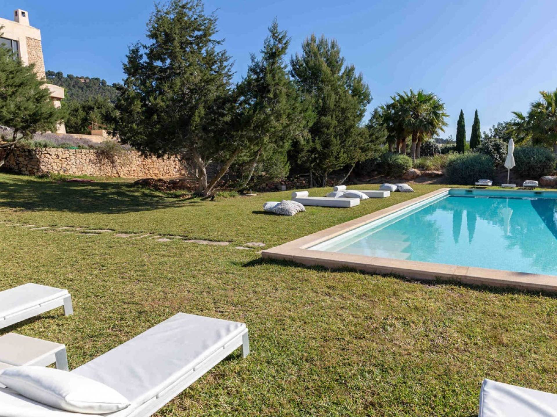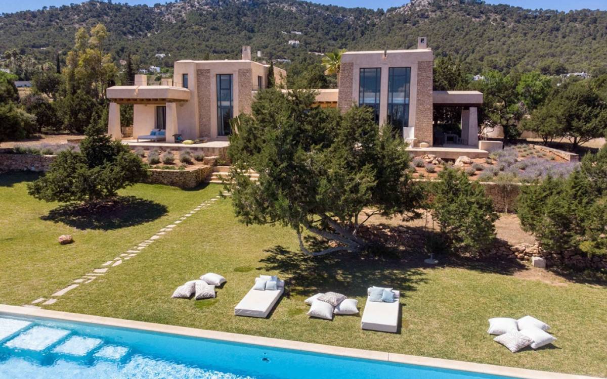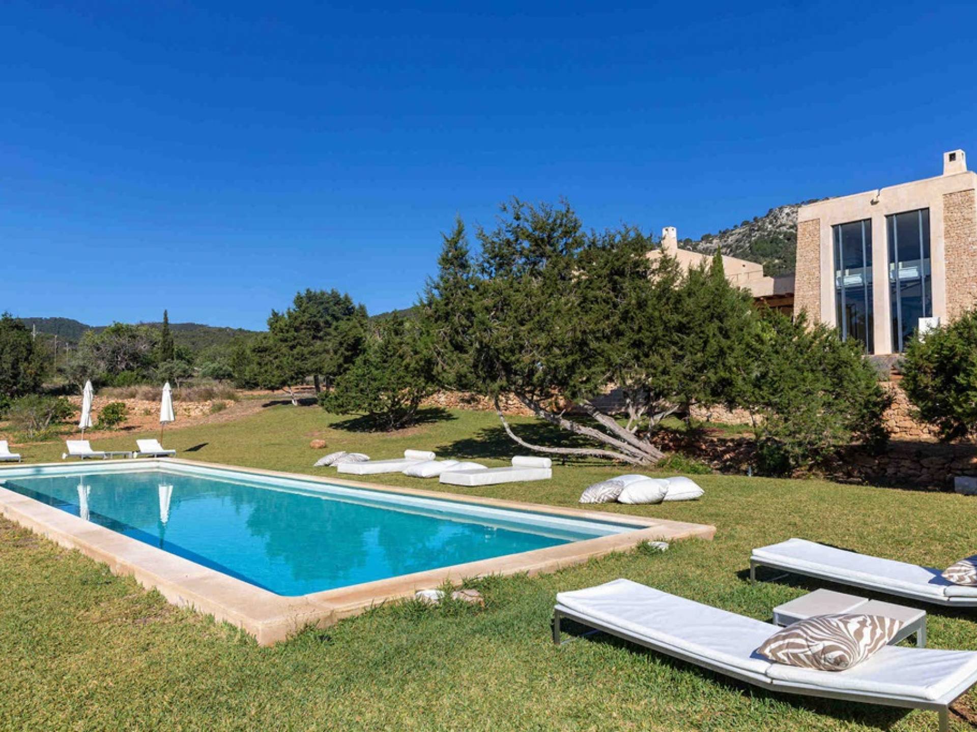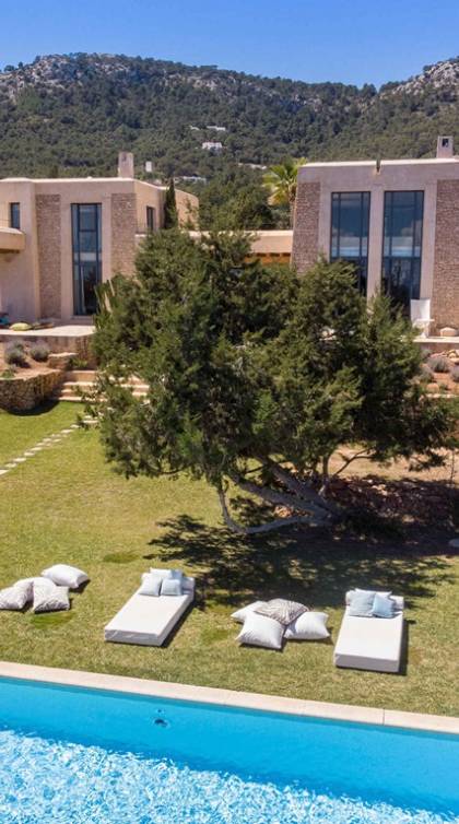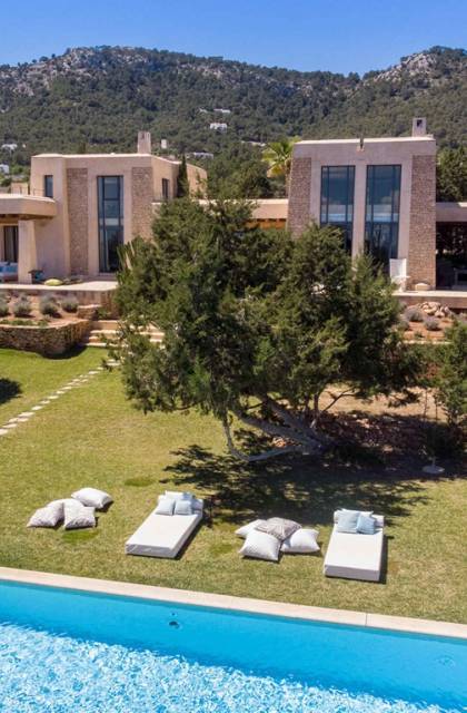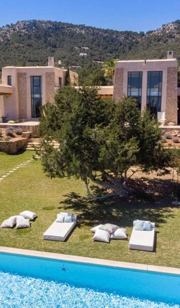 Ci sono ampie terrazze, prati, aree relax e terrazze per mangiare che circondano la splendida piscina. I lettini sono Gandia Blasco e i mobili sono di Philippe Starck. Situato a Es Cubells, vicino a San Jose, nel sud di Ibiza. Distanza da San José in auto: 7 minuti Distanza dalla città di Ibiza in auto: 15 minuti
