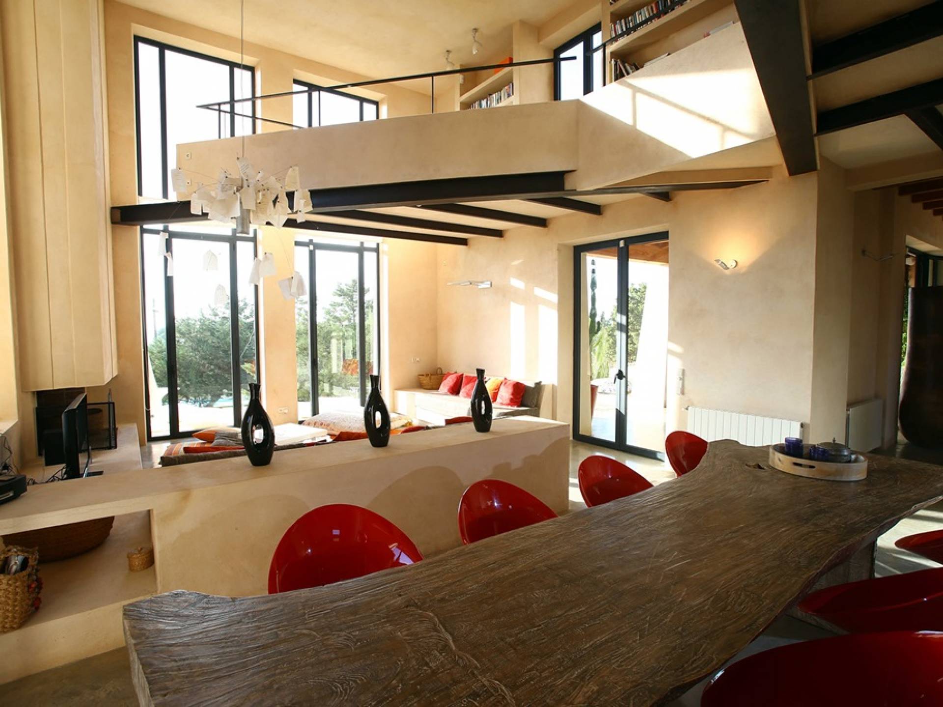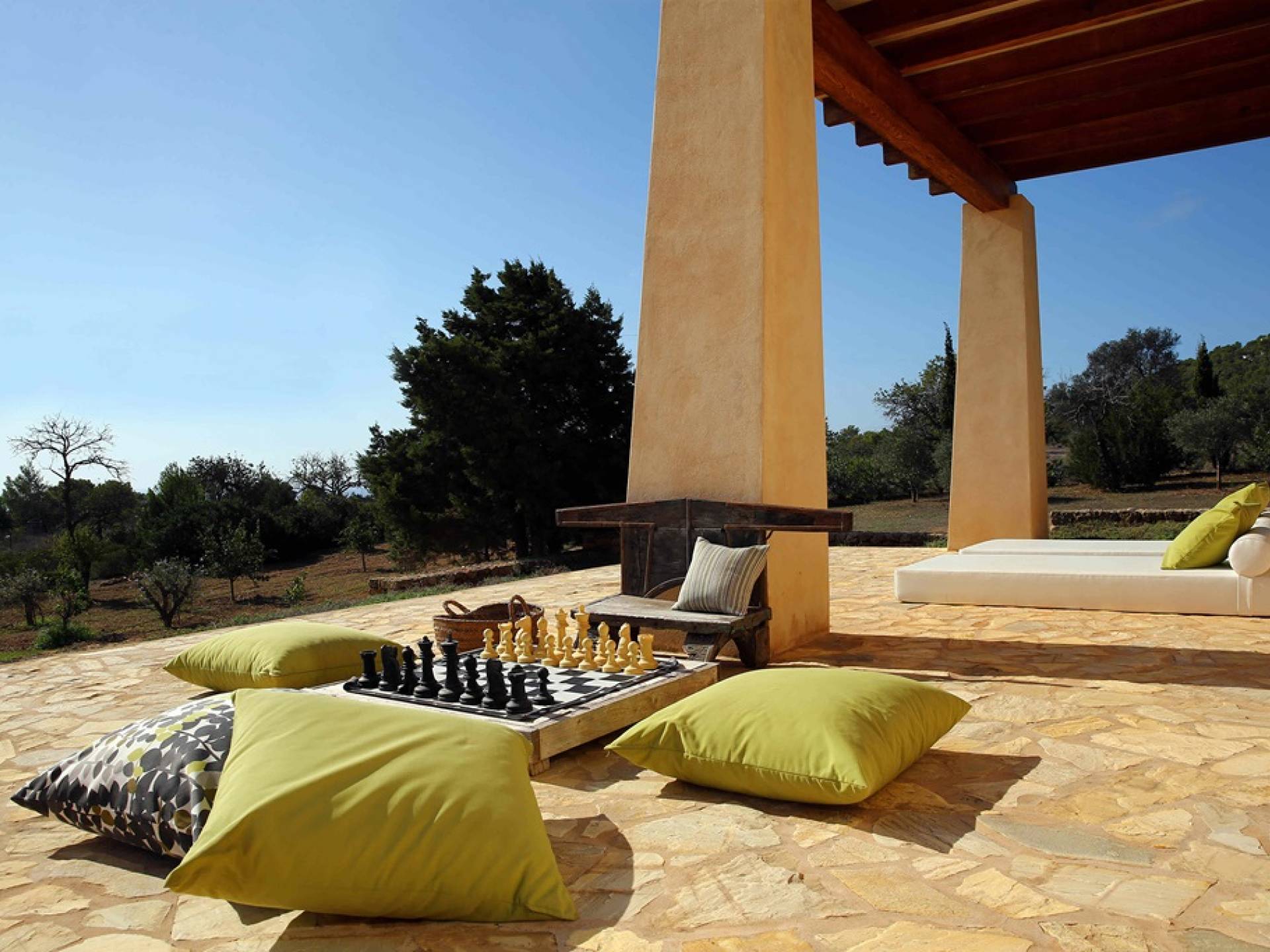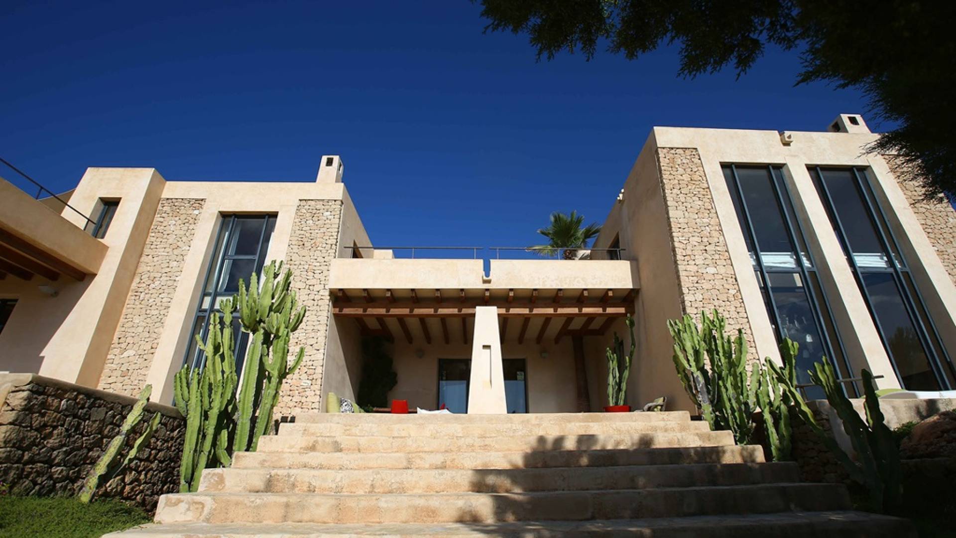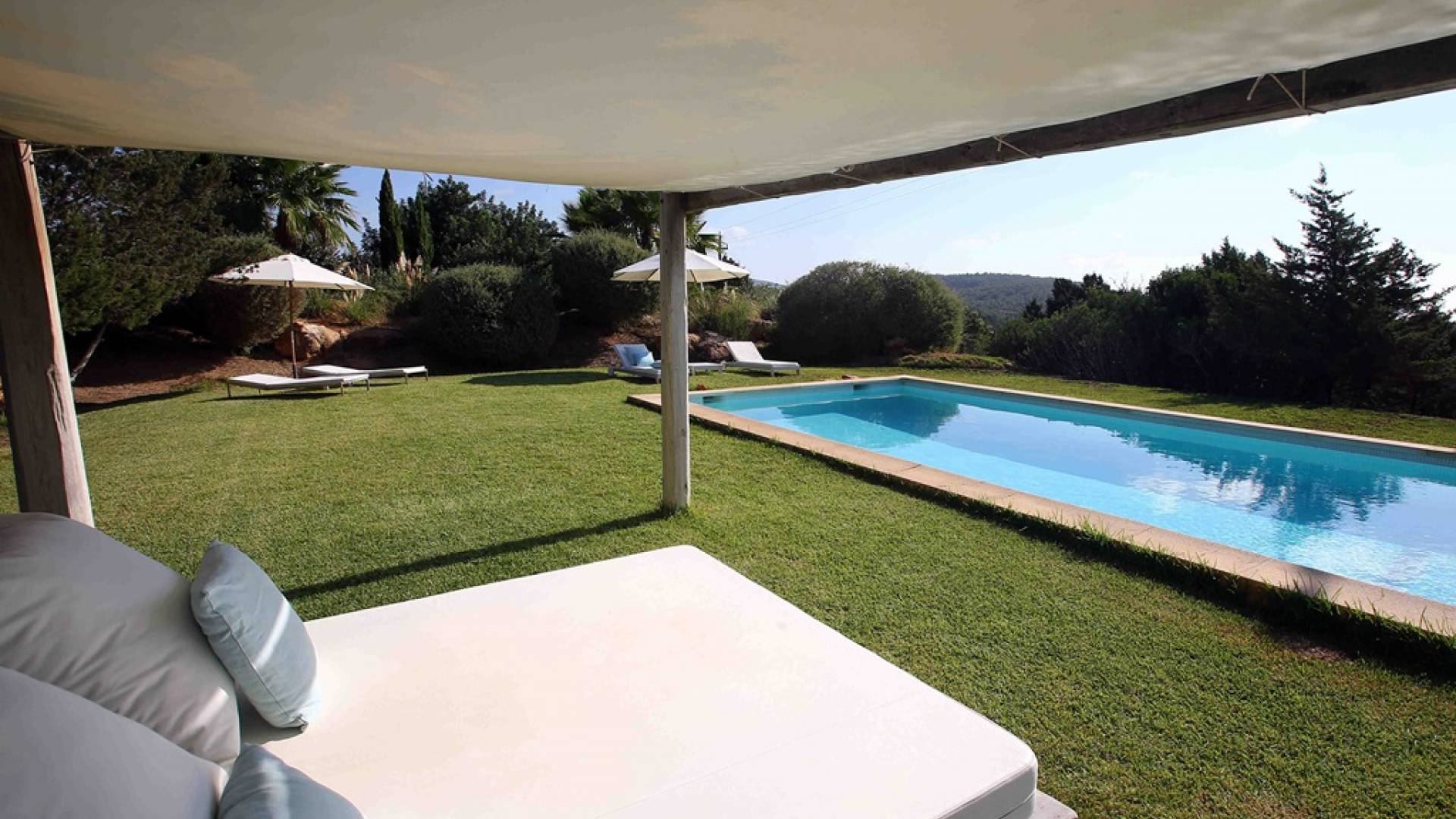 Ci sono ampie terrazze, prati, aree relax e terrazze per mangiare che circondano la splendida piscina. I lettini sono Gandia Blasco e i mobili sono di Philippe Starck. Situato a Es Cubells, vicino a San Jose, nel sud di Ibiza. Distanza da San José in auto: 7 minuti Distanza dalla città di Ibiza in auto: 15 minuti