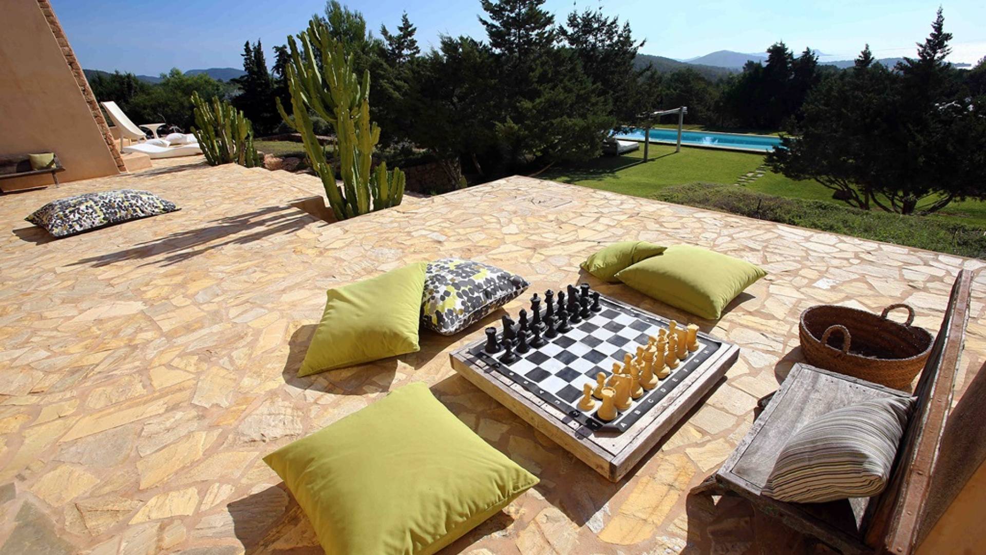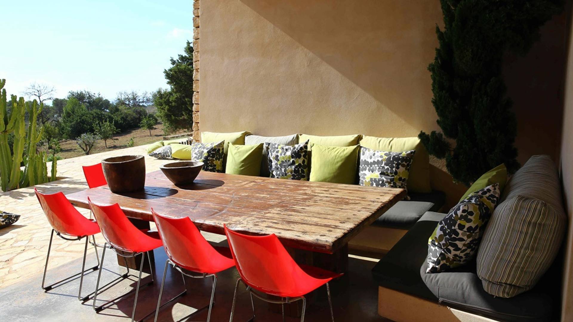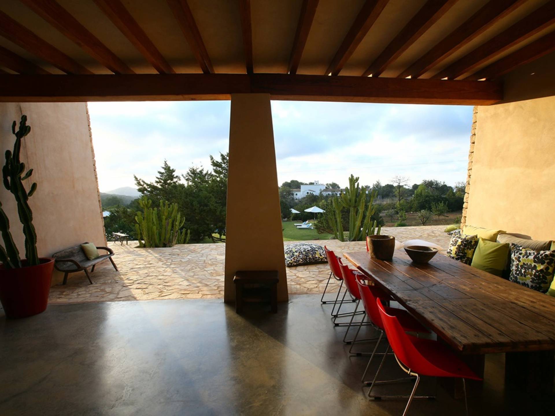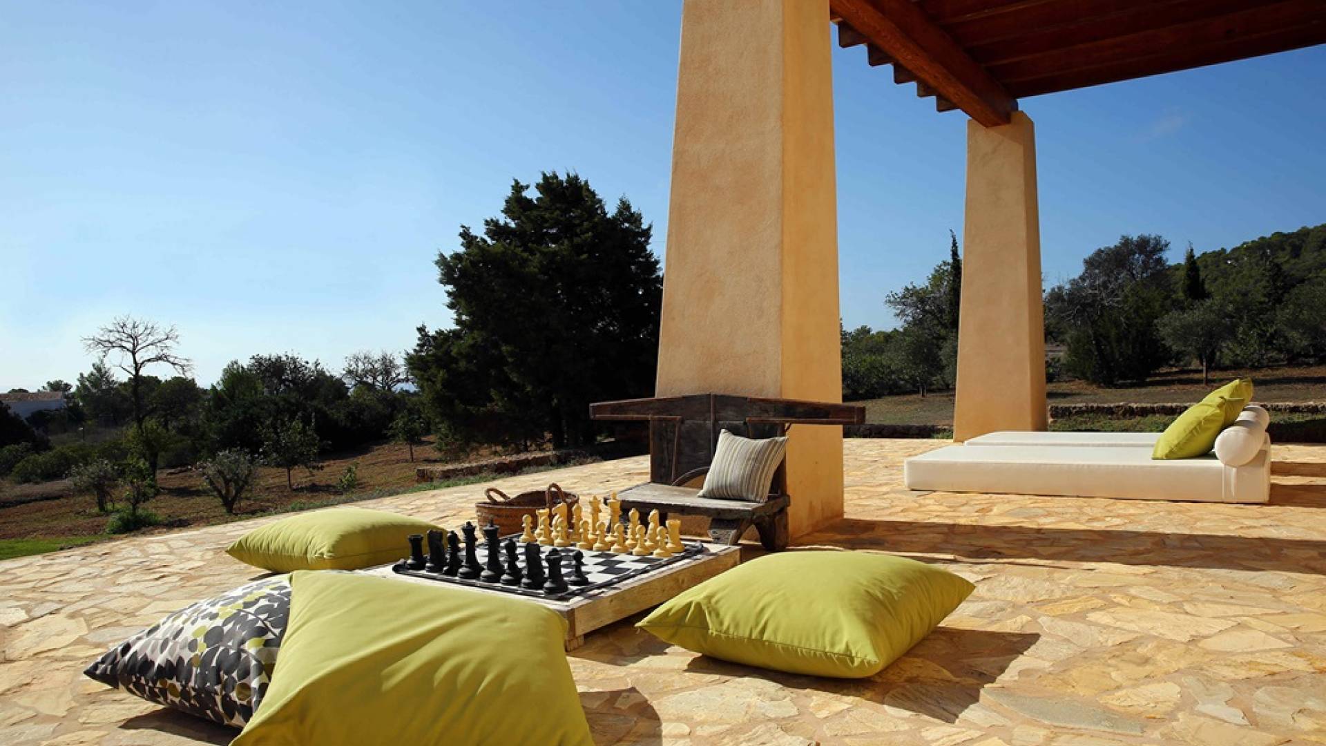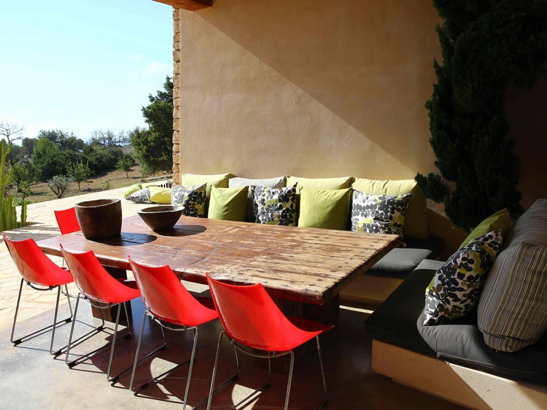 Ci sono ampie terrazze, prati, aree relax e terrazze per mangiare che circondano la splendida piscina. I lettini sono Gandia Blasco e i mobili sono di Philippe Starck. Situato a Es Cubells, vicino a San Jose, nel sud di Ibiza. Distanza da San José in auto: 7 minuti Distanza dalla città di Ibiza in auto: 15 minuti