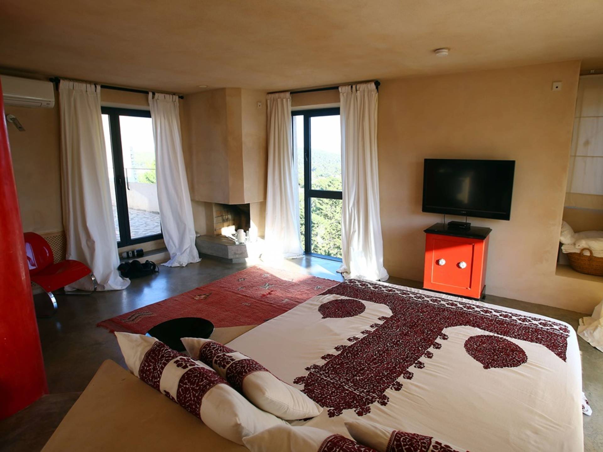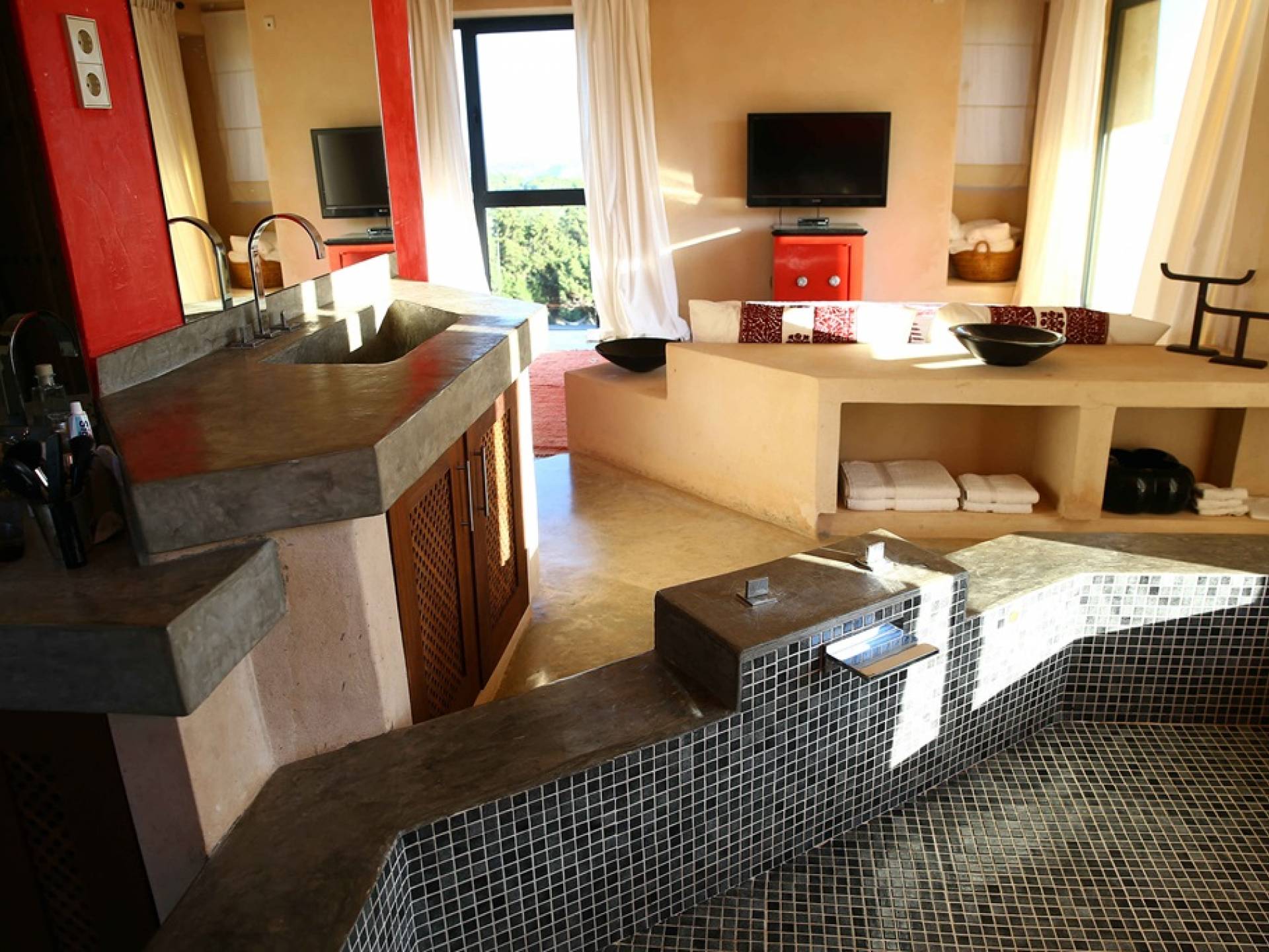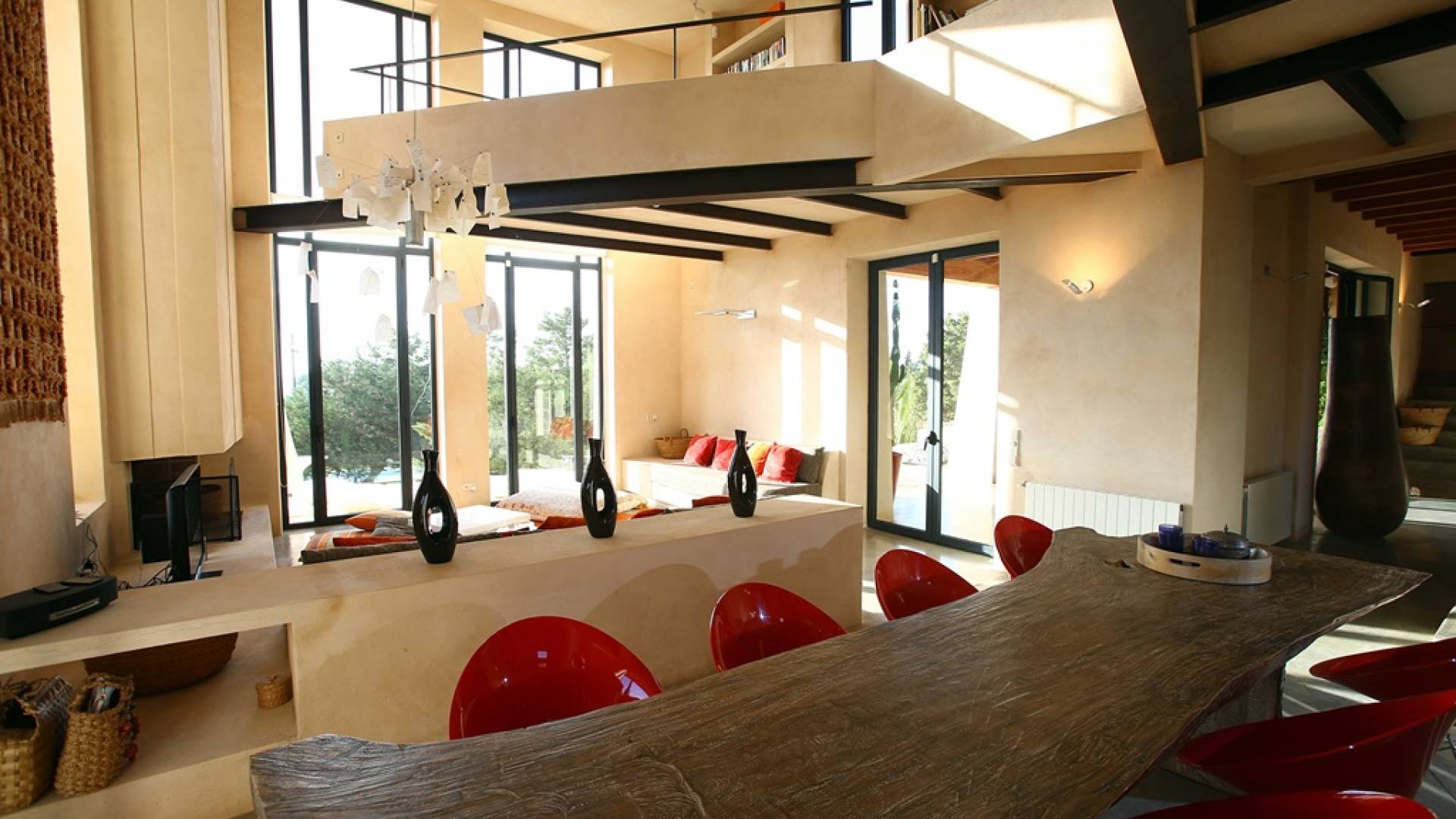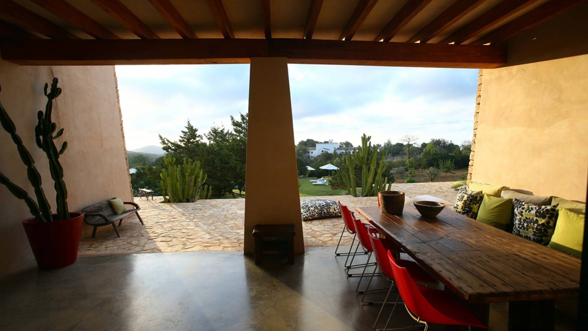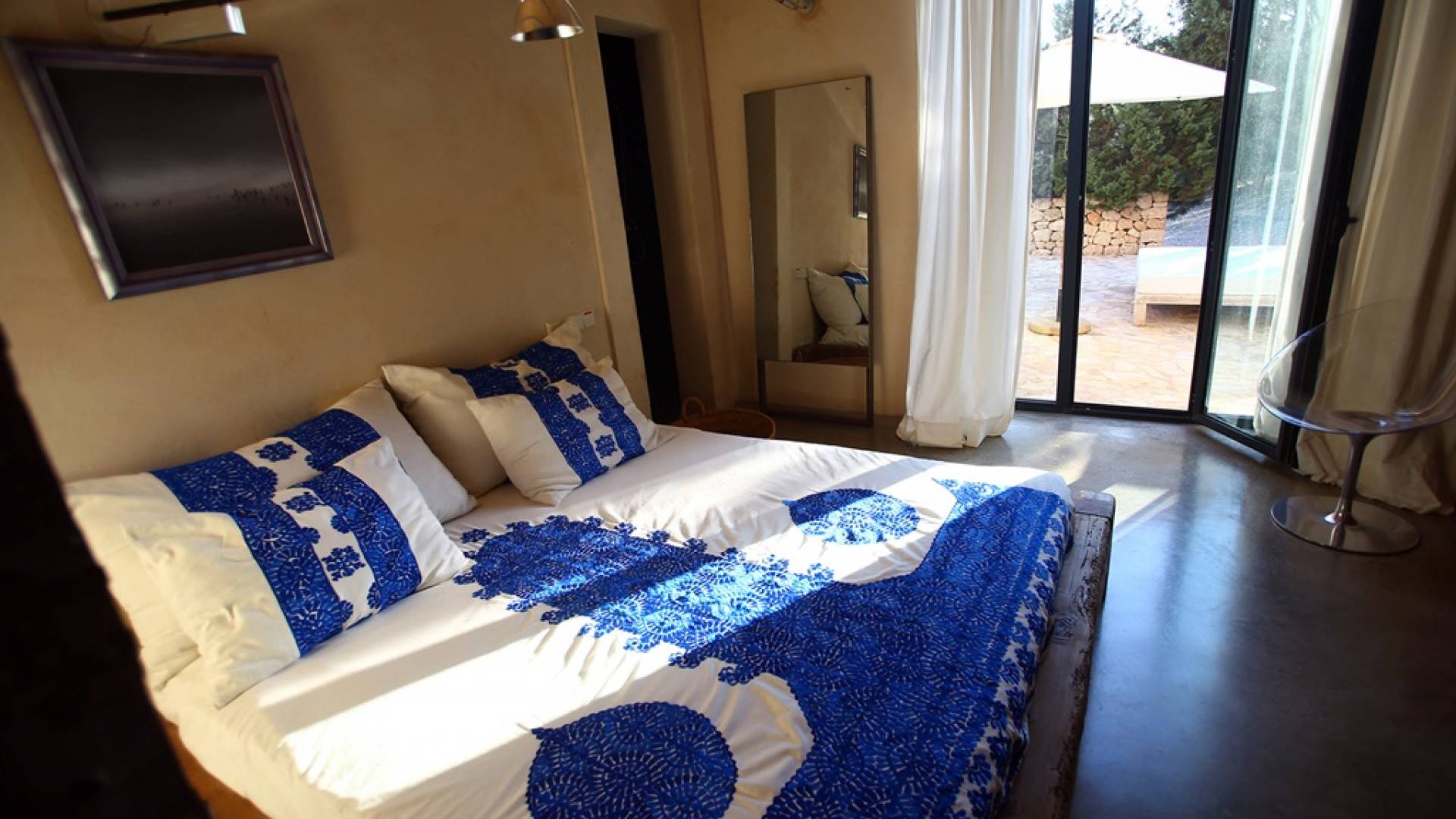 Ci sono ampie terrazze, prati, aree relax e terrazze per mangiare che circondano la splendida piscina. I lettini sono Gandia Blasco e i mobili sono di Philippe Starck. Situato a Es Cubells, vicino a San Jose, nel sud di Ibiza. Distanza da San José in auto: 7 minuti Distanza dalla città di Ibiza in auto: 15 minuti