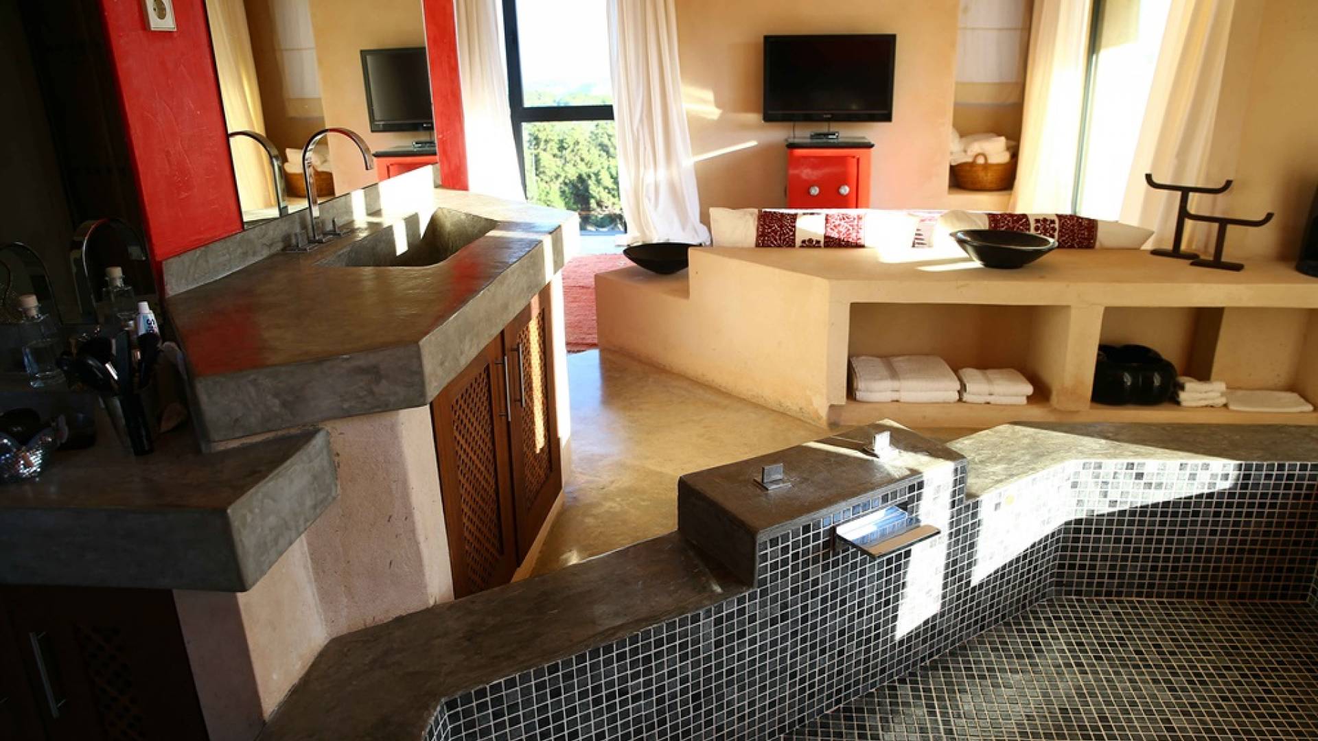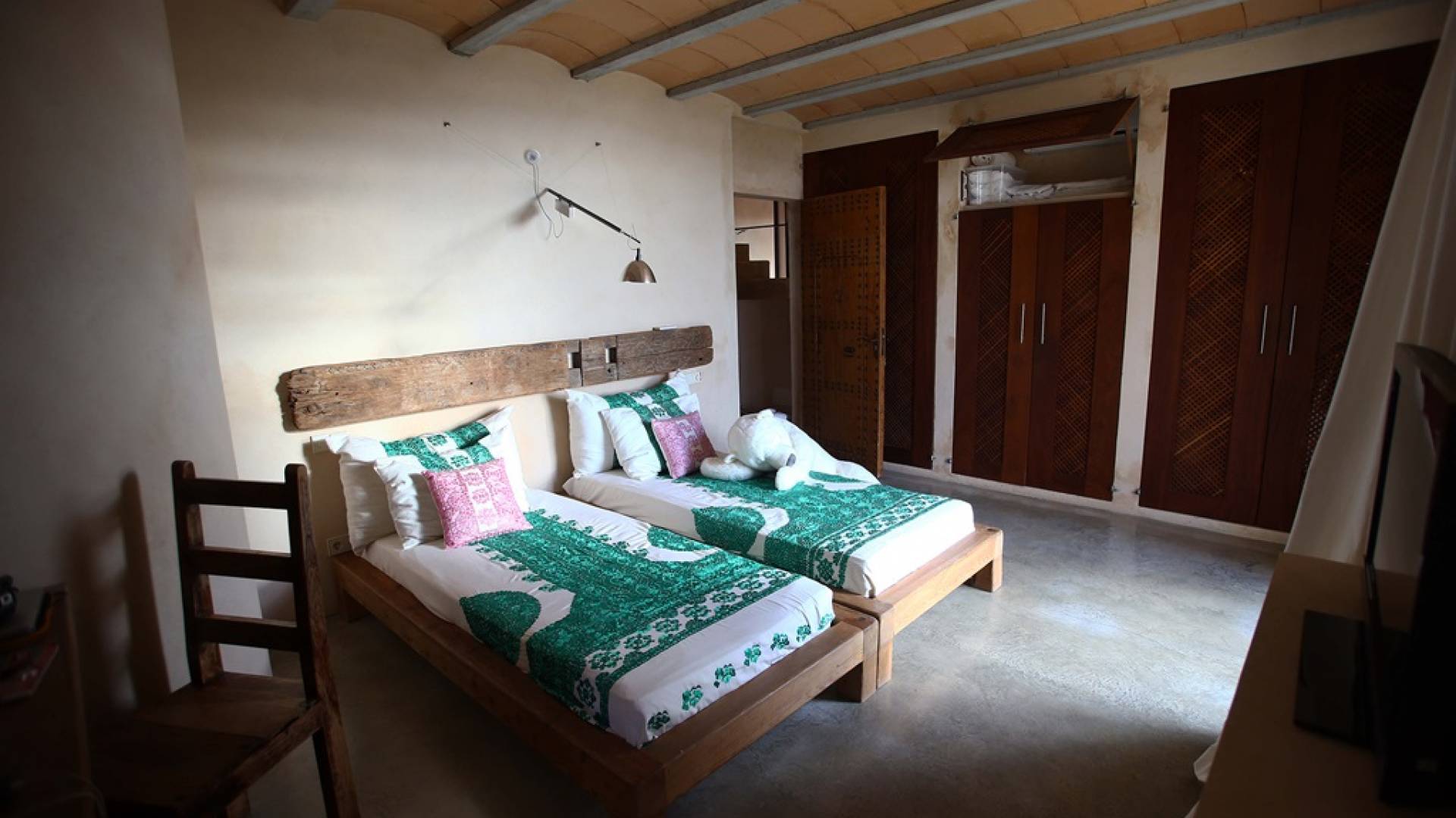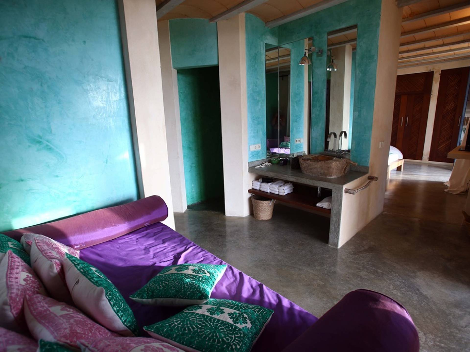 All'interno della villa, c'è un'ampia zona giorno a pianta aperta con soffitti a doppia altezza e finestre dal pavimento al soffitto. L'ampia cucina a pianta aperta completamente attrezzata comprende tutti gli elettrodomestici moderni e un soppalco vanta una tenda in stile marocchino con una zona salotto bassa. Tutte le camere sono elegantemente arredate con splendidi arredi morbidi e sono dotate di aria condizionata.