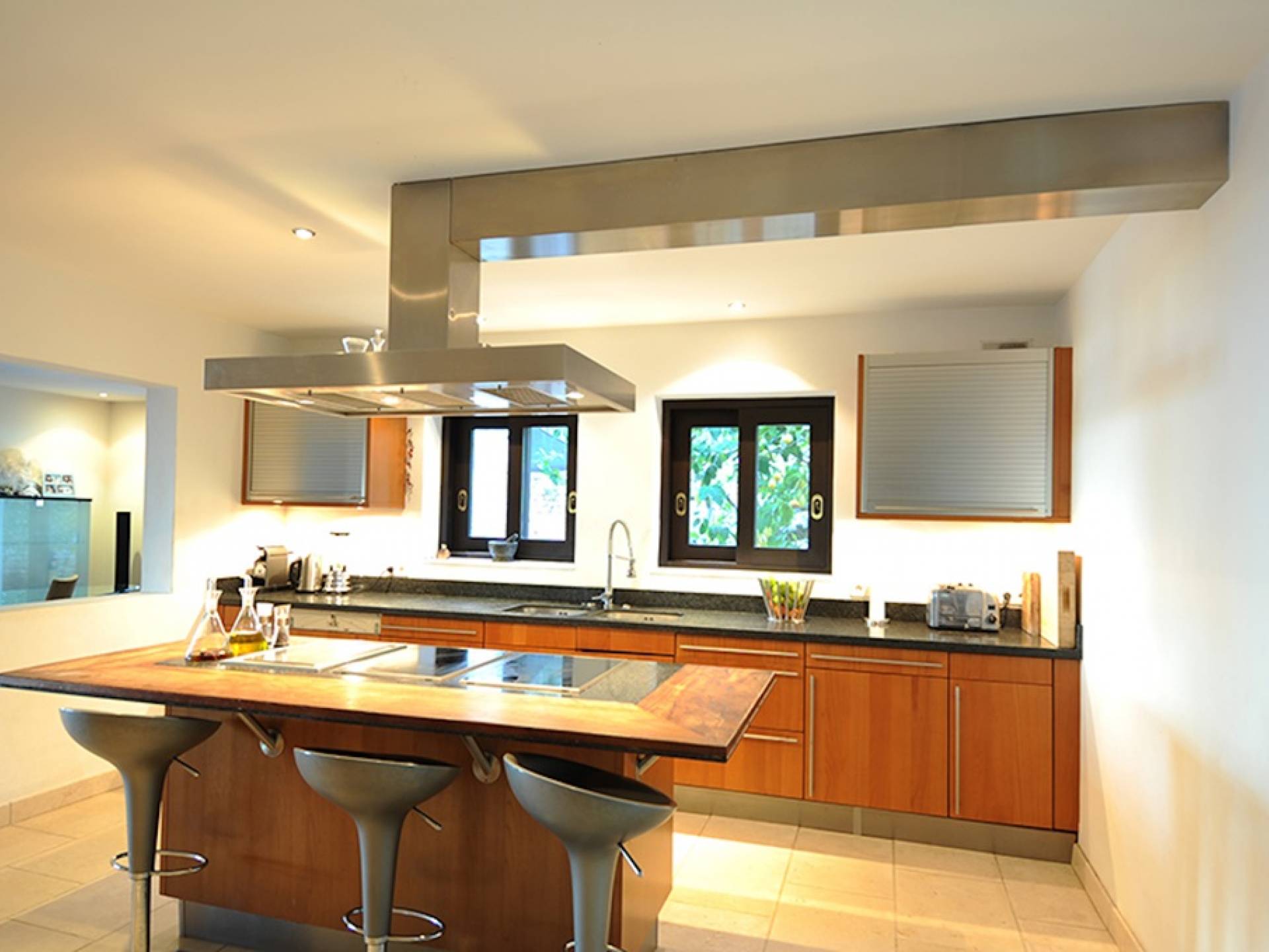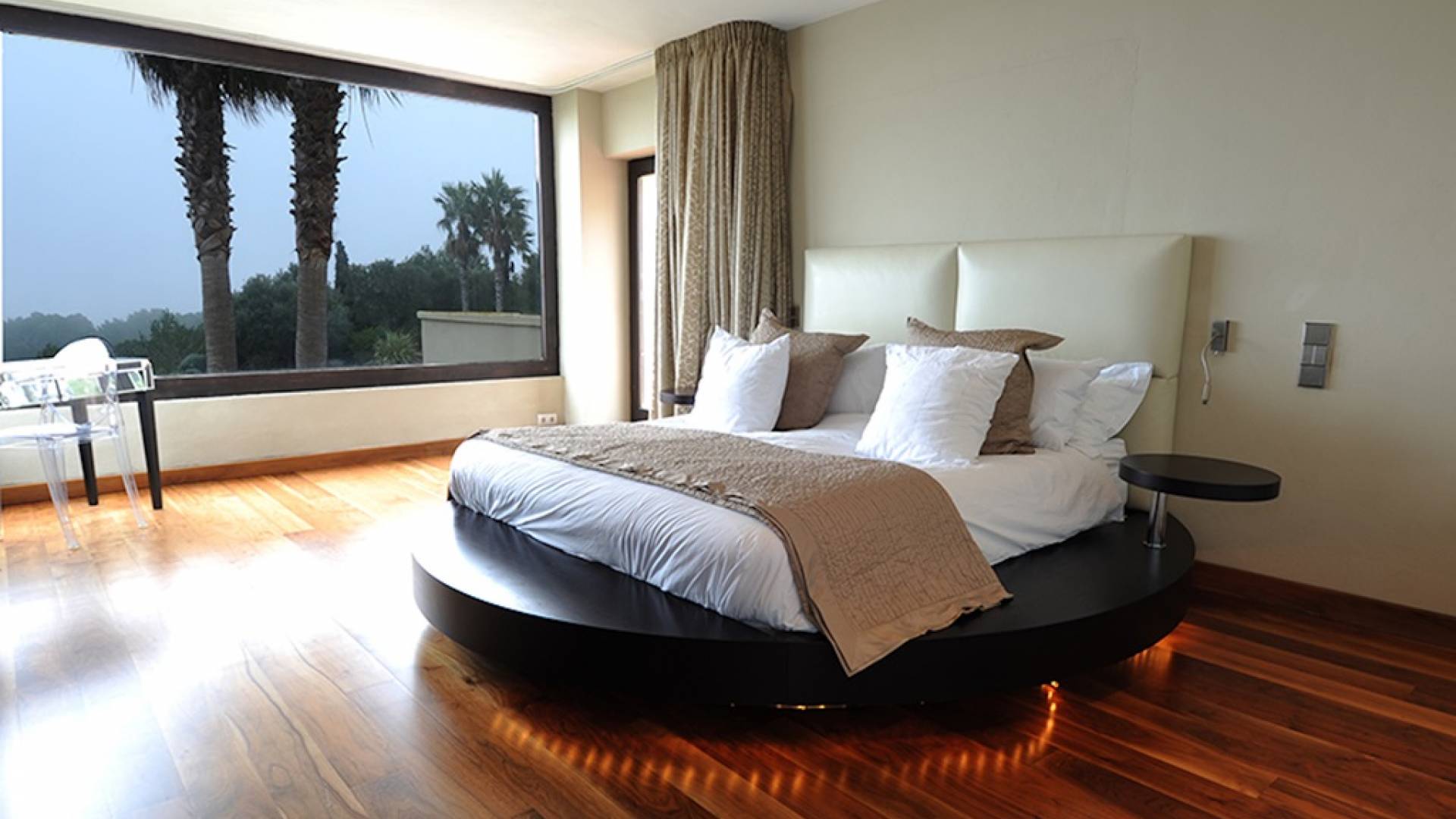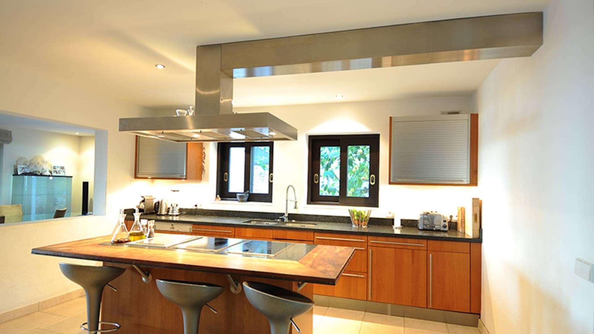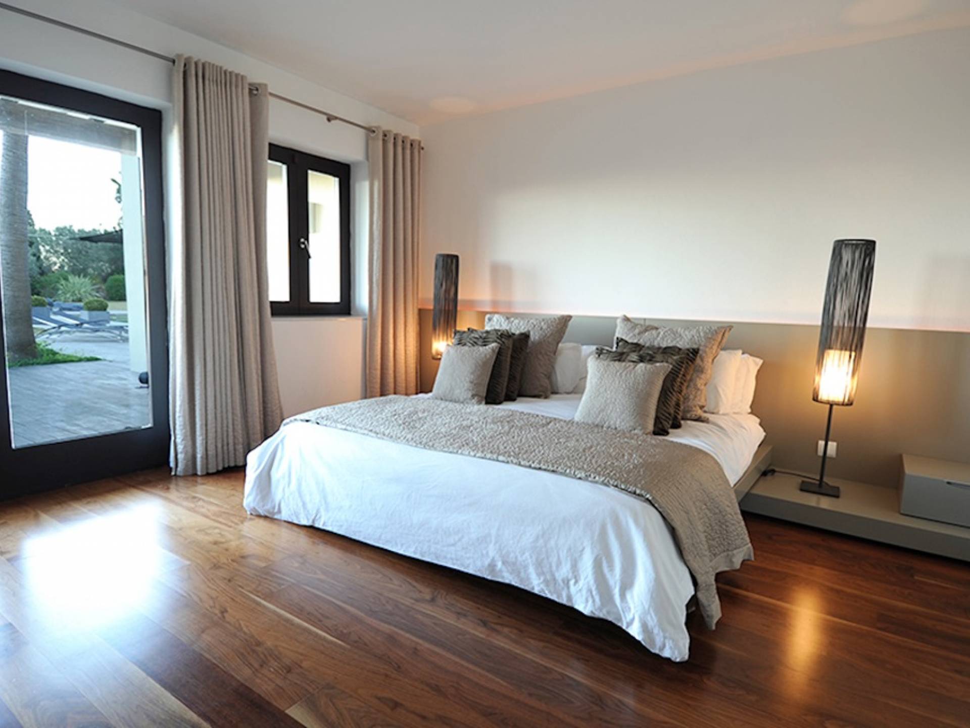 Questa villa ha uno stile raffinato in tutto il suo vasto spazio abitativo, accompagnato da pavimenti in noce nera e arredi neutri nei toni del crema e del tortora. Al piano terra c'è un ampio salone a pianta aperta, zona pranzo e cucina. Nel soggiorno ci sono grandi divani lussuosi, un tavolino da caffè, TV satellitare, TV al plasma, DVD, impianto audio Bang e Olufsen. La grande cucina completamente attrezzata con bar per la colazione ha un frigorifero americano, piano cottura Gaggeneau, lavastoviglie Miele, grande forno, macchina da caffè Krups, spremiagrumi, spremiagrumi, stoviglie Royal Stafford e posate Robert Welch. Il ripostiglio è dotato di un frigo vino extra, lavatrice e asciugatrice. Tutte le aree hanno accesso al WiFi e l'intera proprietà è protetta da un sistema di allarme con telecamere a circuito chiuso collegato a una società di sicurezza 24 ore su 24. C'è anche un bagno per gli ospiti.