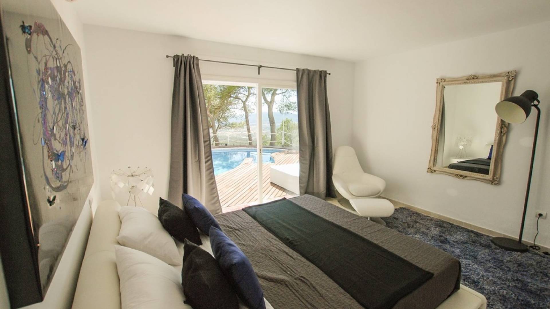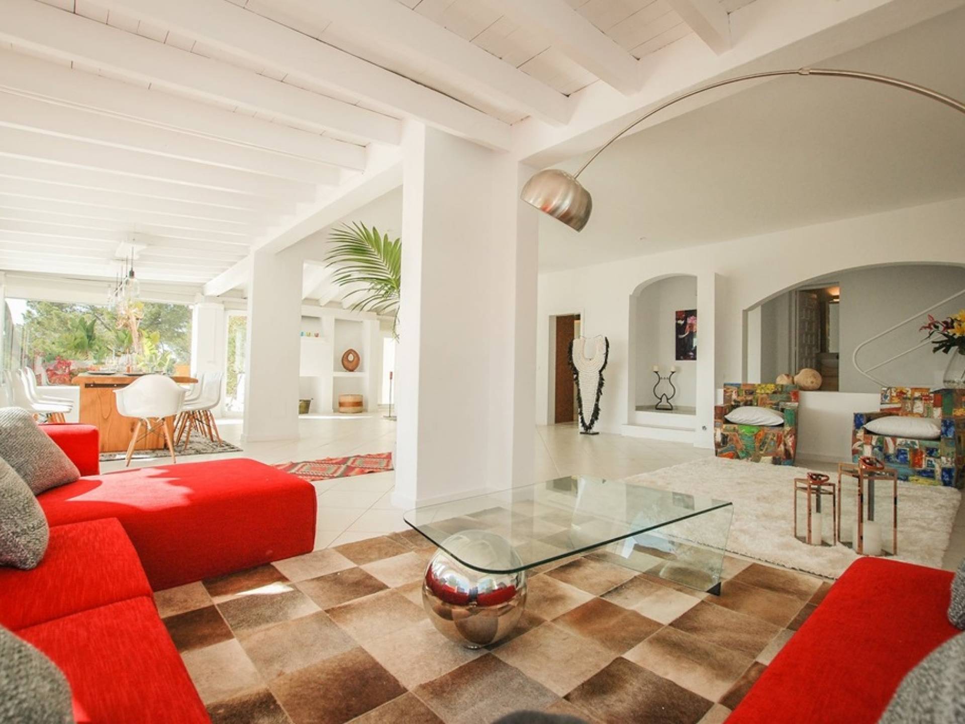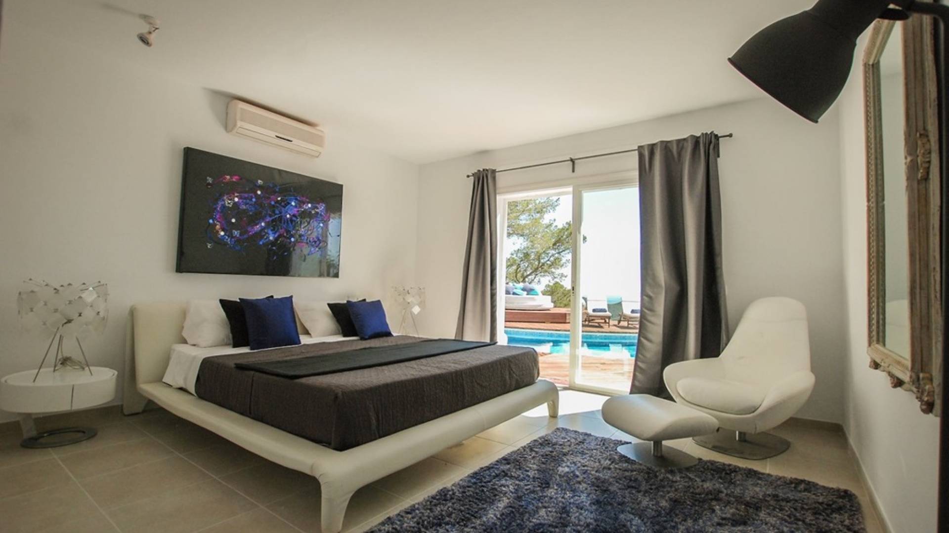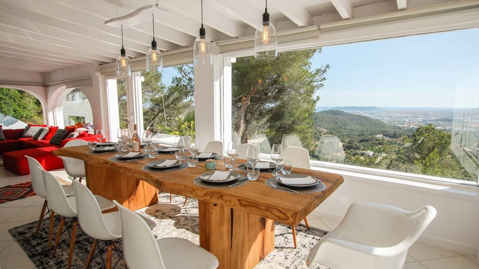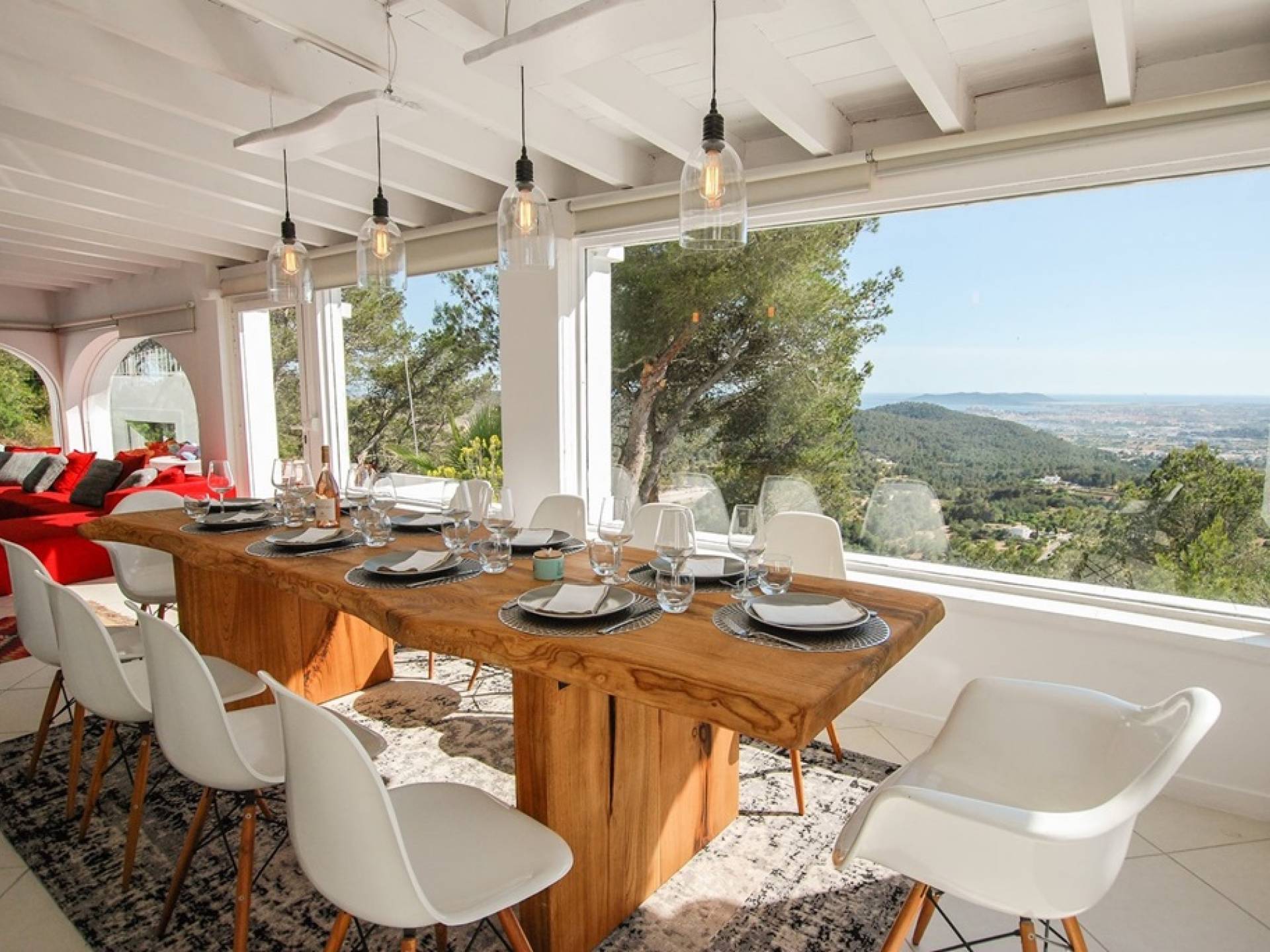 C'è un ampio soggiorno a pianta aperta arredato con gusto con generosi posti a sedere, che beneficia di grandi finestre che si affacciano sulla splendida vista della città di Ibiza e della costa dalla spiaggia di Talamanca fino a Salinas. La zona pranzo può ospitare comodamente 10 persone e vanta anche una vista fantastica e la moderna cucina completamente attrezzata è dotata di tutti gli elettrodomestici moderni. L'intera villa è dotata di aria condizionata, WiFi e TV satellitare.