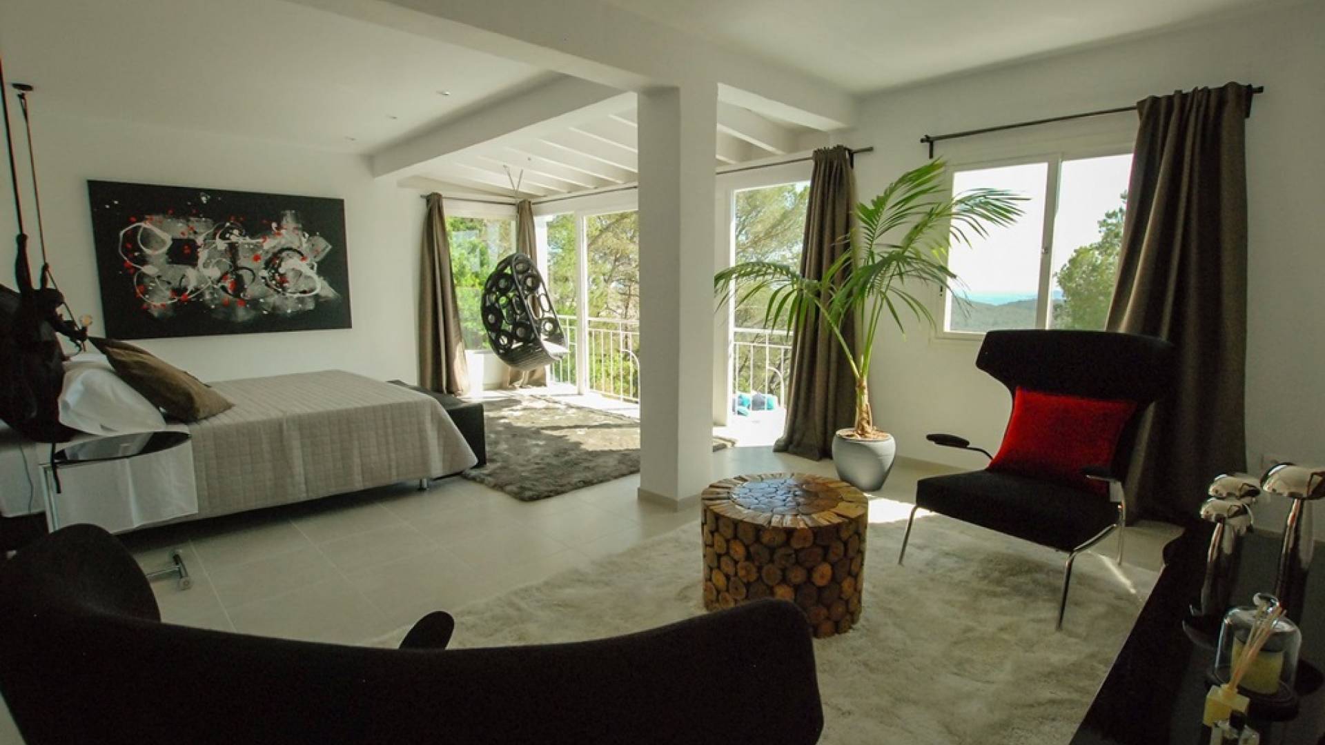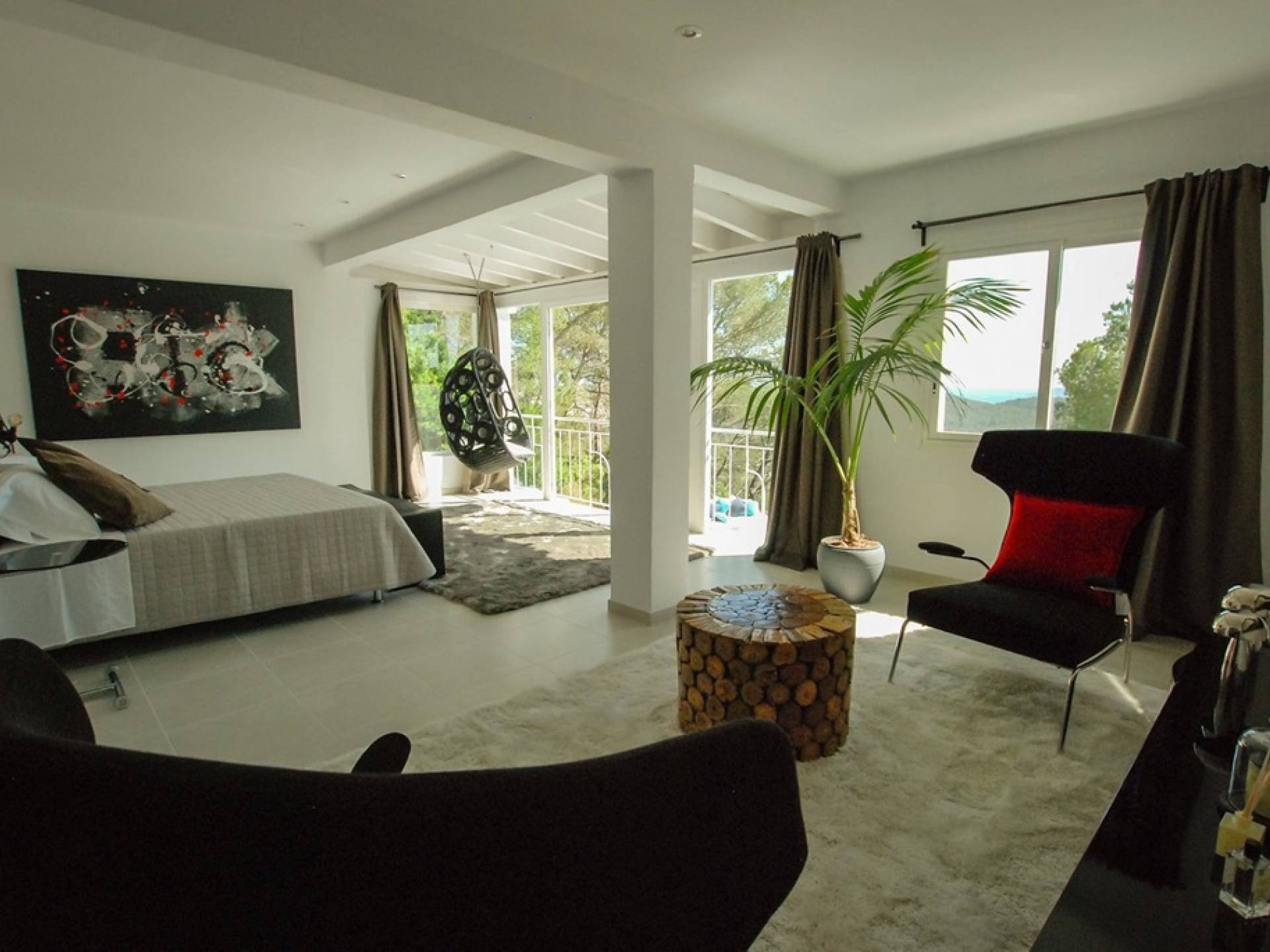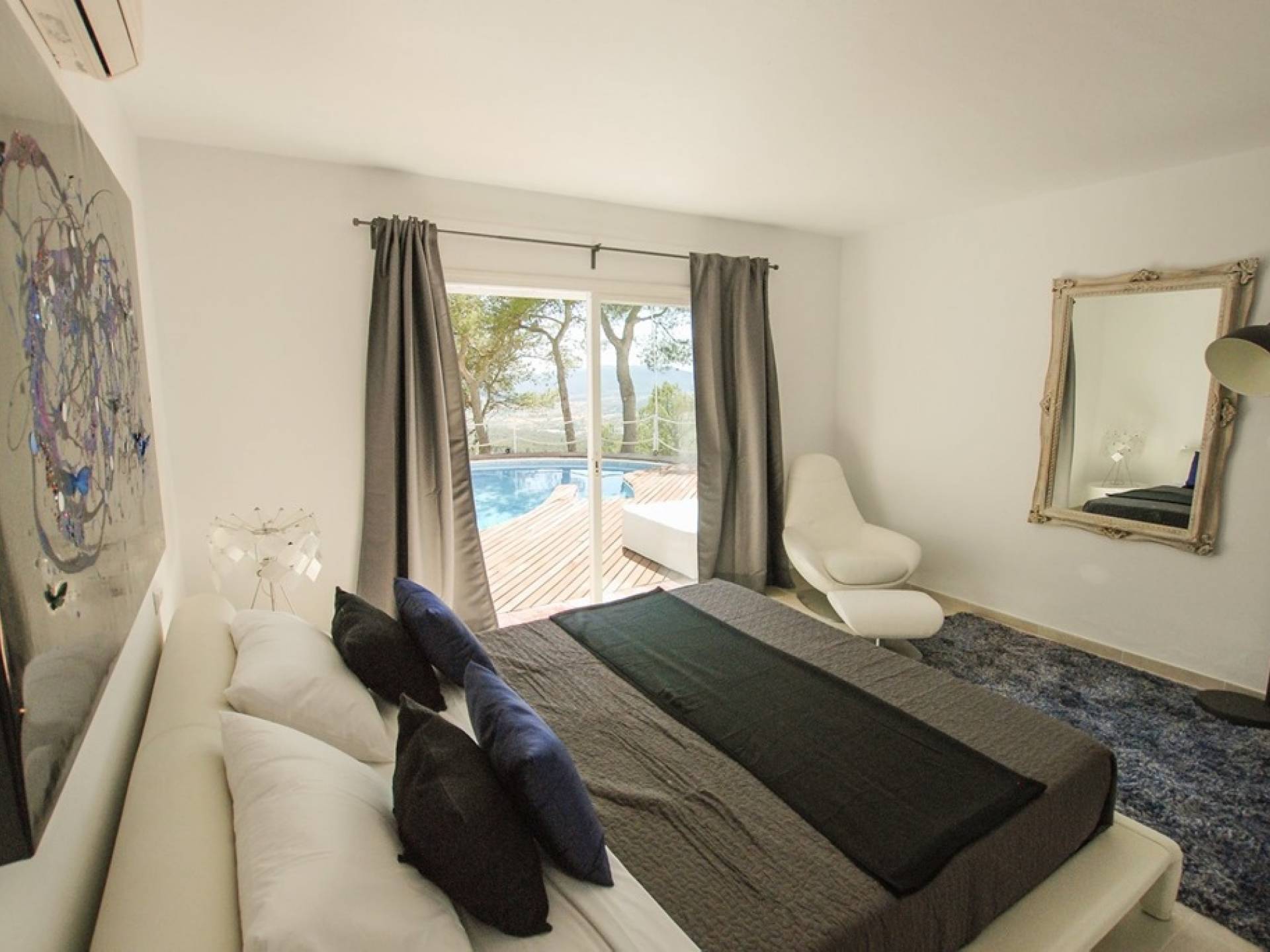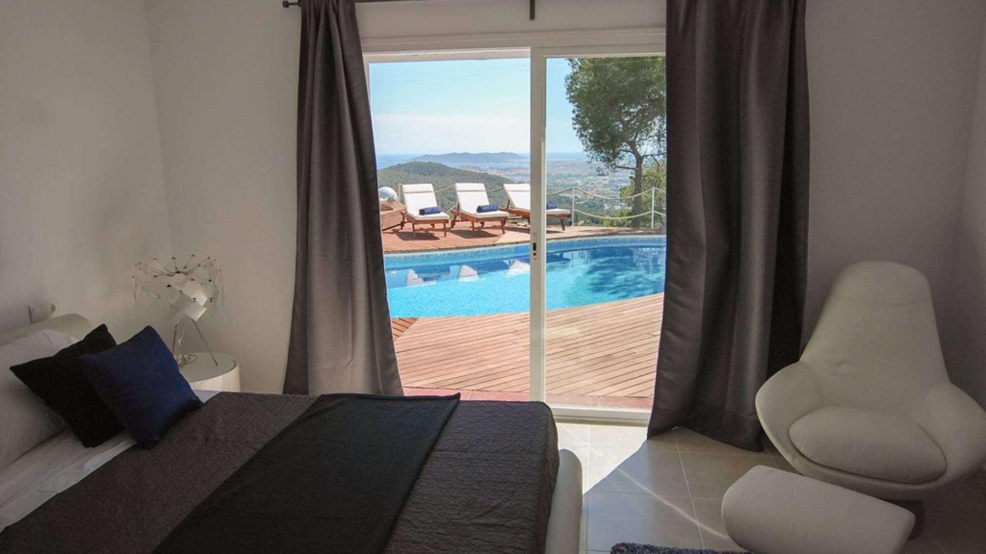 C'è un ampio soggiorno a pianta aperta arredato con gusto con generosi posti a sedere, che beneficia di grandi finestre che si affacciano sulla splendida vista della città di Ibiza e della costa dalla spiaggia di Talamanca fino a Salinas. La zona pranzo può ospitare comodamente 10 persone e vanta anche una vista fantastica e la moderna cucina completamente attrezzata è dotata di tutti gli elettrodomestici moderni. L'intera villa è dotata di aria condizionata, WiFi e TV satellitare.