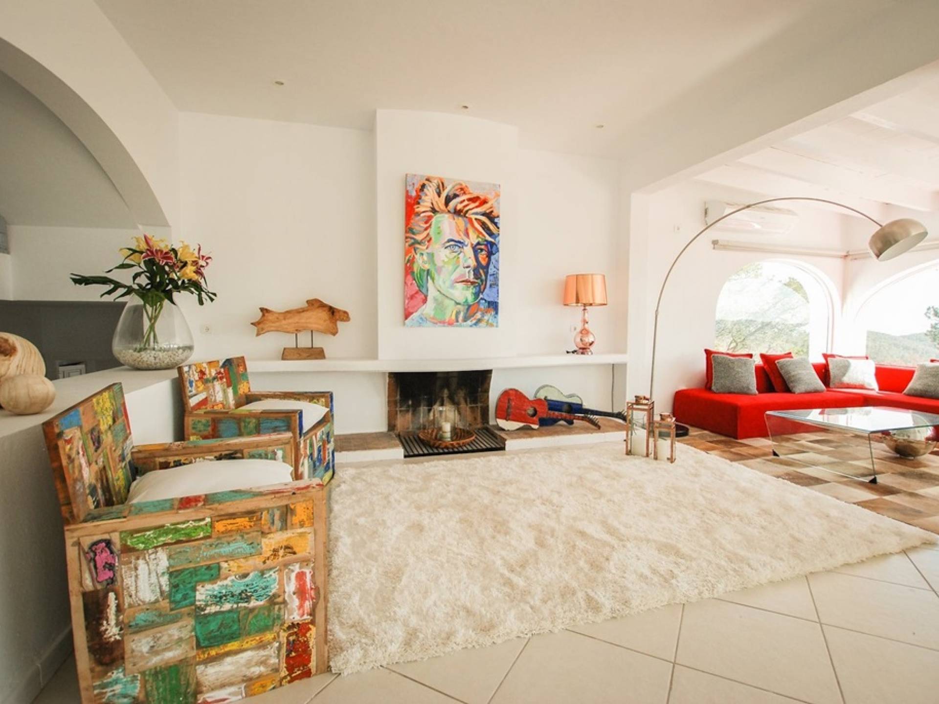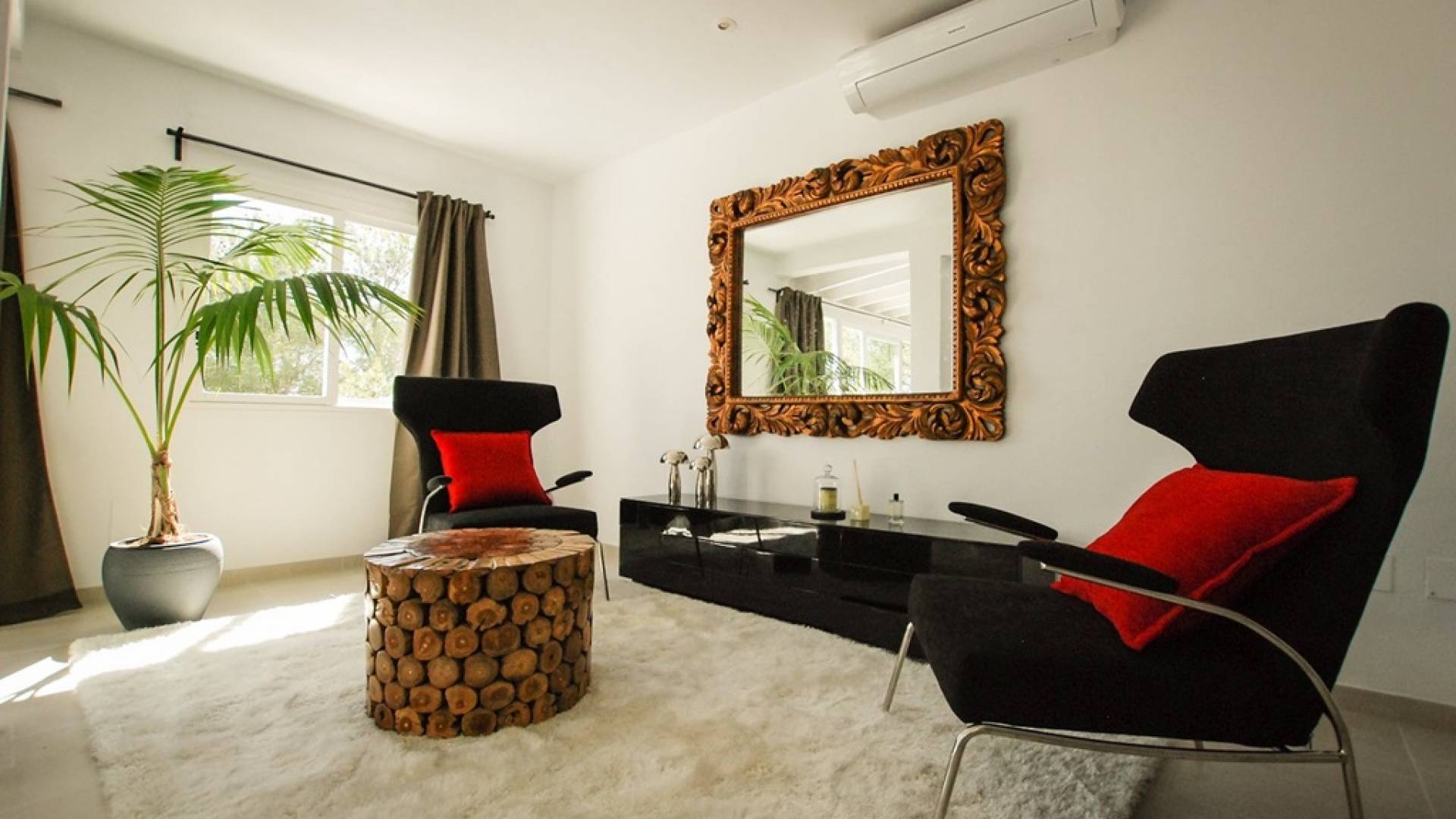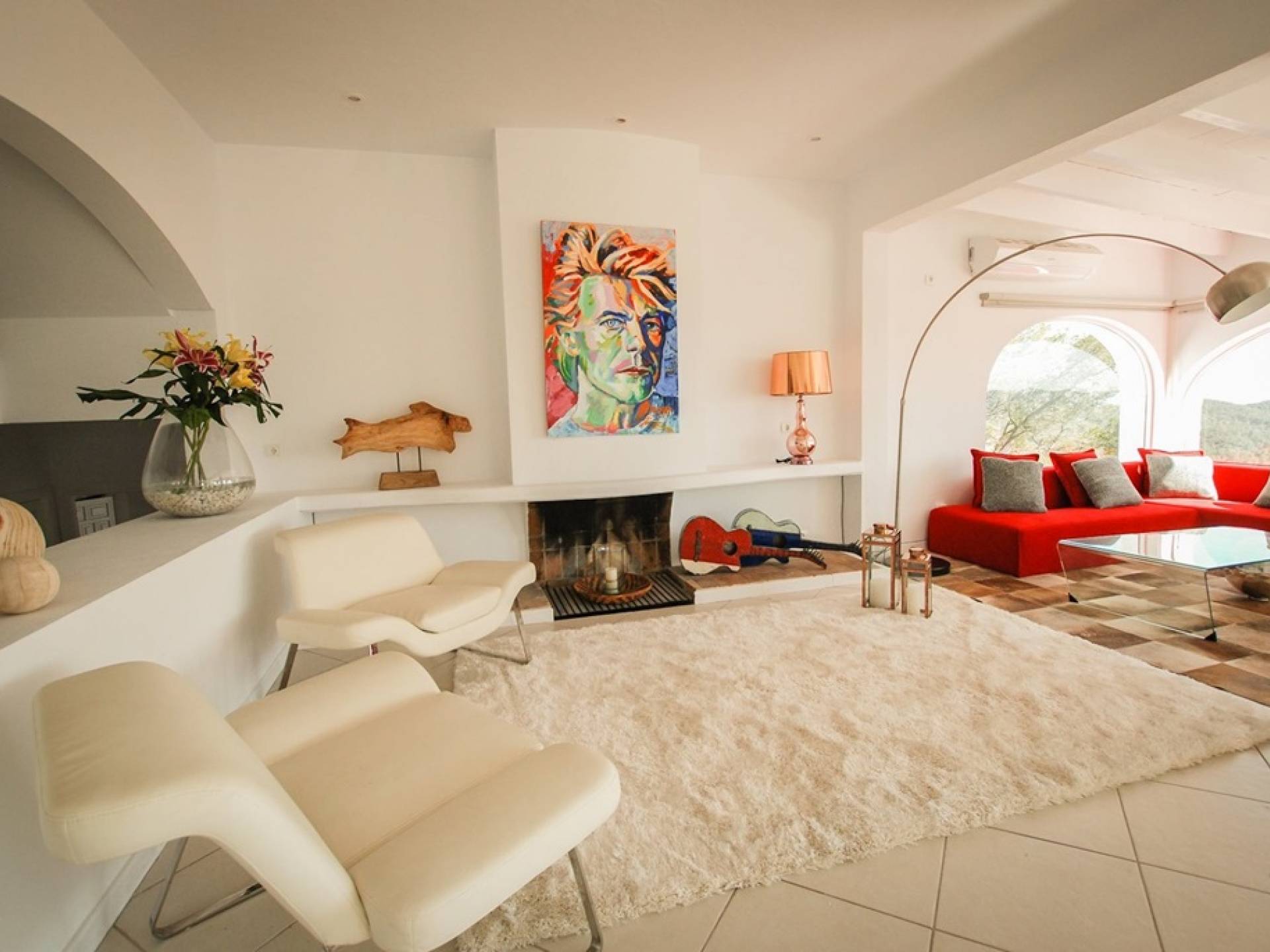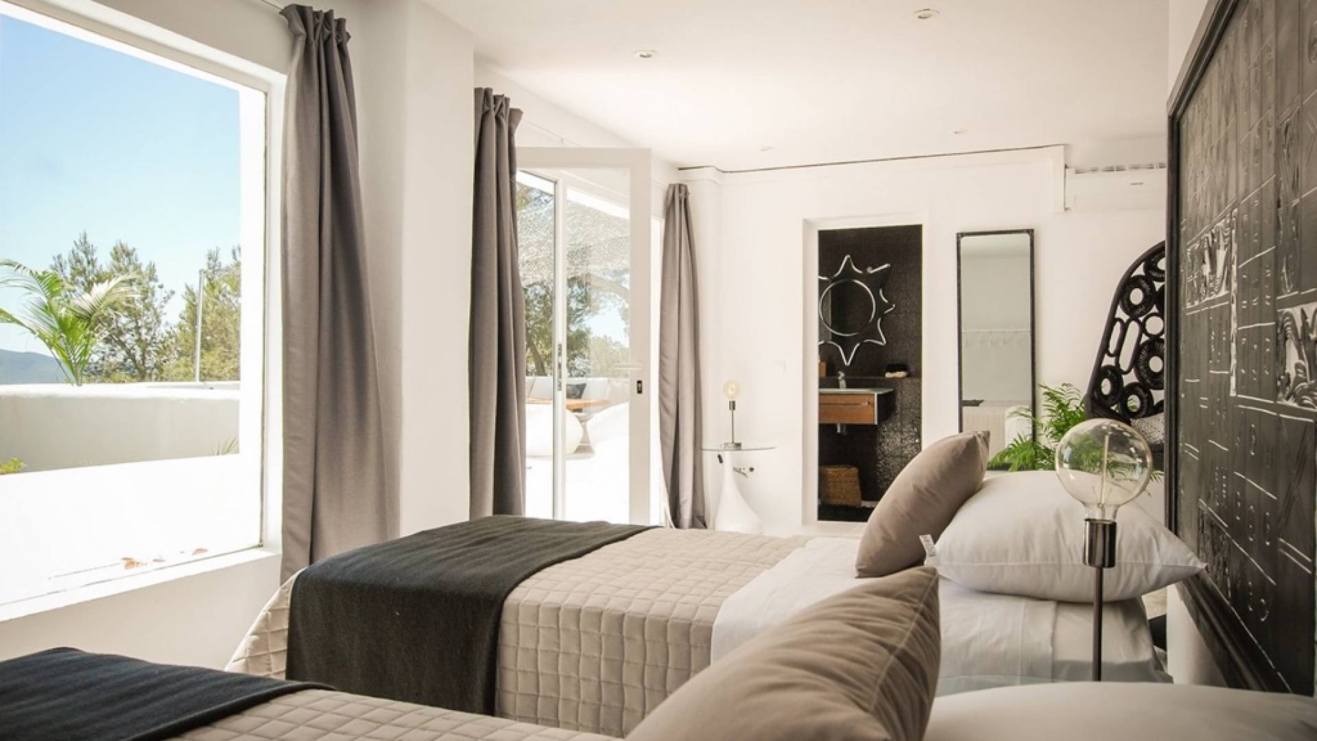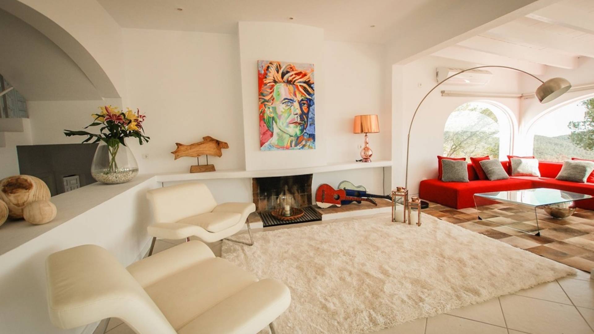 C'è un ampio soggiorno a pianta aperta arredato con gusto con generosi posti a sedere, che beneficia di grandi finestre che si affacciano sulla splendida vista della città di Ibiza e della costa dalla spiaggia di Talamanca fino a Salinas. La zona pranzo può ospitare comodamente 10 persone e vanta anche una vista fantastica e la moderna cucina completamente attrezzata è dotata di tutti gli elettrodomestici moderni. L'intera villa è dotata di aria condizionata, WiFi e TV satellitare.