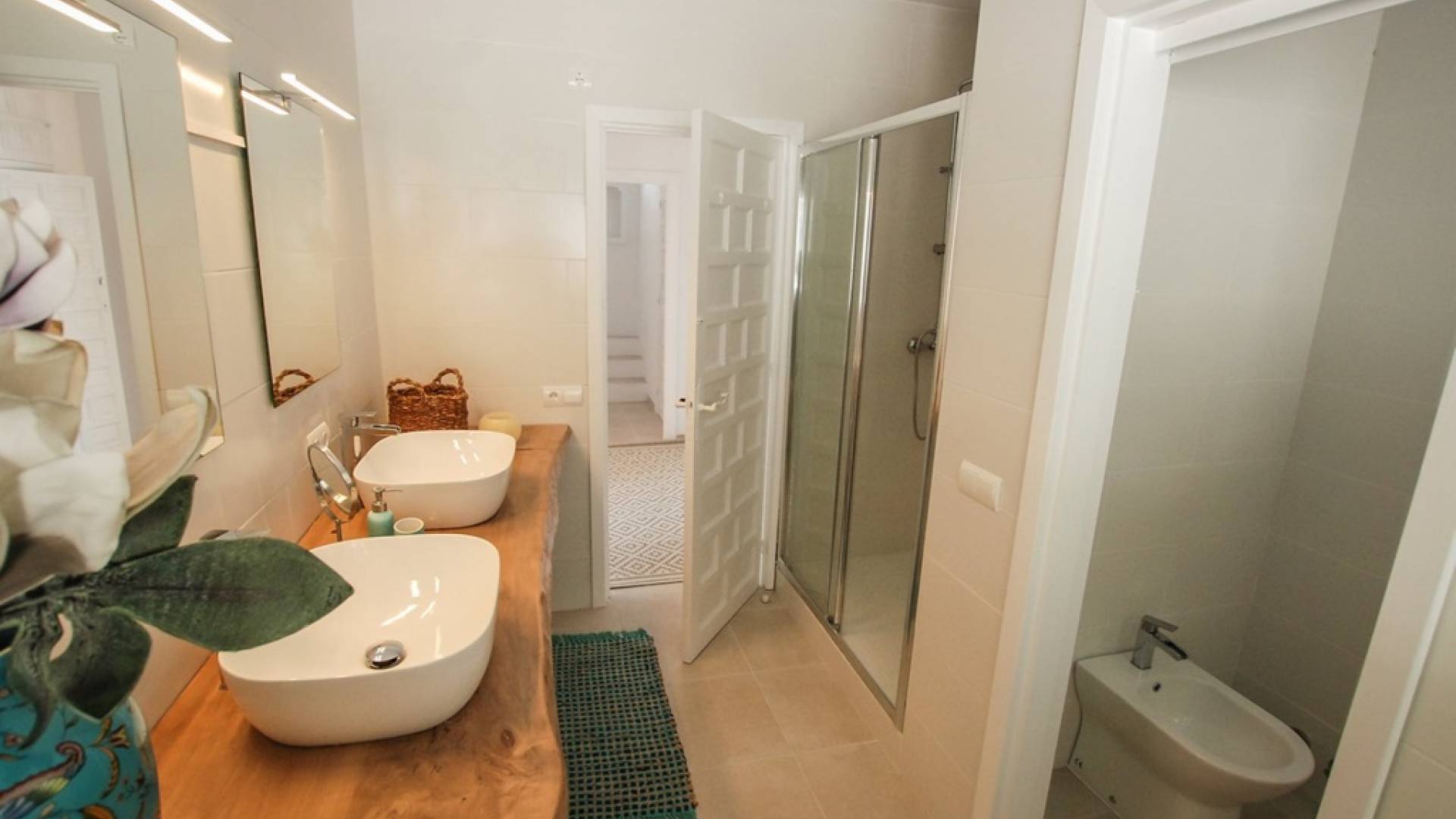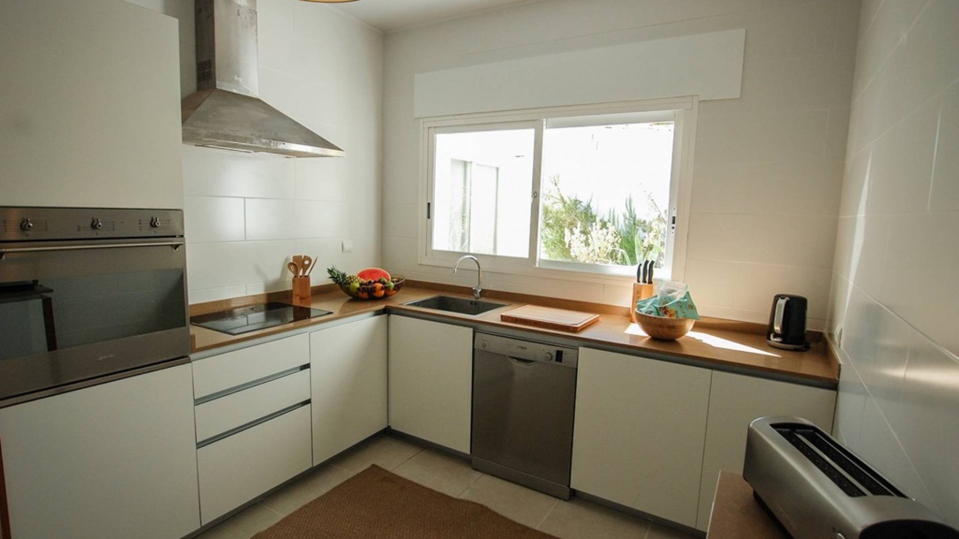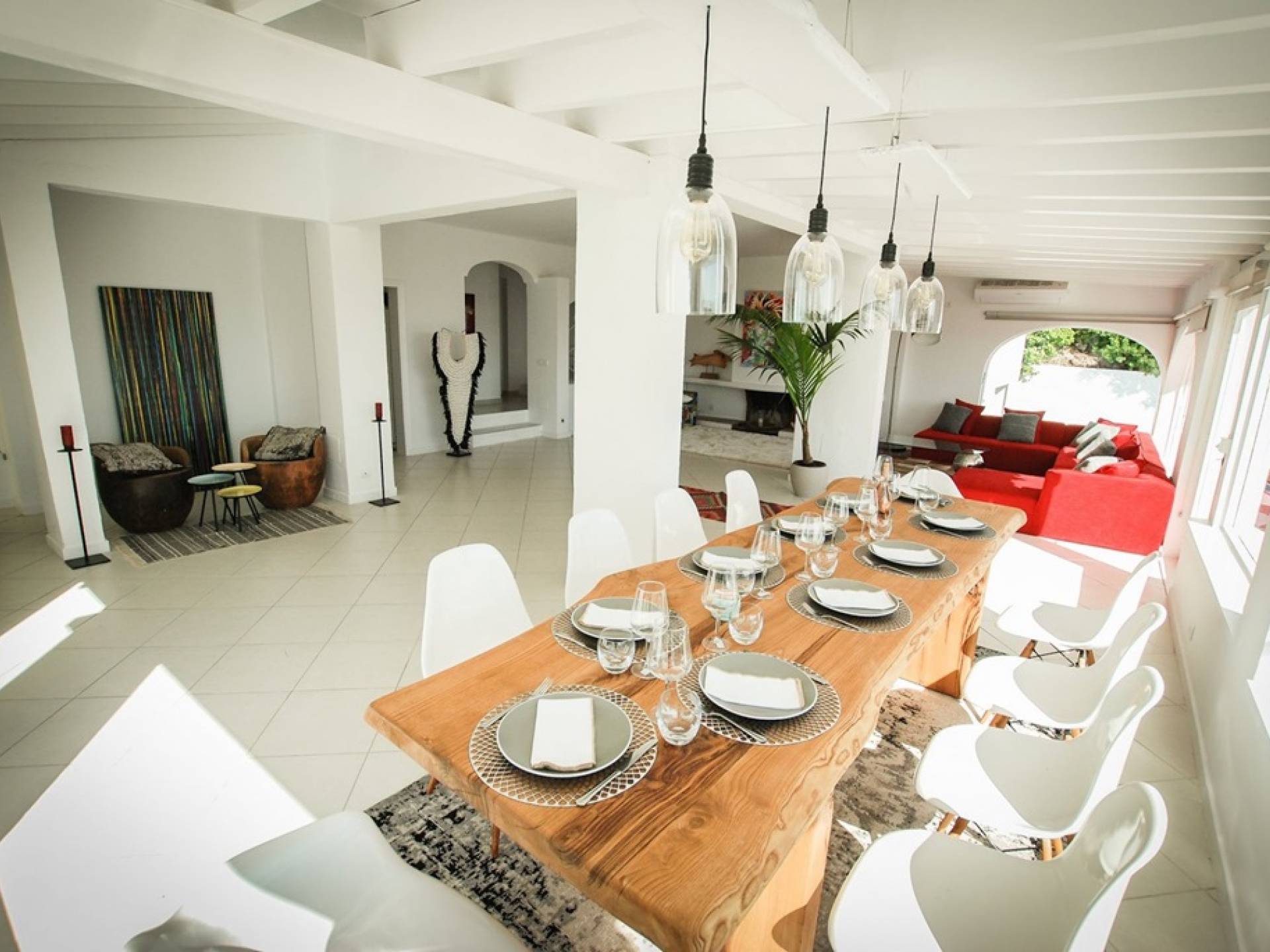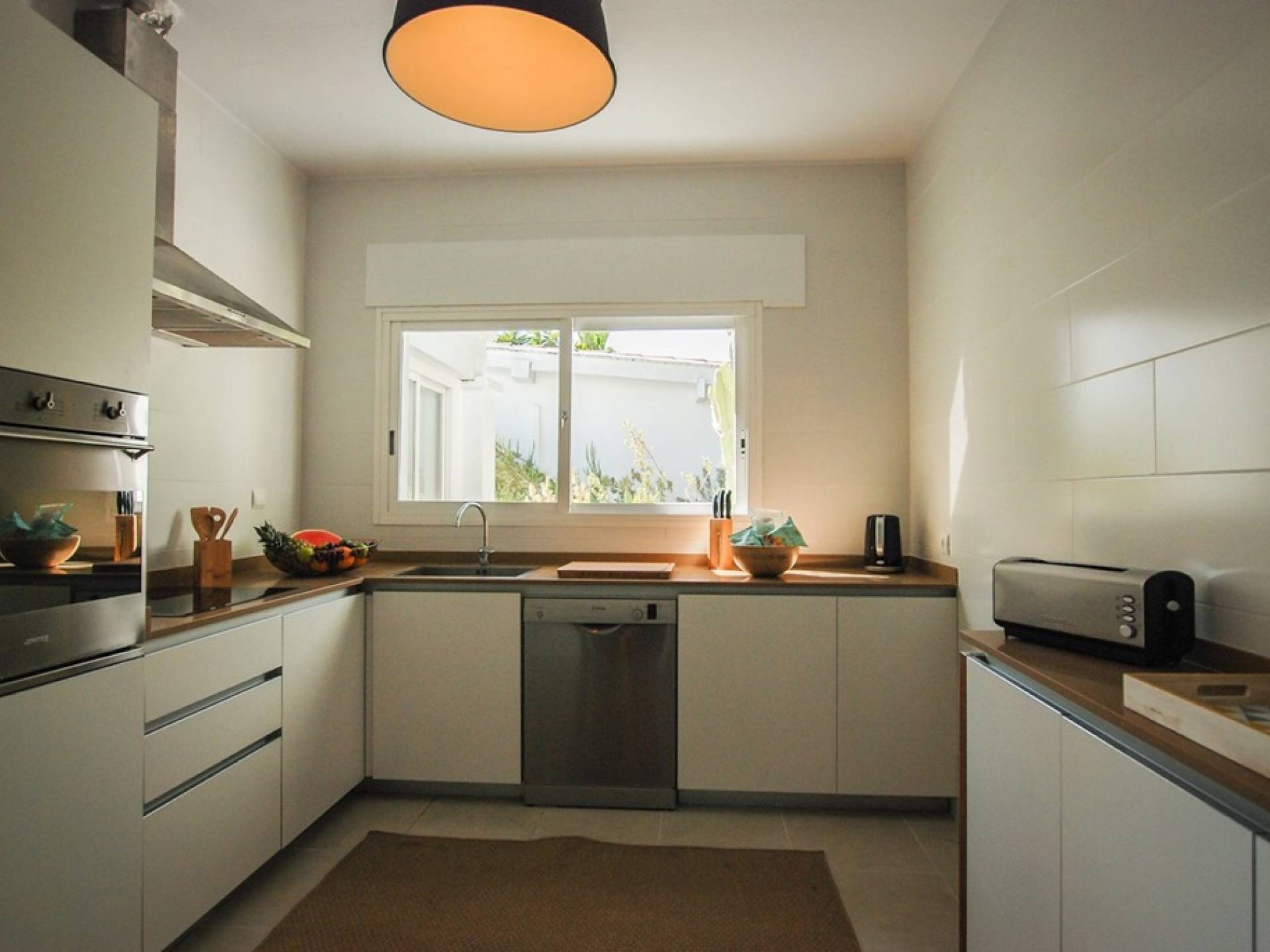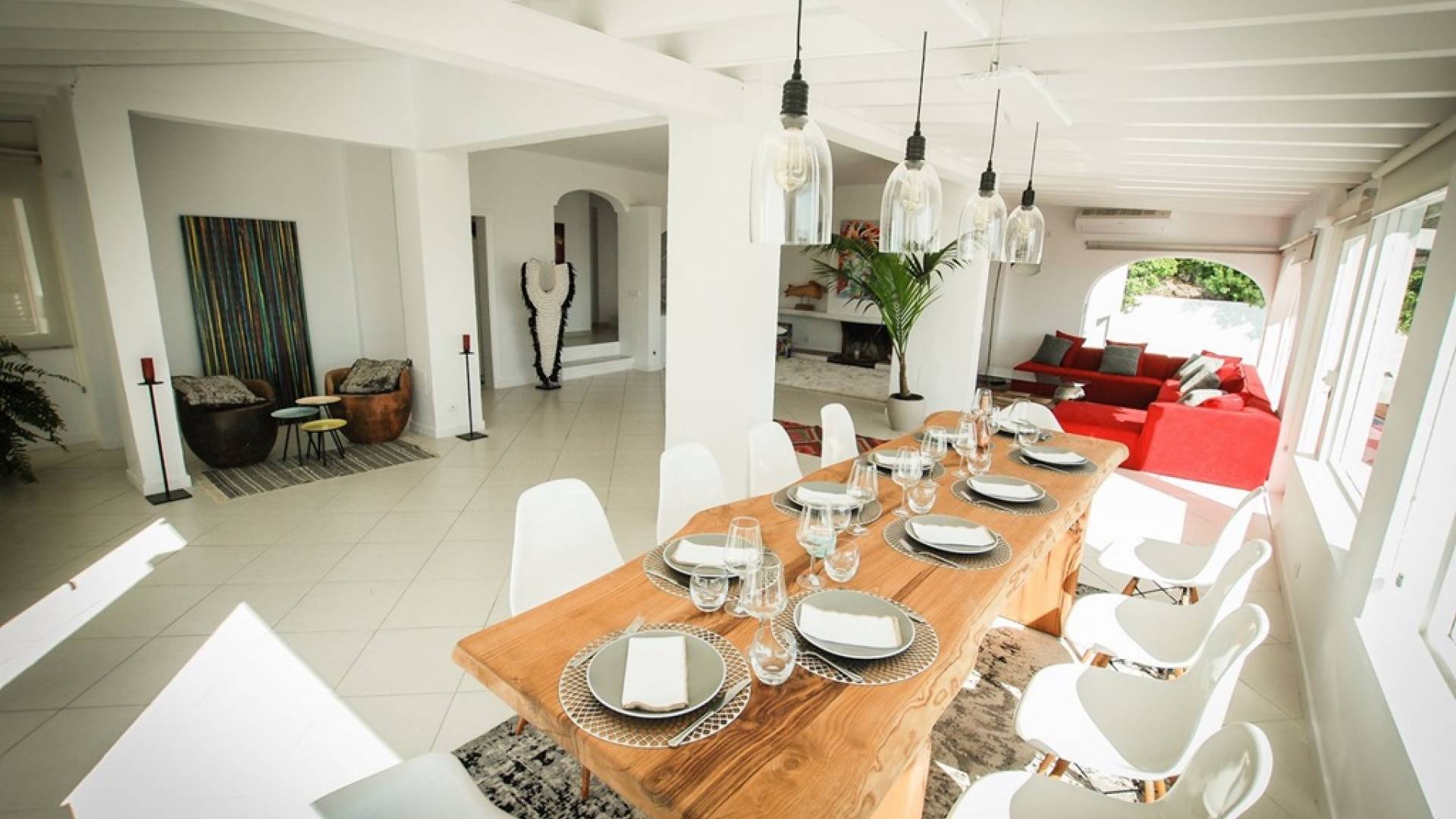 C'è un ampio soggiorno a pianta aperta arredato con gusto con generosi posti a sedere, che beneficia di grandi finestre che si affacciano sulla splendida vista della città di Ibiza e della costa dalla spiaggia di Talamanca fino a Salinas. La zona pranzo può ospitare comodamente 10 persone e vanta anche una vista fantastica e la moderna cucina completamente attrezzata è dotata di tutti gli elettrodomestici moderni. L'intera villa è dotata di aria condizionata, WiFi e TV satellitare.