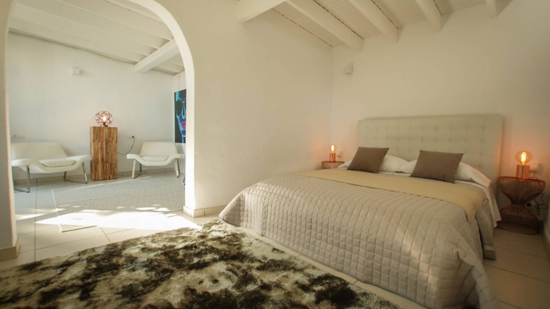 Situata in una posizione perfetta, questa struttura offre splendide viste sul mare a Formentera, Dalt Vila, Playa Den Bossa e le saline di Salinas. C'è una fantastica terrazza chill-out con una zona pranzo all'aperto, perfetta per riunioni di famiglia o cene romantiche mentre ti godi il panorama. La grande piscina si trova in un'area rivestita in legno ed è circondata da lettini e da un lussuoso divano letto.