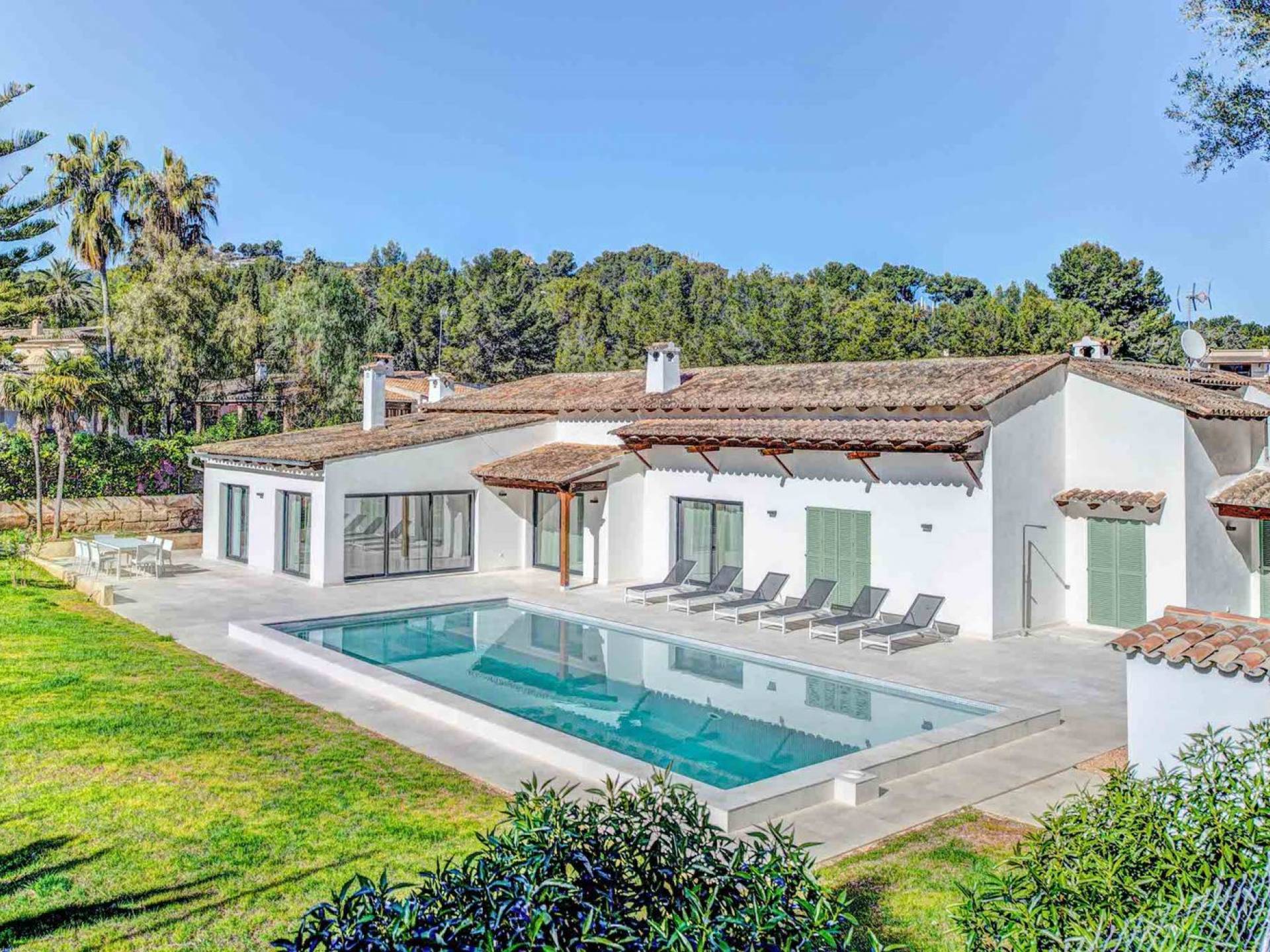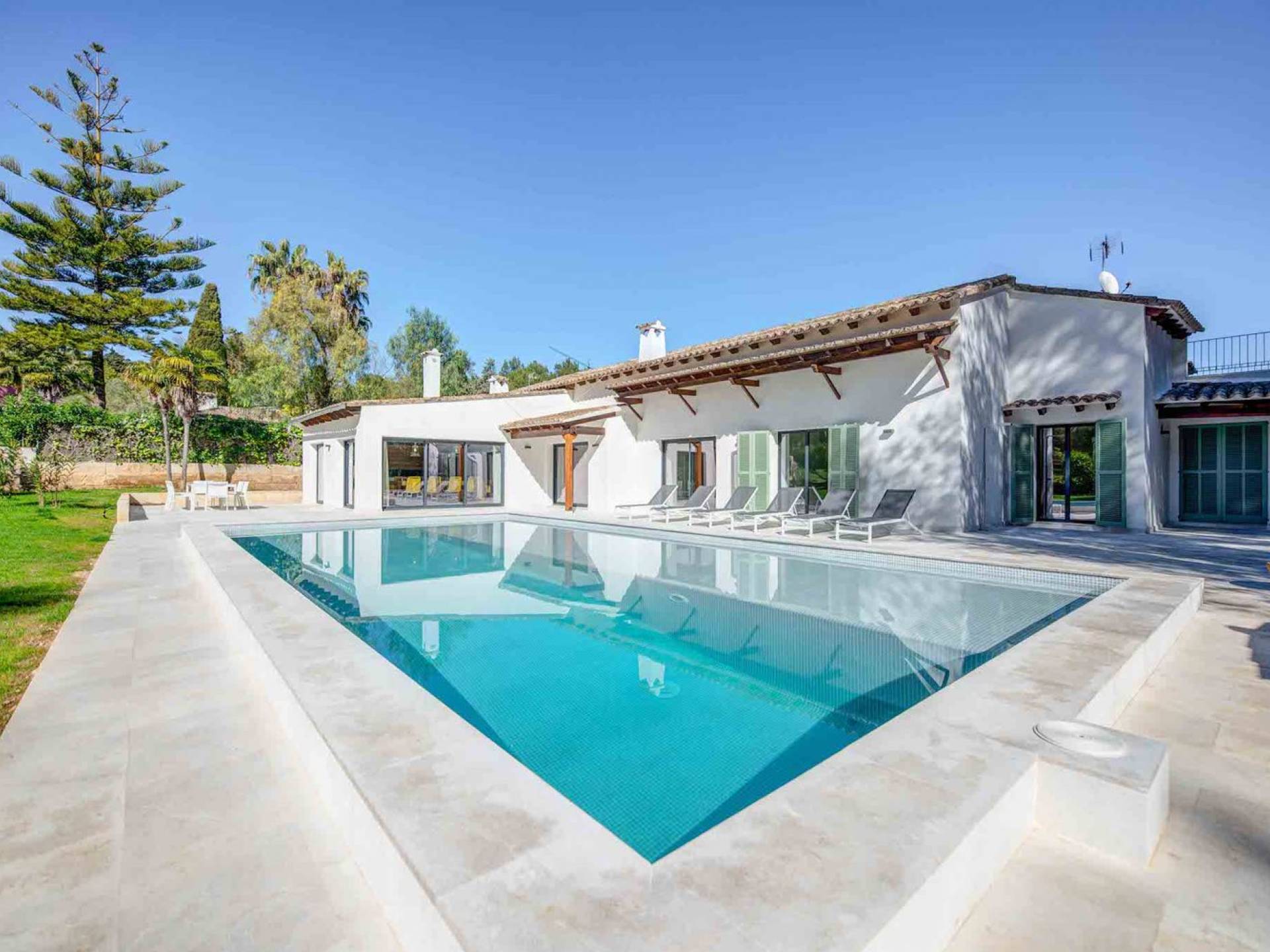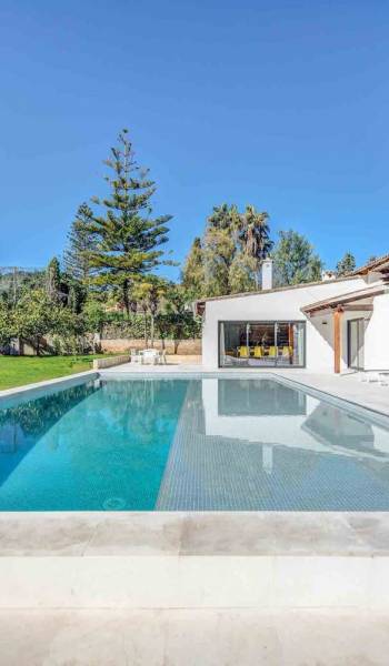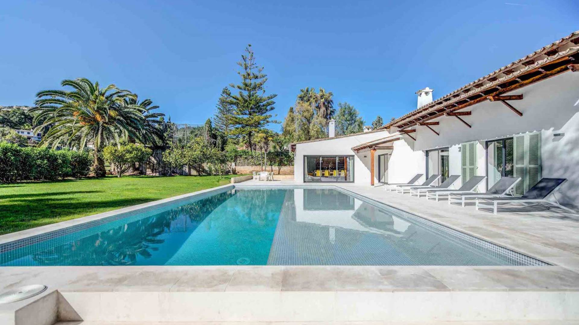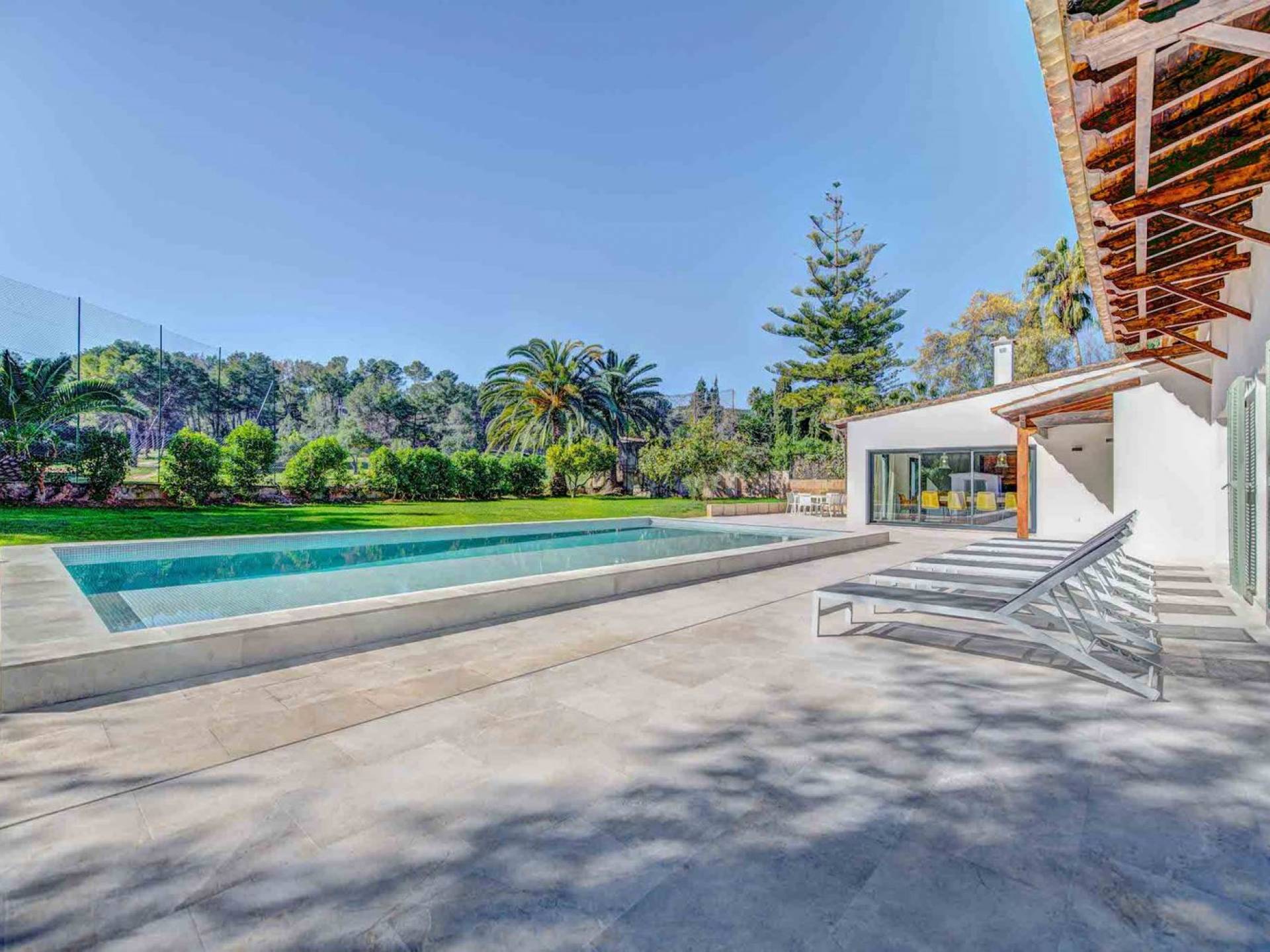 Vista Golf Son Vida Mallorca è una villa di lusso in affitto con 5 camere da letto e piscina privata. Situata a soli 10 minuti dal centro storico di Palma ea 15 minuti dalla spiaggia, questa superba villa combina il privilegio di poter raggiungere a piedi uno dei campi da golf più prestigiosi di Maiorca con vista sul campo da golf su entrambi i lati, come oltre ad avere un giardino privato e piscina per privacy e relax.
