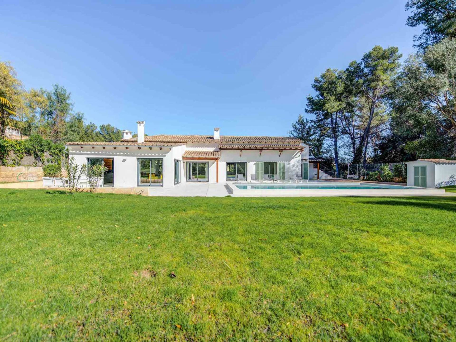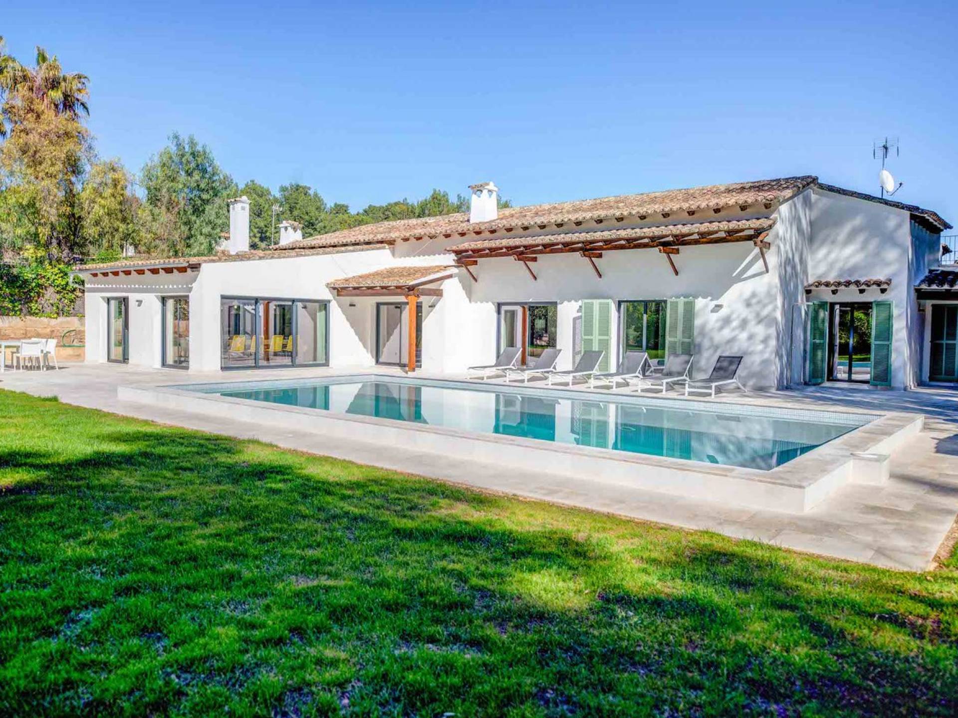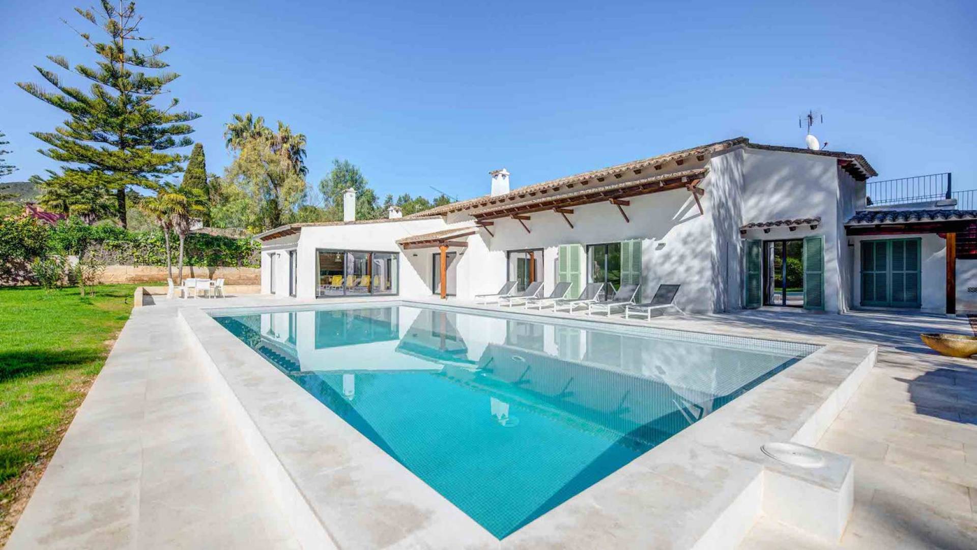 Vista Golf Son Vida Mallorca è una villa di lusso in affitto con 5 camere da letto e piscina privata. Situata a soli 10 minuti dal centro storico di Palma ea 15 minuti dalla spiaggia, questa superba villa combina il privilegio di poter raggiungere a piedi uno dei campi da golf più prestigiosi di Maiorca con vista sul campo da golf su entrambi i lati, come oltre ad avere un giardino privato e piscina per privacy e relax.