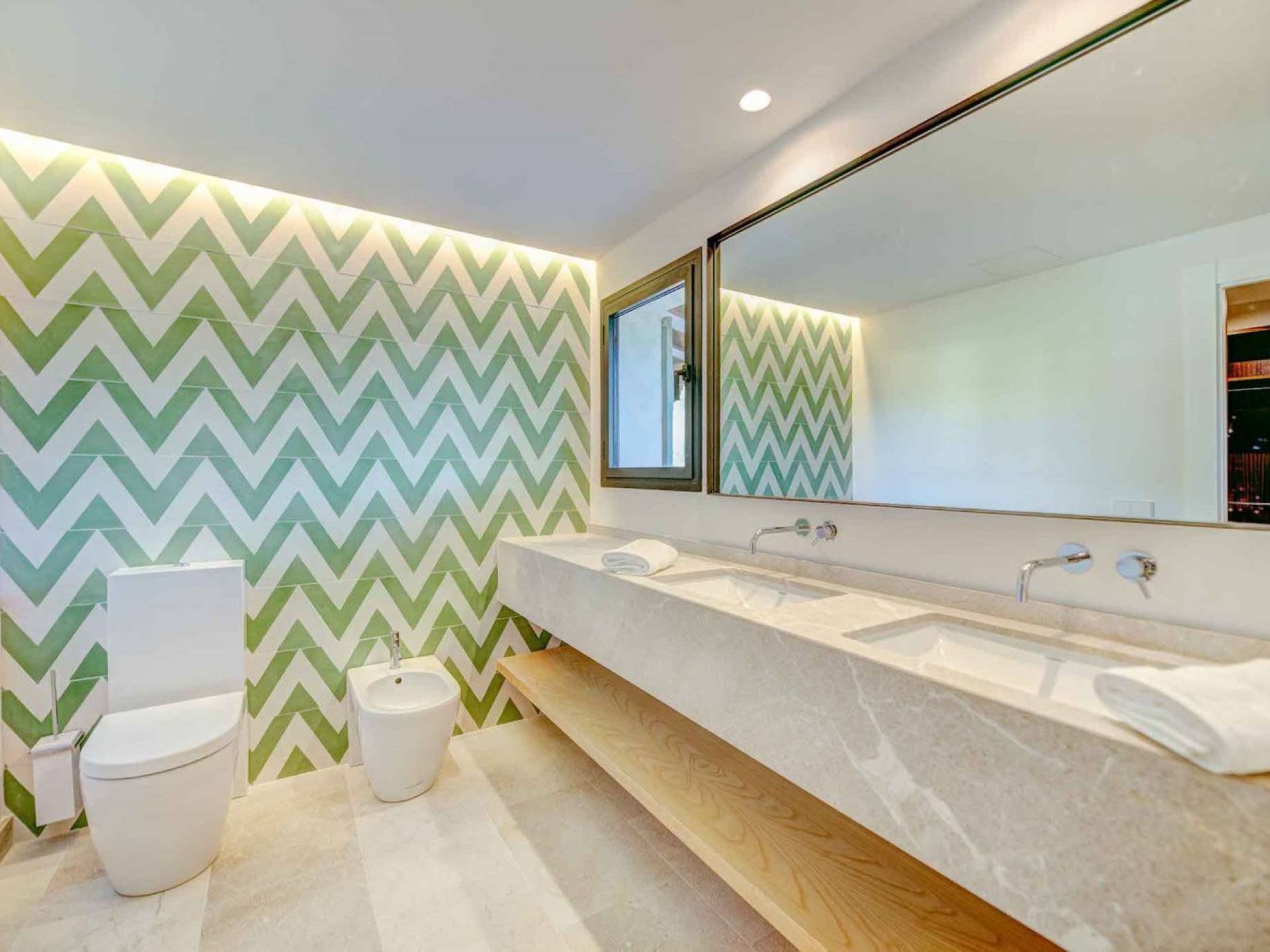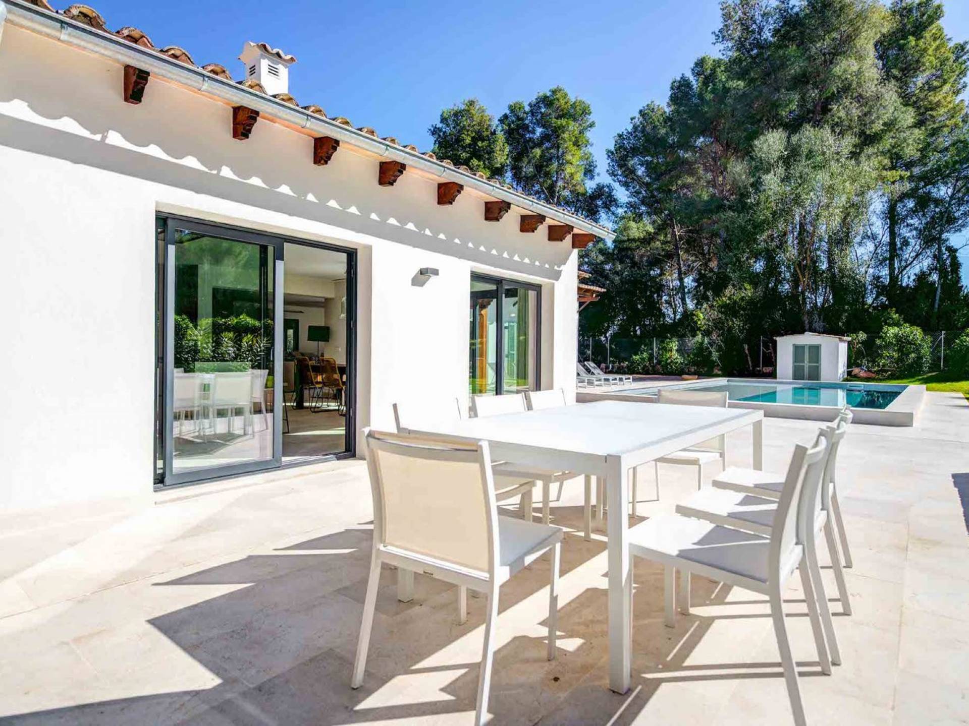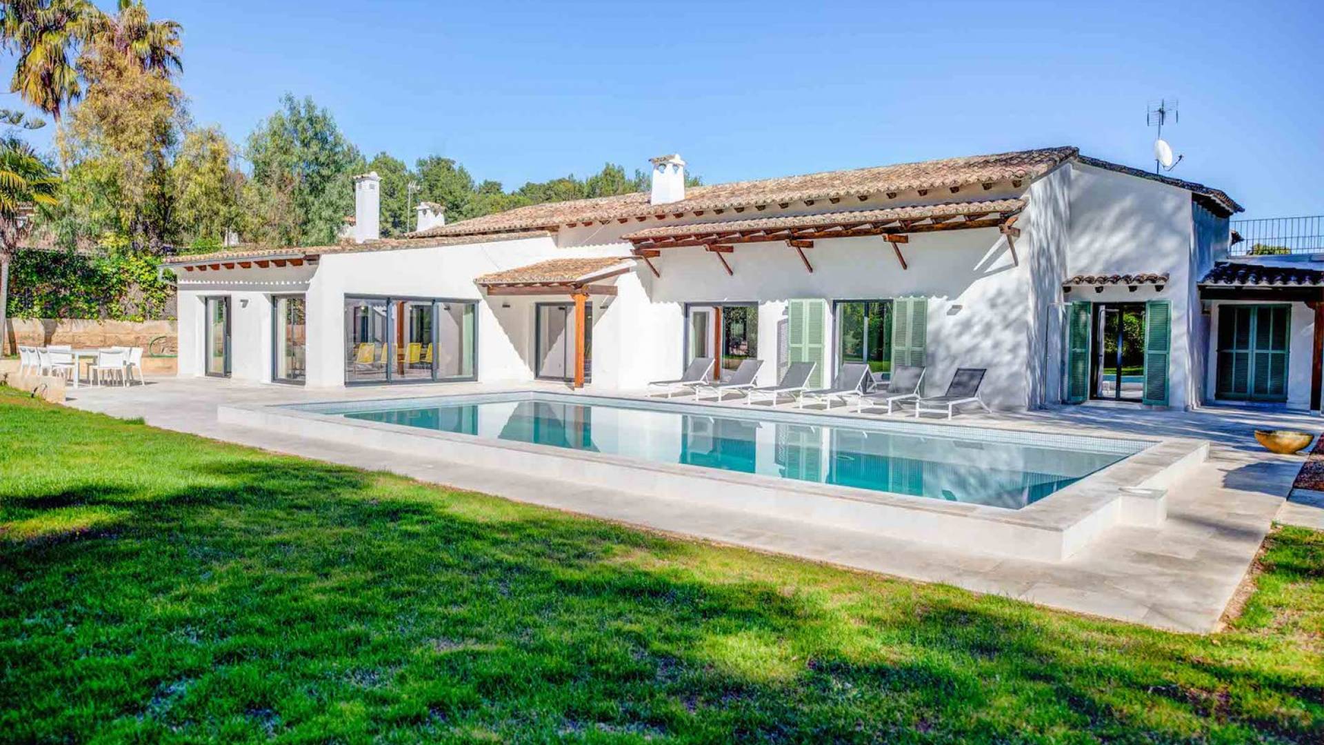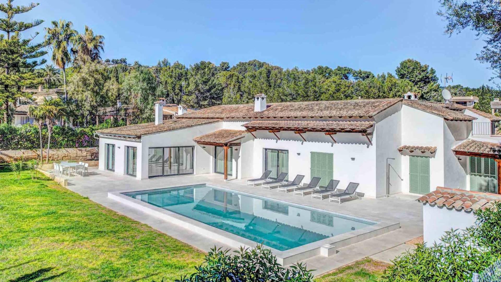 Vista Golf Son Vida Mallorca è una villa di lusso in affitto con 5 camere da letto e piscina privata. Situata a soli 10 minuti dal centro storico di Palma ea 15 minuti dalla spiaggia, questa superba villa combina il privilegio di poter raggiungere a piedi uno dei campi da golf più prestigiosi di Maiorca con vista sul campo da golf su entrambi i lati, come oltre ad avere un giardino privato e piscina per privacy e relax.