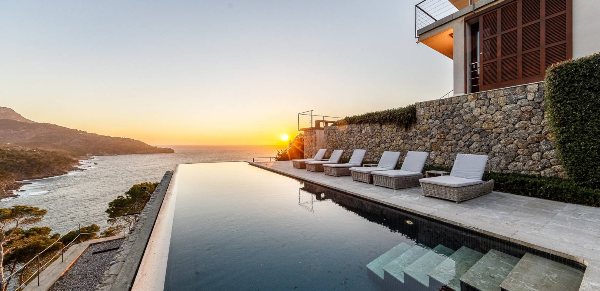 Vista Costera Mallorca è una villa di lusso in affitto con 4 camere da letto e piscina privata. Tra la montagna e il mare questo è uno spazio davvero unico per rilassarsi e isolarsi dal brusio. Dispone di 350 m2 interni, più 2.000 m2 di terreno con fantastiche terrazze e una lunga ed elegante piscina a sfioro, che vantano tutte le più incredibili viste sul mare e sulle montagne dalla sua posizione privilegiata su una scogliera sul mare.