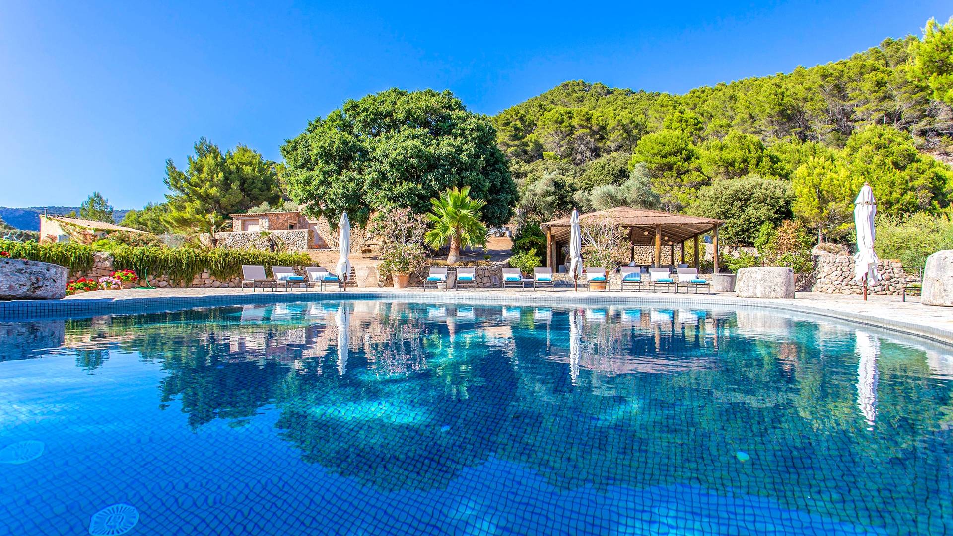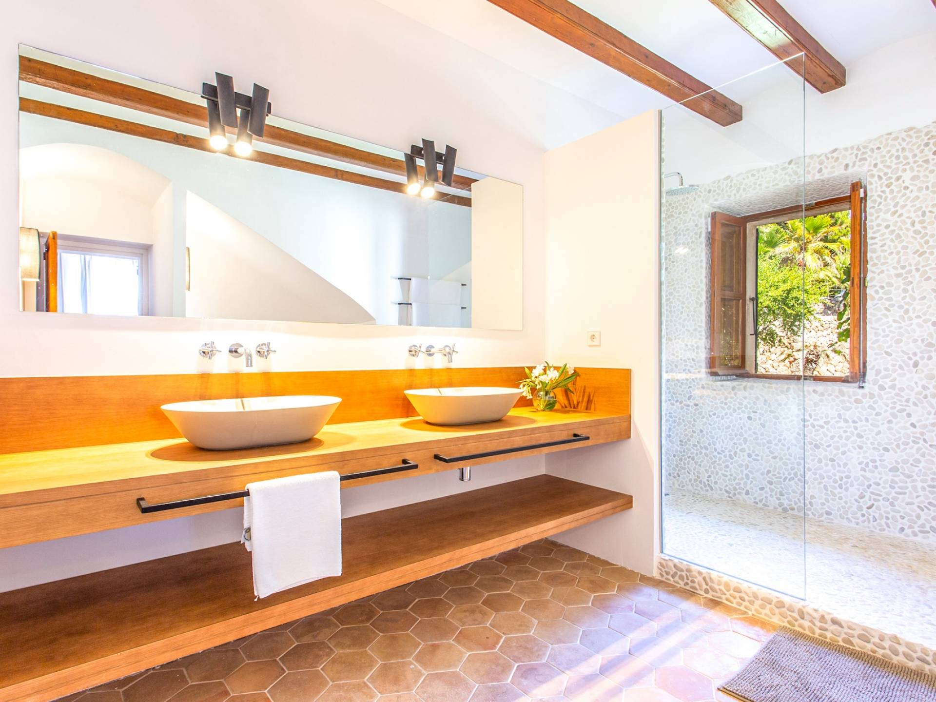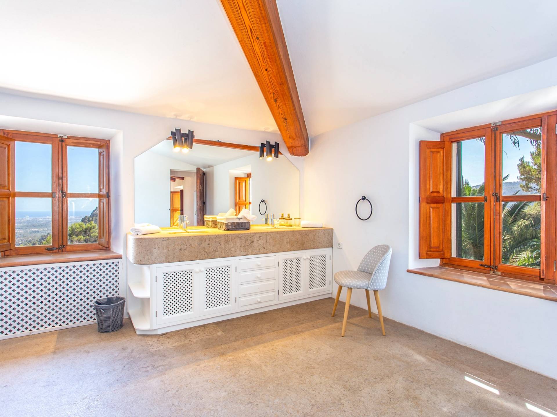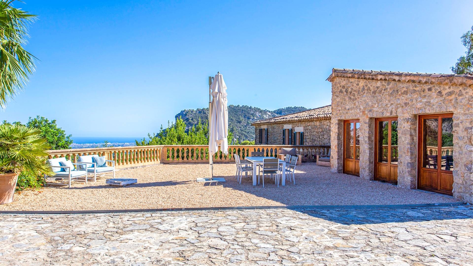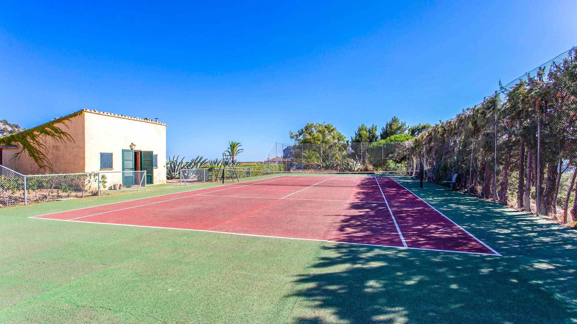 Appartato in montagna (ca. 5 - 10 min in auto dal centro di Valldemossa), questo casale è l'ideale per gli ospiti che cercano un rifugio per rilassarsi in pace lontano da tutto. Oltre all'enorme e scintillante piscina privata, l'esterno vanta un ampio patio coperto composto da una cucina all'aperto high-tech, ideale per godersi un barbecue e un drink mentre si guarda la splendida vista del tramonto. È ottimo anche per dissetarsi dopo una partita di tennis con la famiglia o gli amici, data la sua vicinanza ai campi da tennis privati in loco.