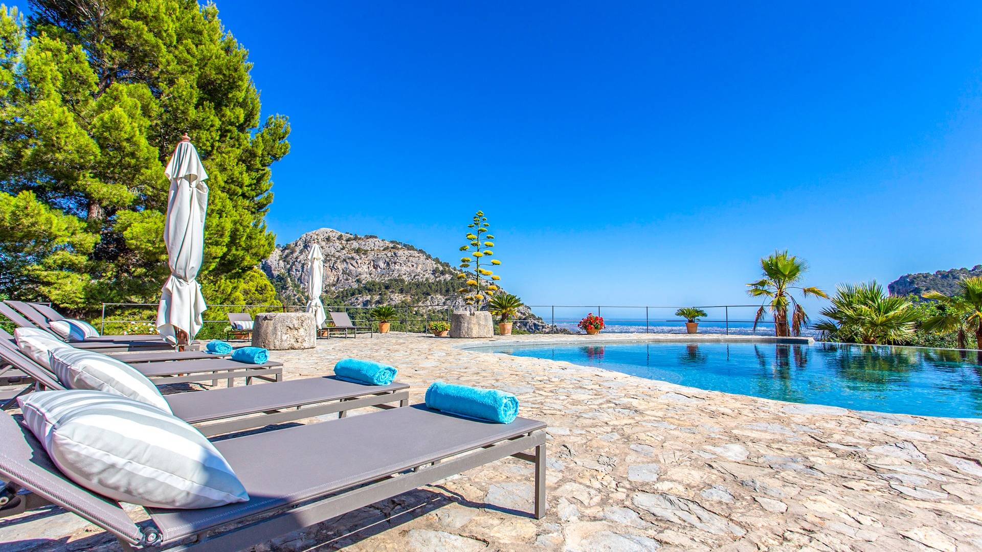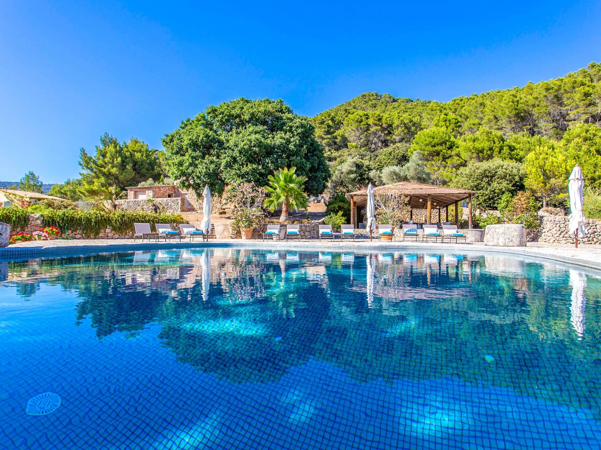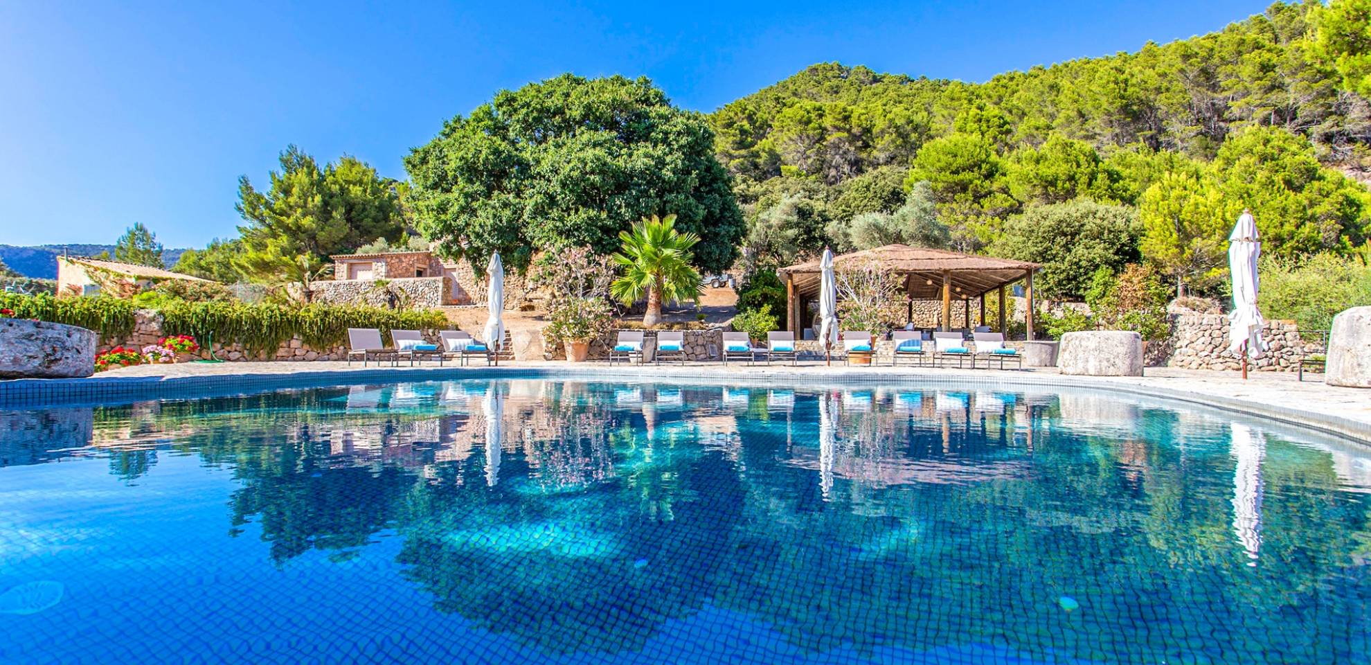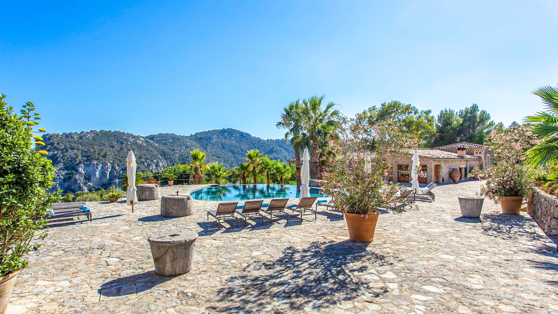 Appartato in montagna (ca. 5 - 10 min in auto dal centro di Valldemossa), questo casale è l'ideale per gli ospiti che cercano un rifugio per rilassarsi in pace lontano da tutto. Oltre all'enorme e scintillante piscina privata, l'esterno vanta un ampio patio coperto composto da una cucina all'aperto high-tech, ideale per godersi un barbecue e un drink mentre si guarda la splendida vista del tramonto. È ottimo anche per dissetarsi dopo una partita di tennis con la famiglia o gli amici, data la sua vicinanza ai campi da tennis privati in loco.