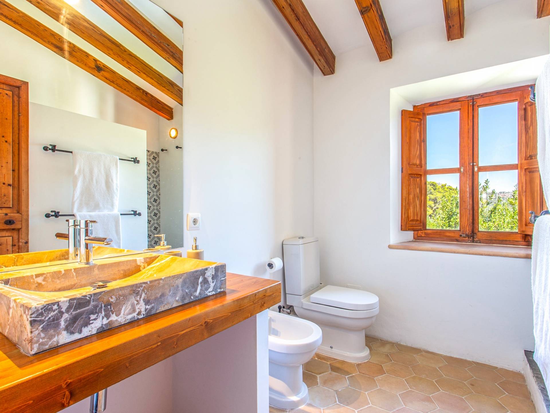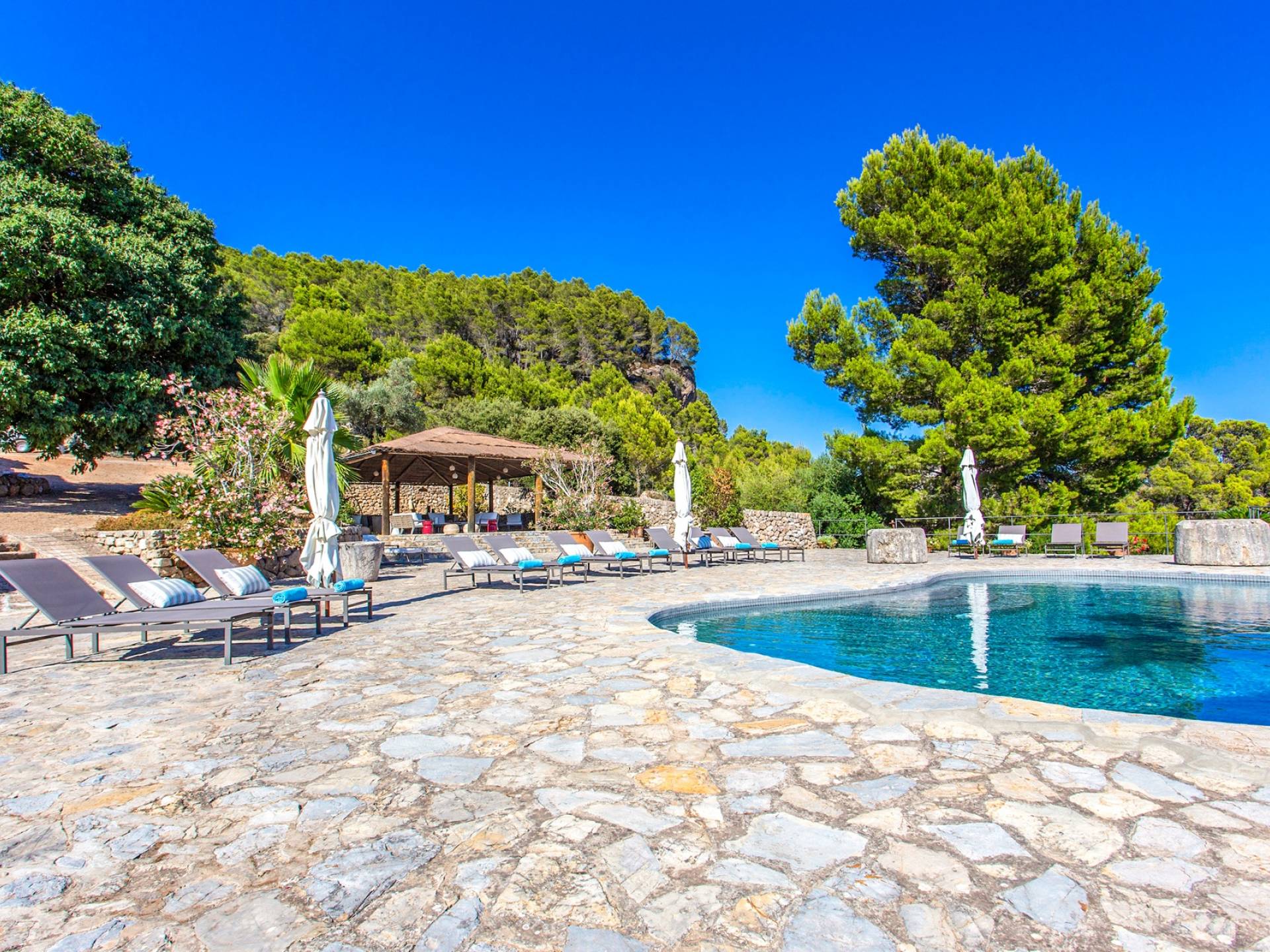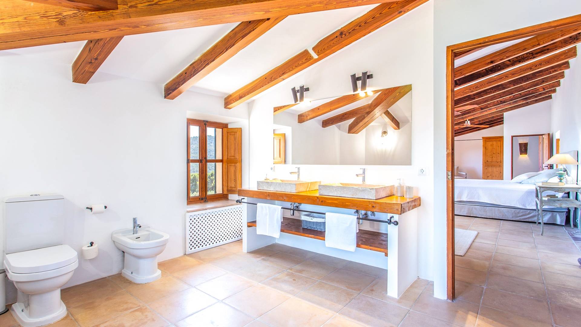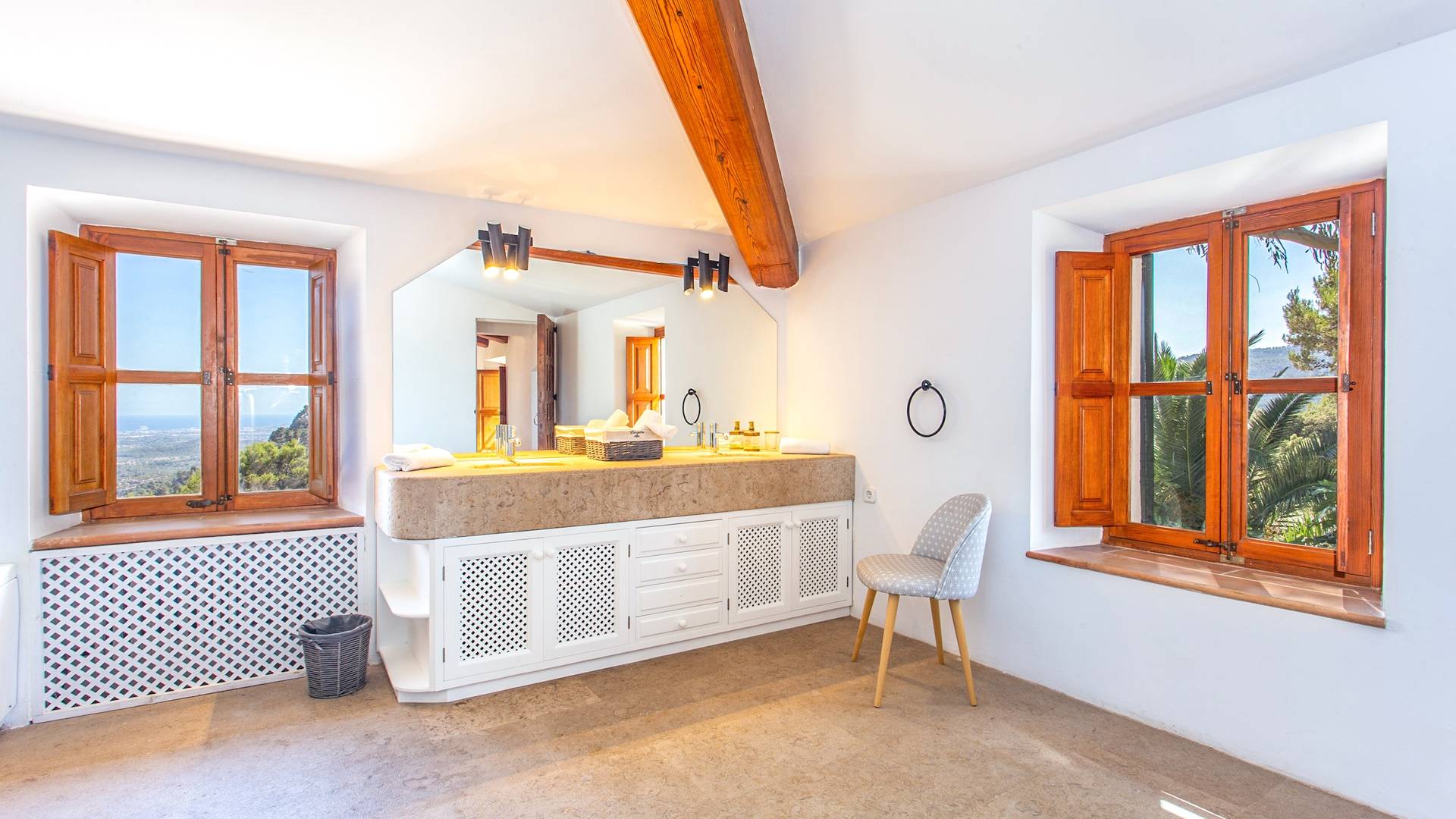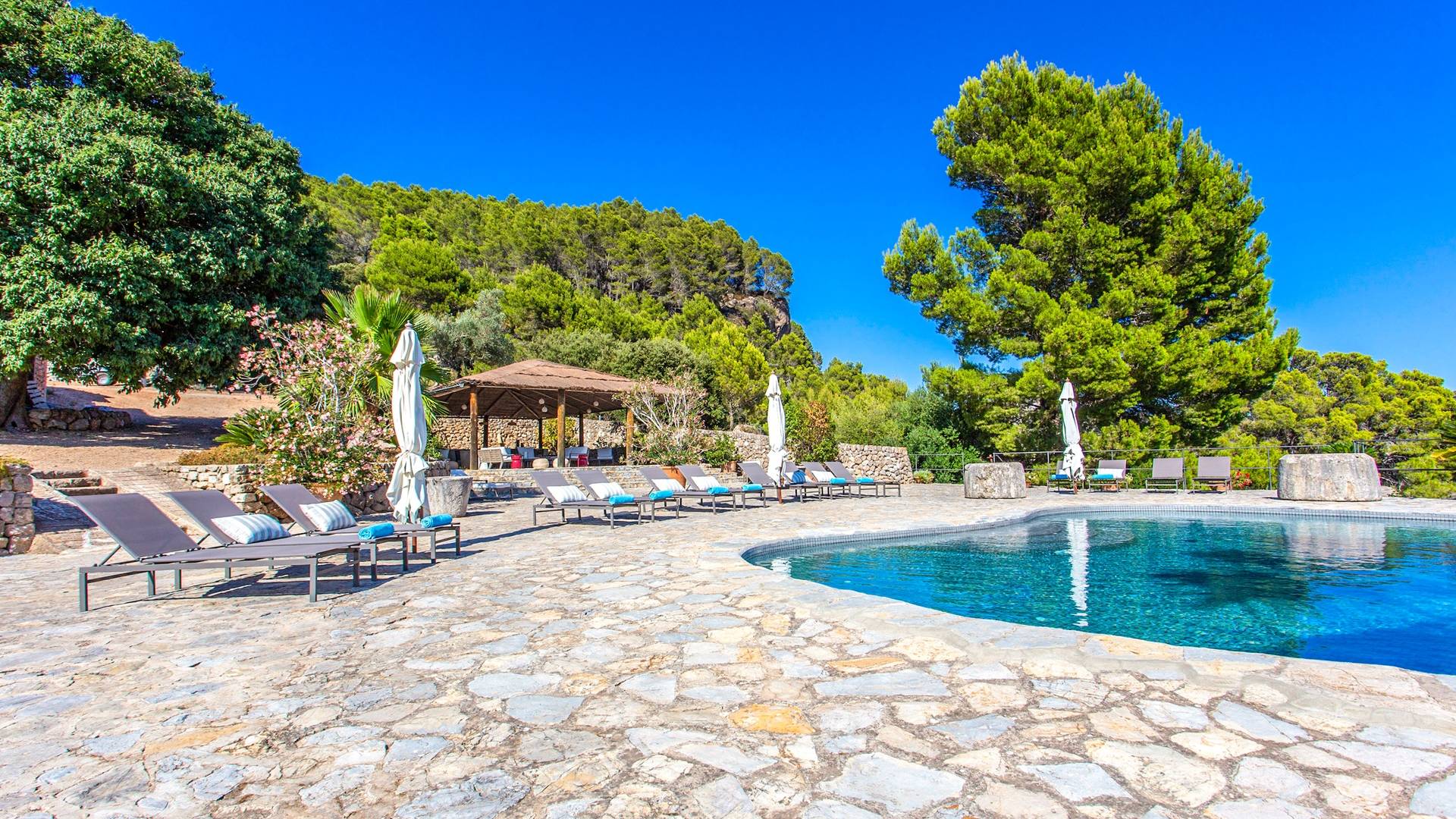 Appartato in montagna (ca. 5 - 10 min in auto dal centro di Valldemossa), questo casale è l'ideale per gli ospiti che cercano un rifugio per rilassarsi in pace lontano da tutto. Oltre all'enorme e scintillante piscina privata, l'esterno vanta un ampio patio coperto composto da una cucina all'aperto high-tech, ideale per godersi un barbecue e un drink mentre si guarda la splendida vista del tramonto. È ottimo anche per dissetarsi dopo una partita di tennis con la famiglia o gli amici, data la sua vicinanza ai campi da tennis privati in loco.