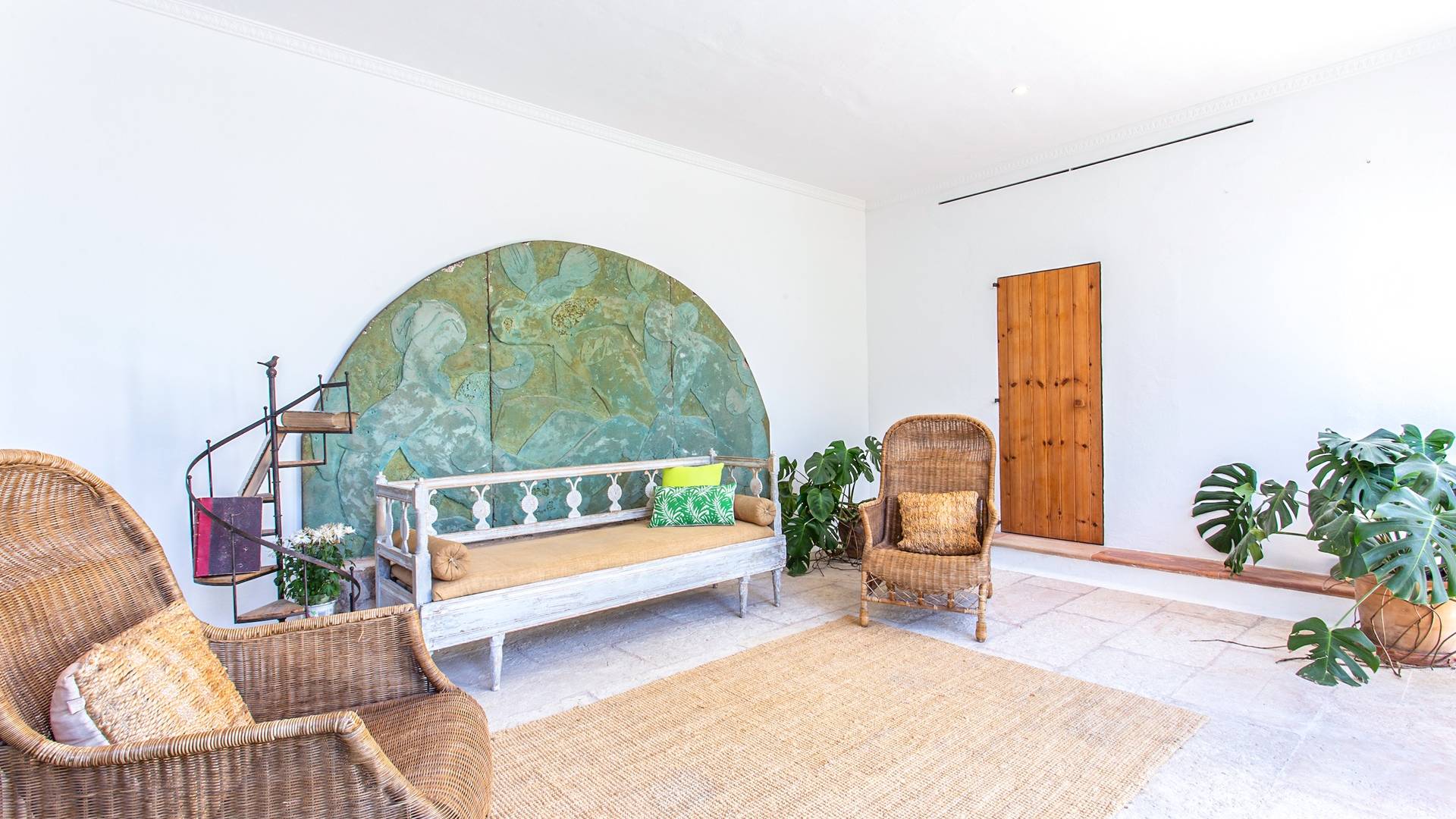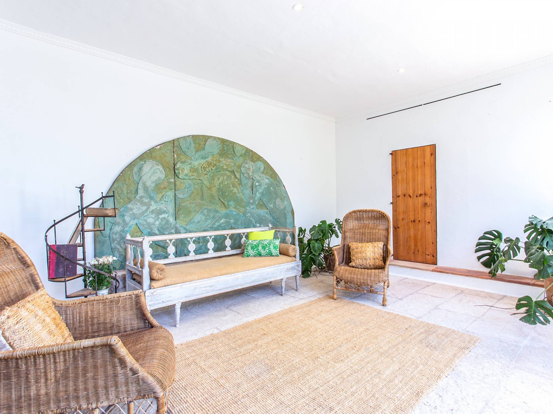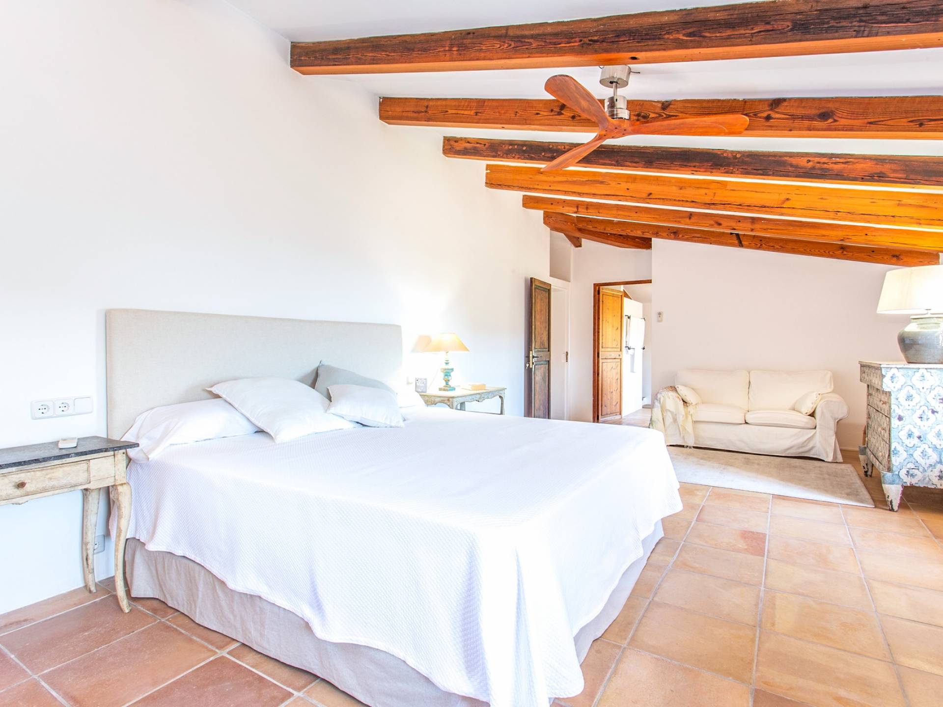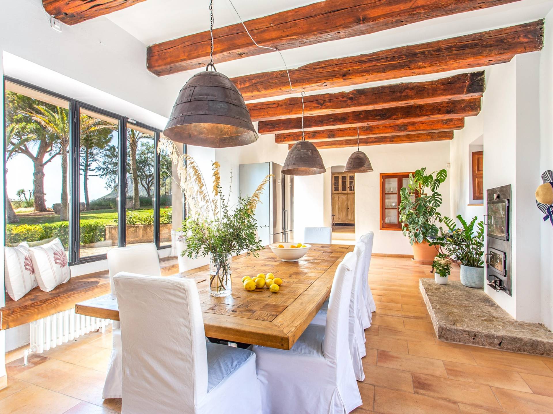 L'imponente zona giorno a doppia altezza vanta un camino con un grande vecchio frantoio. La bella cucina completamente attrezzata e la sala da pranzo si affacciano sul rigoglioso giardino con palme, ulivi e limoni. La Finca offre spazio per dormire per 12 persone ed è suddivisa in 6 camere matrimoniali tutte dal design rustico, creando un aspetto eclettico che enfatizza la natura, con travi in legno, pareti in pietra e soffitti alti.