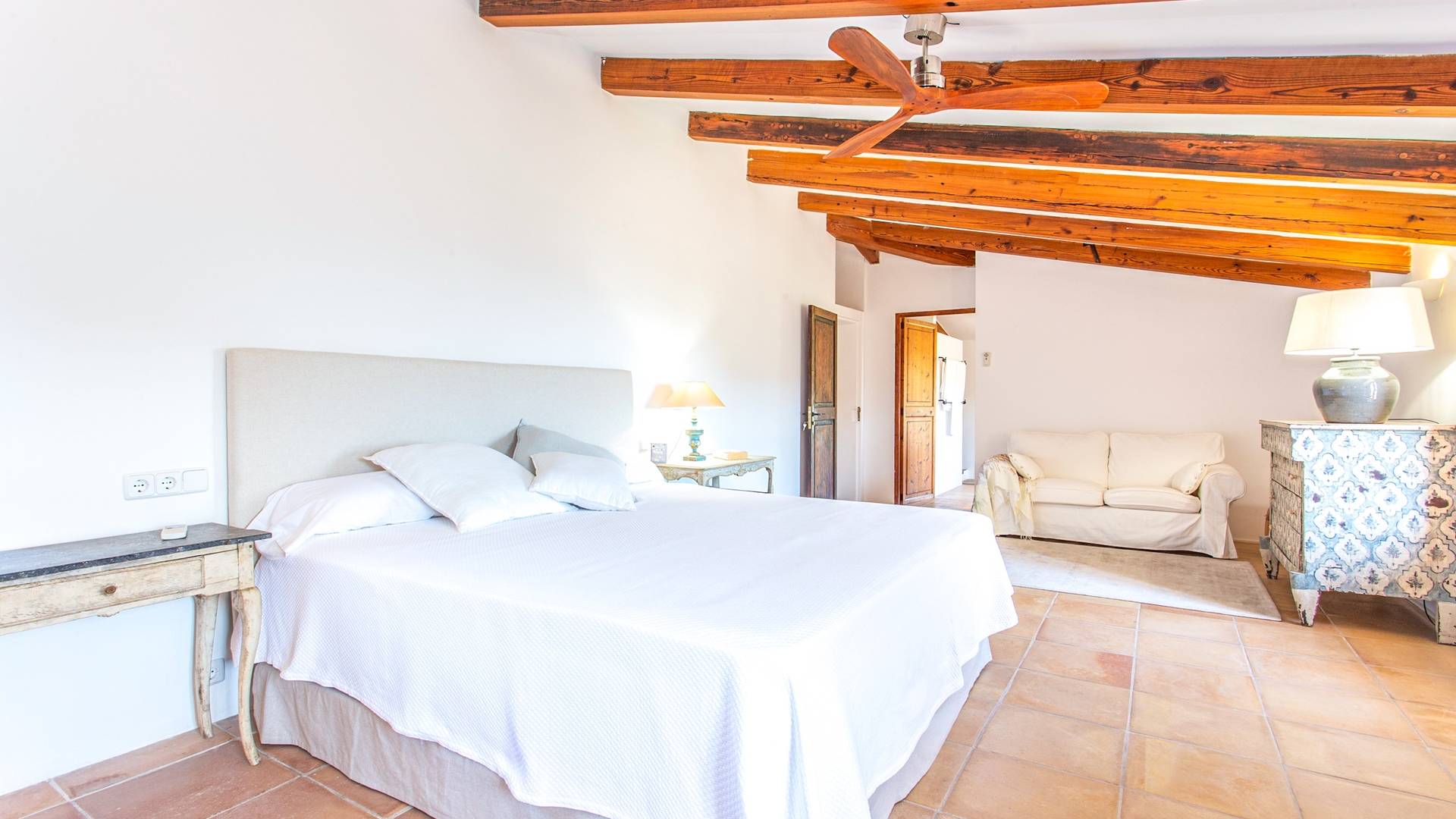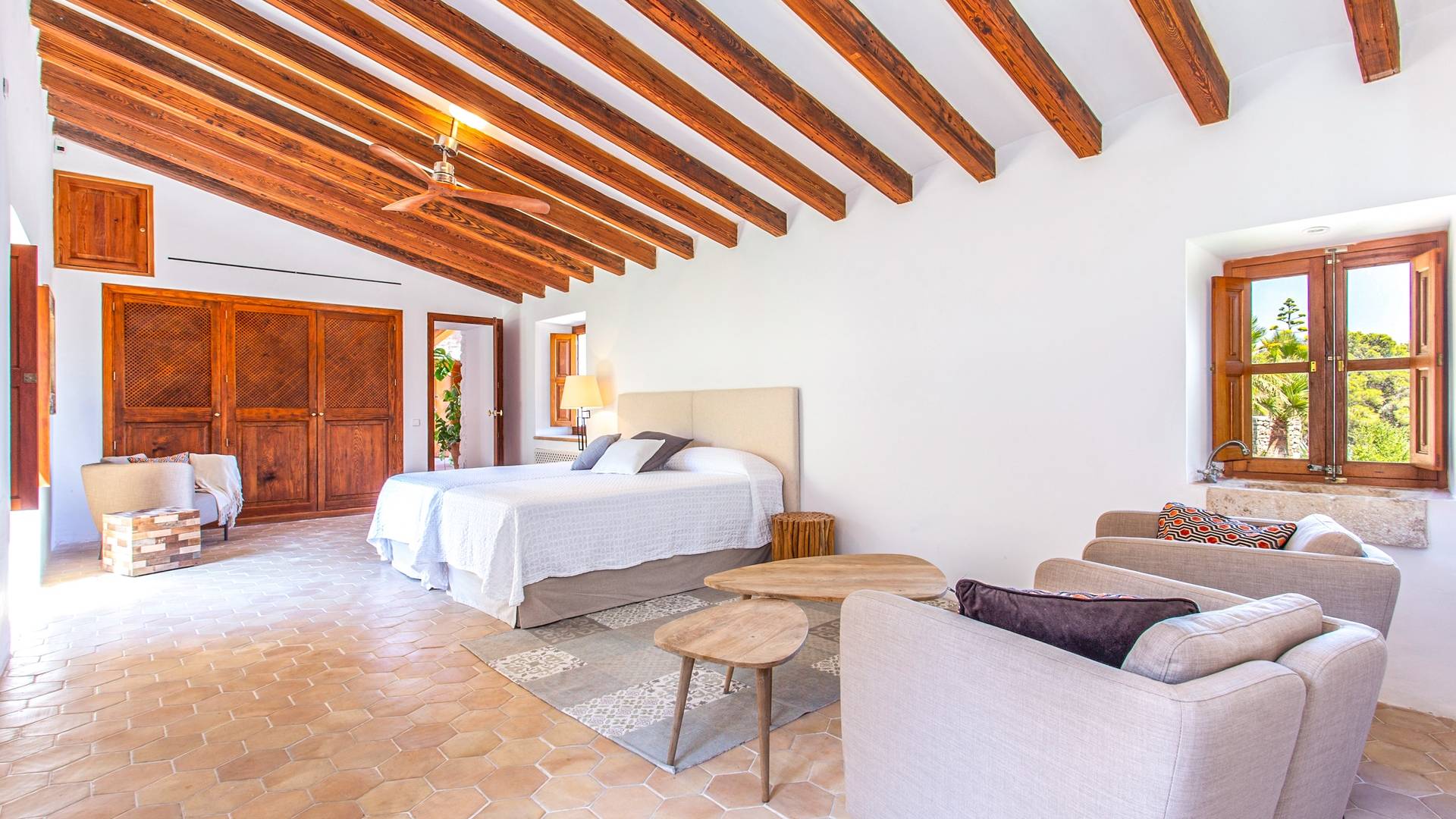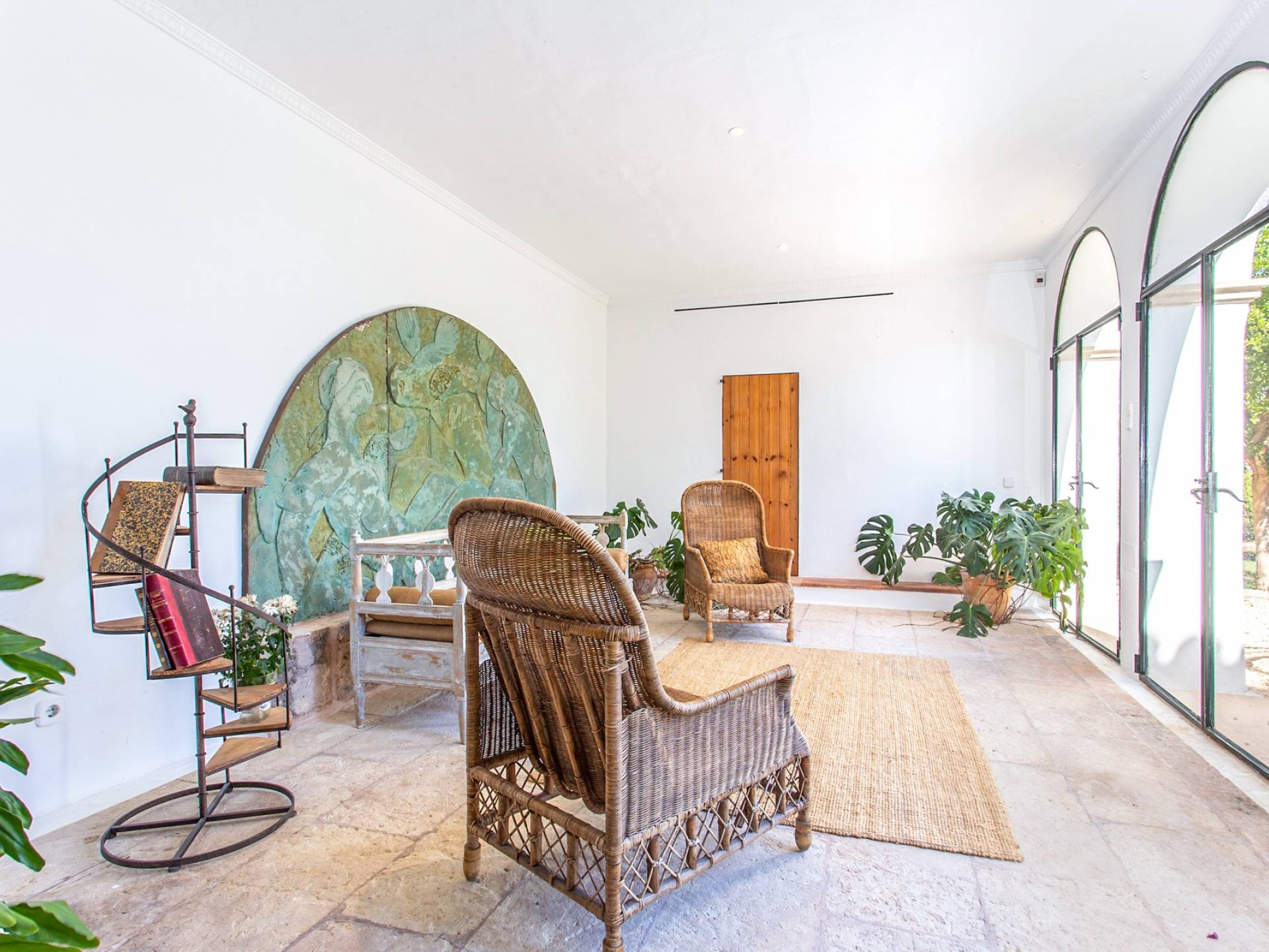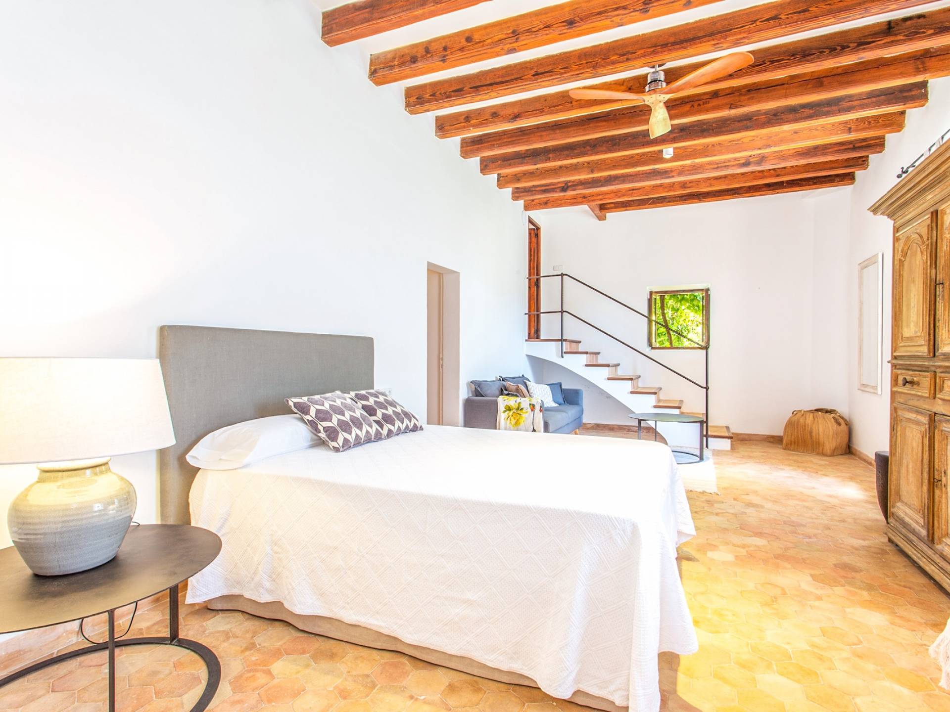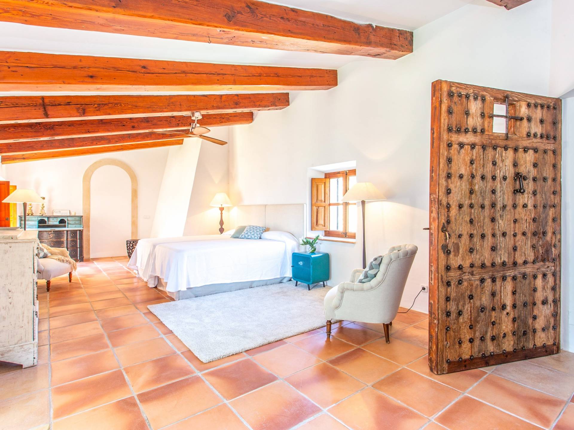L'imponente zona giorno a doppia altezza vanta un camino con un grande vecchio frantoio. La bella cucina completamente attrezzata e la sala da pranzo si affacciano sul rigoglioso giardino con palme, ulivi e limoni. La Finca offre spazio per dormire per 12 persone ed è suddivisa in 6 camere matrimoniali tutte dal design rustico, creando un aspetto eclettico che enfatizza la natura, con travi in legno, pareti in pietra e soffitti alti.