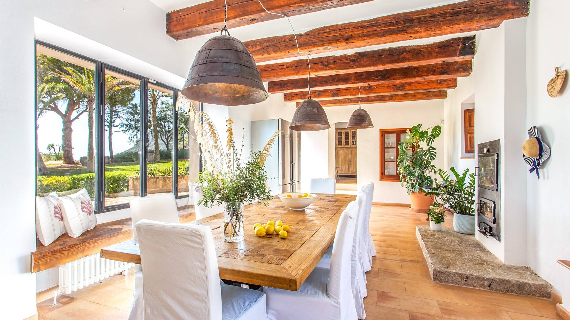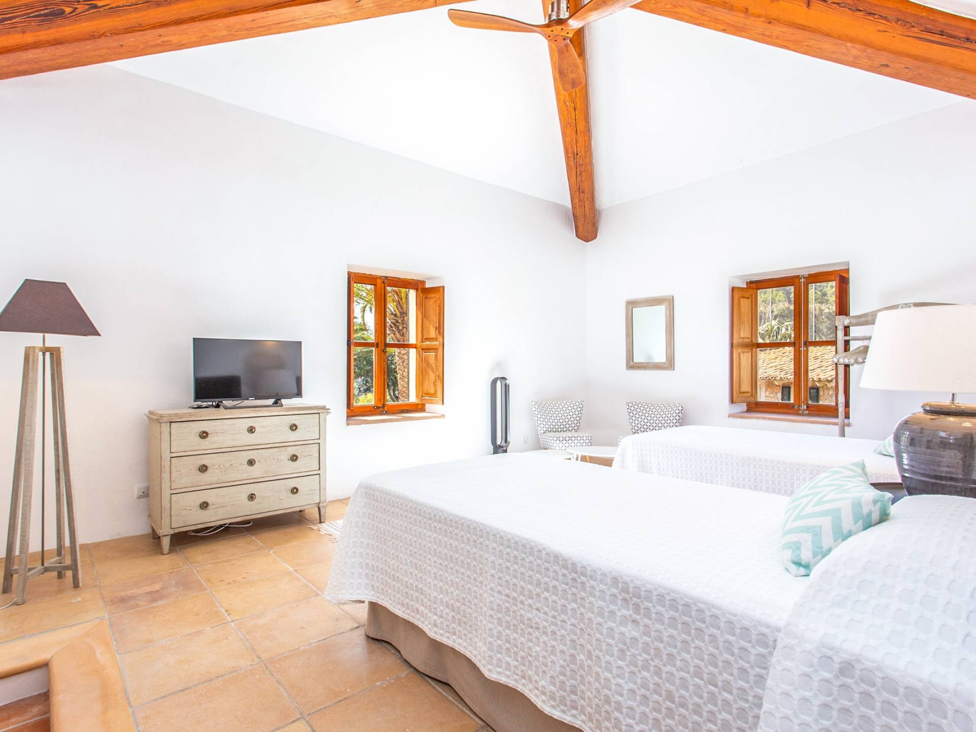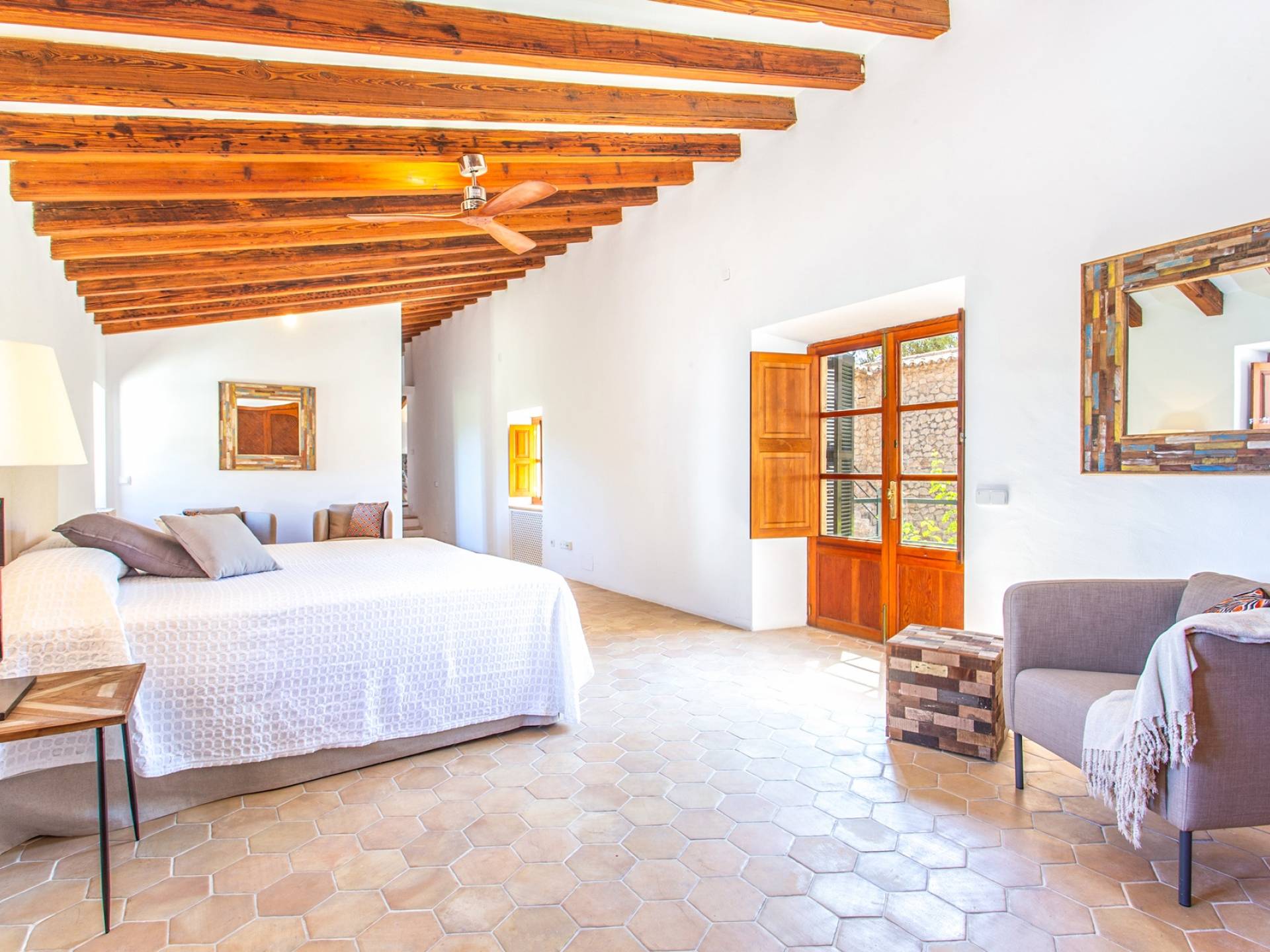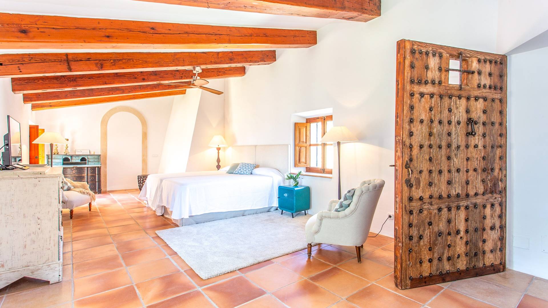 L'imponente zona giorno a doppia altezza vanta un camino con un grande vecchio frantoio. La bella cucina completamente attrezzata e la sala da pranzo si affacciano sul rigoglioso giardino con palme, ulivi e limoni. La Finca offre spazio per dormire per 12 persone ed è suddivisa in 6 camere matrimoniali tutte dal design rustico, creando un aspetto eclettico che enfatizza la natura, con travi in legno, pareti in pietra e soffitti alti.