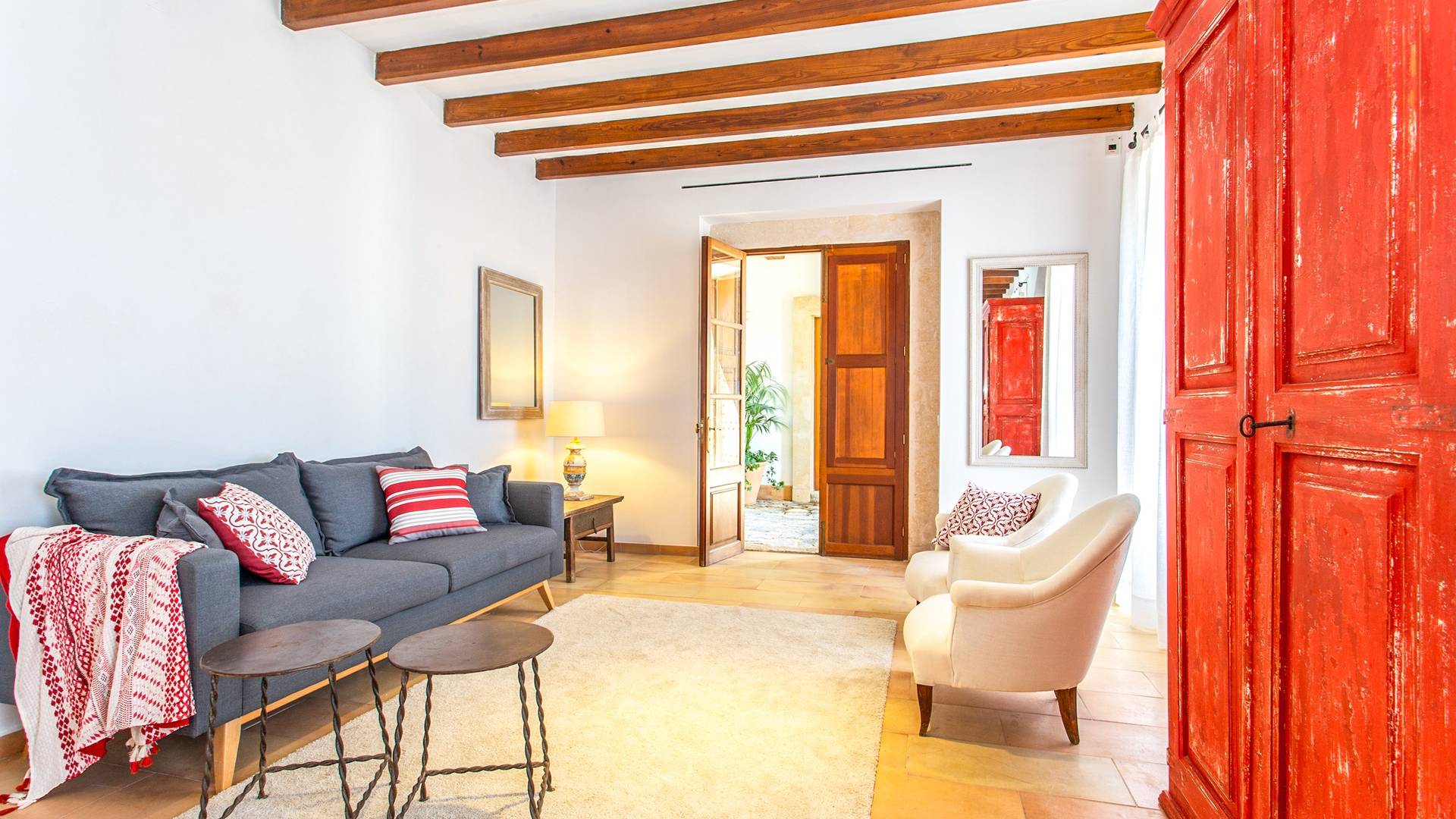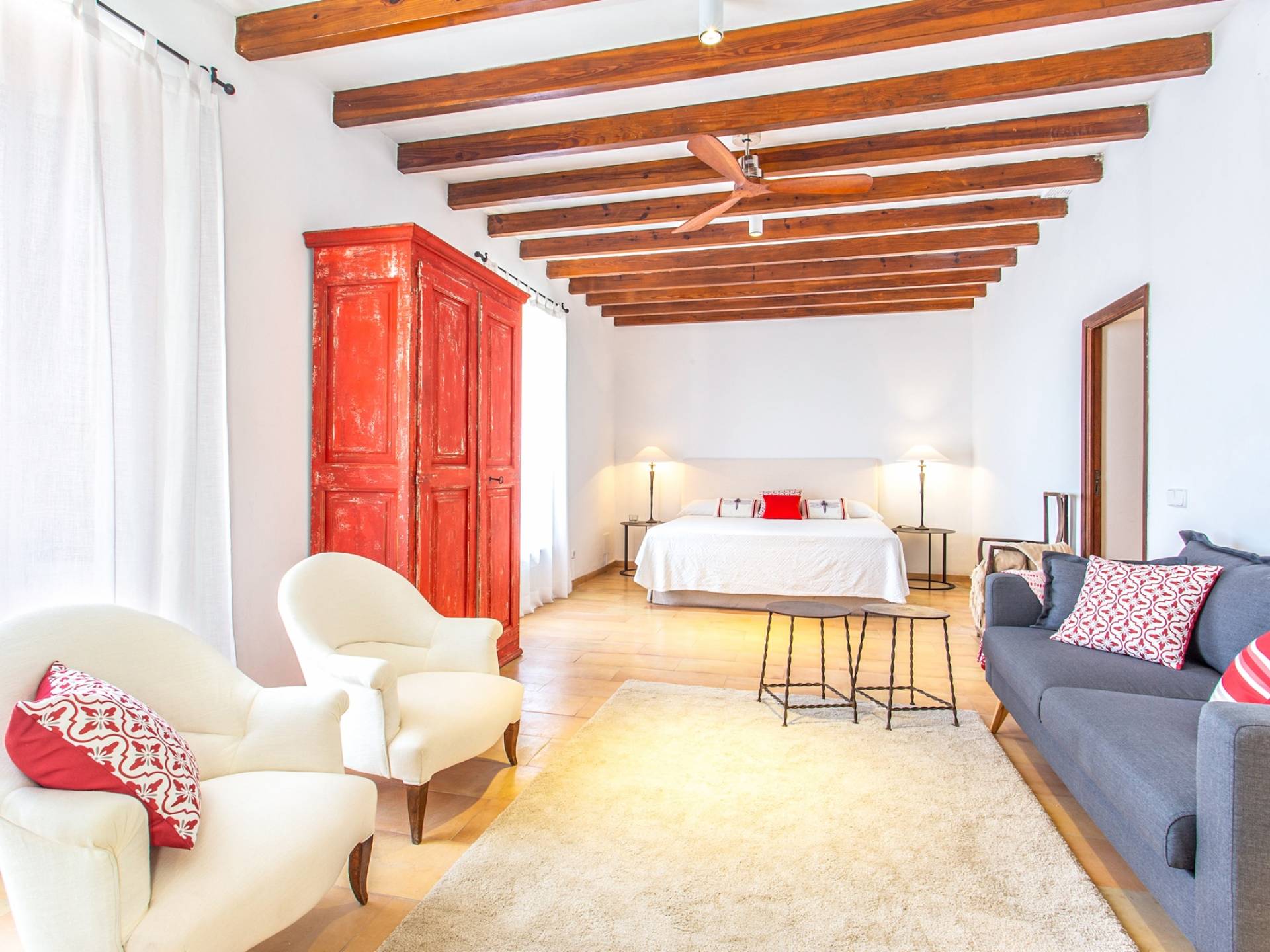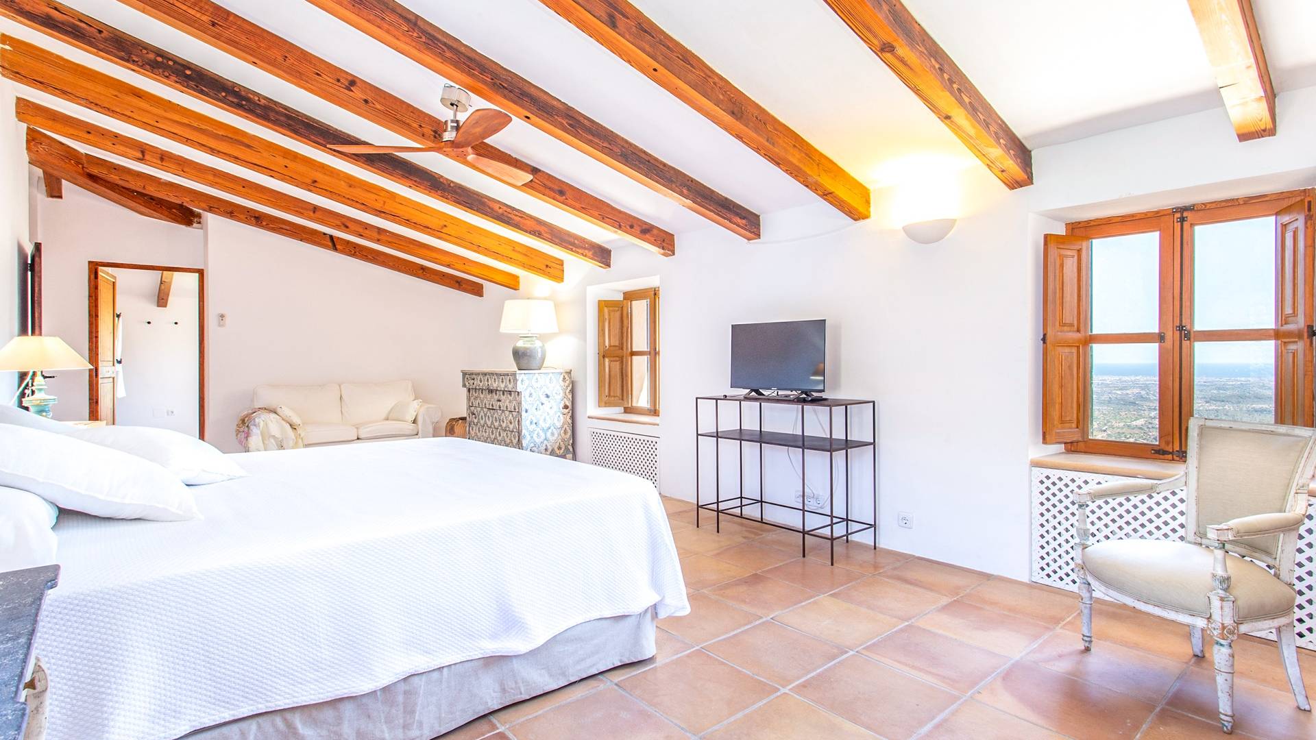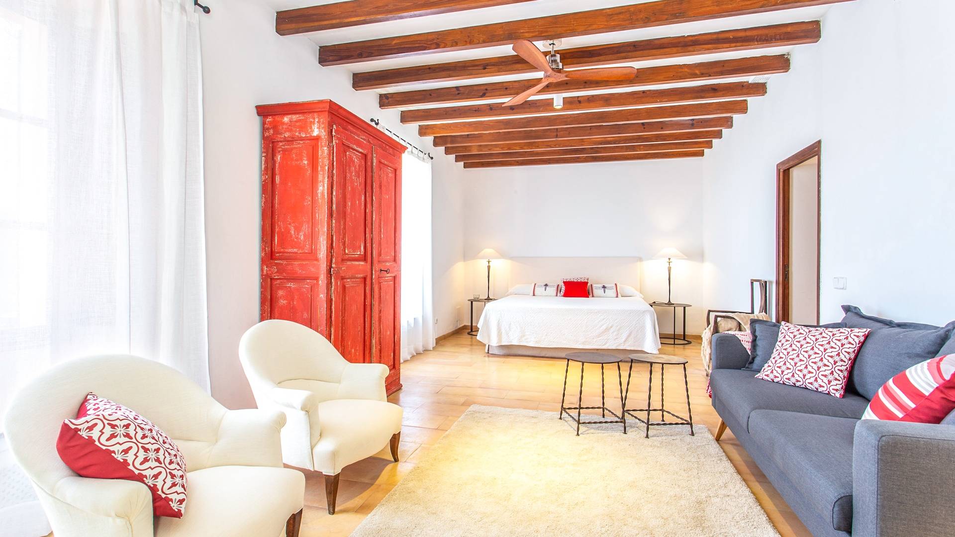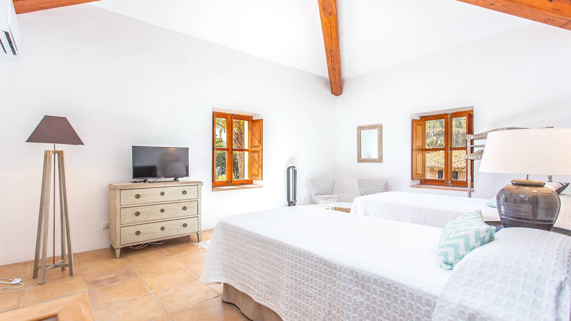 L'imponente zona giorno a doppia altezza vanta un camino con un grande vecchio frantoio. La bella cucina completamente attrezzata e la sala da pranzo si affacciano sul rigoglioso giardino con palme, ulivi e limoni. La Finca offre spazio per dormire per 12 persone ed è suddivisa in 6 camere matrimoniali tutte dal design rustico, creando un aspetto eclettico che enfatizza la natura, con travi in legno, pareti in pietra e soffitti alti.