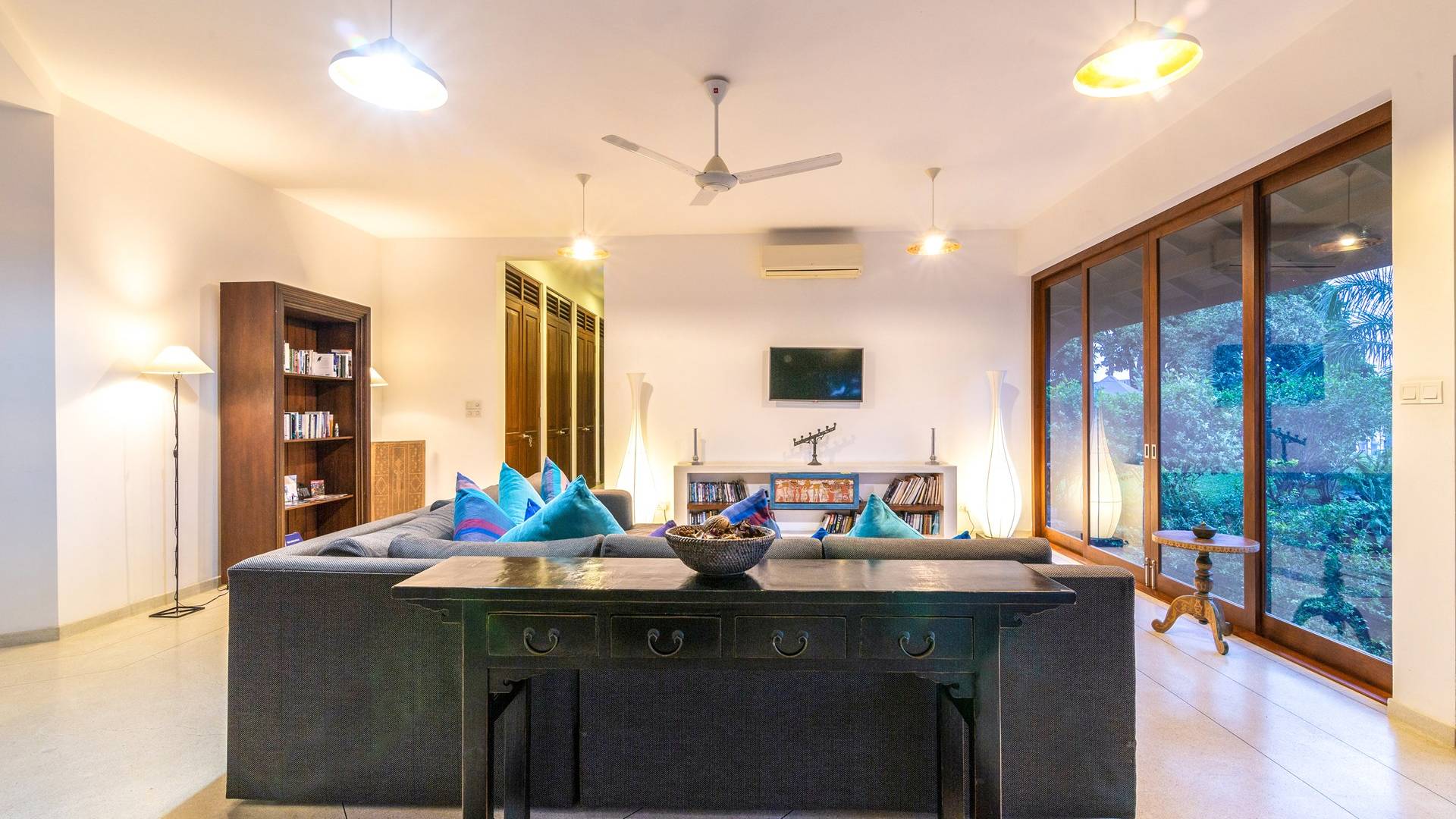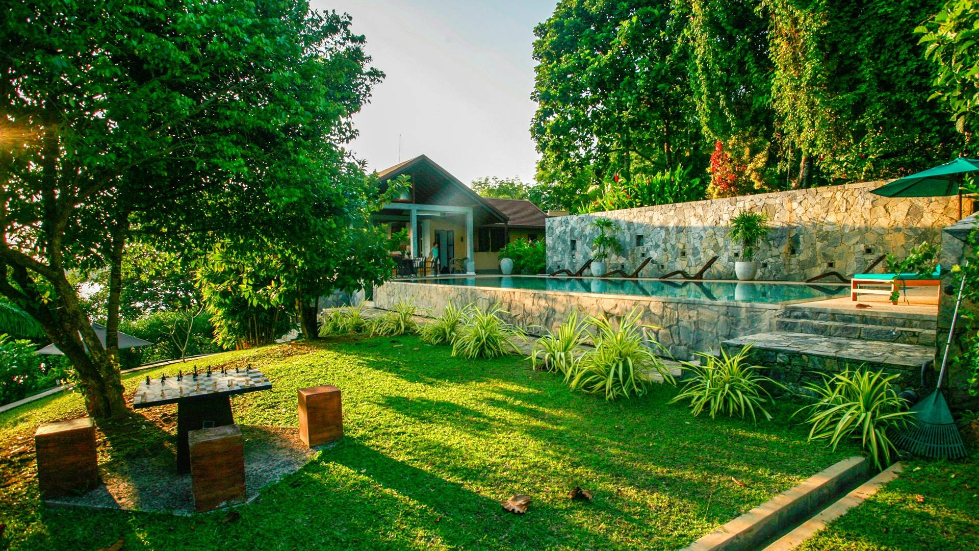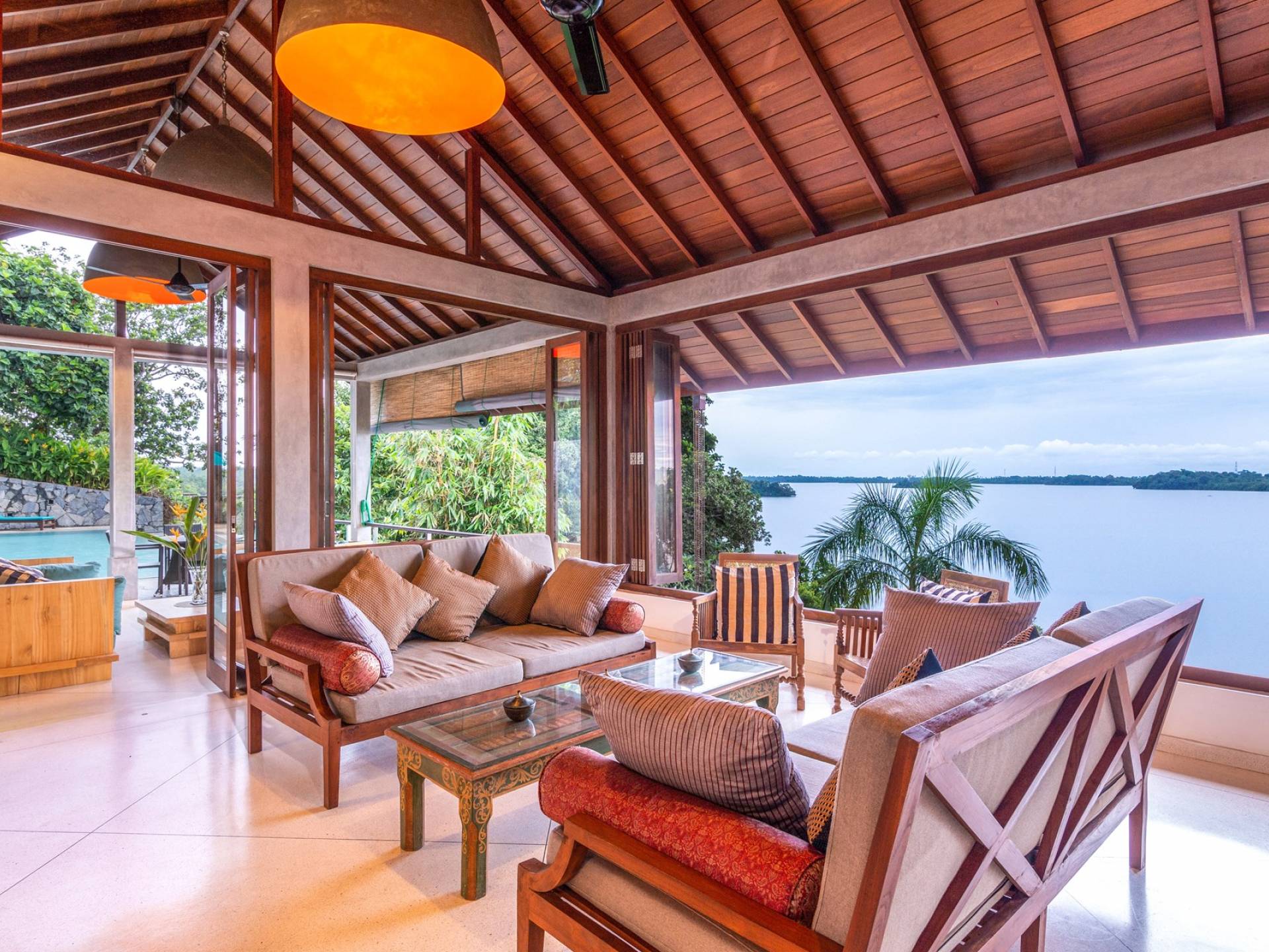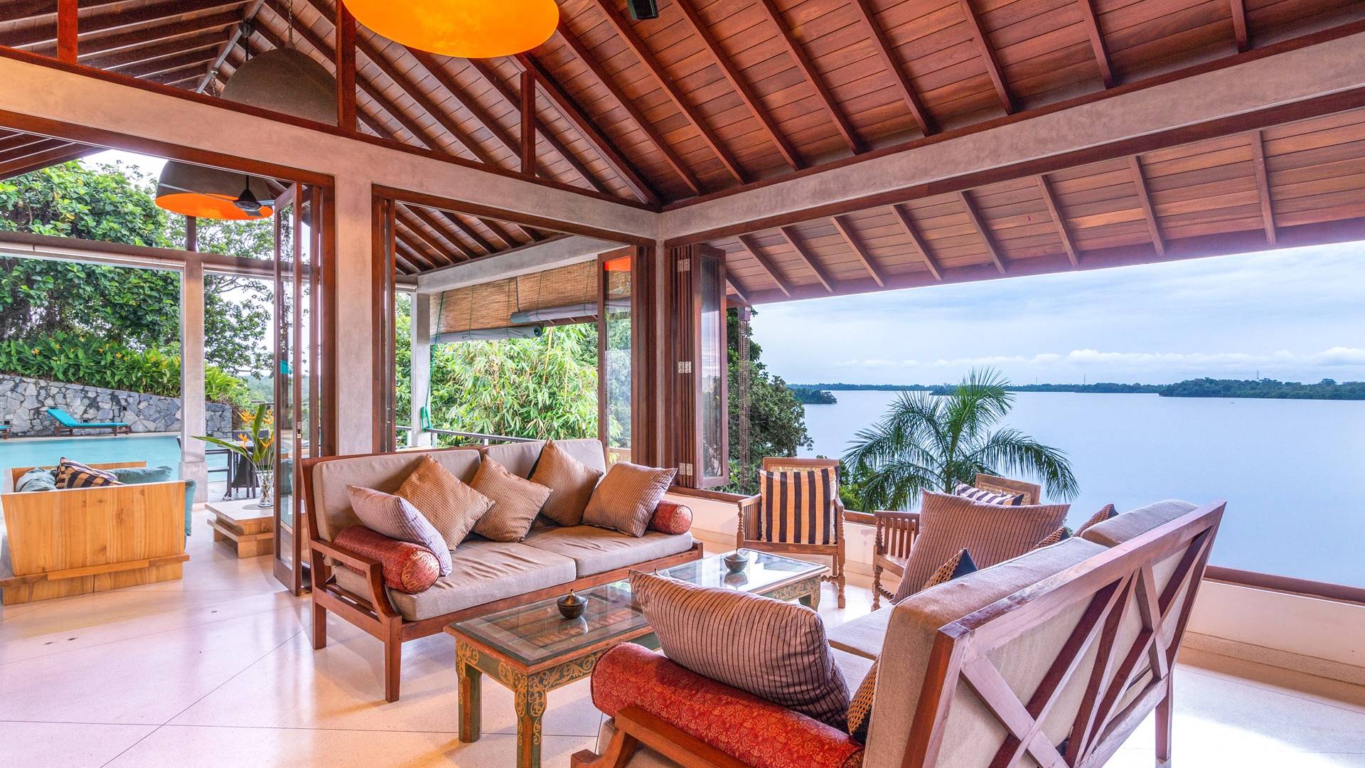 A un livello di ingresso si trovano il salotto principale chiuso e la zona pranzo aperta con splendida vista sul lago, nonché una delle camere matrimoniali. Scendendo le scale, a un livello inferiore, si trovano le restanti 3 camere da letto e una sala TV e l'accesso dall'esterno al livello inferiore è un ampio locale con attrezzi ginnici. Ci sono giochi e libri, nonché cavalletti per gli ospiti che portano i propri colori. Il cuoco è capace sia della cucina occidentale che di quella locale e la sua cucina è spesso elogiata nelle recensioni. Sopra la piscina a un livello più alto c'è lo yoga shala e ci sono anche 3 biciclette fornite per l'uso.