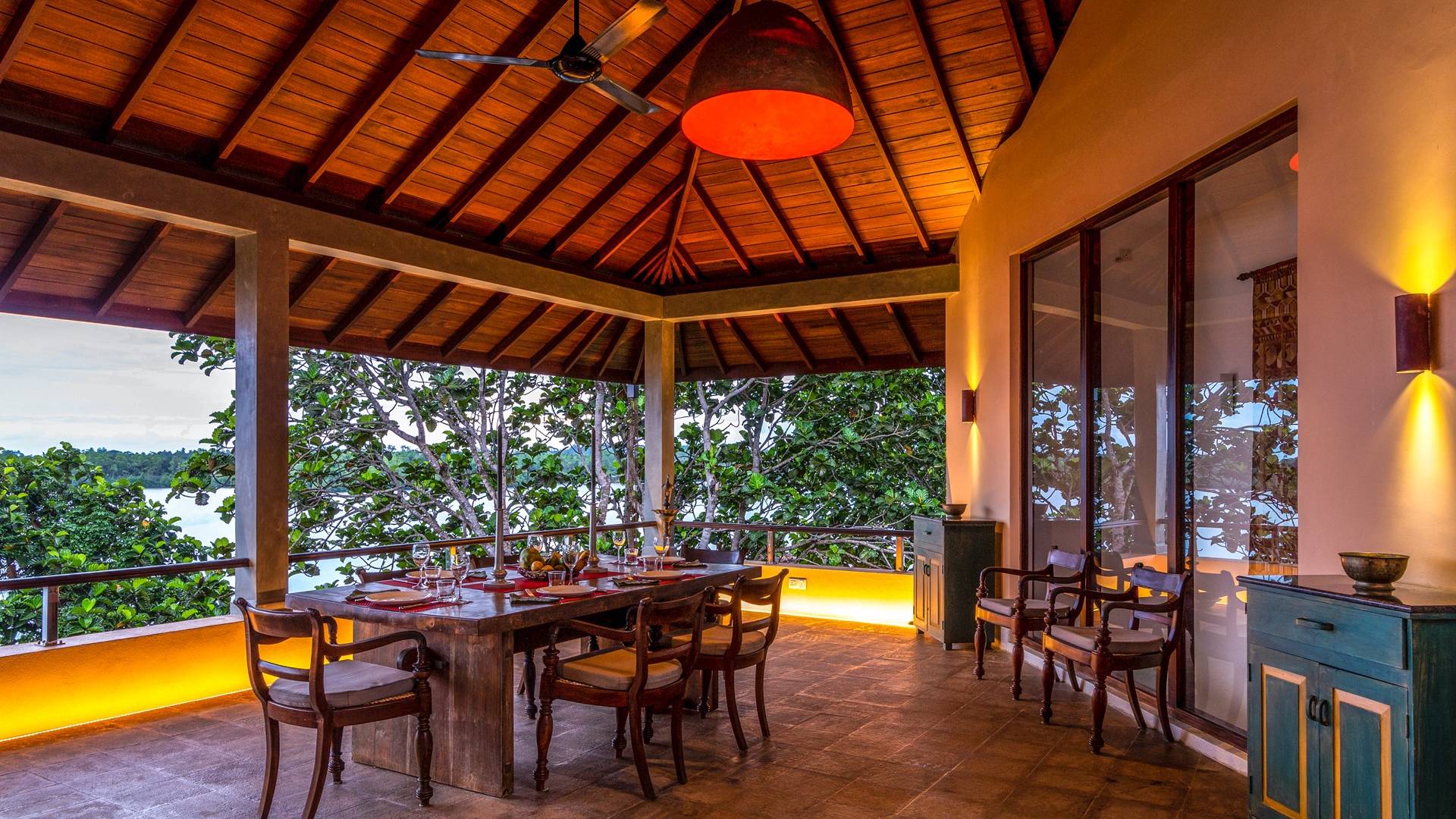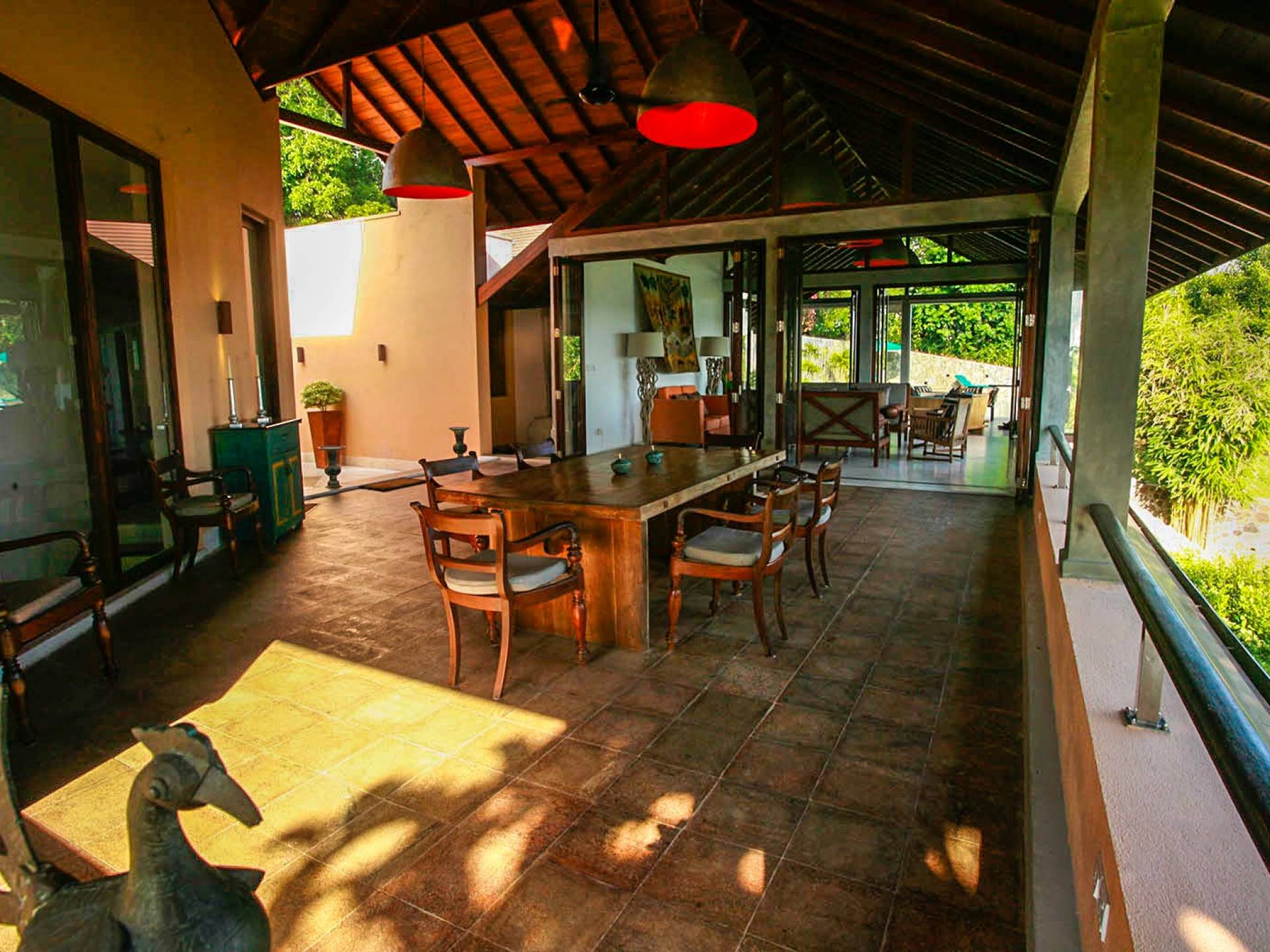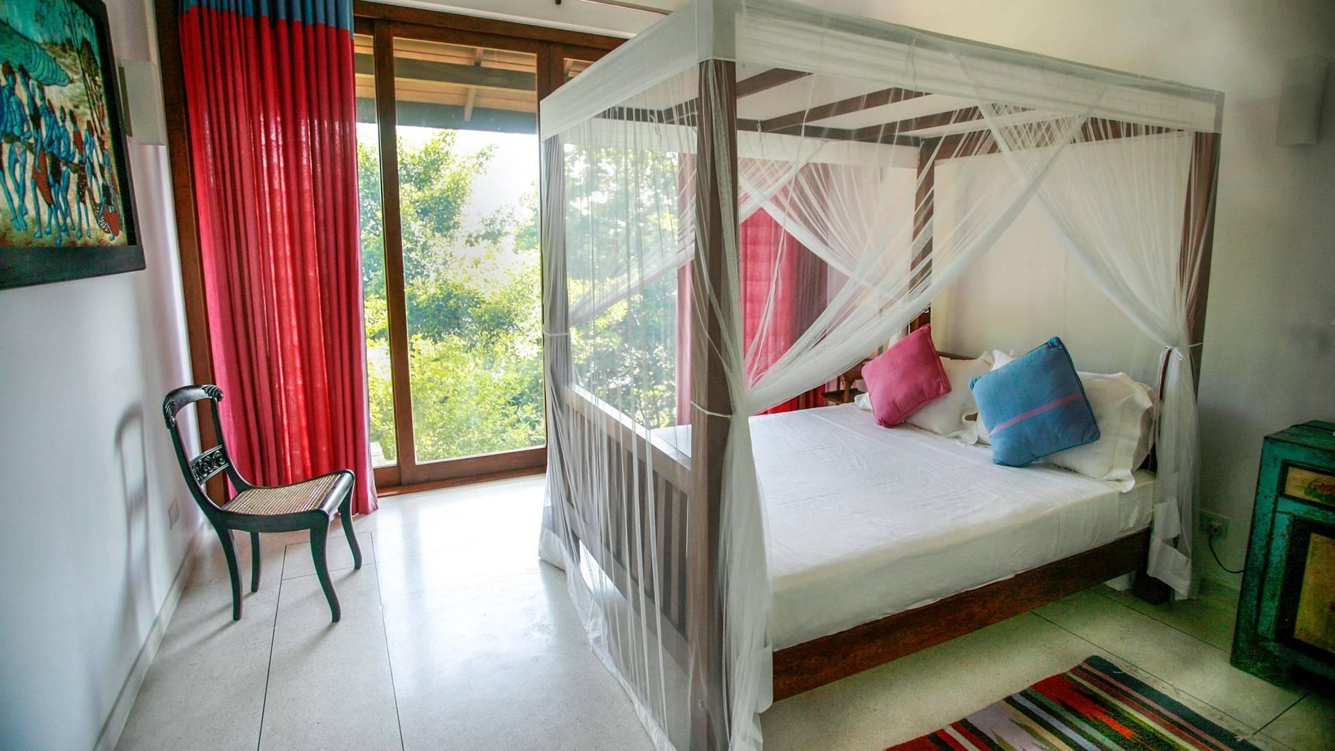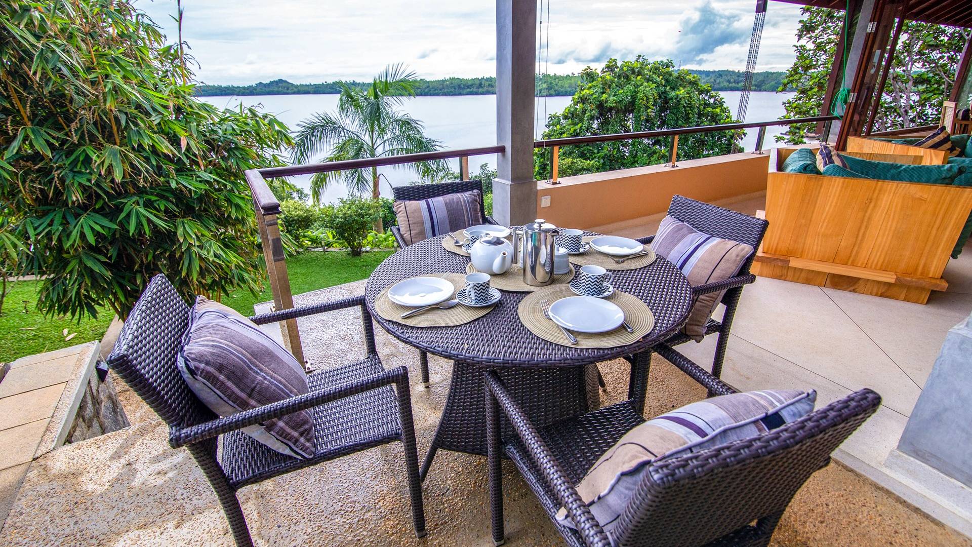 A un livello di ingresso si trovano il salotto principale chiuso e la zona pranzo aperta con splendida vista sul lago, nonché una delle camere matrimoniali. Scendendo le scale, a un livello inferiore, si trovano le restanti 3 camere da letto e una sala TV e l'accesso dall'esterno al livello inferiore è un ampio locale con attrezzi ginnici. Ci sono giochi e libri, nonché cavalletti per gli ospiti che portano i propri colori. Il cuoco è capace sia della cucina occidentale che di quella locale e la sua cucina è spesso elogiata nelle recensioni. Sopra la piscina a un livello più alto c'è lo yoga shala e ci sono anche 3 biciclette fornite per l'uso.