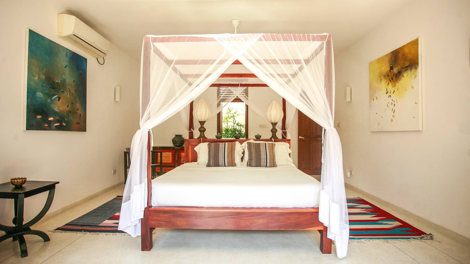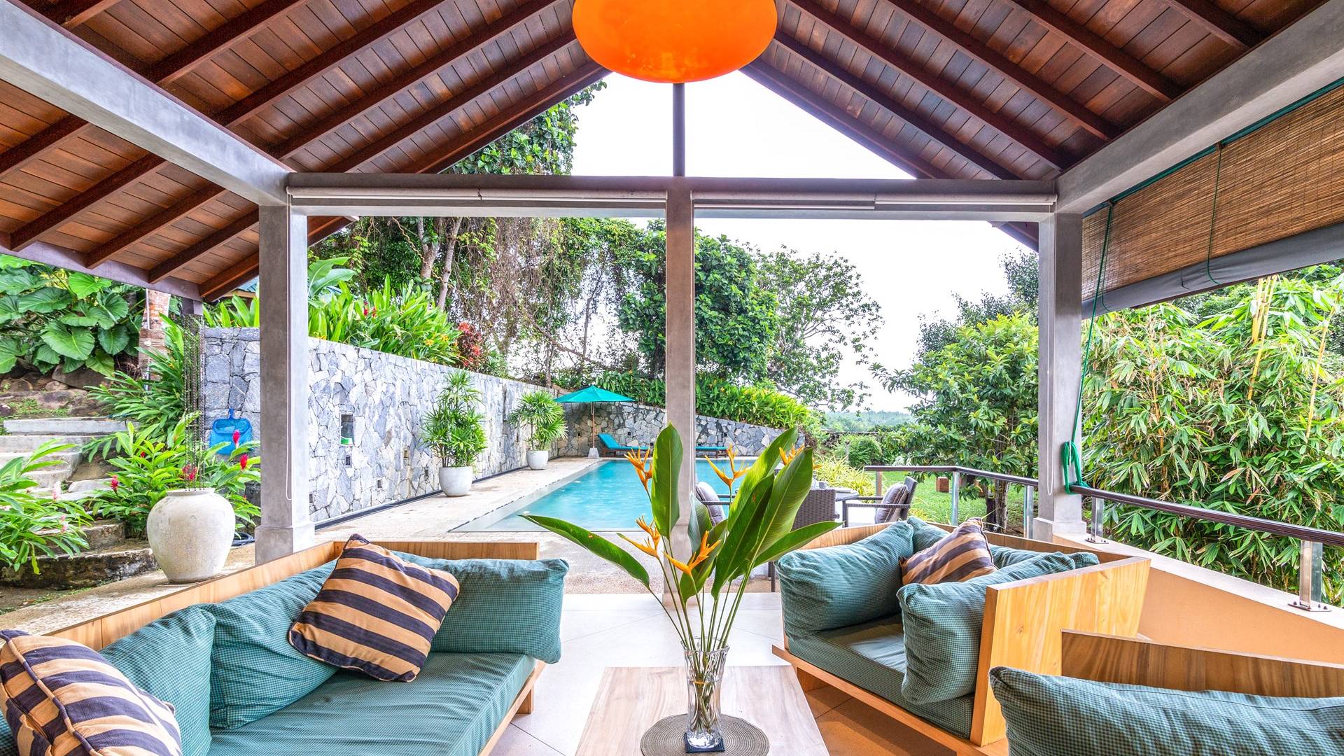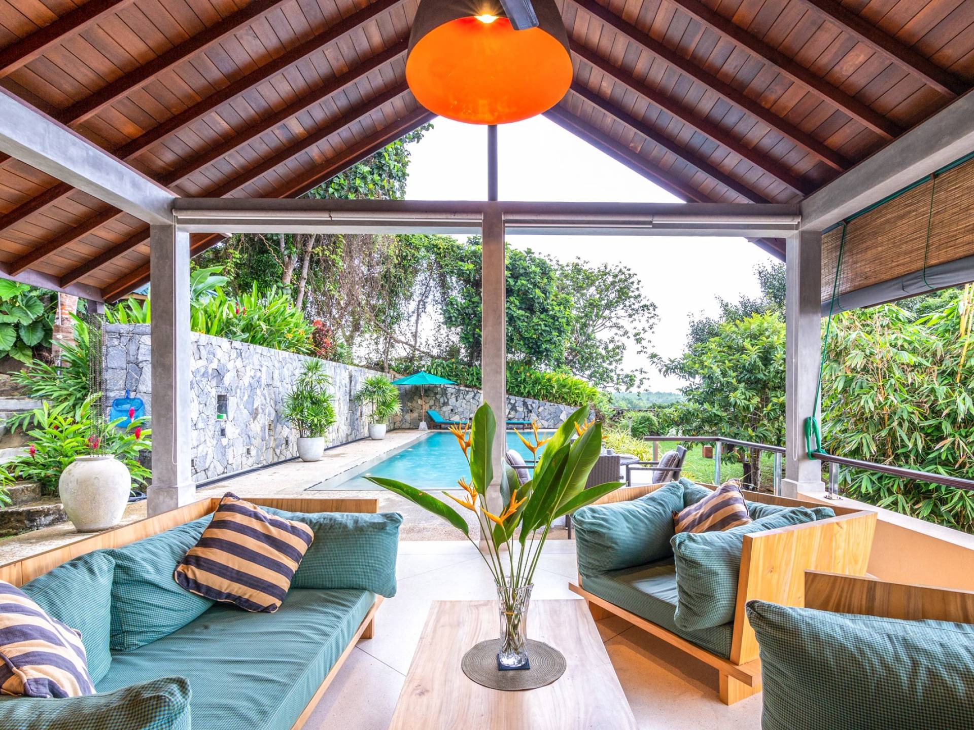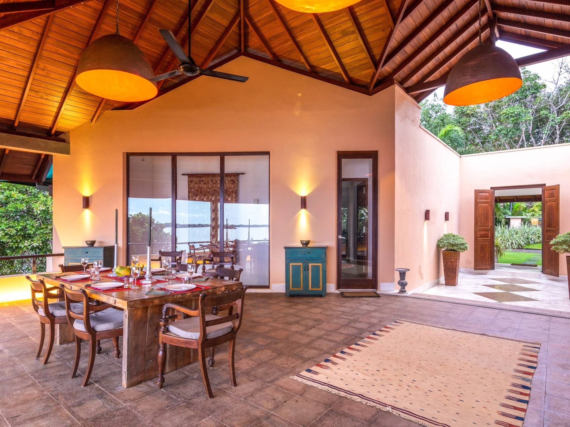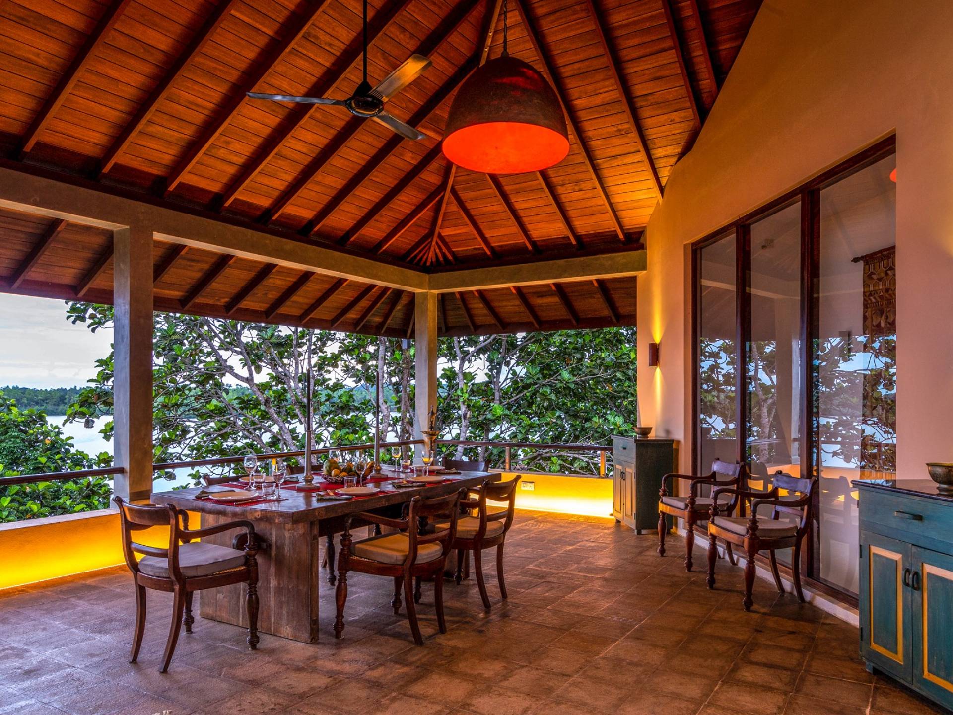 A un livello di ingresso si trovano il salotto principale chiuso e la zona pranzo aperta con splendida vista sul lago, nonché una delle camere matrimoniali. Scendendo le scale, a un livello inferiore, si trovano le restanti 3 camere da letto e una sala TV e l'accesso dall'esterno al livello inferiore è un ampio locale con attrezzi ginnici. Ci sono giochi e libri, nonché cavalletti per gli ospiti che portano i propri colori. Il cuoco è capace sia della cucina occidentale che di quella locale e la sua cucina è spesso elogiata nelle recensioni. Sopra la piscina a un livello più alto c'è lo yoga shala e ci sono anche 3 biciclette fornite per l'uso.