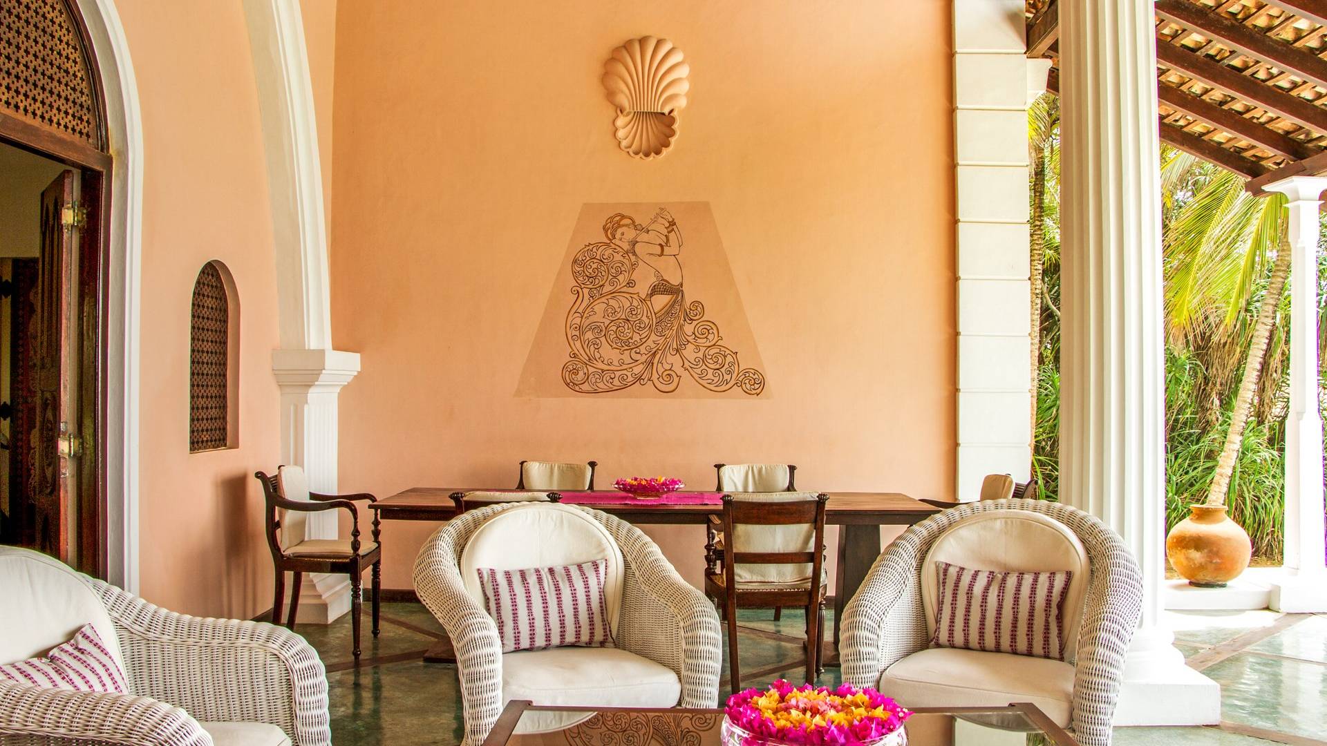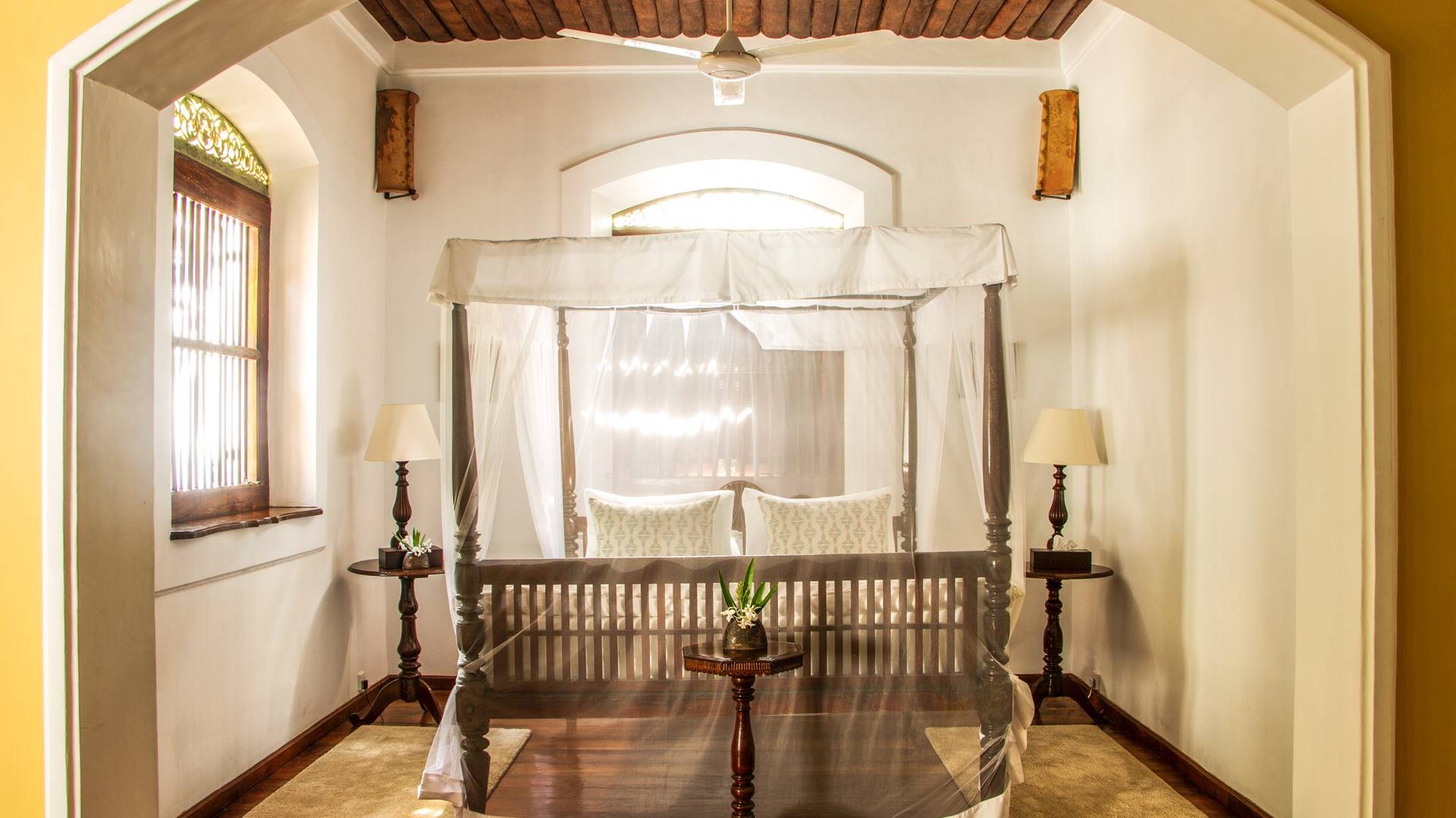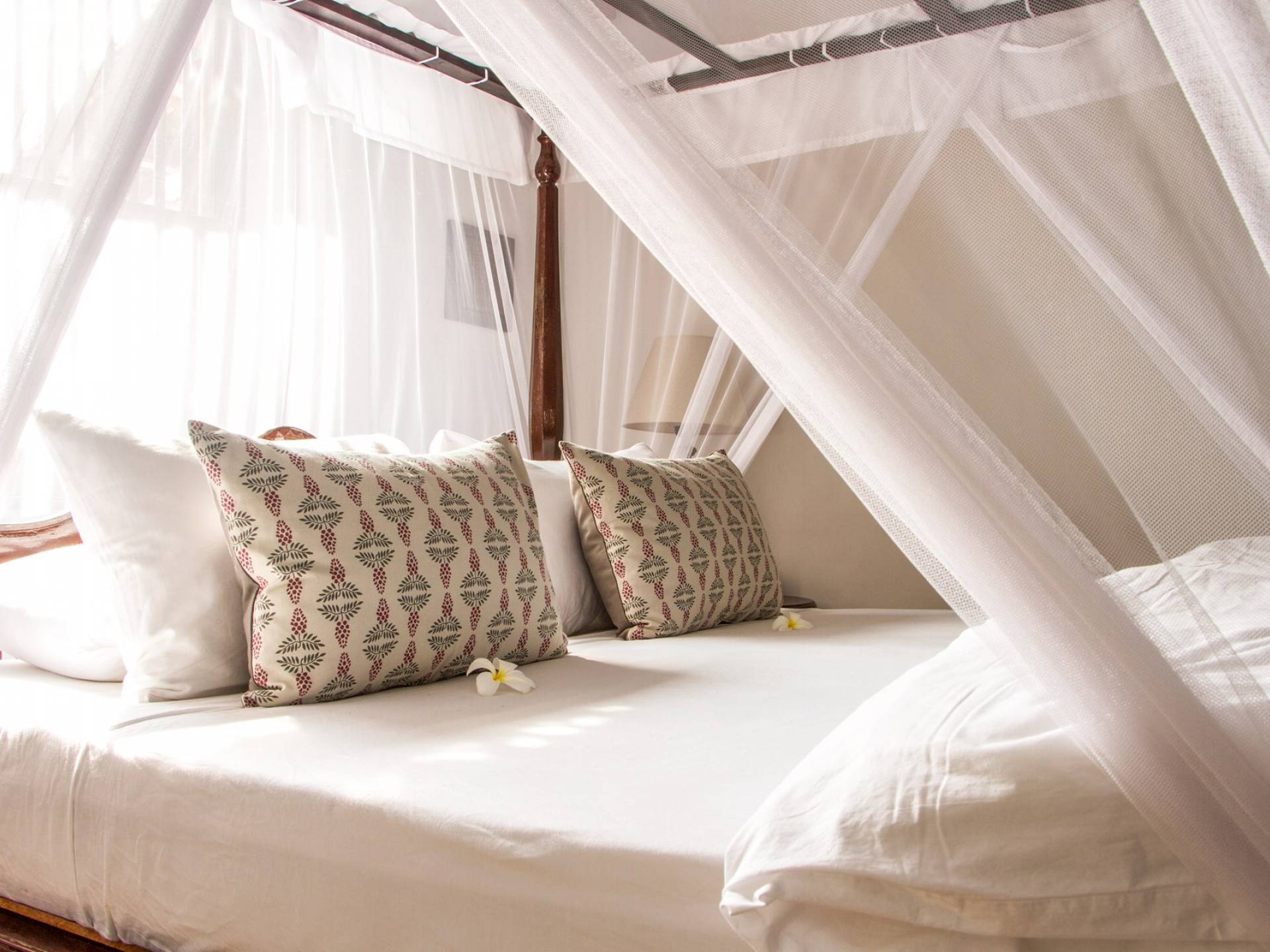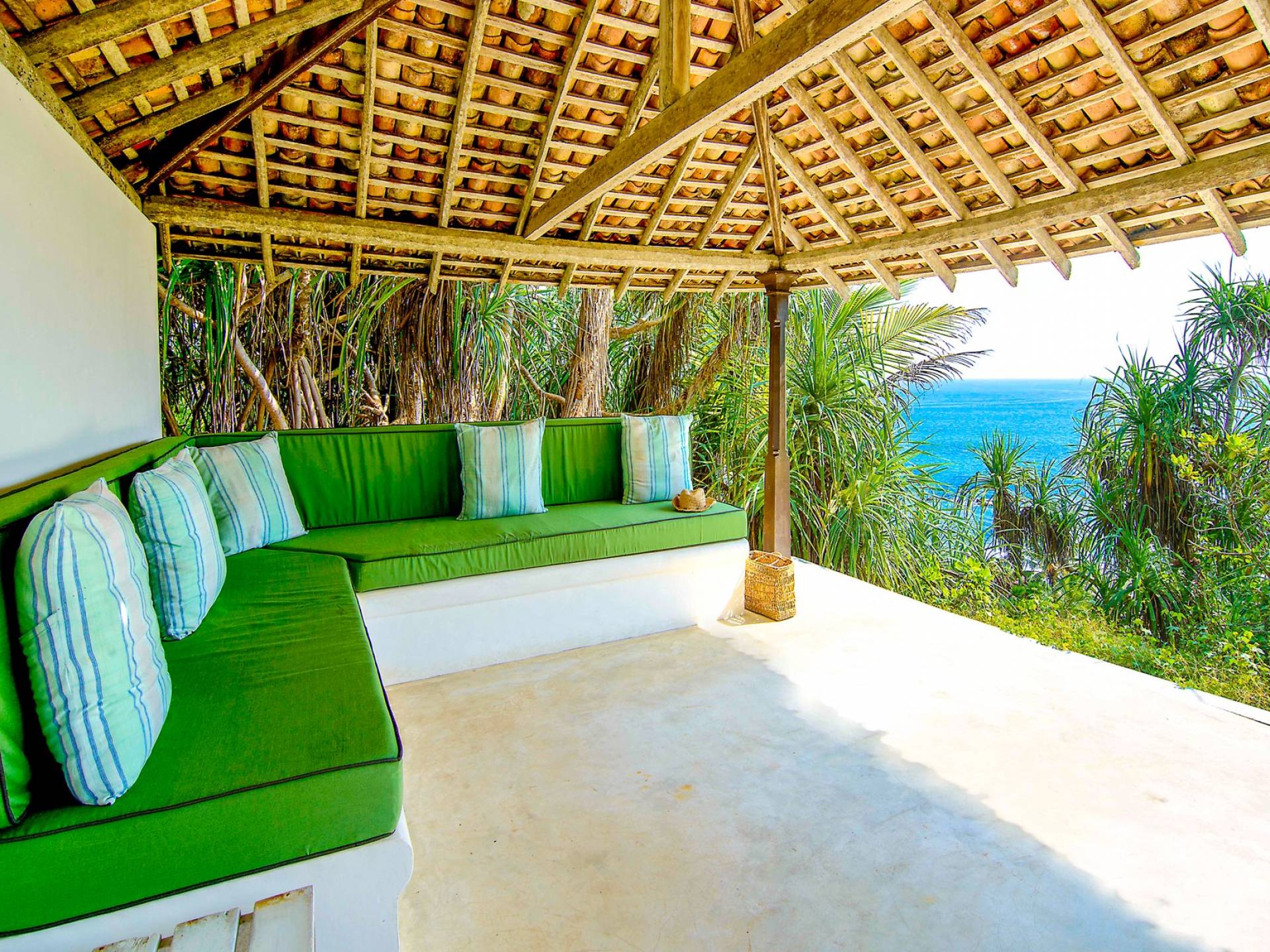Il salotto di Pointe Sud si apre su un'ampia veranda con gradini bianchi che conducono teatralmente in giardino. Sedie rilassanti e un tavolo da pranzo per dieci si affacciano sulla spettacolare vista a 180 gradi sul mare, sulla piscina e sul giardino. Quattro comode camere da letto si aprono sul soggiorno. Ogni camera è climatizzata, dotata di letti a baldacchino e dispone di un moderno bagno privato con doccia. Due delle camere presentano splendide viste sul mare attraverso le finestre con sbarre in legno kithul. La camera da letto verso est della villa ha anche un giardino privato con vasca a padiglione. La camera doppia, situata sul retro della casa, è arredata per i bambini. La quinta camera da letto ha due porte, una che dà sul giardino su entrambi i lati.