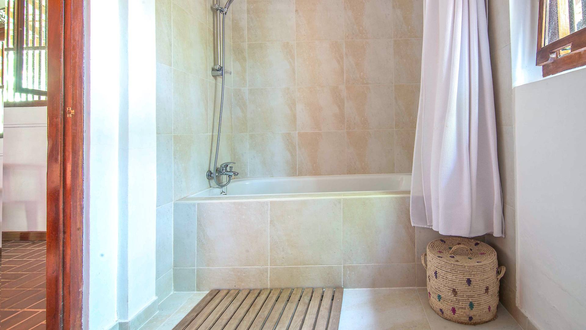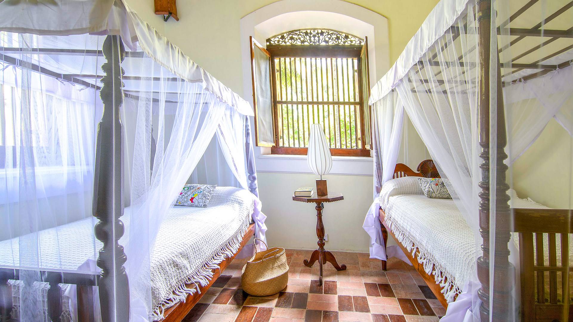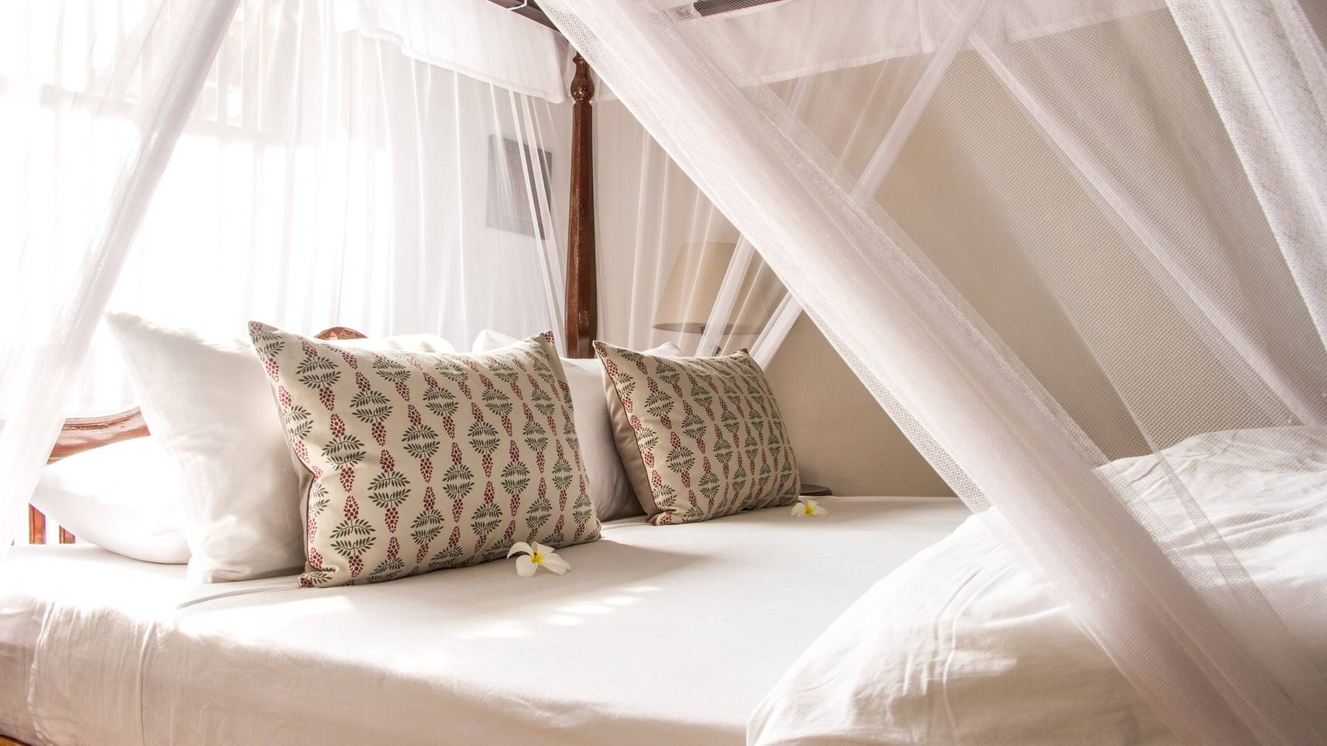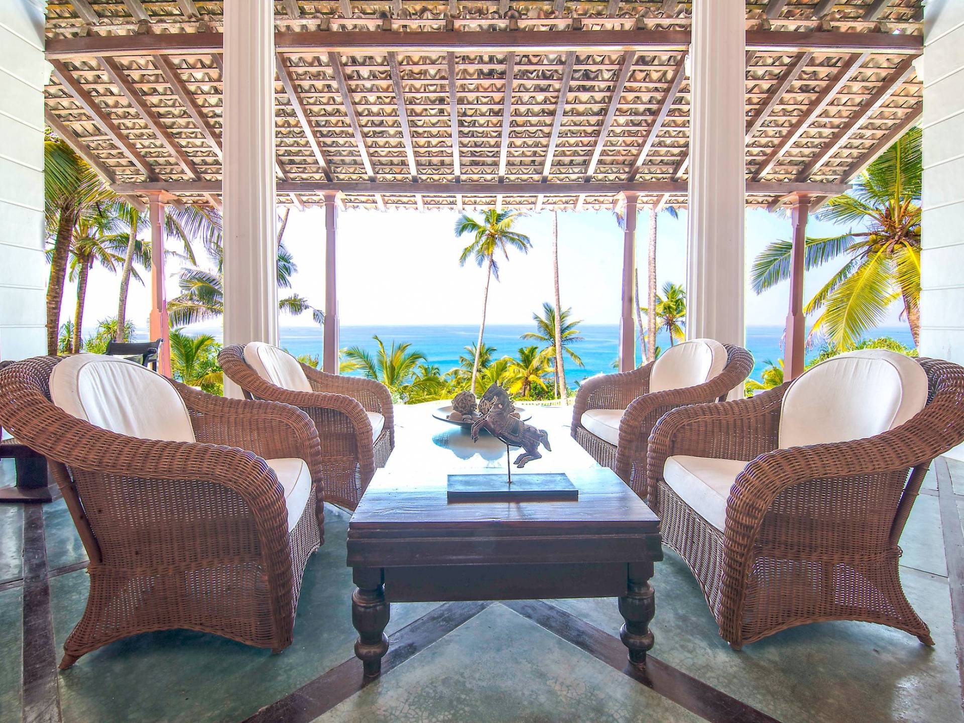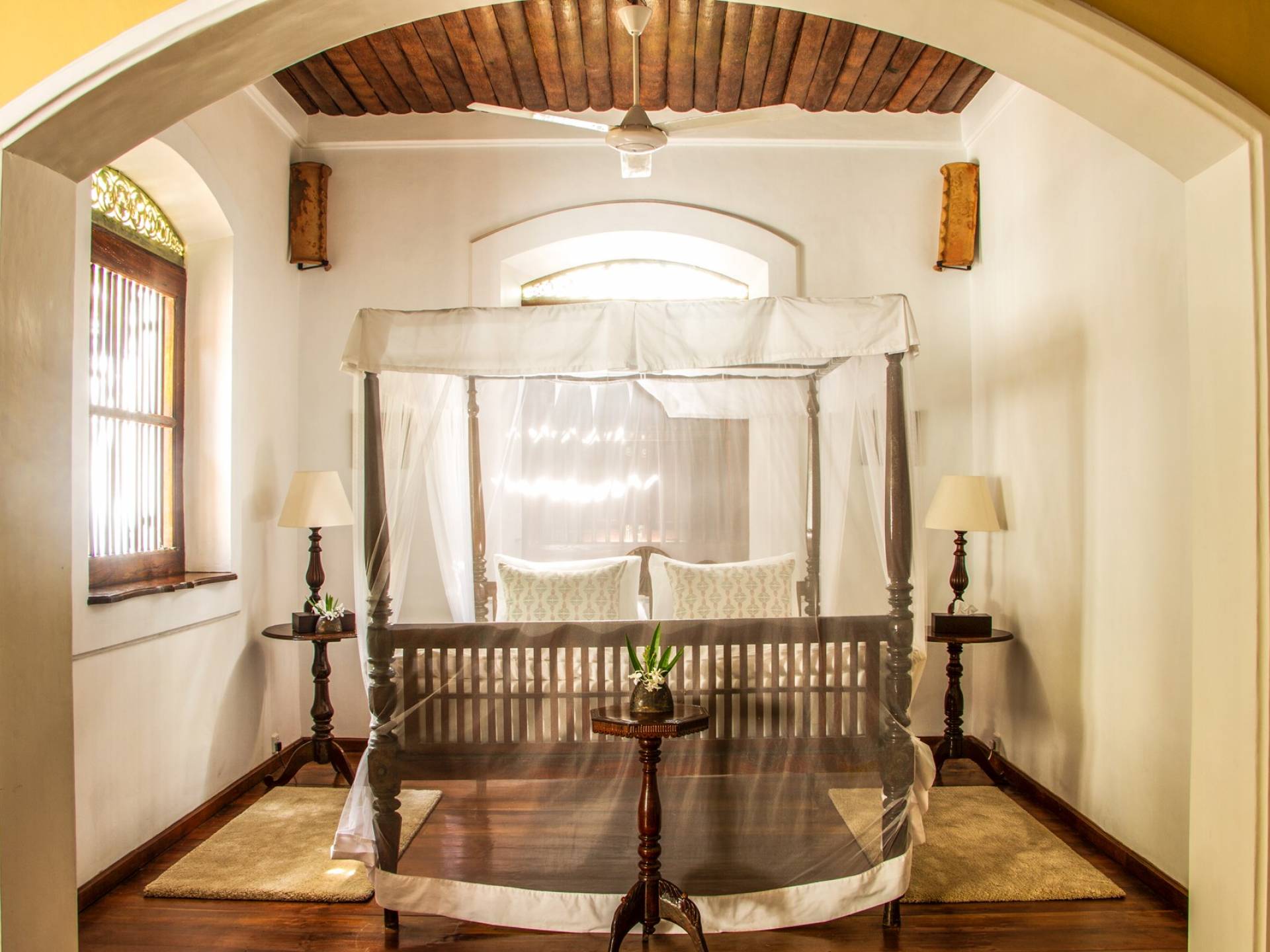 Il salotto di Pointe Sud si apre su un'ampia veranda con gradini bianchi che conducono teatralmente in giardino. Sedie rilassanti e un tavolo da pranzo per dieci si affacciano sulla spettacolare vista a 180 gradi sul mare, sulla piscina e sul giardino. Quattro comode camere da letto si aprono sul soggiorno. Ogni camera è climatizzata, dotata di letti a baldacchino e dispone di un moderno bagno privato con doccia. Due delle camere presentano splendide viste sul mare attraverso le finestre con sbarre in legno kithul. La camera da letto verso est della villa ha anche un giardino privato con vasca a padiglione. La camera doppia, situata sul retro della casa, è arredata per i bambini. La quinta camera da letto ha due porte, una che dà sul giardino su entrambi i lati.