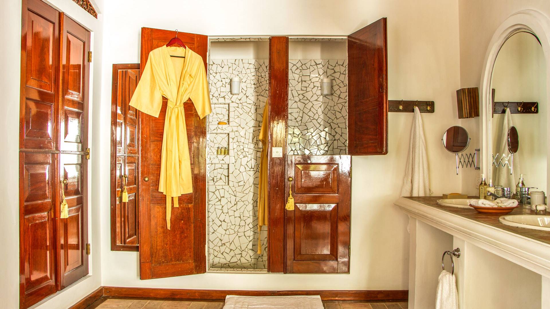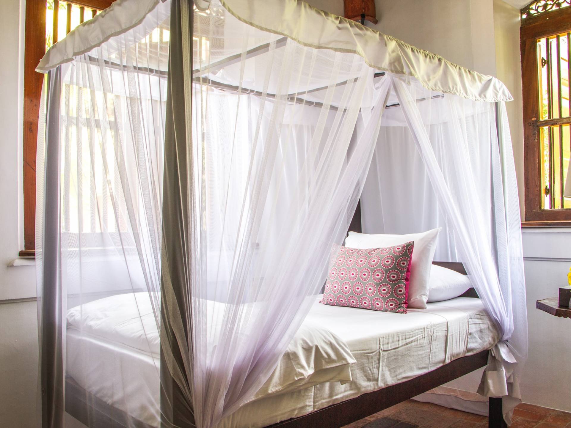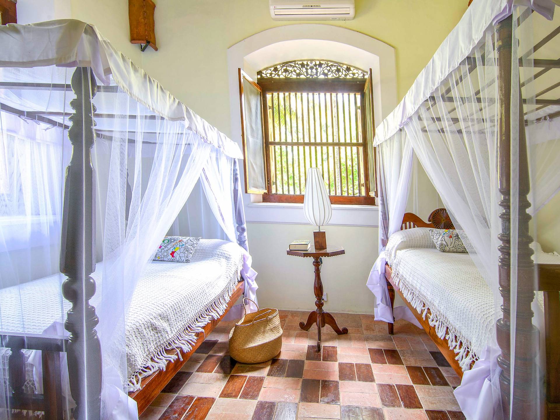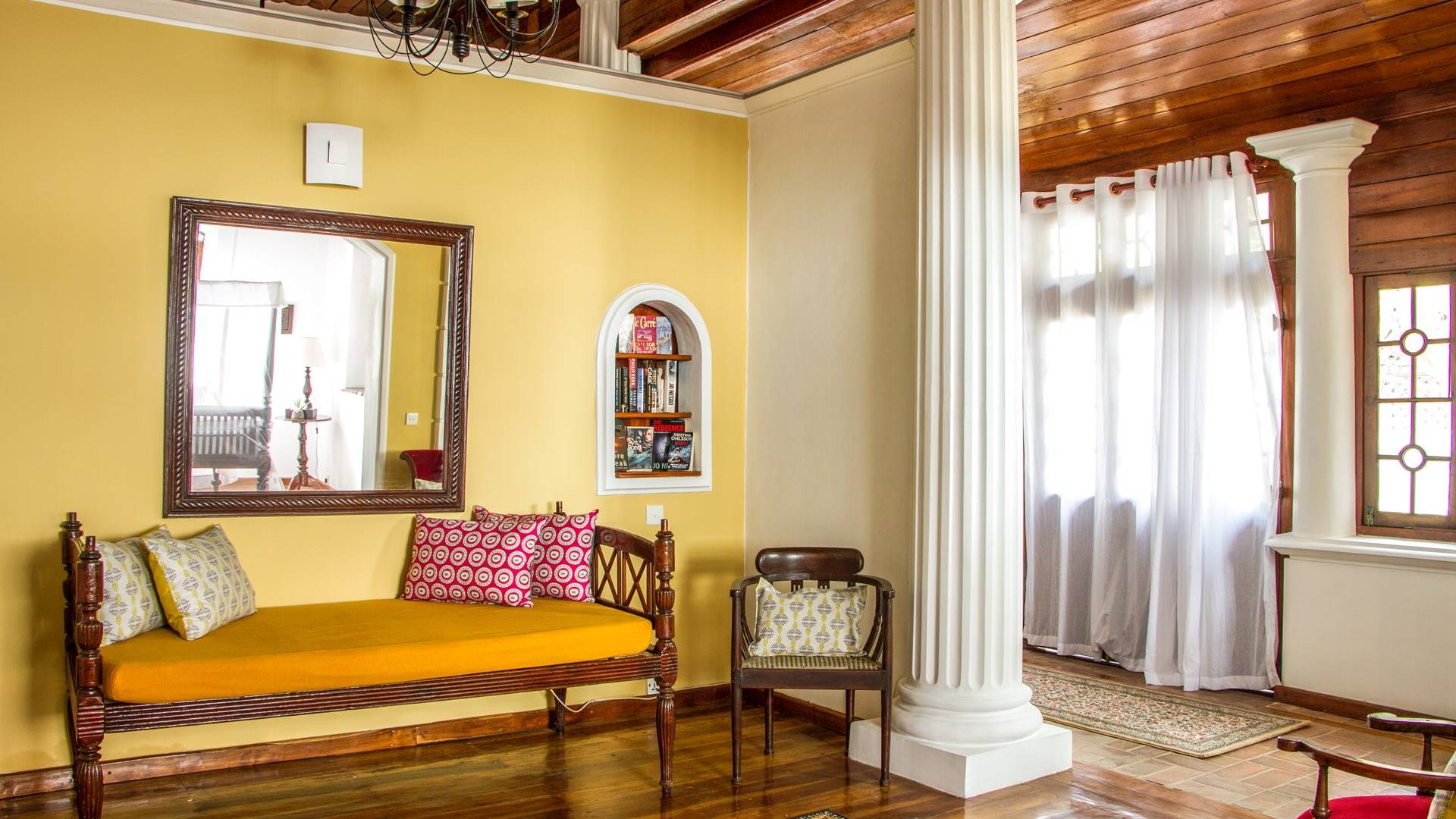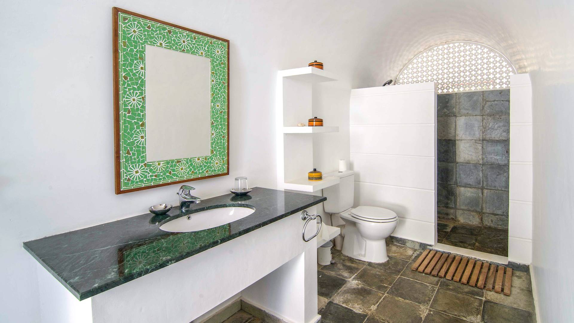 Il salotto di Pointe Sud si apre su un'ampia veranda con gradini bianchi che conducono teatralmente in giardino. Sedie rilassanti e un tavolo da pranzo per dieci si affacciano sulla spettacolare vista a 180 gradi sul mare, sulla piscina e sul giardino. Quattro comode camere da letto si aprono sul soggiorno. Ogni camera è climatizzata, dotata di letti a baldacchino e dispone di un moderno bagno privato con doccia. Due delle camere presentano splendide viste sul mare attraverso le finestre con sbarre in legno kithul. La camera da letto verso est della villa ha anche un giardino privato con vasca a padiglione. La camera doppia, situata sul retro della casa, è arredata per i bambini. La quinta camera da letto ha due porte, una che dà sul giardino su entrambi i lati.