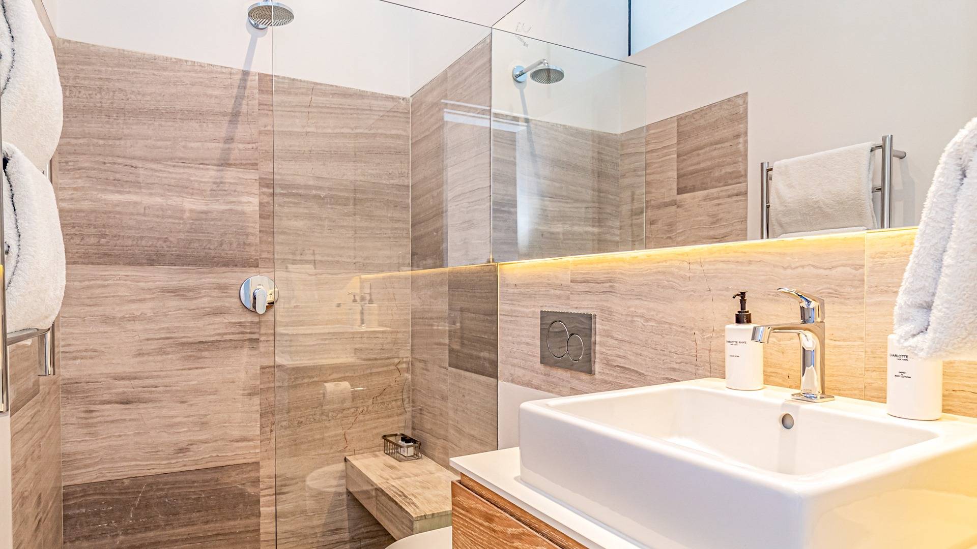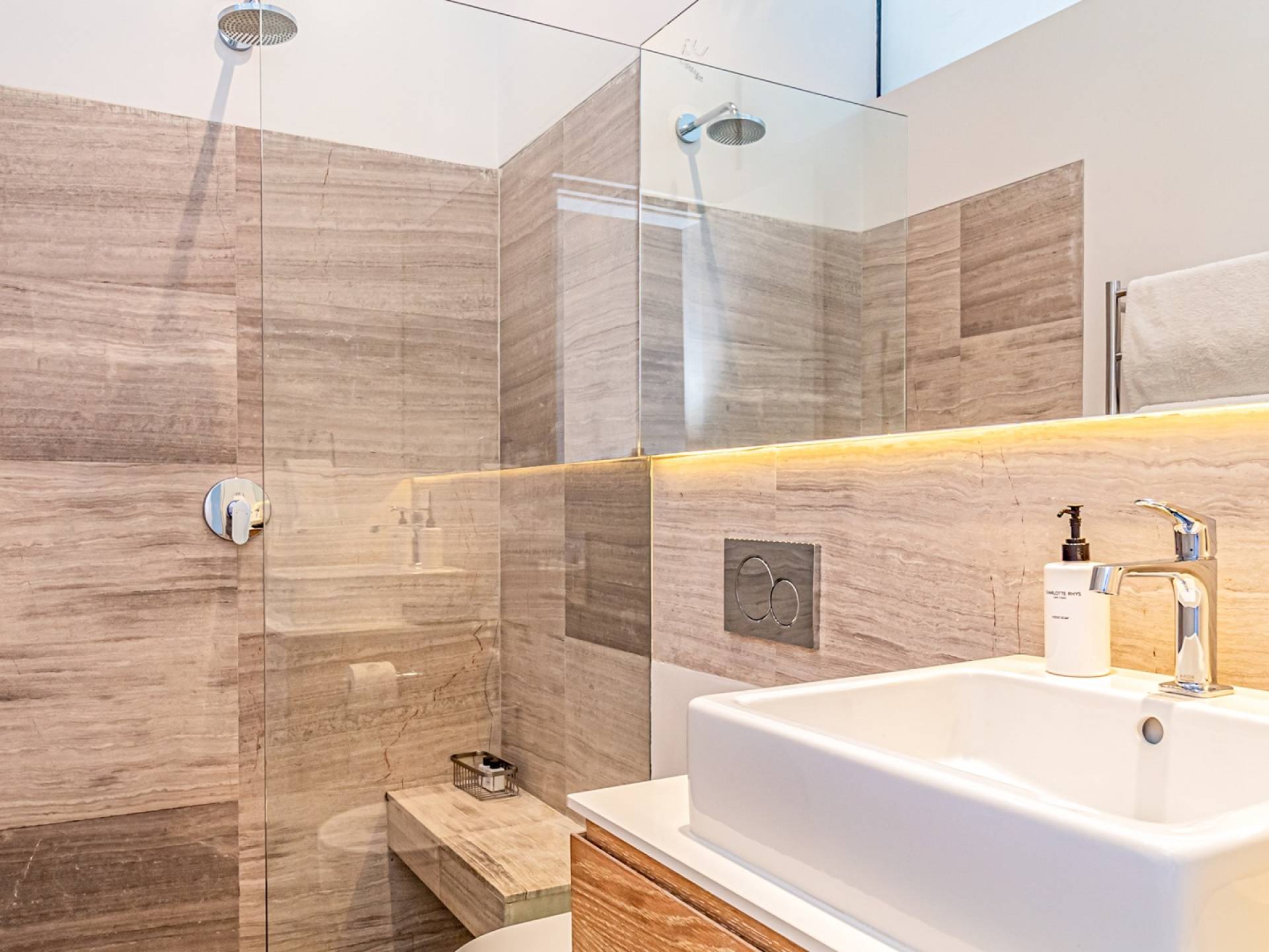 La quarta camera da letto si trova al piano superiore e dispone di un letto queen-size e di un bagno privato. Tutti i bagni sono dotati di termoarredo e la struttura dispone di riscaldamento a pavimento in tutto. La cucina è a pianta aperta e si affaccia sulla sala da pranzo e soggiorno, da cui si accede al balcone affacciato sul mare con piscina privata. Le piastrelle in gres porcellanato lucido rivestono i pavimenti e conducono sul balcone, creando un flusso meraviglioso. Un barbecue a gas integrato si integra perfettamente con l'arredamento esterno.