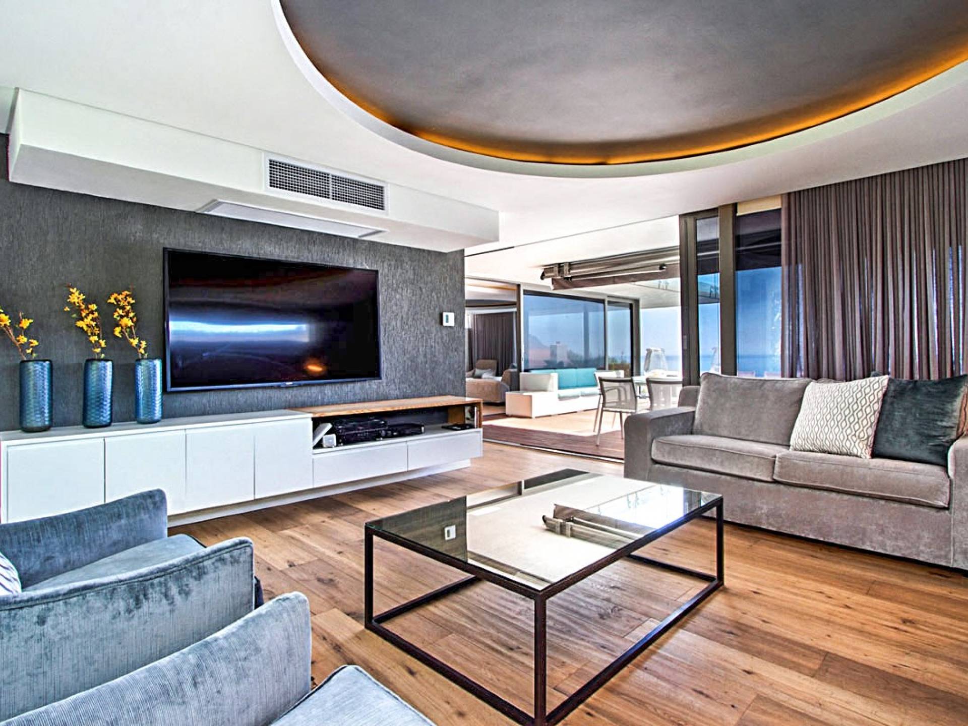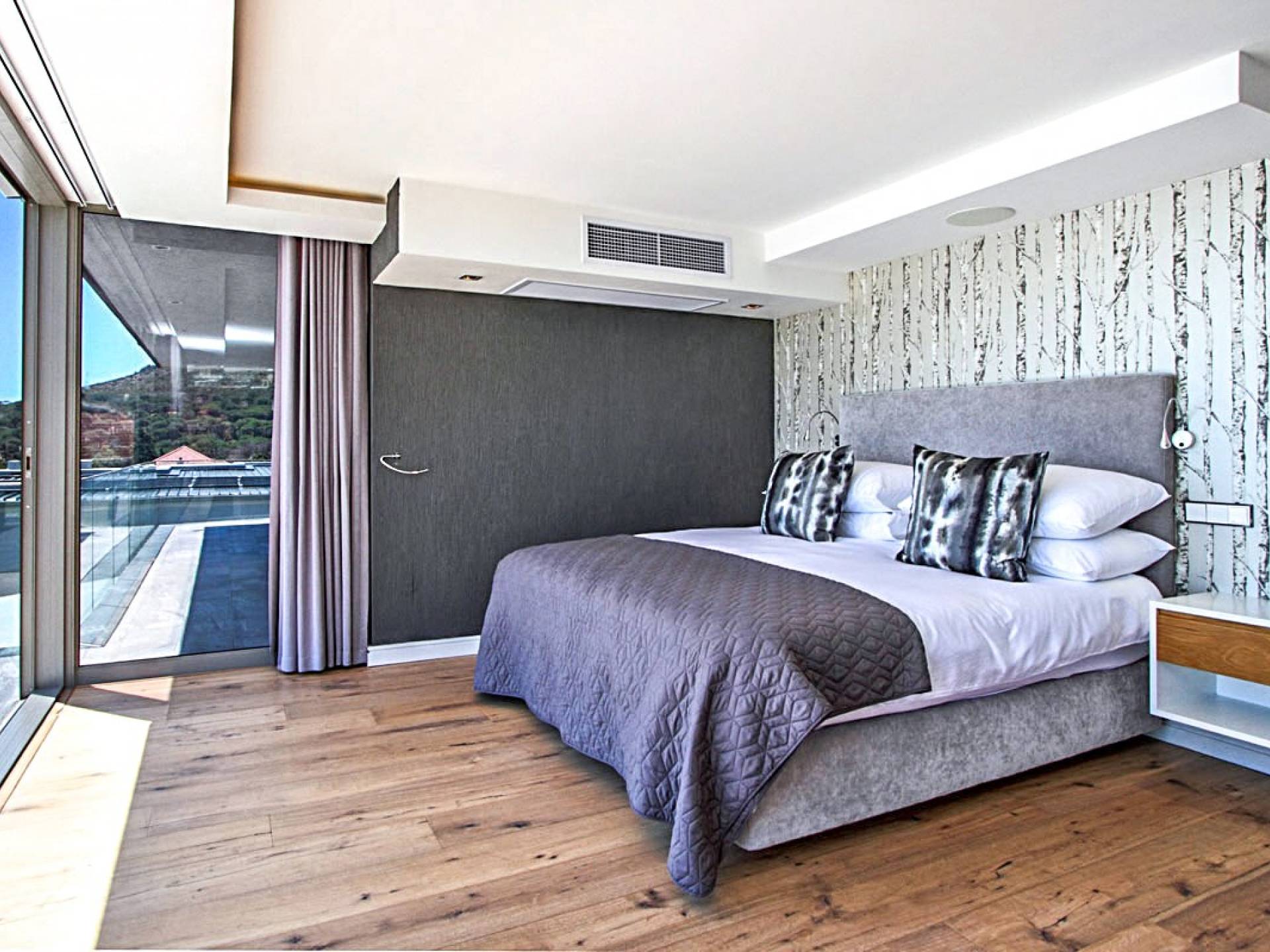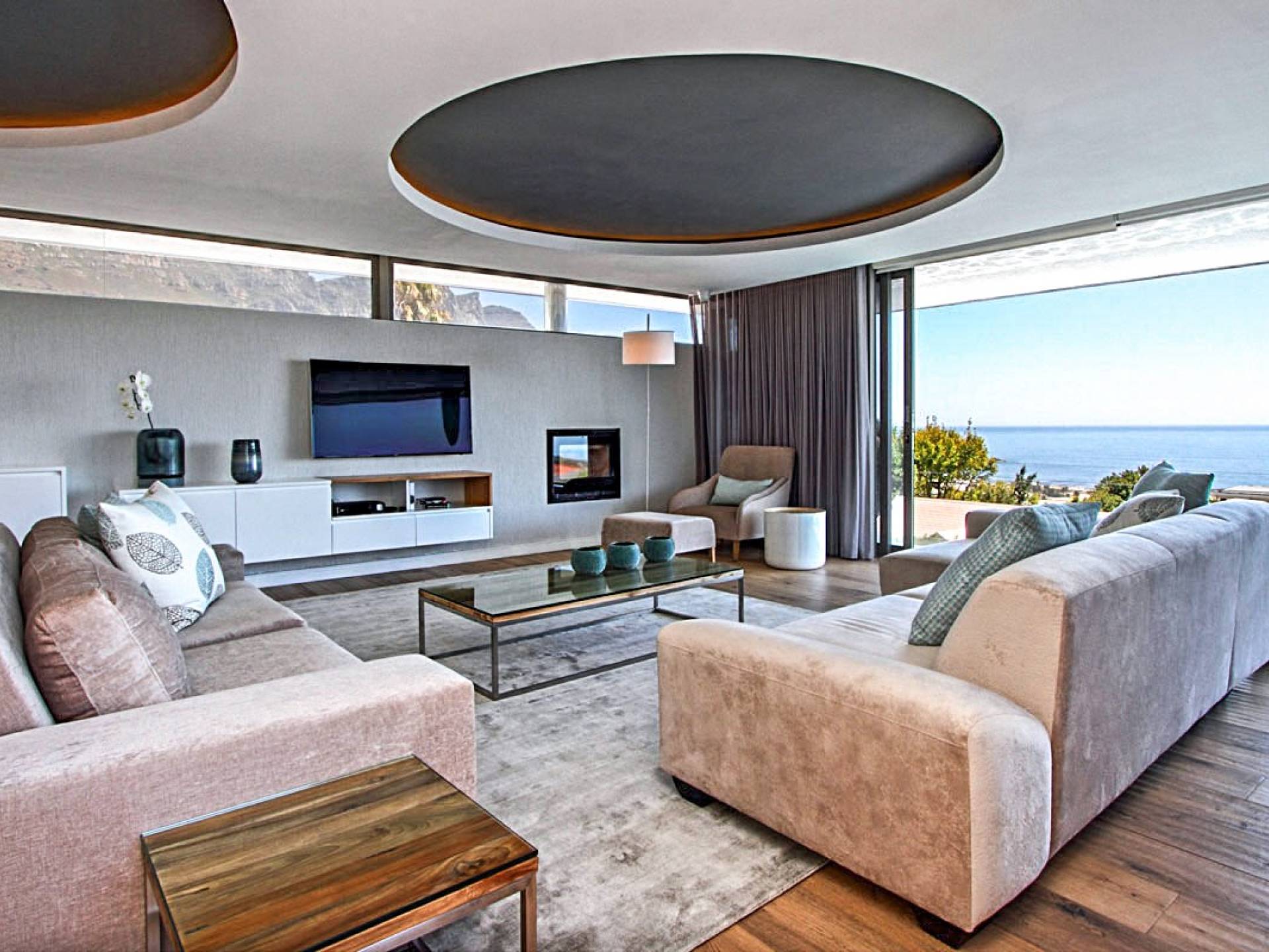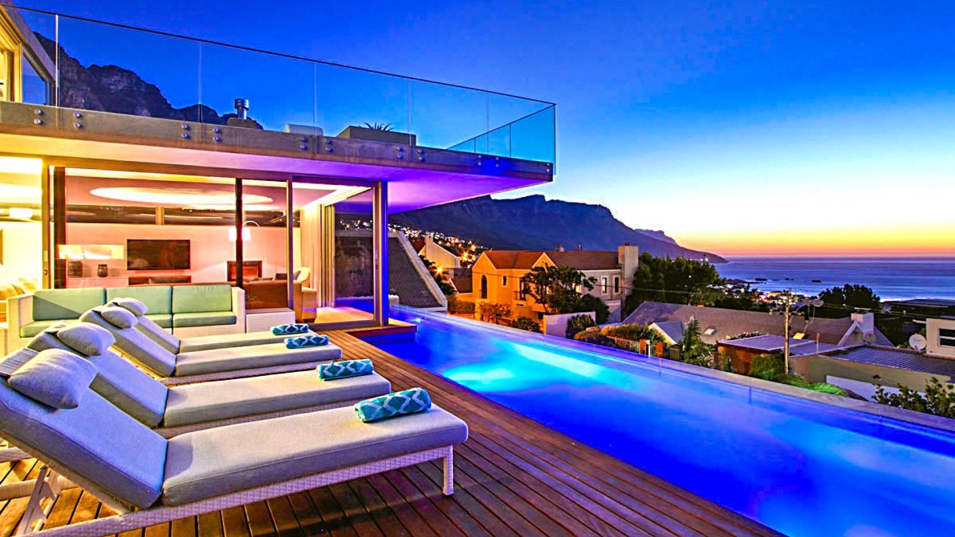Tutte le stanze di questo livello si estendono su un vasto ponte di legno con una scintillante piscina di 15 metri completa di sedili Martini per ammirare le splendide viste di Lion's Head e dell'oceano. Un bar esterno con un secondo barbecue a gas, sedie a sdraio e un tavolo da pranzo all'aperto per 10 lo rendono un luogo perfetto per intrattenere le serate estive. Accendi la fontana d'acqua, le luci della piscina e le luci di intrattenimento interne per un'incantevole scena di intrattenimento serale per ammirare il tramonto sull'oceano.
