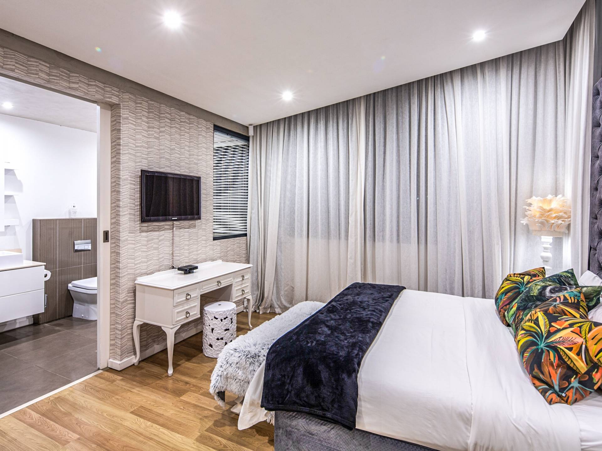 Il Beach House Lodge, che può ospitare fino a 10 persone, è una lussuosa struttura a Durban con angolo cottura, elegantemente progettata, arredata con gusto ed è ben attrezzata per creare un ambiente familiare. Le finiture di fascia alta in diverse tavolozze di colori aggiungono un'atmosfera lussuosa e di buon gusto a ciascuna di queste camere speciali nei nostri squisiti alloggi e lodge di lusso a Durban. Contemporaneo ed elegante con un tocco di colore nell'arredamento o nei mobili sono i temi del giorno. Ogni camera è spaziosa, luminosa e ariosa con elementi di divertimento nell'arredamento.