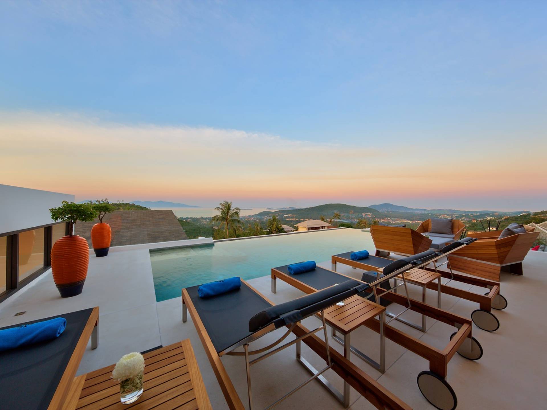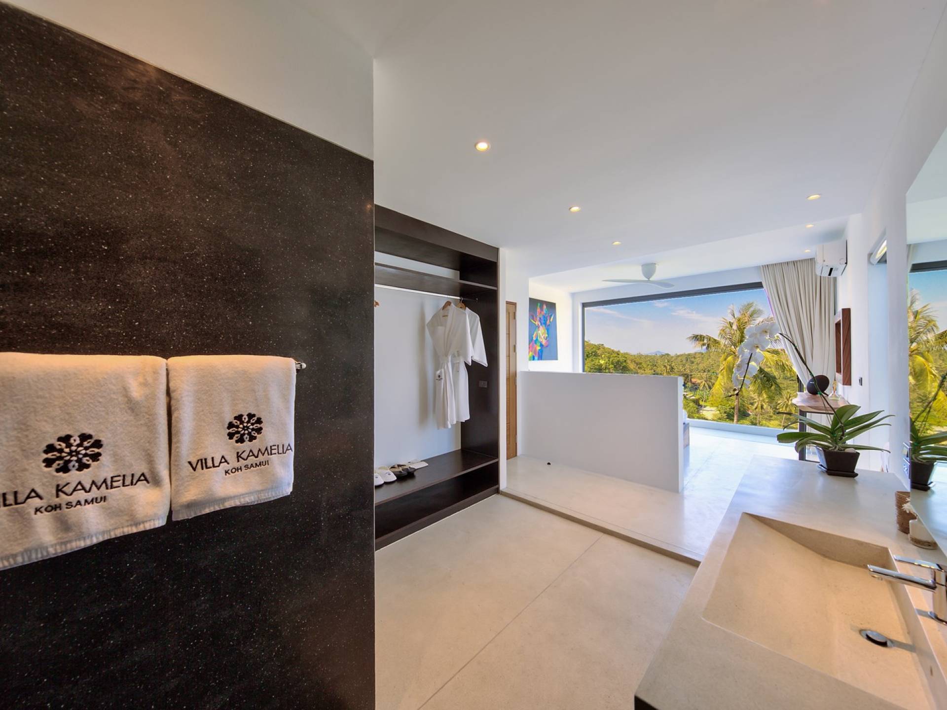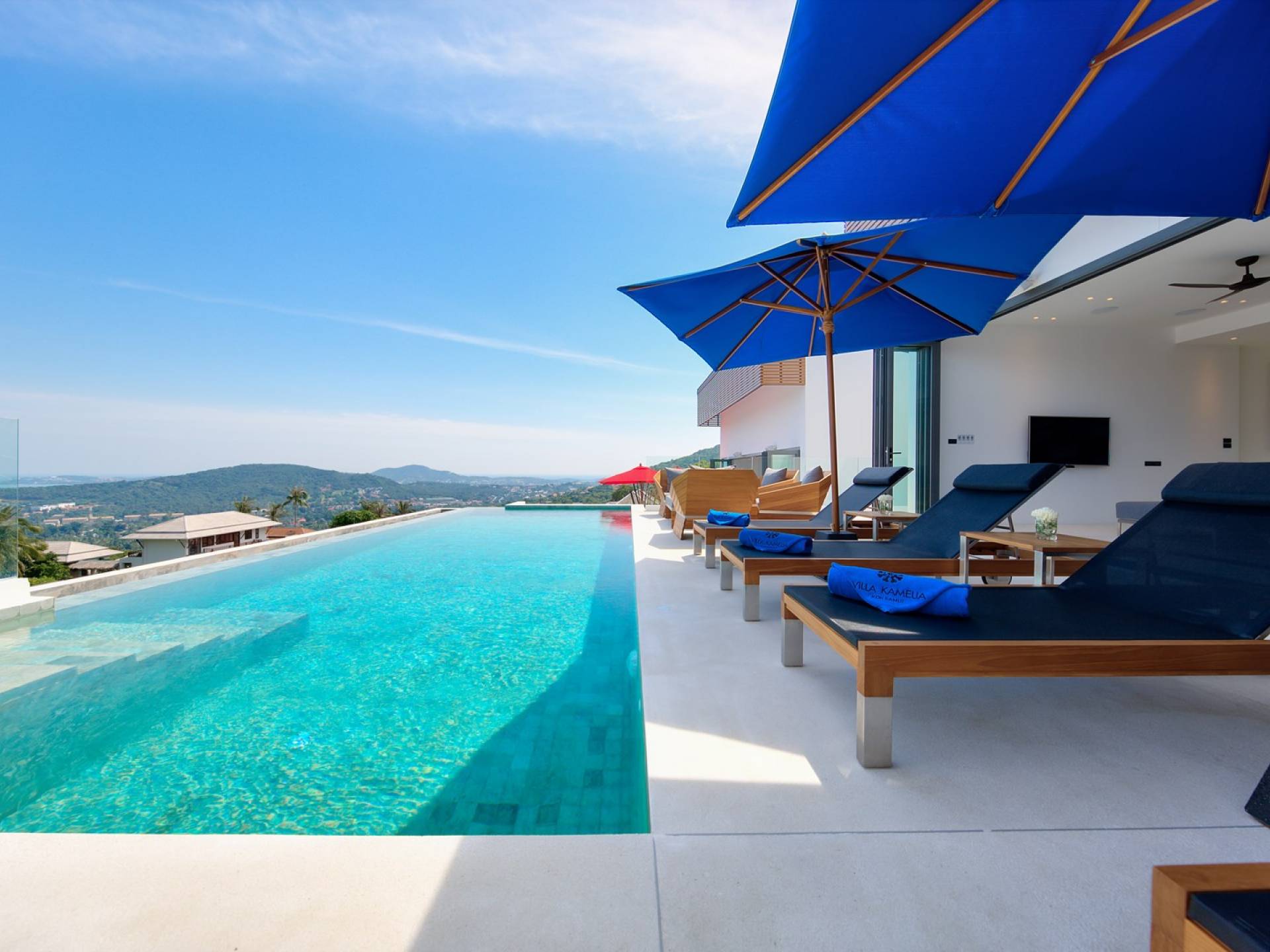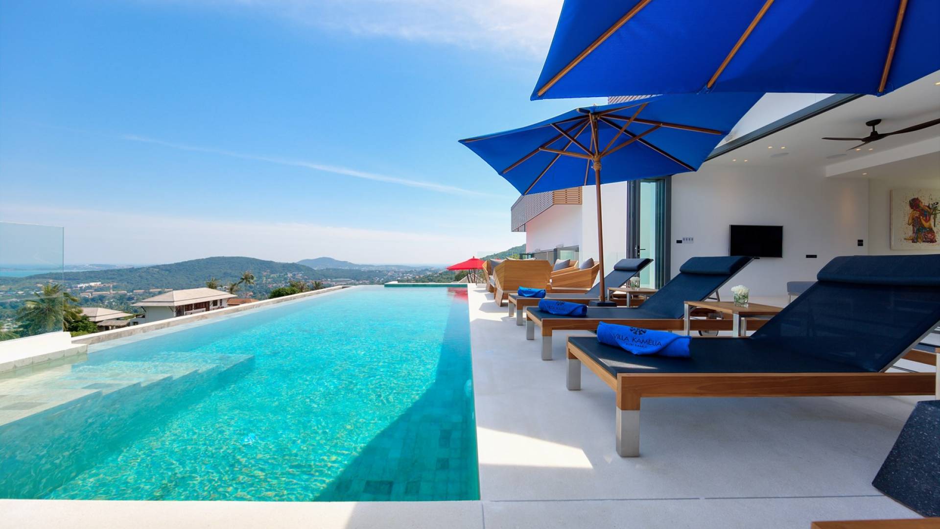 Villa Kamelia Samui, villa con 6 camere da letto si trova in alto sulle colline di Bo Phut, offrendo ai suoi ospiti uno standard di vita di alta qualità ed elegante insieme a splendide viste panoramiche sul mare. Con i suoi ampi spazi interni ed esterni, Villa Kamelia Samui è facilmente il luogo più ideale per chi ama viaggiare in gruppo soprattutto con amici e famiglie. La villa offre numerosi posti a sedere nel patio e comodi lettini presso la grande piscina a sfioro dove si possono ammirare i paesaggi naturali di Samui, fornendo ai suoi ospiti l'area perfetta per socializzare tra loro godendo di una splendida vista e senza la sensazione di essere affollata .