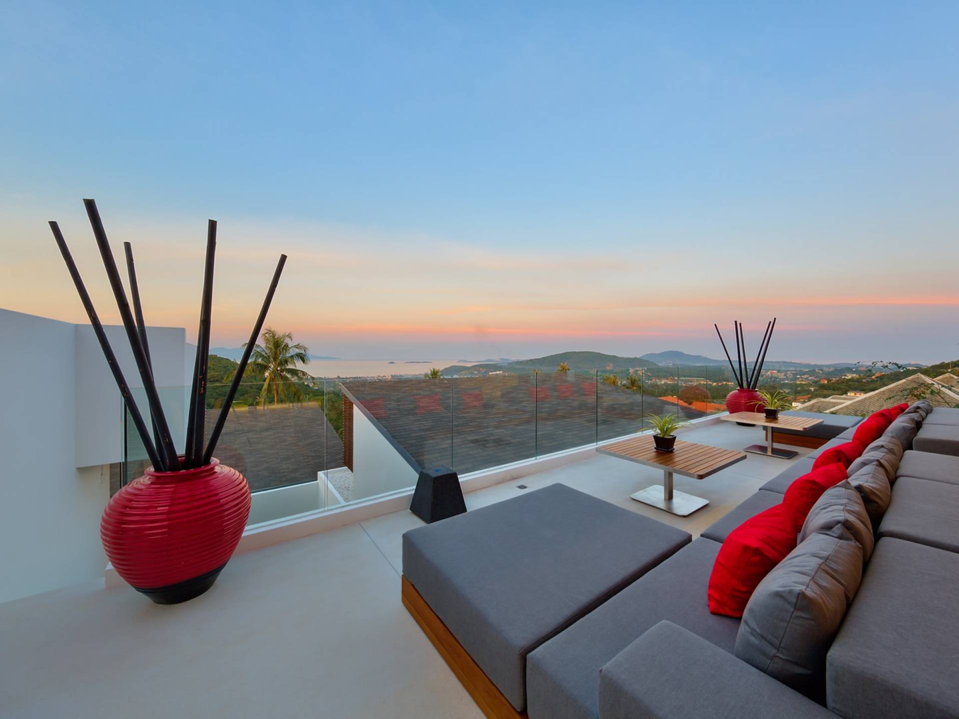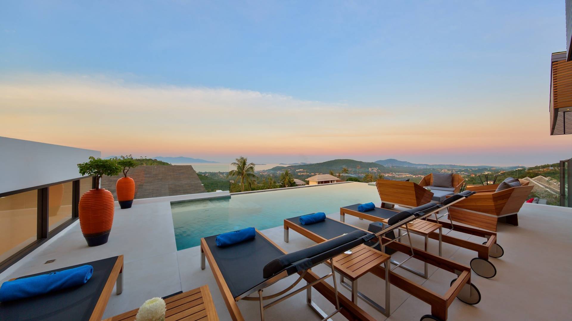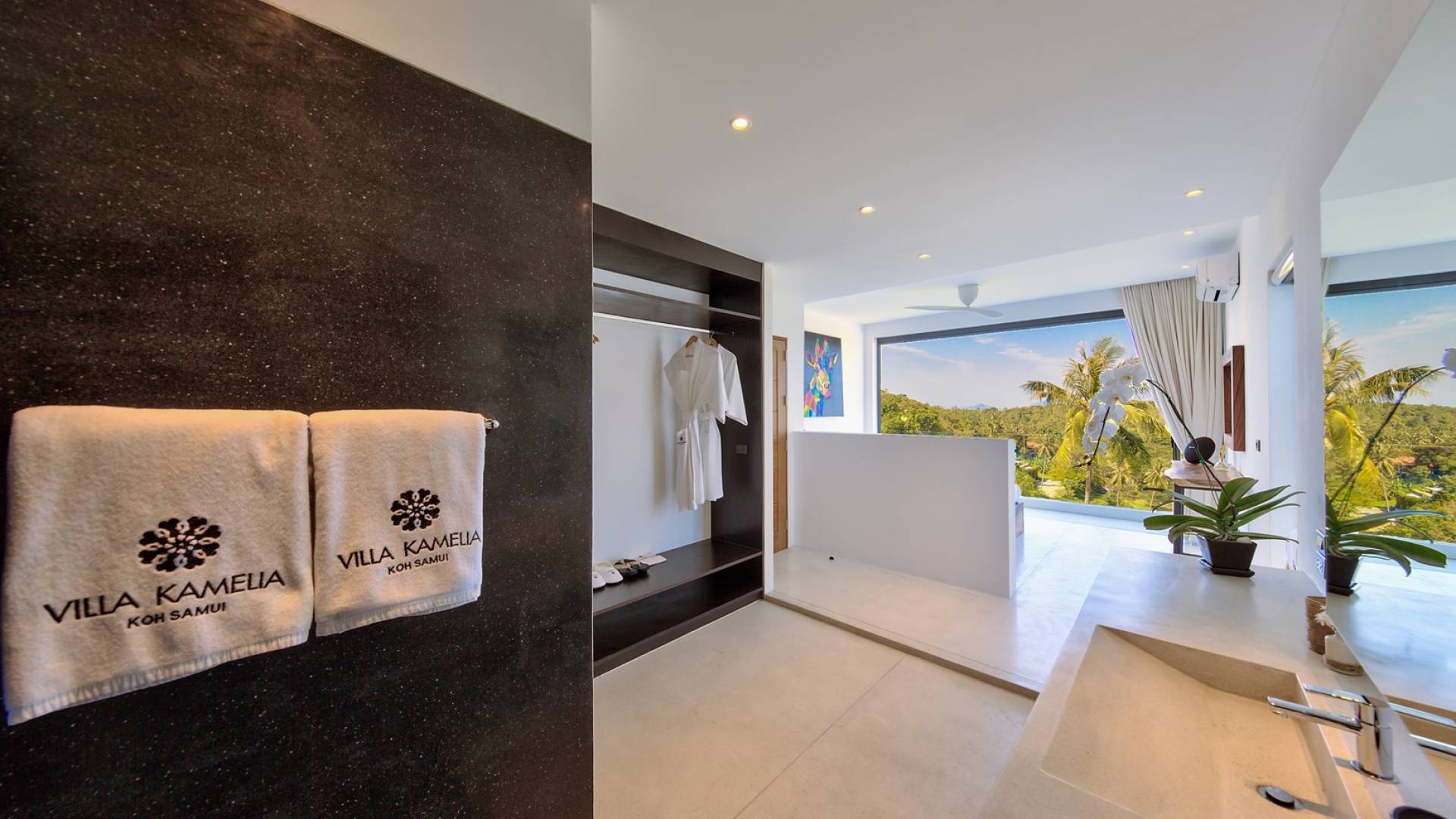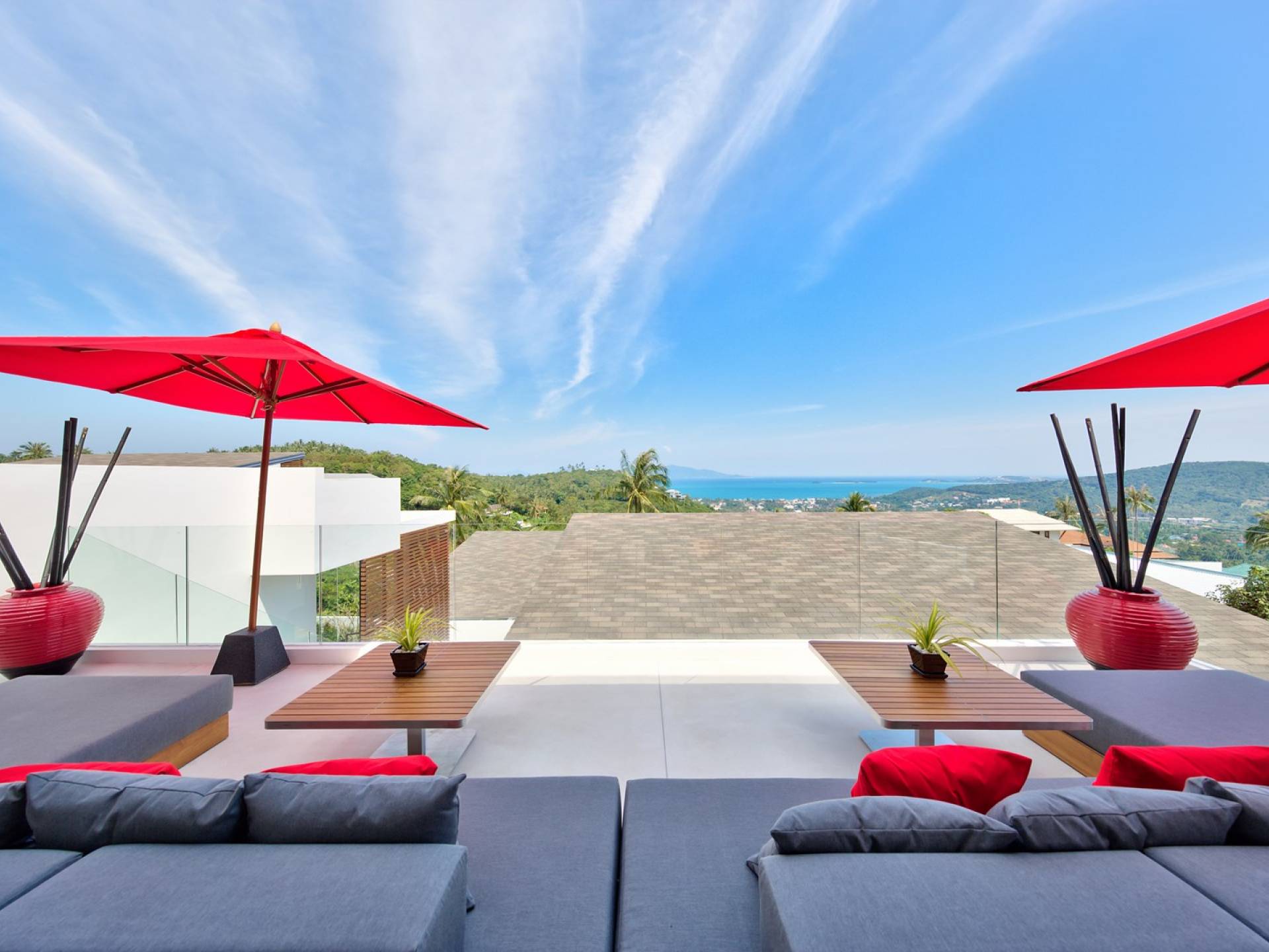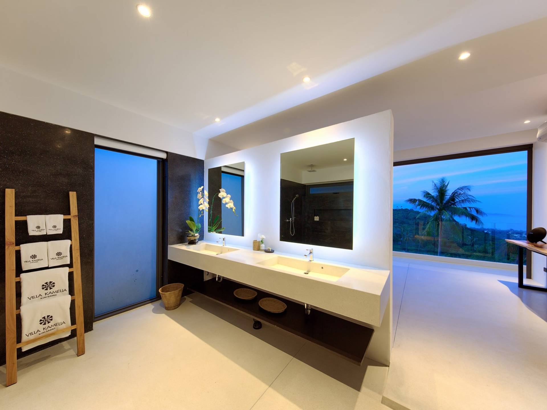Villa Kamelia Samui, villa con 6 camere da letto si trova in alto sulle colline di Bo Phut, offrendo ai suoi ospiti uno standard di vita di alta qualità ed elegante insieme a splendide viste panoramiche sul mare. Con i suoi ampi spazi interni ed esterni, Villa Kamelia Samui è facilmente il luogo più ideale per chi ama viaggiare in gruppo soprattutto con amici e famiglie. La villa offre numerosi posti a sedere nel patio e comodi lettini presso la grande piscina a sfioro dove si possono ammirare i paesaggi naturali di Samui, fornendo ai suoi ospiti l'area perfetta per socializzare tra loro godendo di una splendida vista e senza la sensazione di essere affollata .