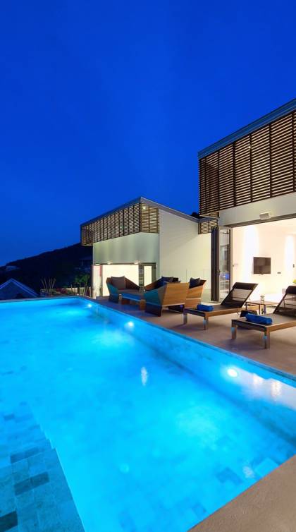 Colore blu, sole e lusso, niente può battere questa combinazione. Cos'altro c'è da chiedere per le tue vacanze? Concediti una piscina privata riscaldata nell'intimità della tua villa, sia interna che esterna. L'acqua è curativa e terapeutica e laverà…